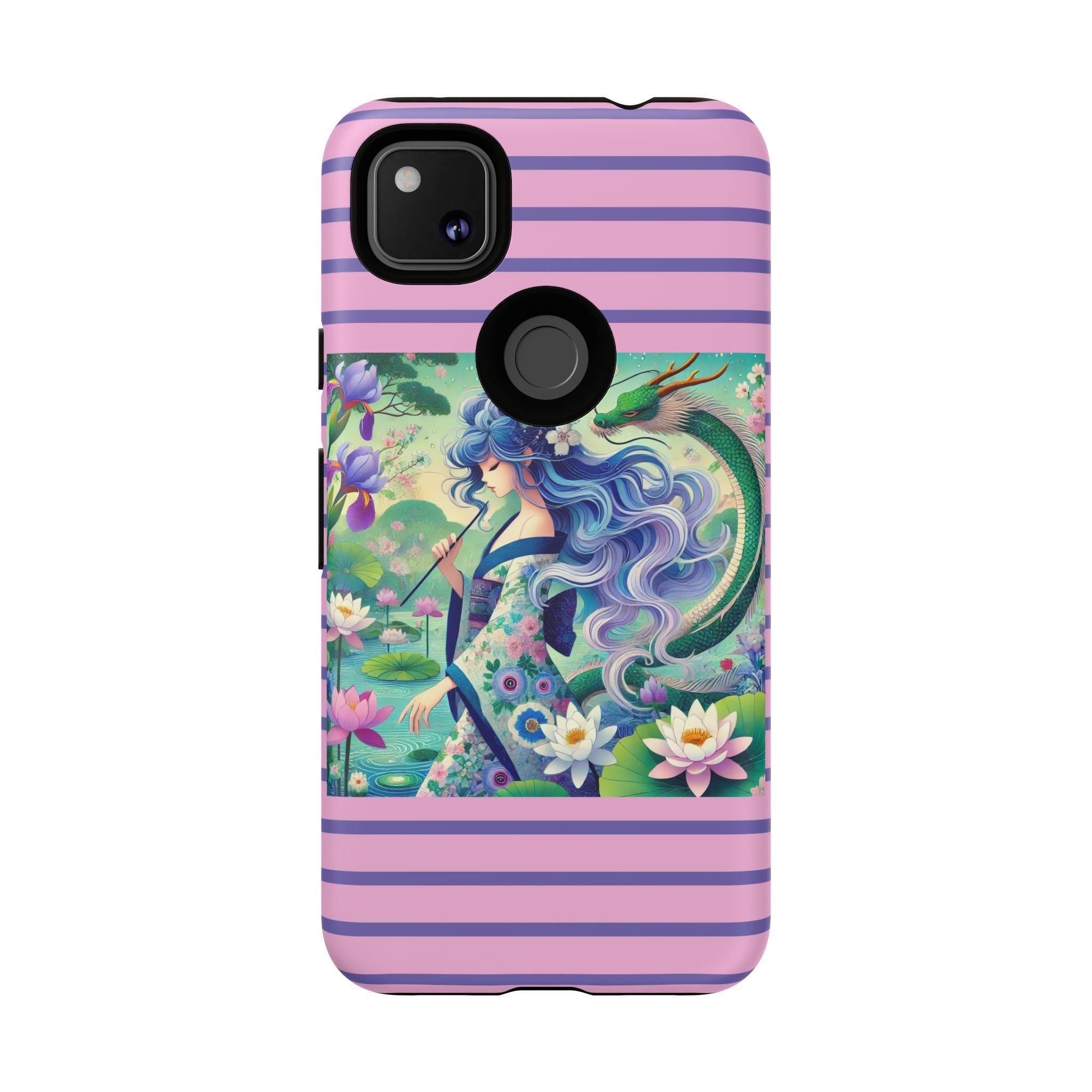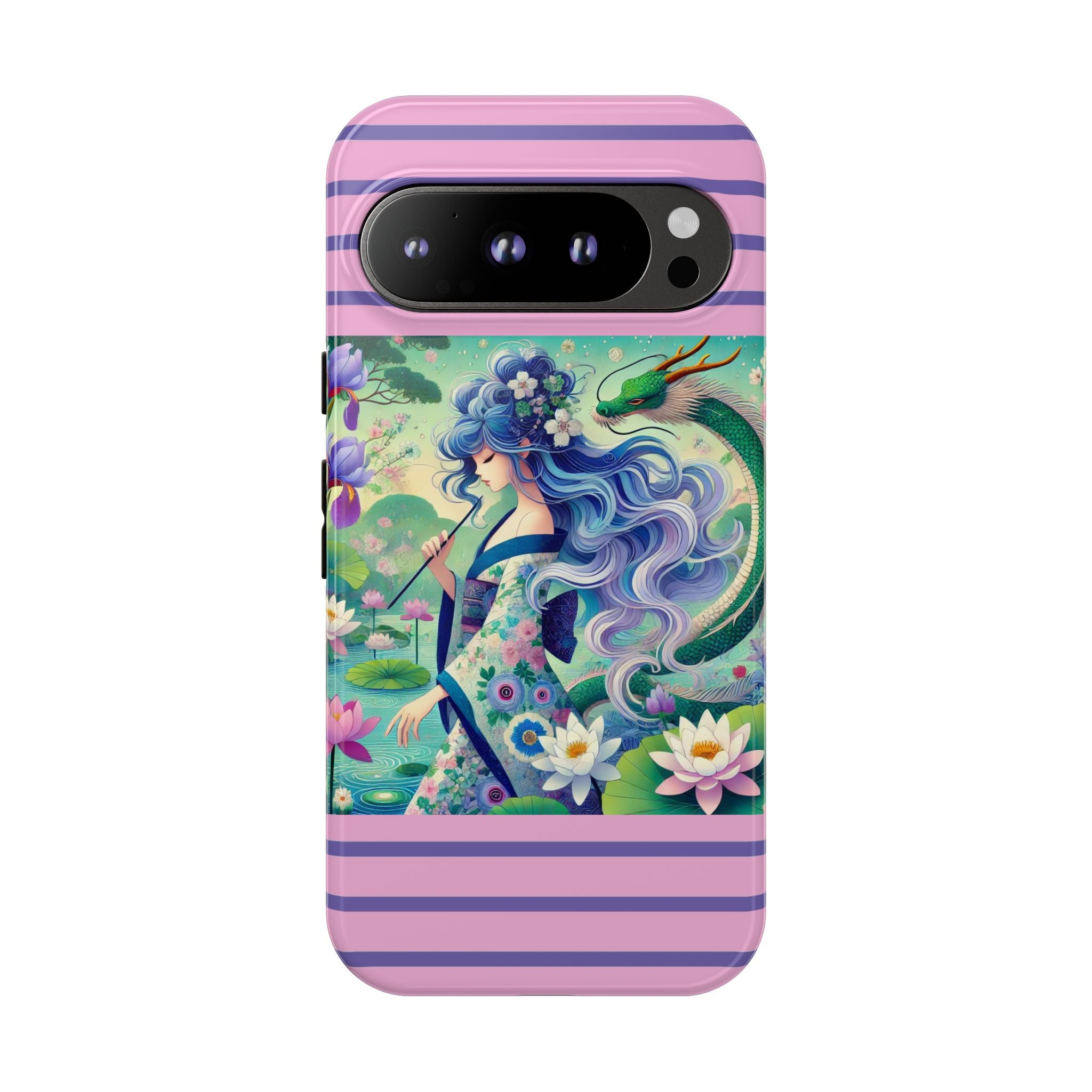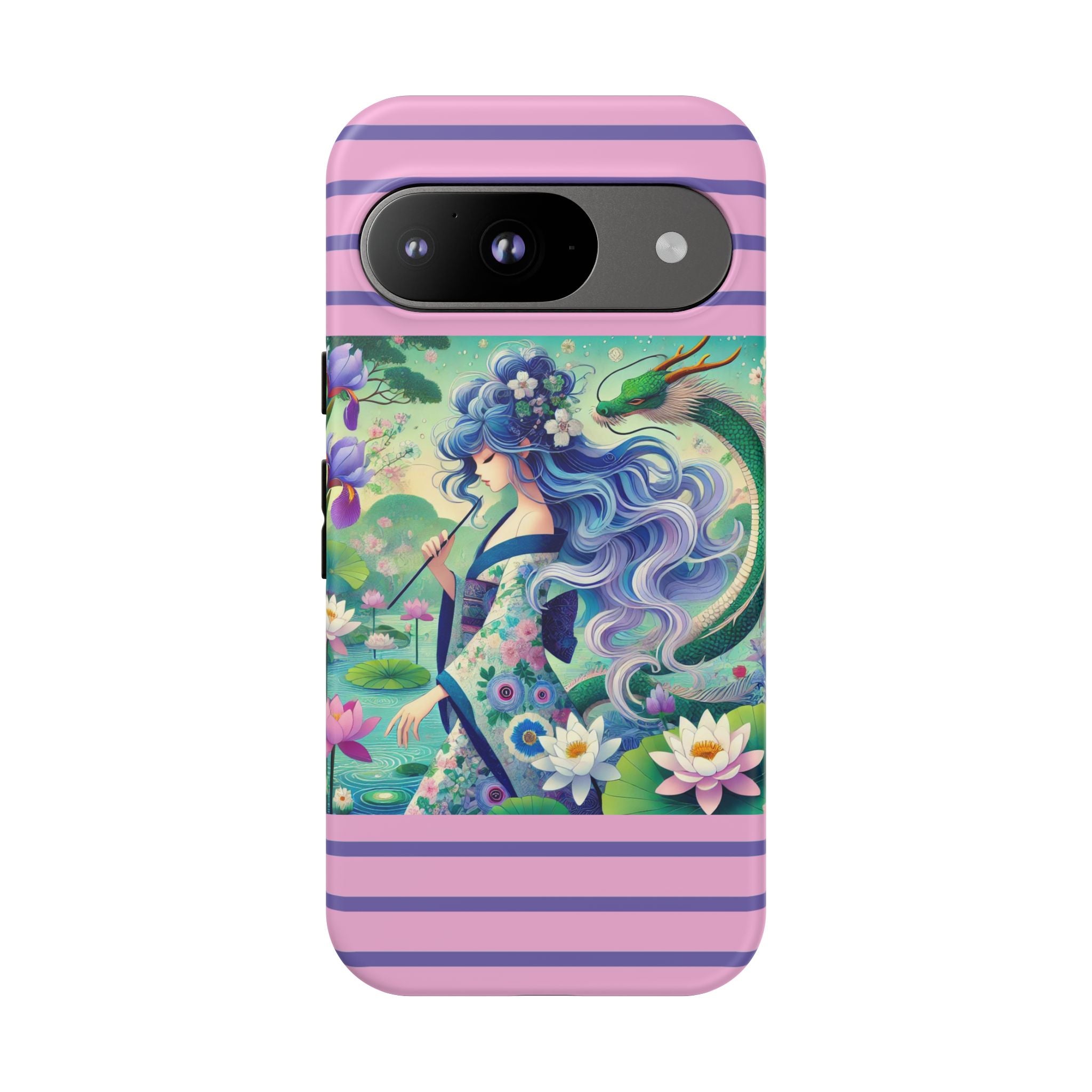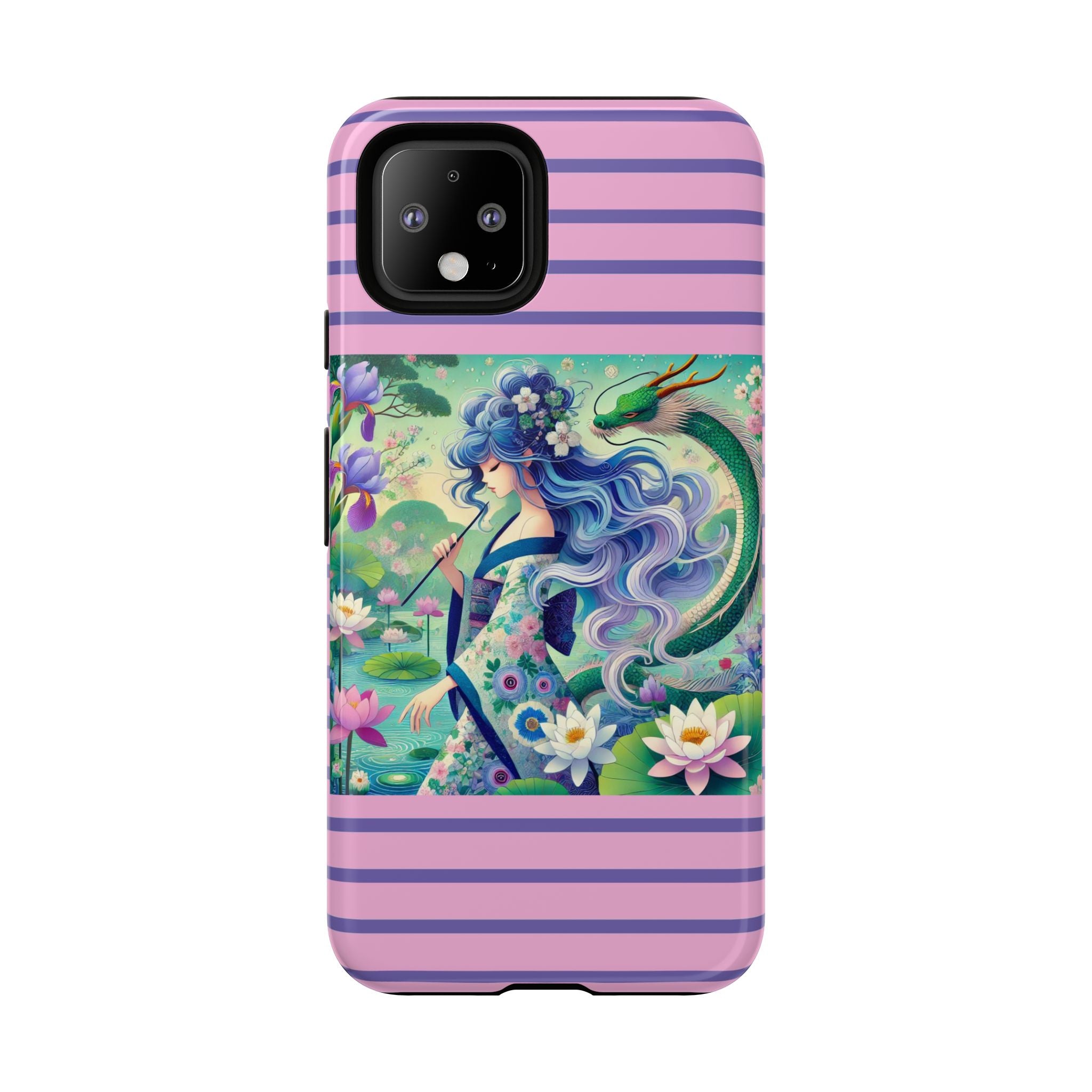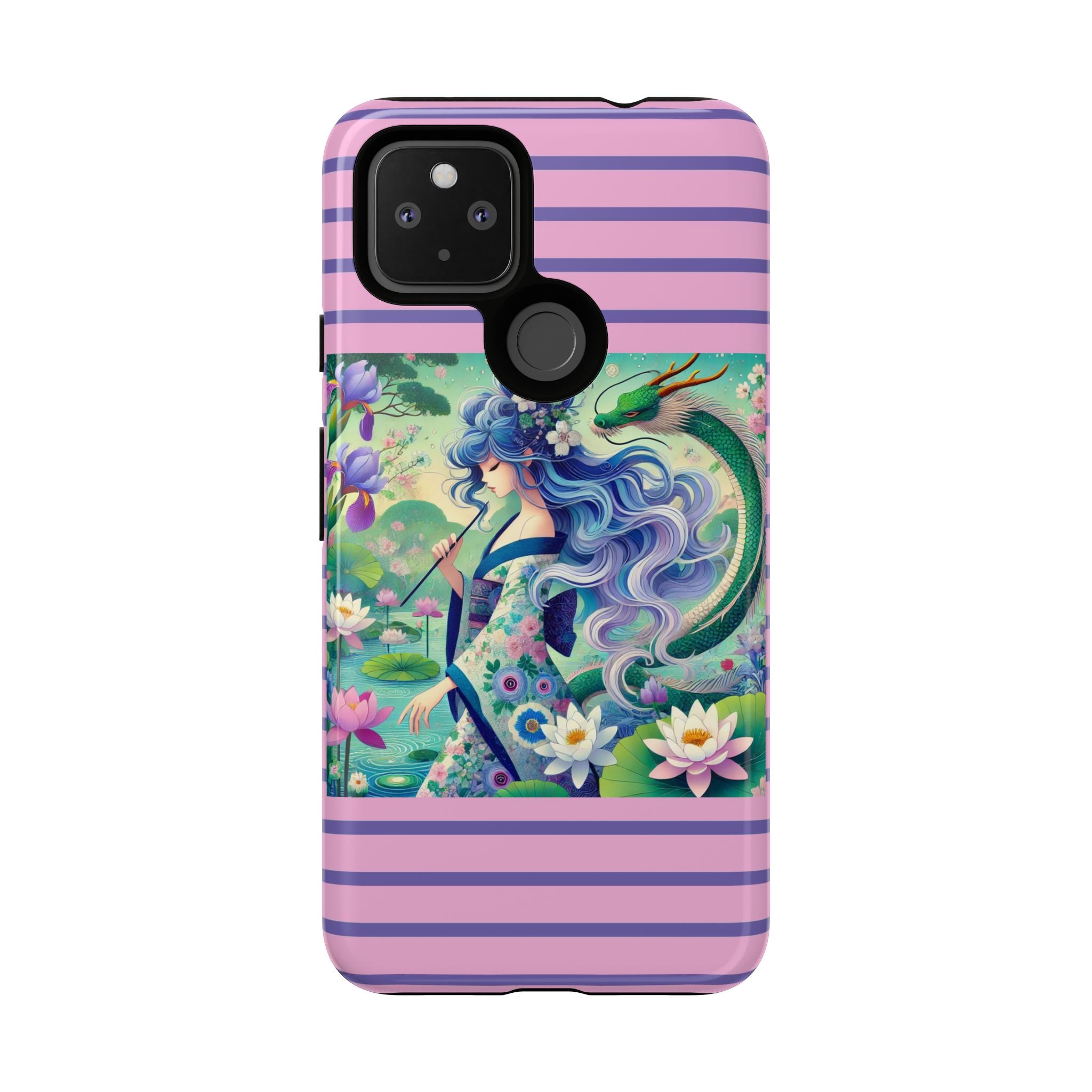 Bring a touch of magic and elegance to your everyday device with our Fairy of the Koi Pond Phone Cases. Designed for iPhone, Samsung Galaxy, and Google Pixel devices, each case combines premium-quality craftsmanship with enchanting artistic beauty. The design features a modern fairy with flowing blue hair standing gracefully beside a koi pond filled with irises and water lilies. A jade-green dragon curls nearby, adding a mystical presence that deepens the dreamlike atmosphere. Together, these elements create a serene and captivating composition that feels both ethereal and empowering.
