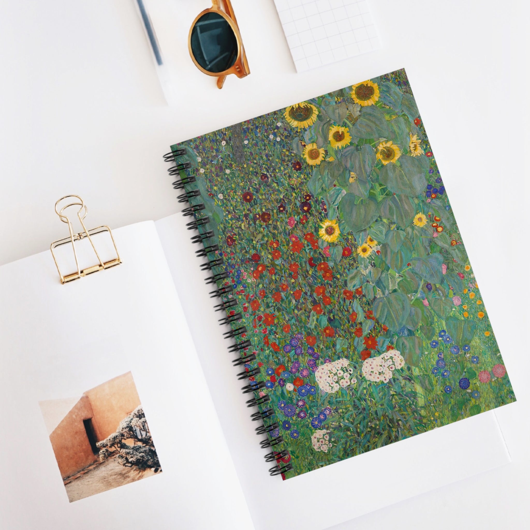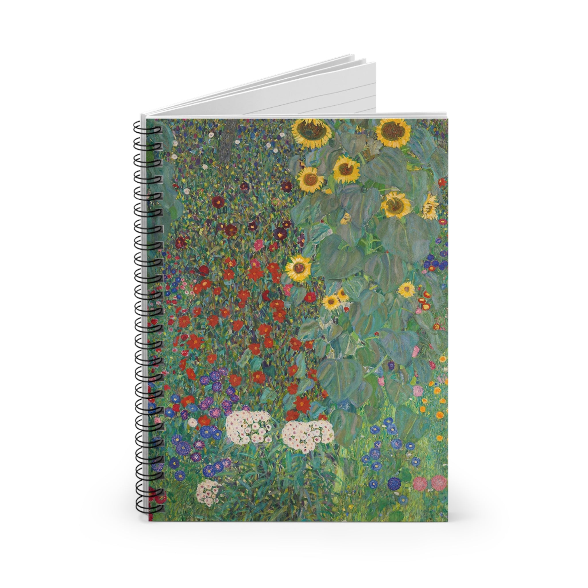 The cover showcases Farm Garden with Sunflowers by Gustav Klimt, painted in 1907—a stunning example of Klimt’s signature style during the Viennese Secession movement. This vibrant work blends lush natural elements with decorative, symbolic motifs, featuring a blooming garden dominated by tall sunflowers. Klimt’s attention to pattern, color, and form creates a rich, layered composition that is both visually immersive and deeply expressive.