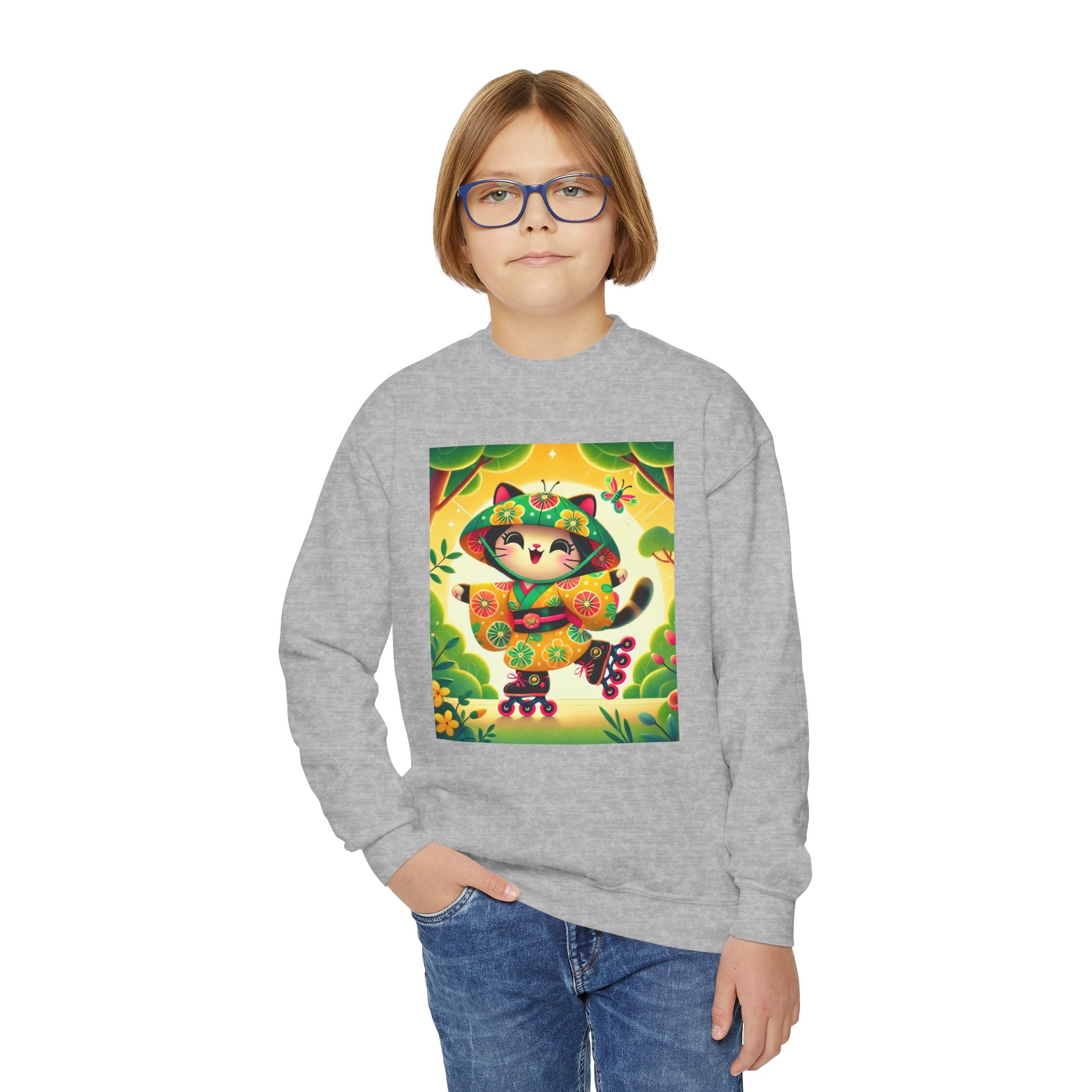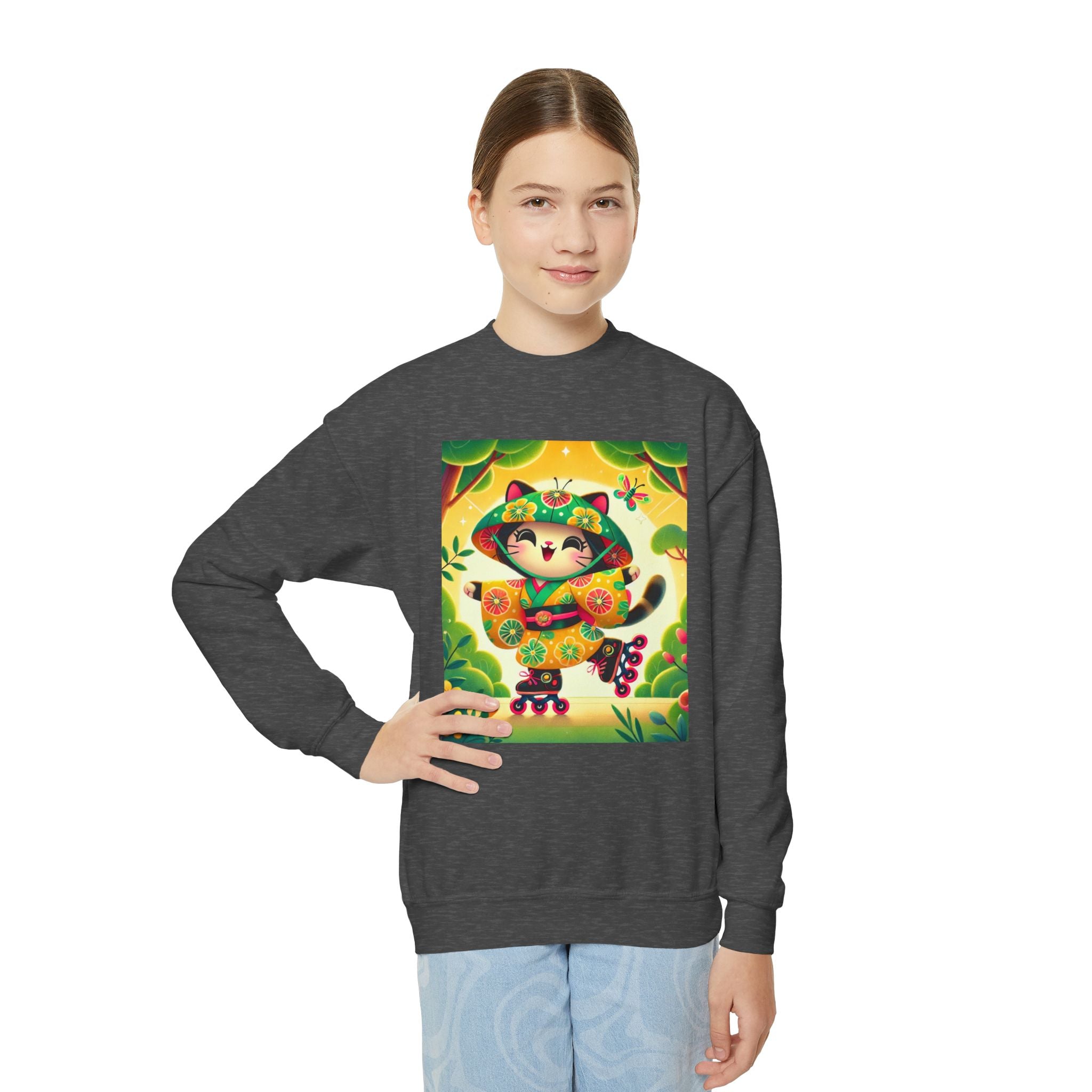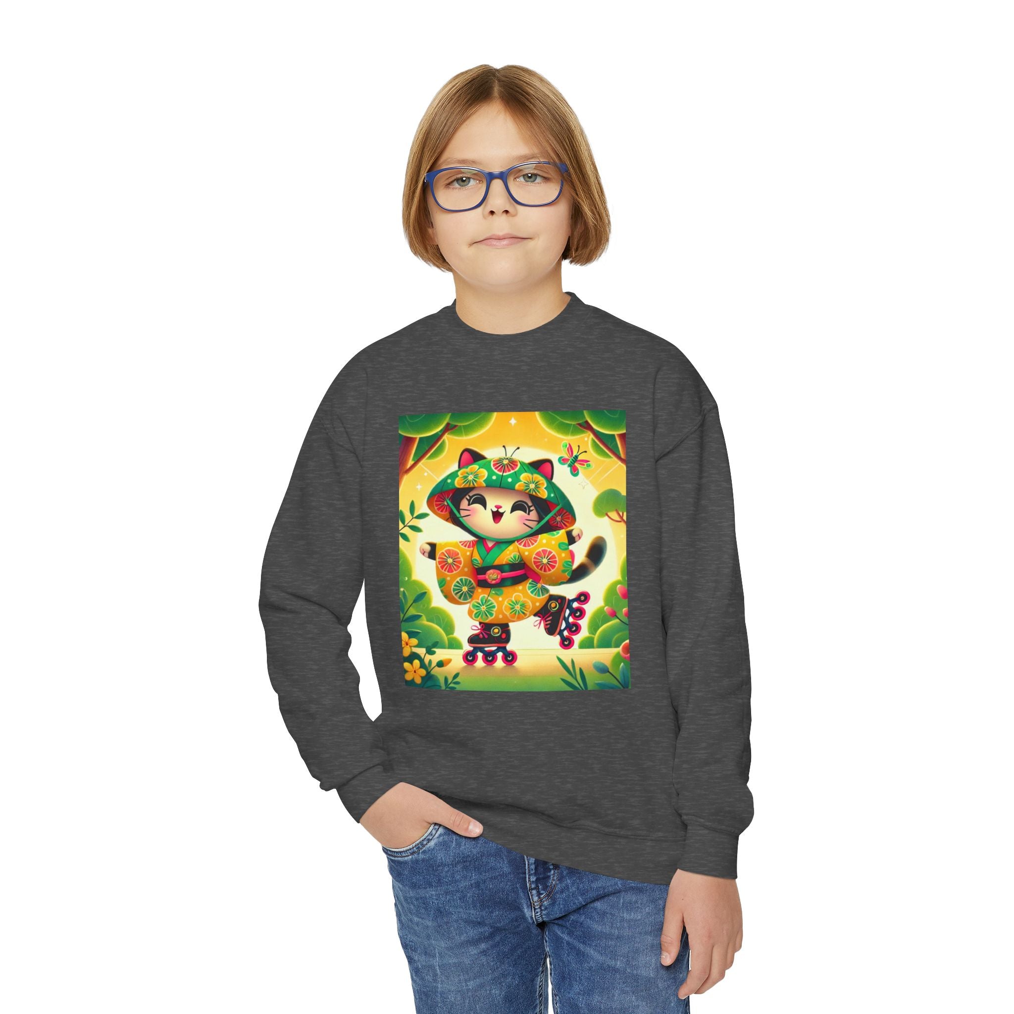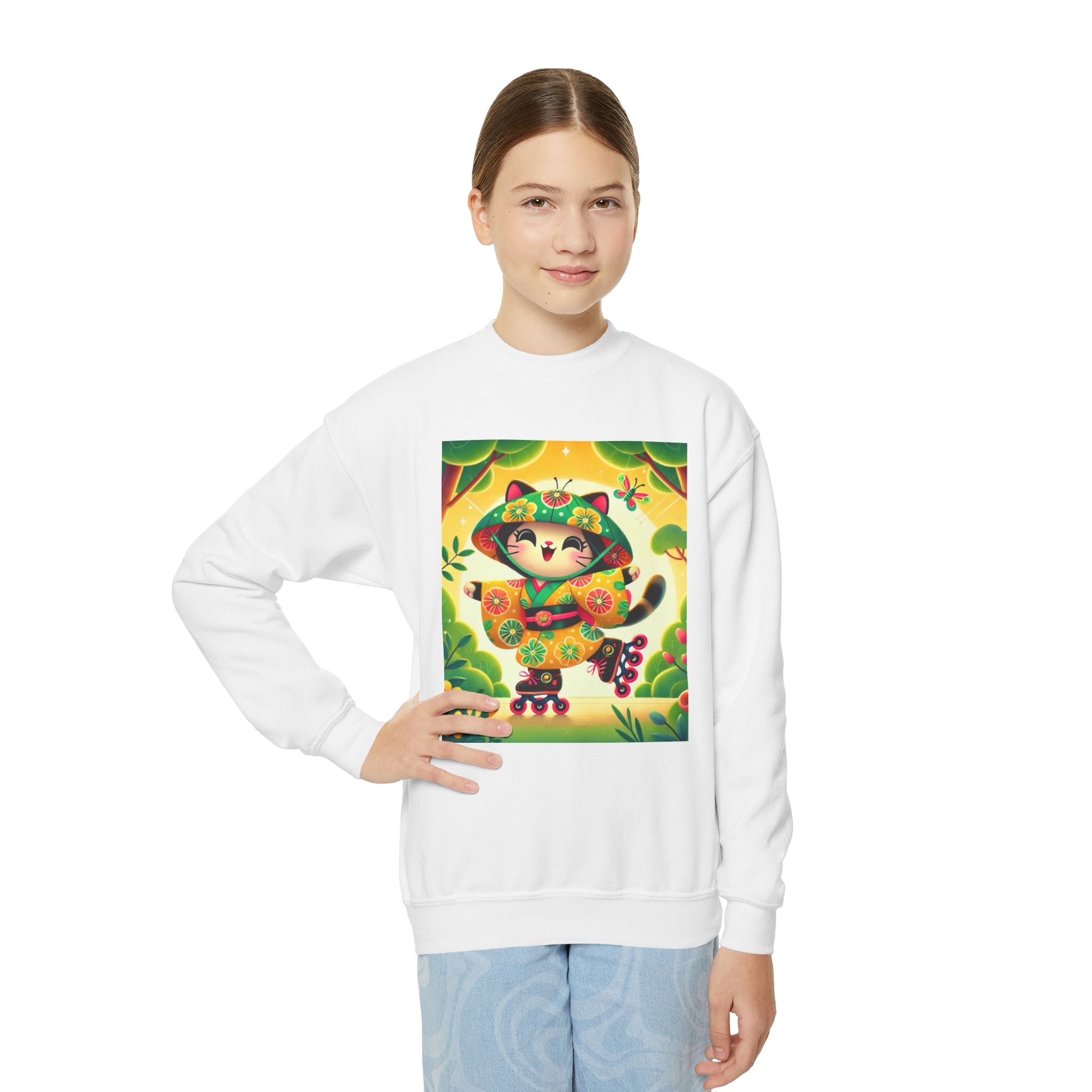 Firefly Dance on Wheels Youth Crewneck Sweatshirt combines cozy comfort with playful artistic flair. Crafted from a balanced blend of 50% cotton and 50% polyester, this Gildan 18000B sweatshirt offers warmth, durability, and softness—perfect for school, sports, or relaxing in style. The medium-heavy fabric delivers a premium feel, while the loose fit ensures freedom of movement. Please note: due to the fabric properties, the White color variant may appear slightly off-white.