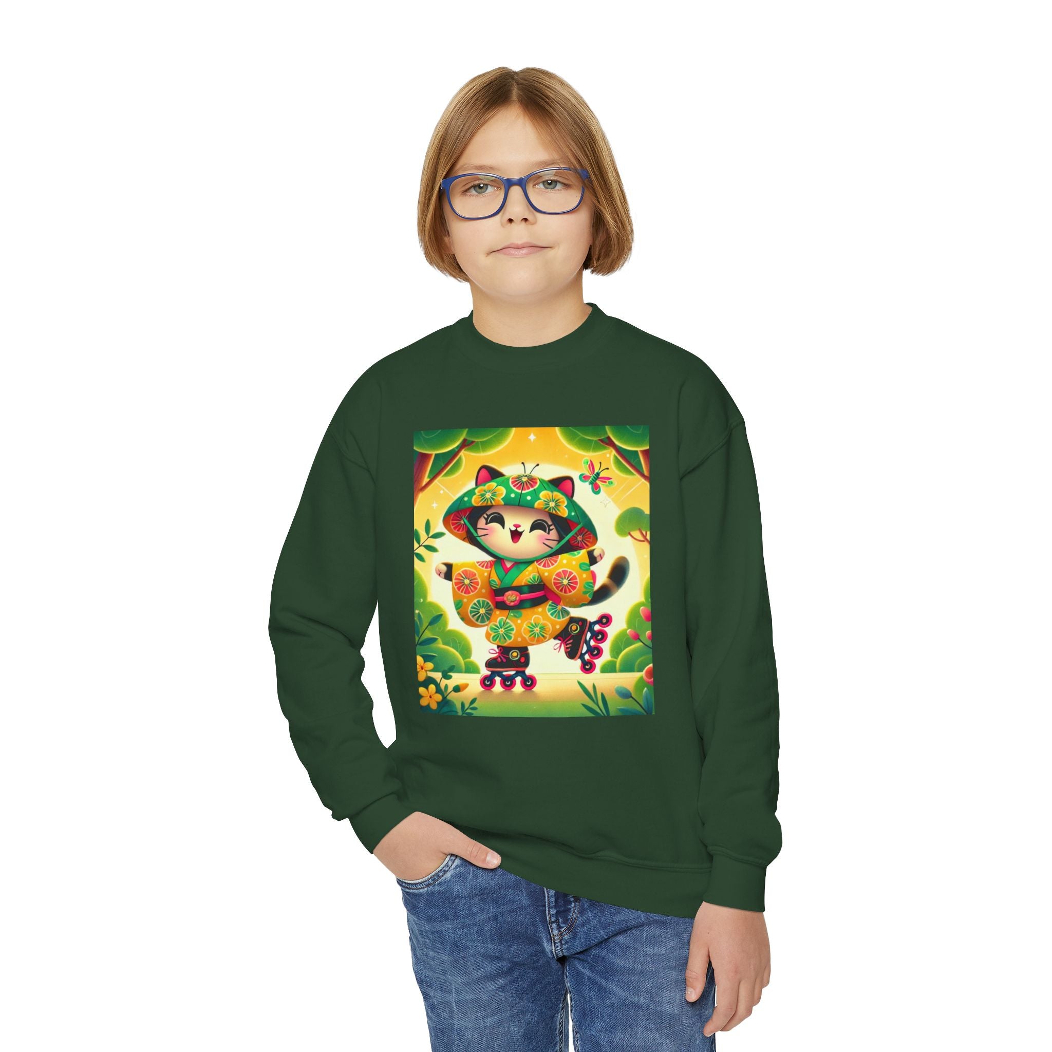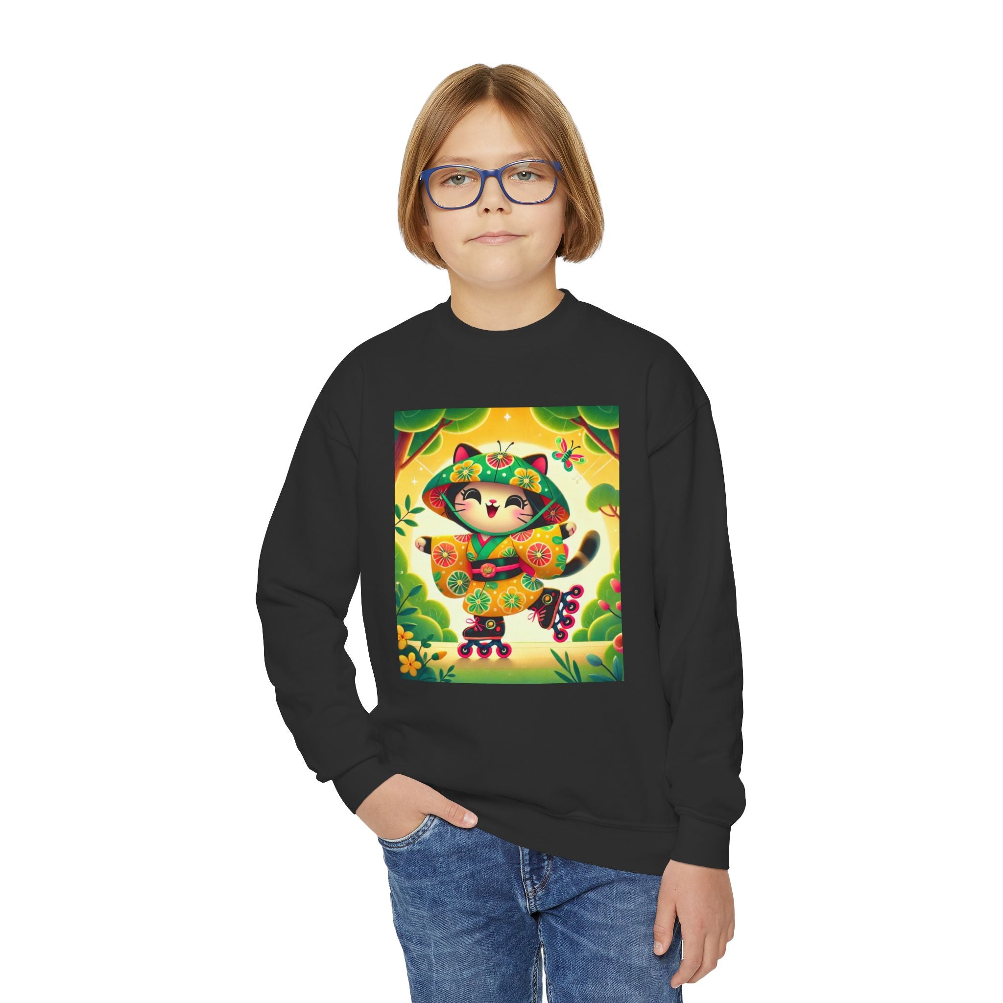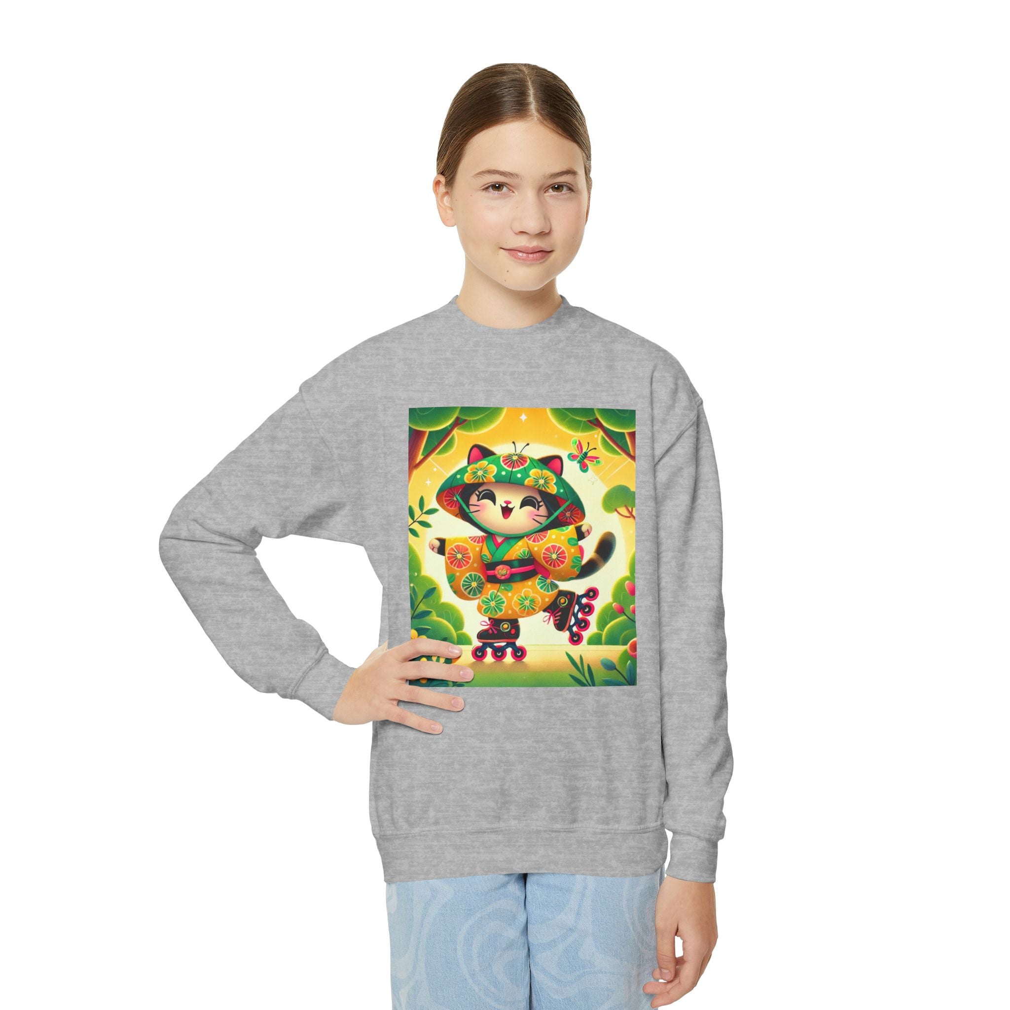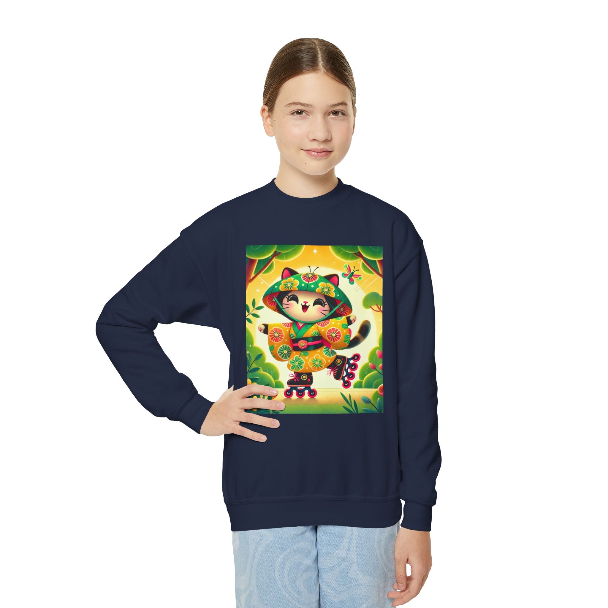 Firefly Dance on Wheels Youth Crewneck Sweatshirt combines cozy comfort with playful artistic flair. Crafted from a balanced blend of 50% cotton and 50% polyester, this Gildan 18000B sweatshirt offers warmth, durability, and softness—perfect for school, sports, or relaxing in style. The medium-heavy fabric delivers a premium feel, while the loose fit ensures freedom of movement. Please note: due to the fabric properties, the White color variant may appear slightly off-white.