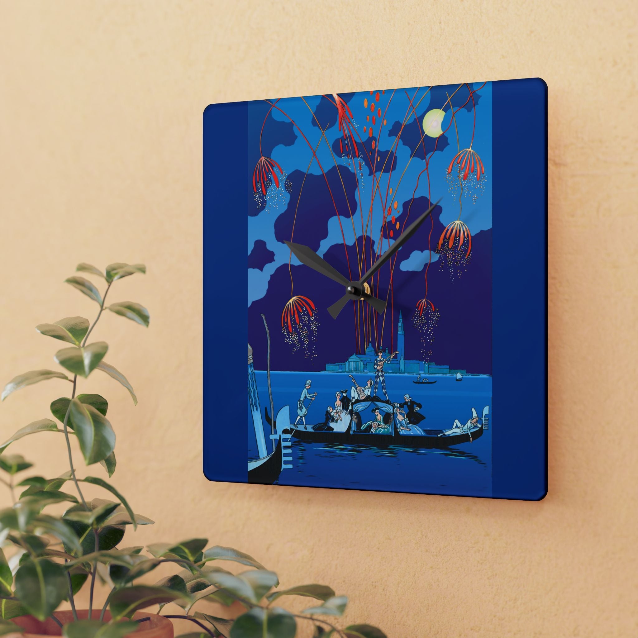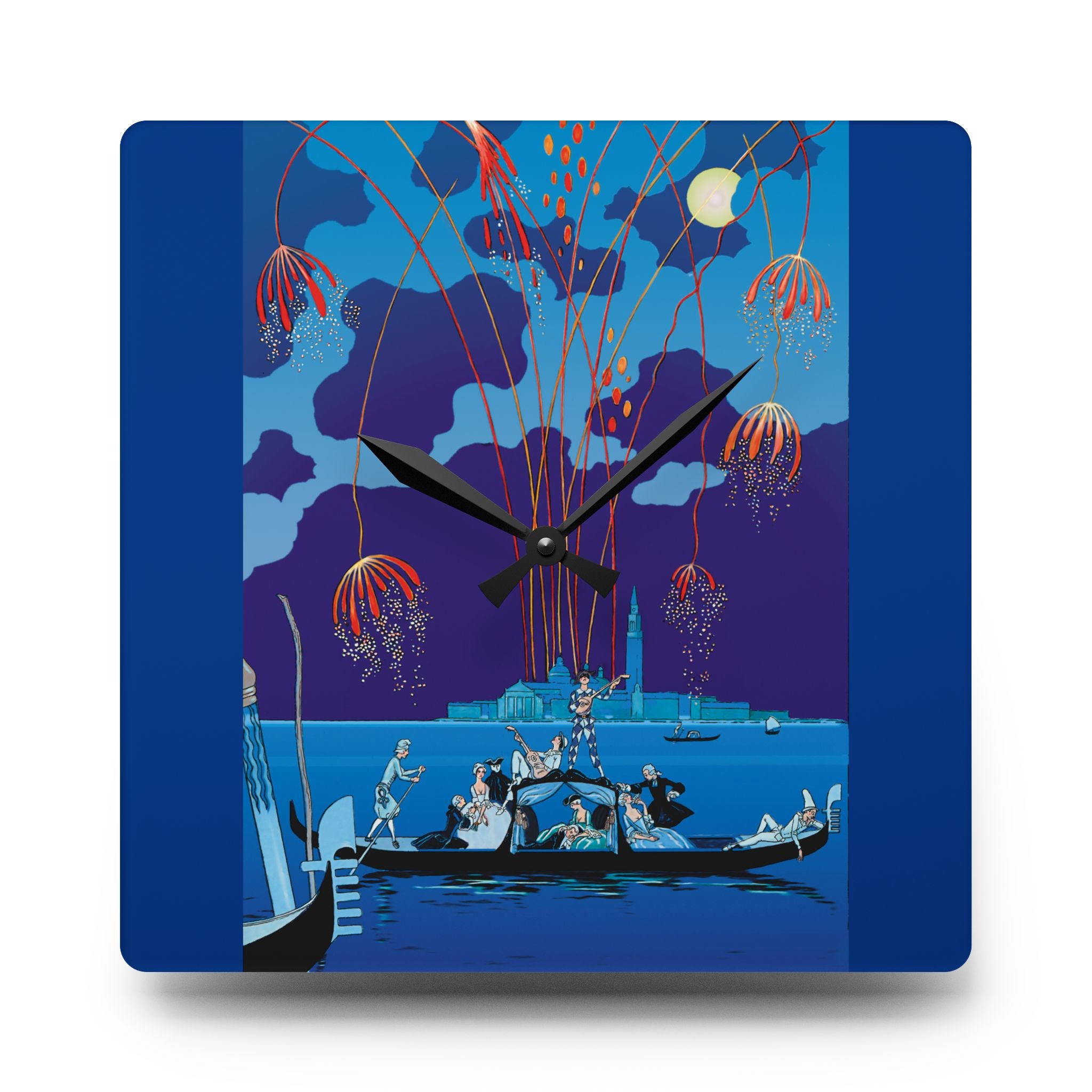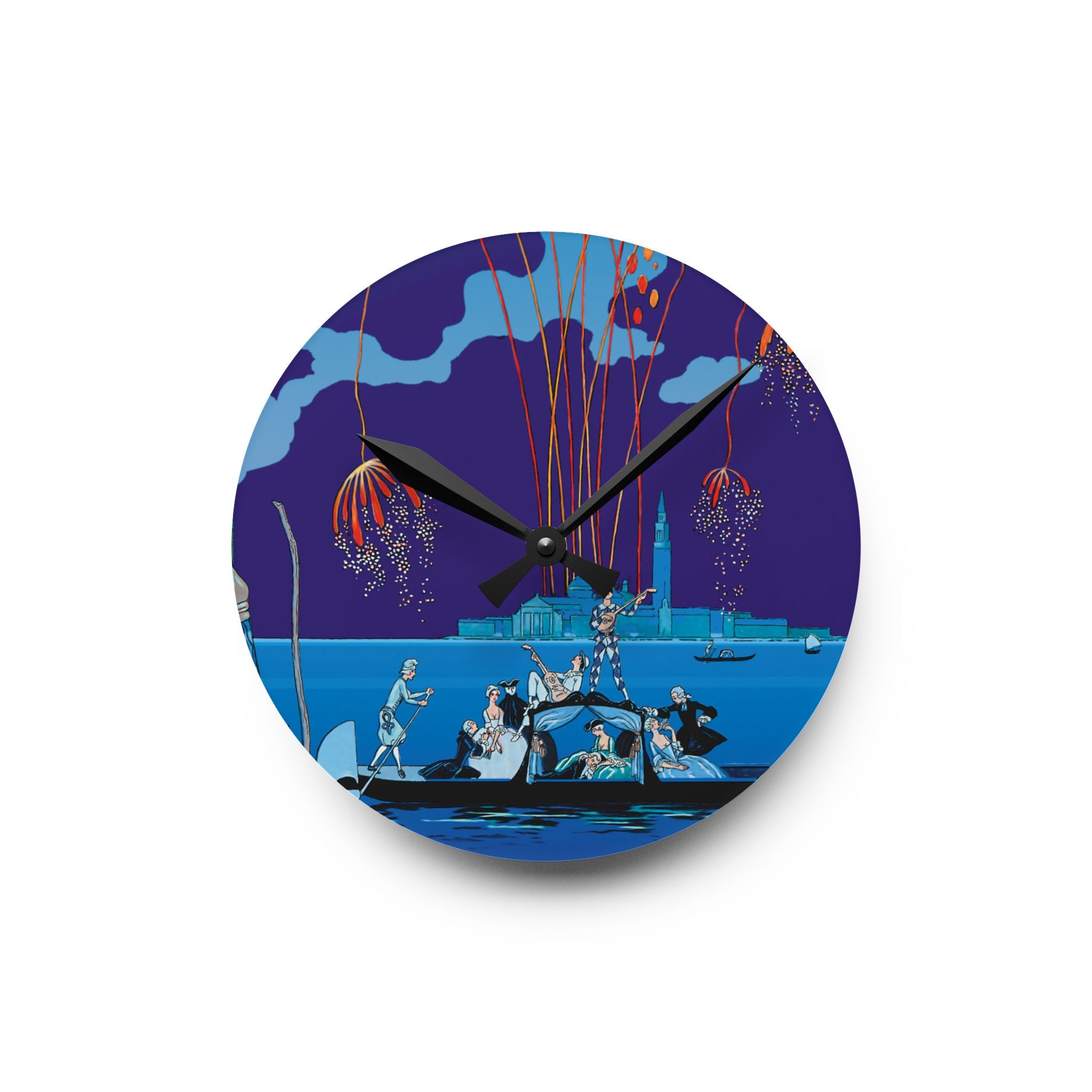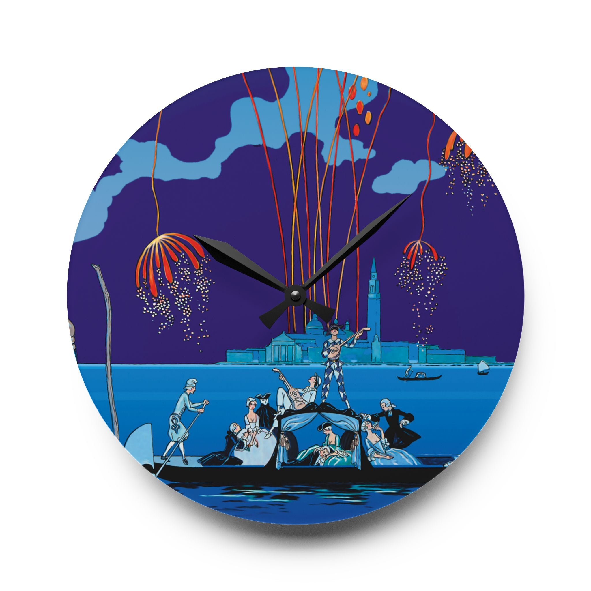 Fireworks in Venice Acrylic Wall Clock brings to life the opulence and spectacle of Art Deco celebration through the eyes of one of France’s most iconic illustrators. Made from durable acrylic that gleams like glass yet resists breakage, this elegant clock transforms a vintage masterpiece into a functional statement of art. Perfect for lovers of Art Deco, travel, and classic European elegance, it adds timeless charm to any room.