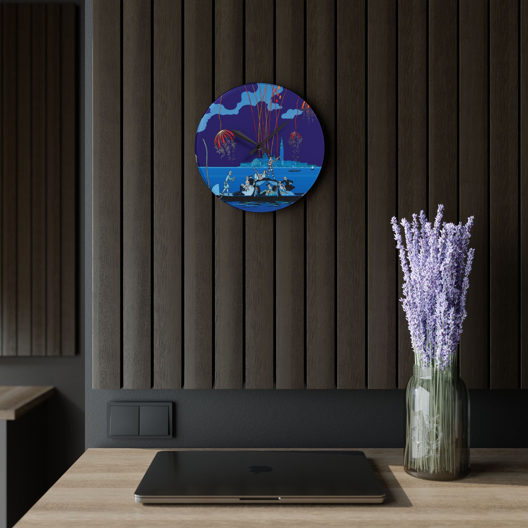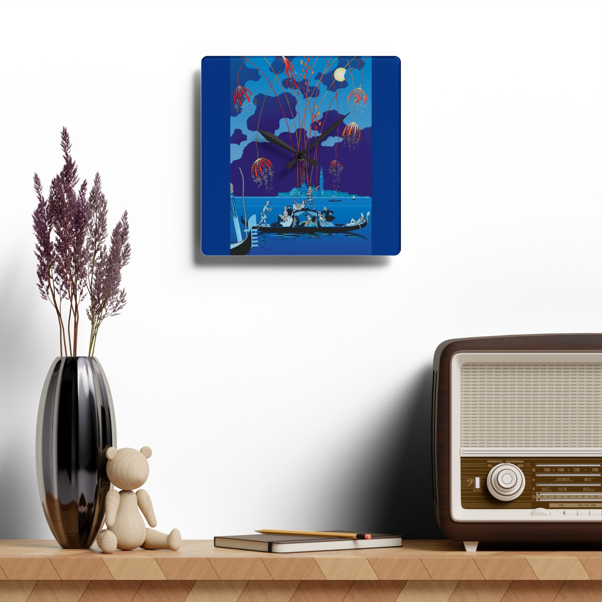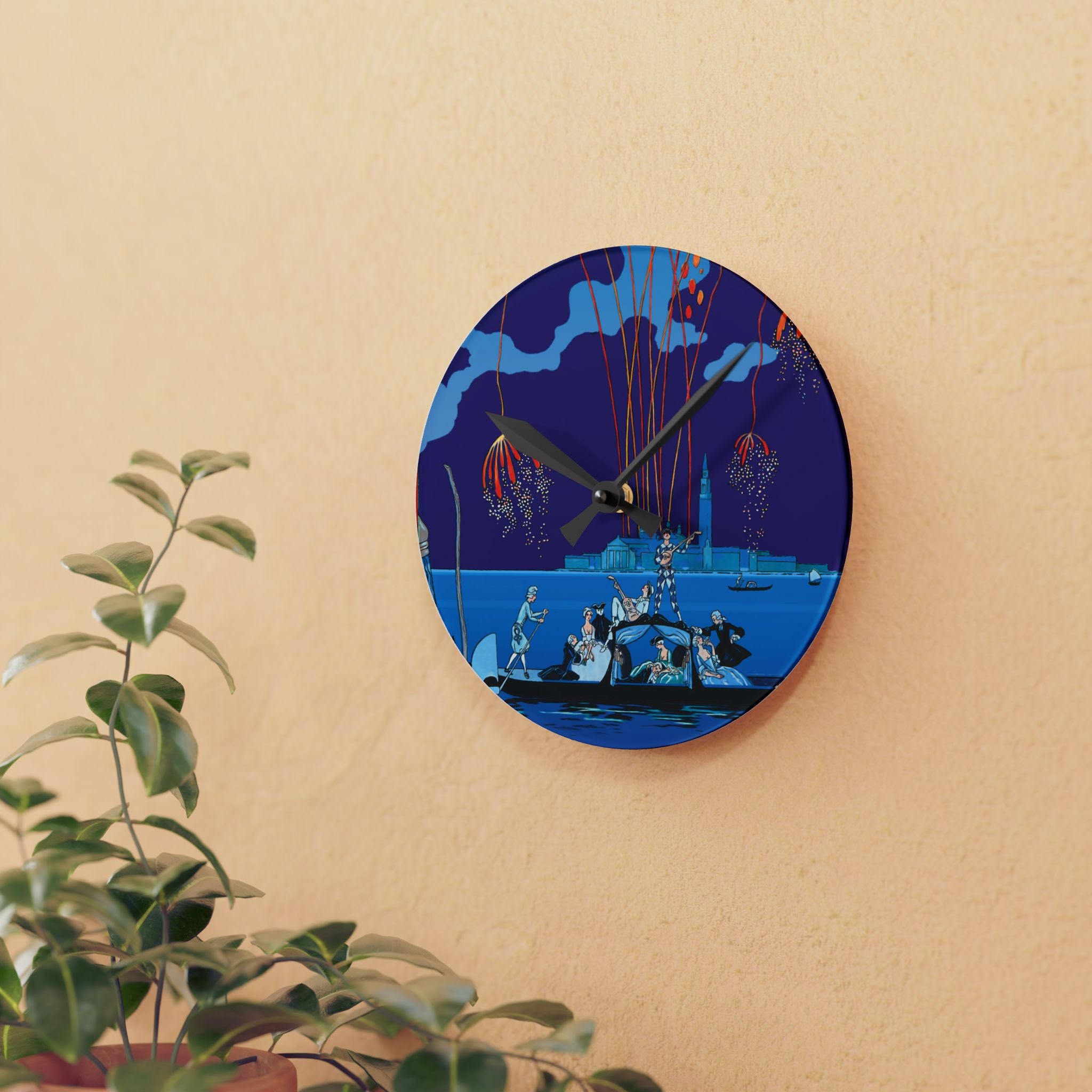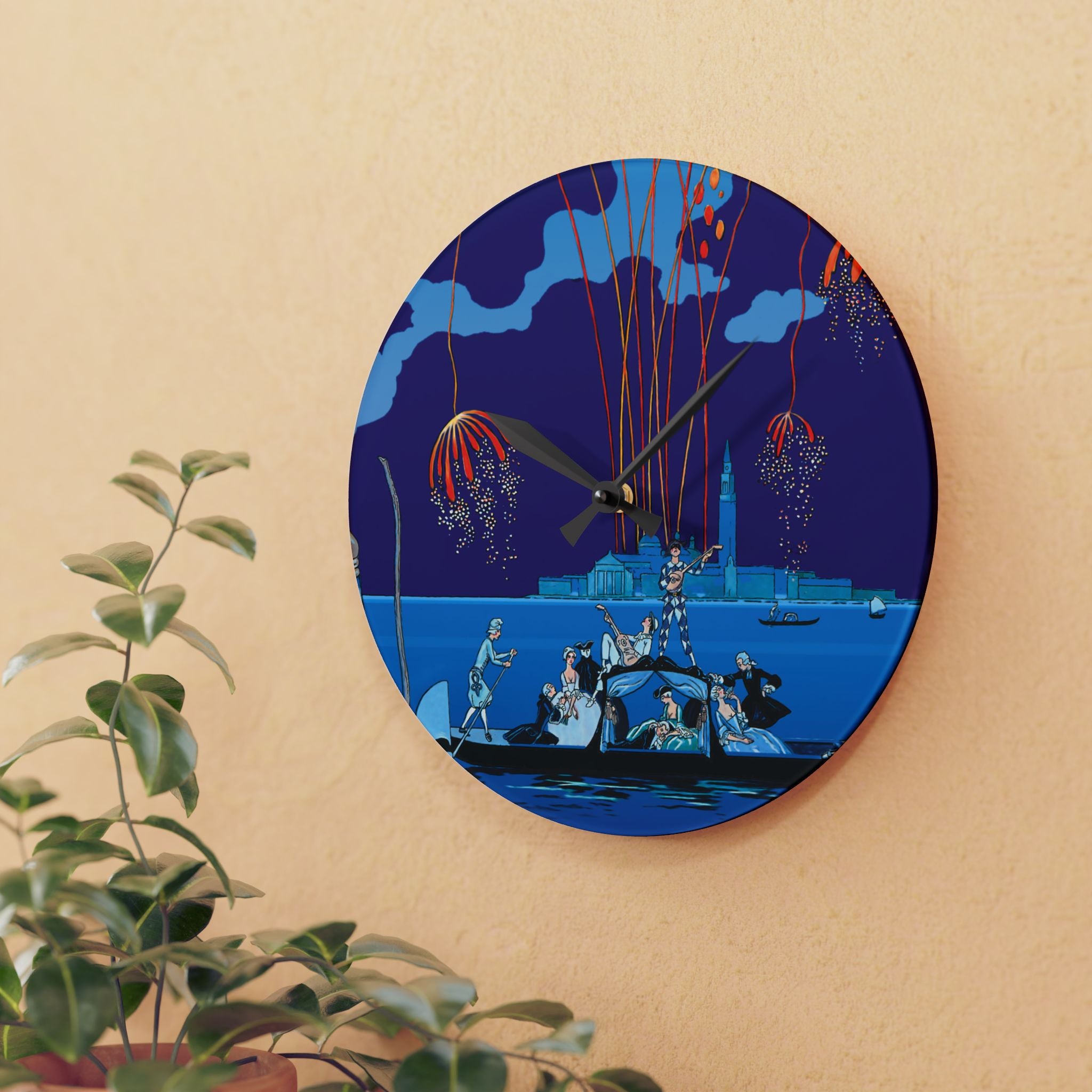 Fireworks in Venice Acrylic Wall Clock brings to life the opulence and spectacle of Art Deco celebration through the eyes of one of France’s most iconic illustrators. Made from durable acrylic that gleams like glass yet resists breakage, this elegant clock transforms a vintage masterpiece into a functional statement of art. Perfect for lovers of Art Deco, travel, and classic European elegance, it adds timeless charm to any room.