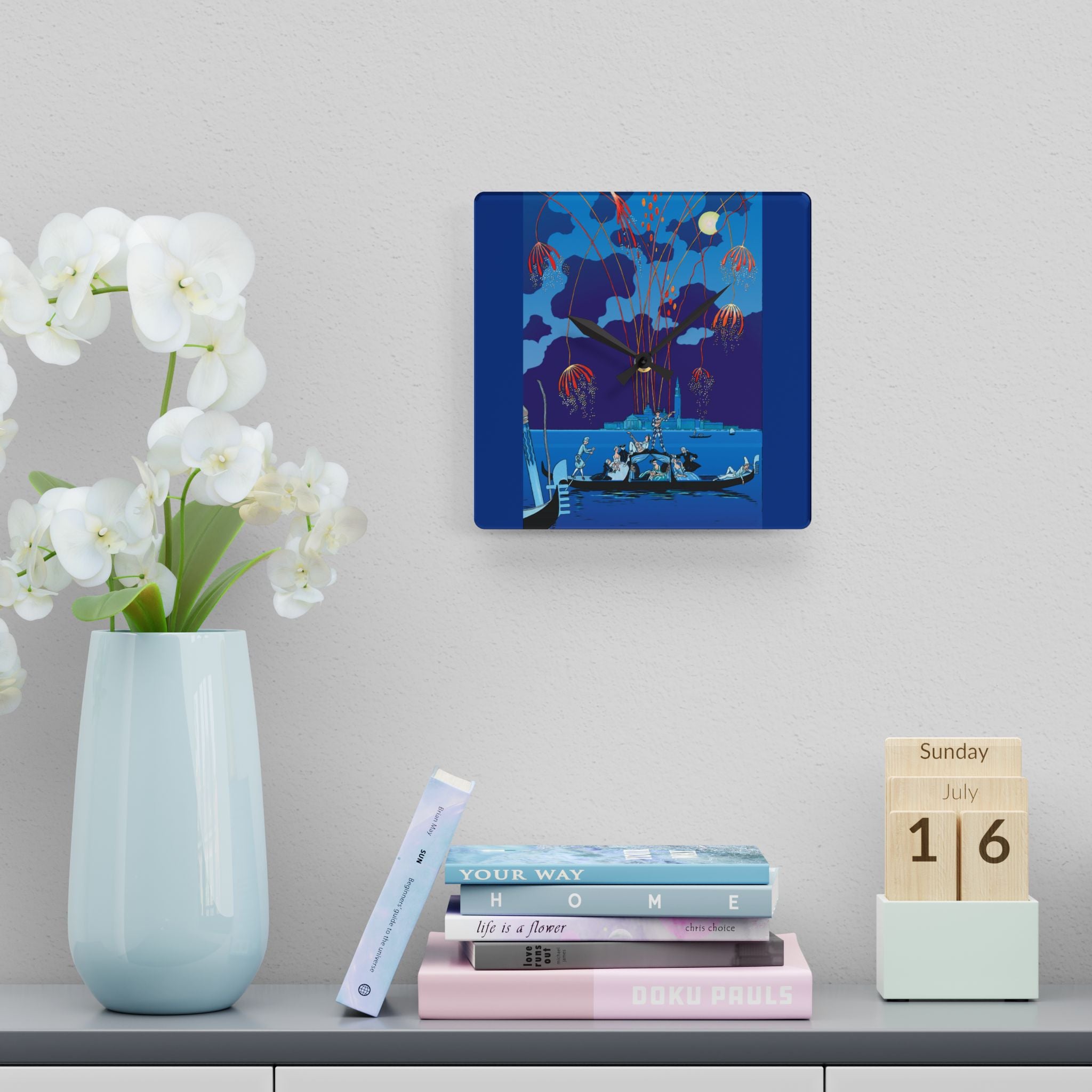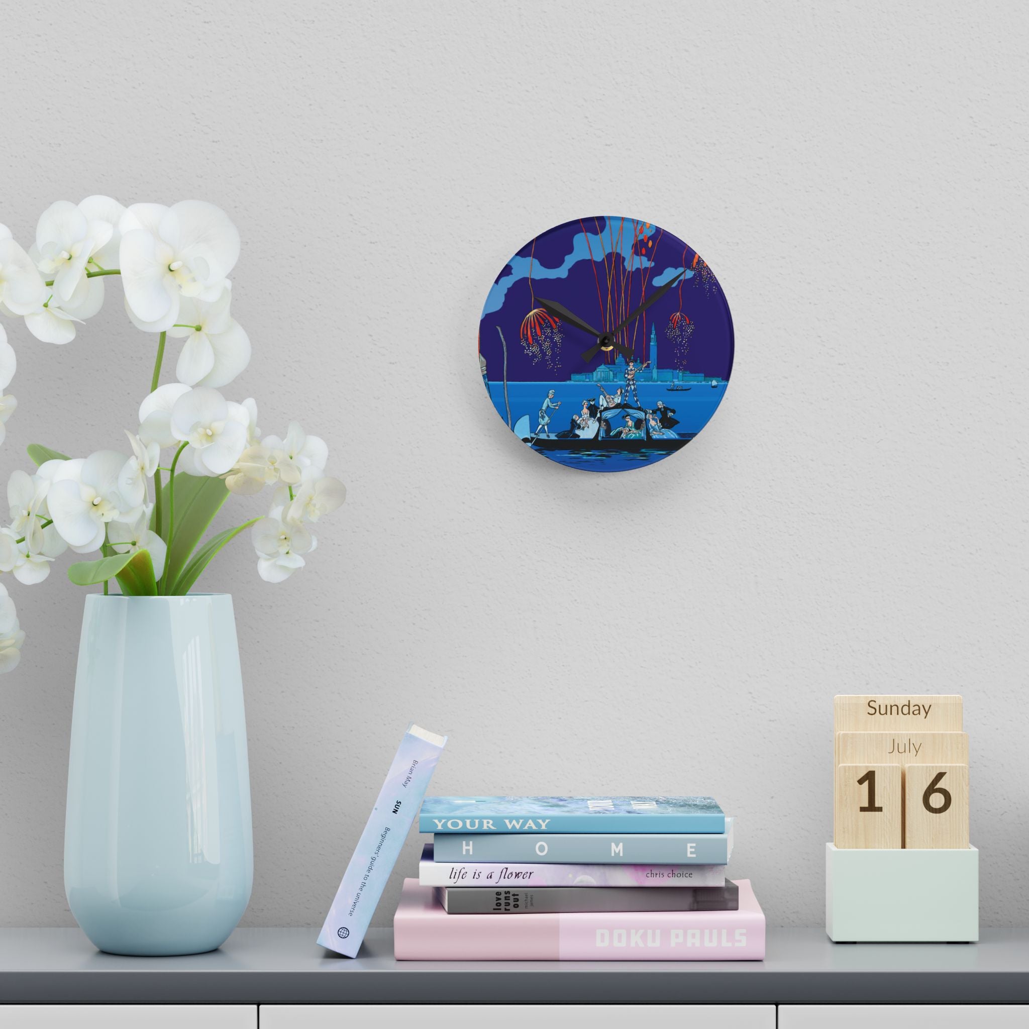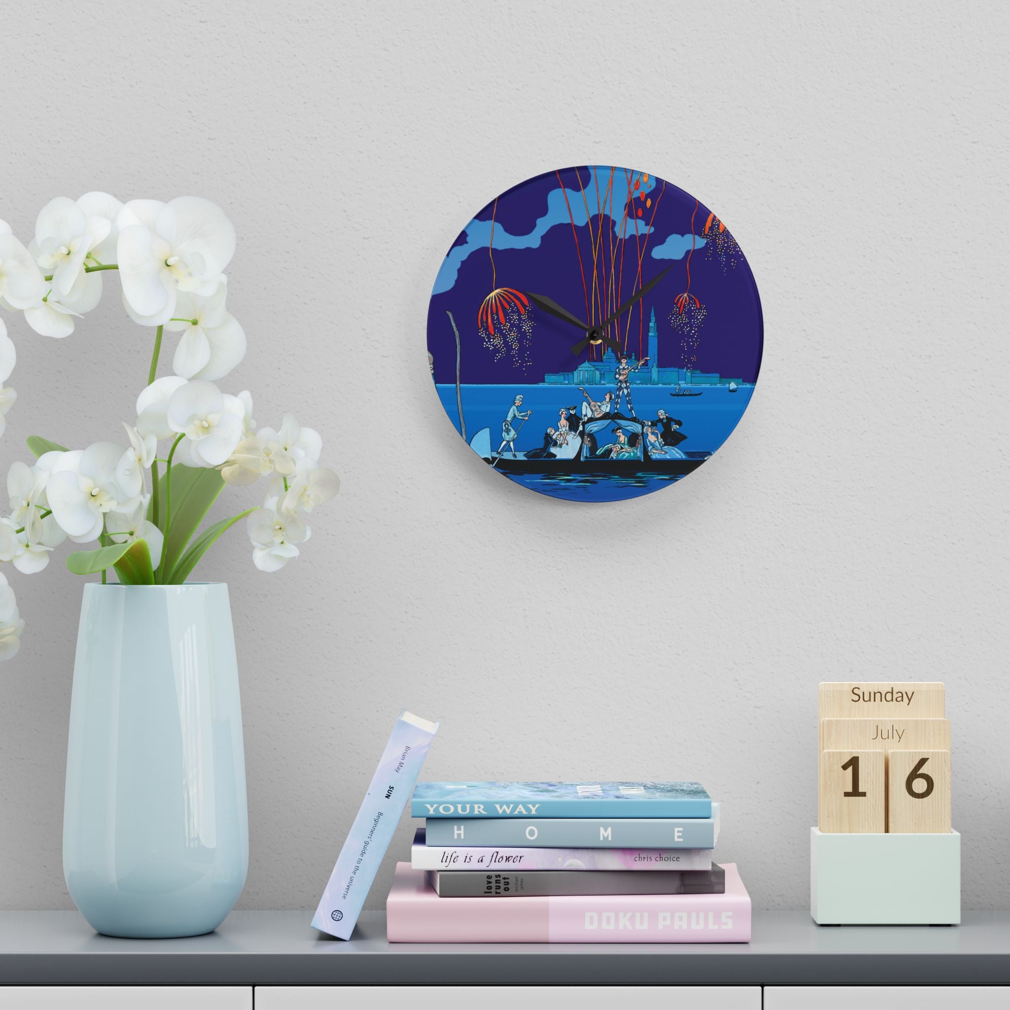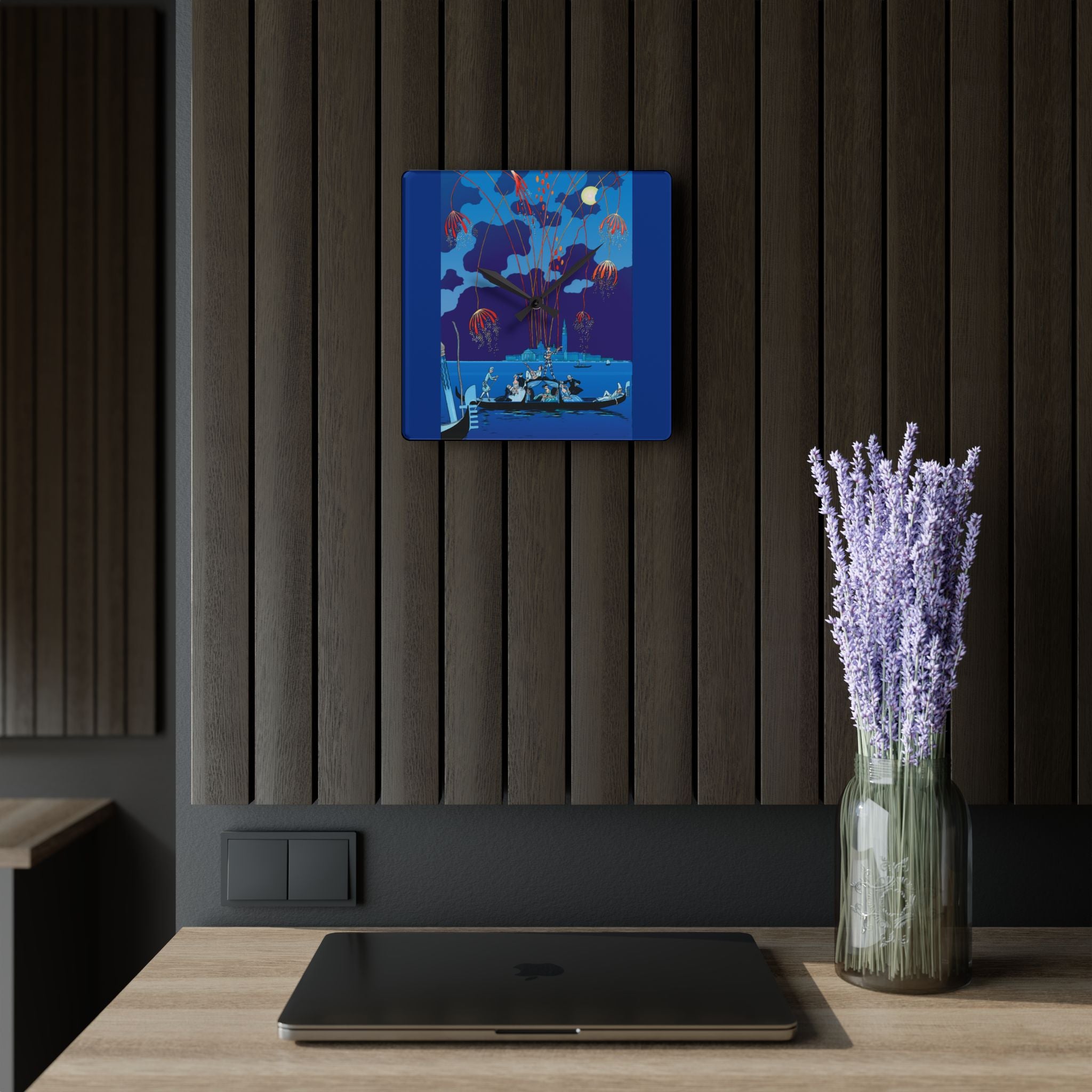 Fireworks in Venice Acrylic Wall Clock brings to life the opulence and spectacle of Art Deco celebration through the eyes of one of France’s most iconic illustrators. Made from durable acrylic that gleams like glass yet resists breakage, this elegant clock transforms a vintage masterpiece into a functional statement of art. Perfect for lovers of Art Deco, travel, and classic European elegance, it adds timeless charm to any room.