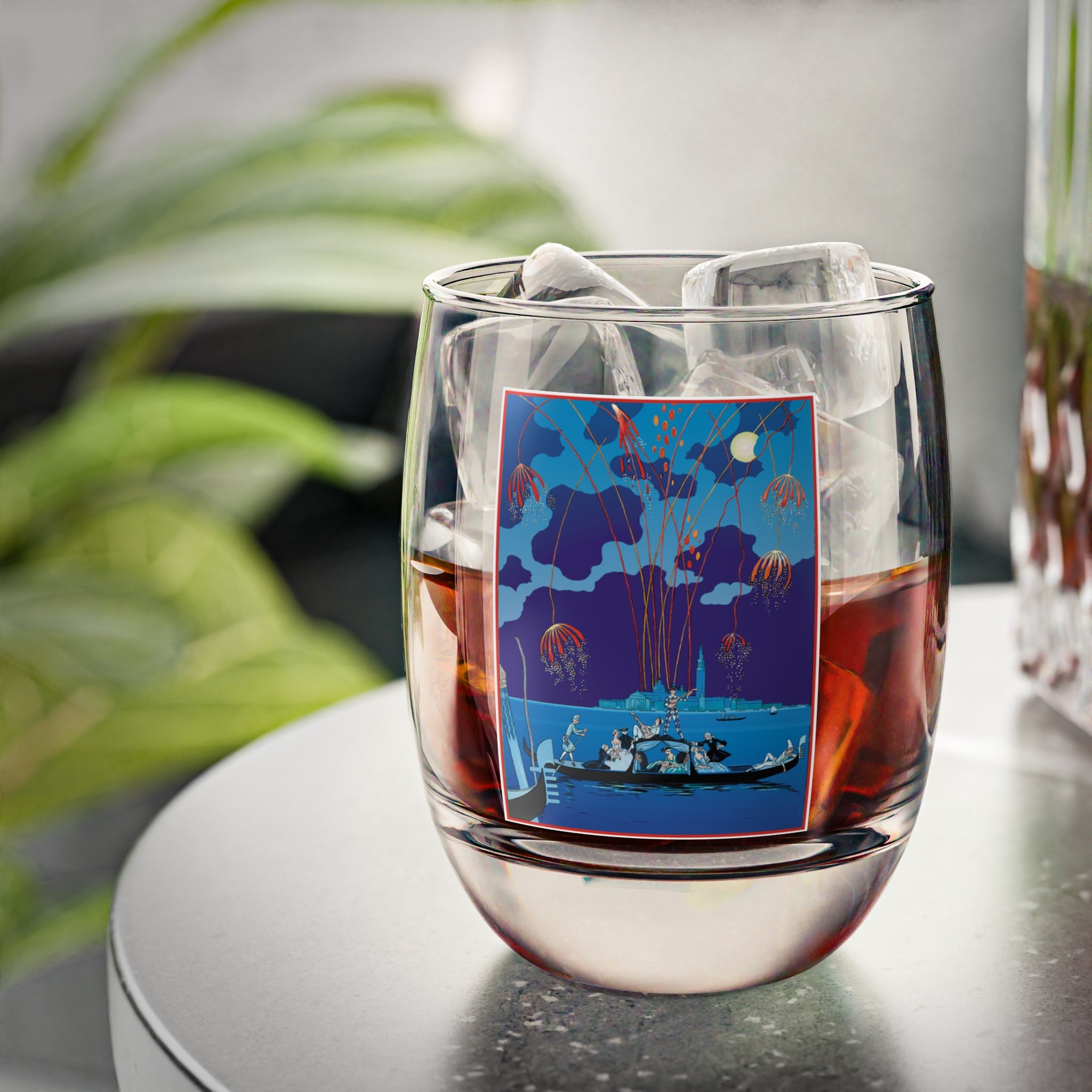 Artwork designed and digitally remastered by Sarasvati Designs. The original artwork, “Fireworks in Venice,” is a captivating artwork created by George Barbier, a prominent French Art Deco artist. The painting depicts a mesmerizing scene of celebration and enchantment set against the romantic backdrop of Venice.