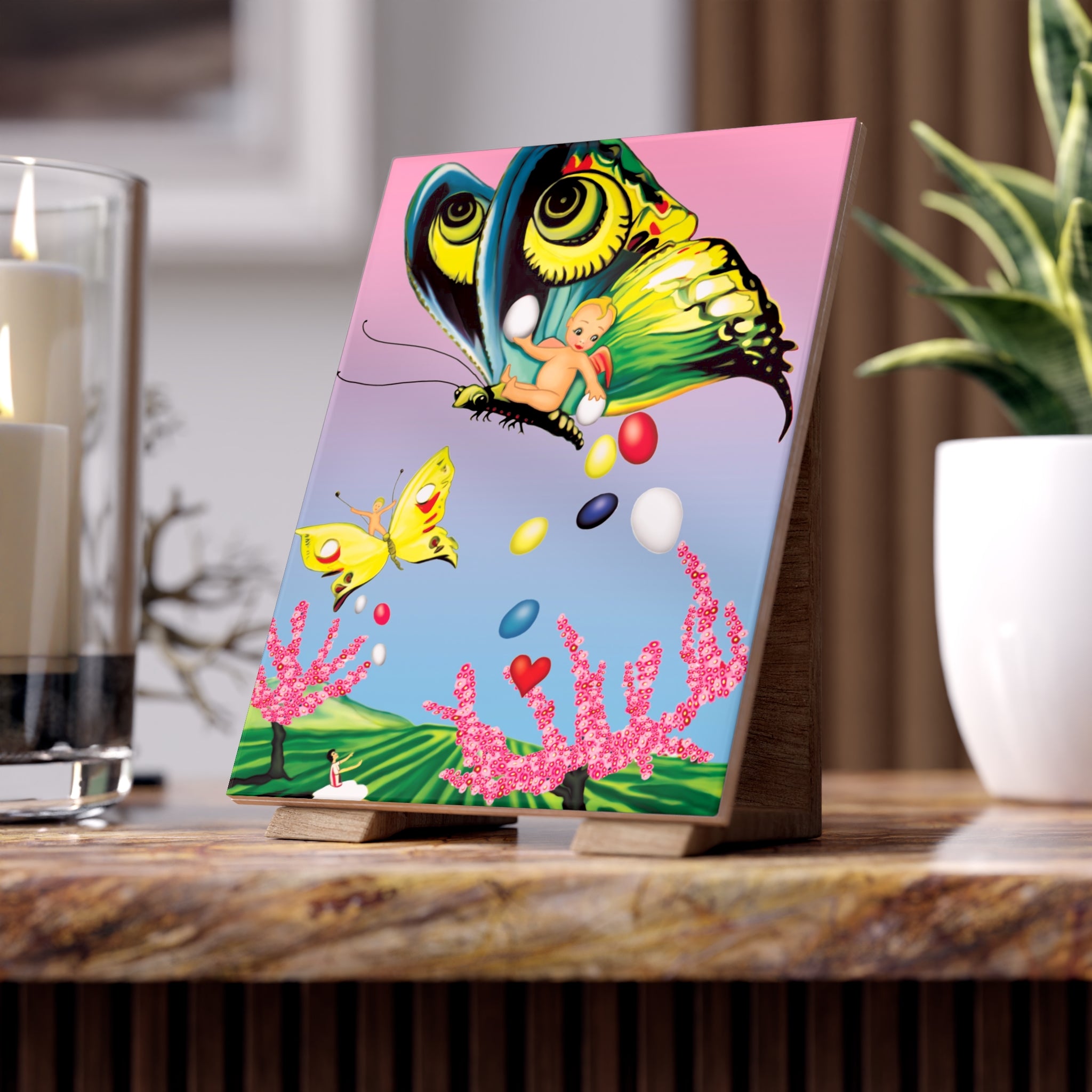 Flight Of Easter Delight Ceramic Tile brings a joyful springtime scene to your decor in a sleek, display-ready format. This ceramic photo tile is available in your choice of glossy or matte finish, making it perfect for shelves, desks, mantels, or seasonal vignettes wherever you want a pop of color and whimsy.