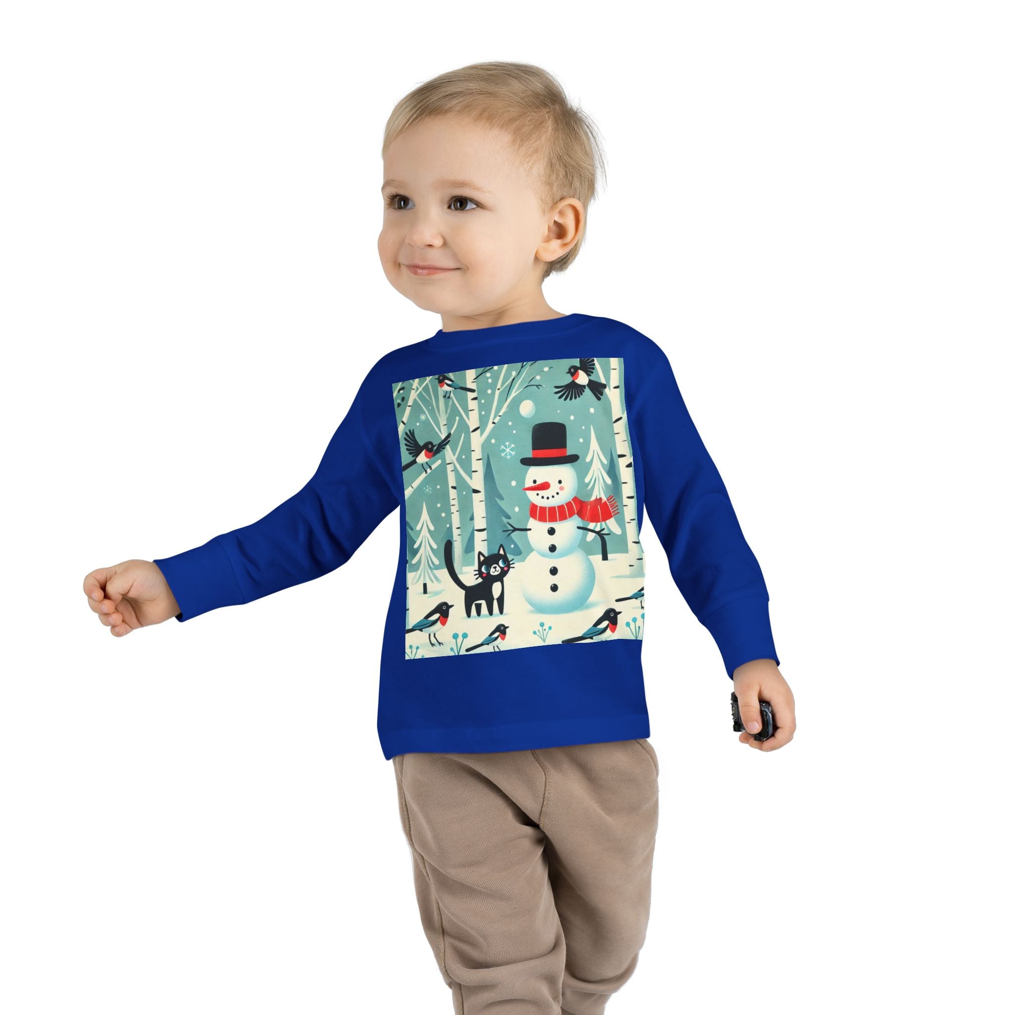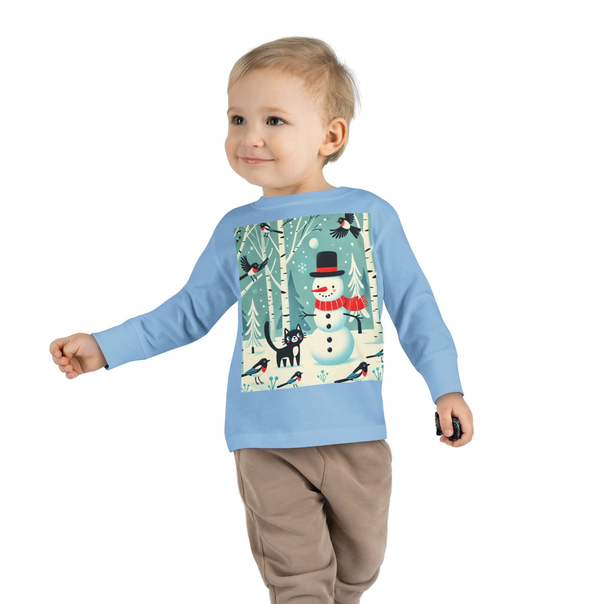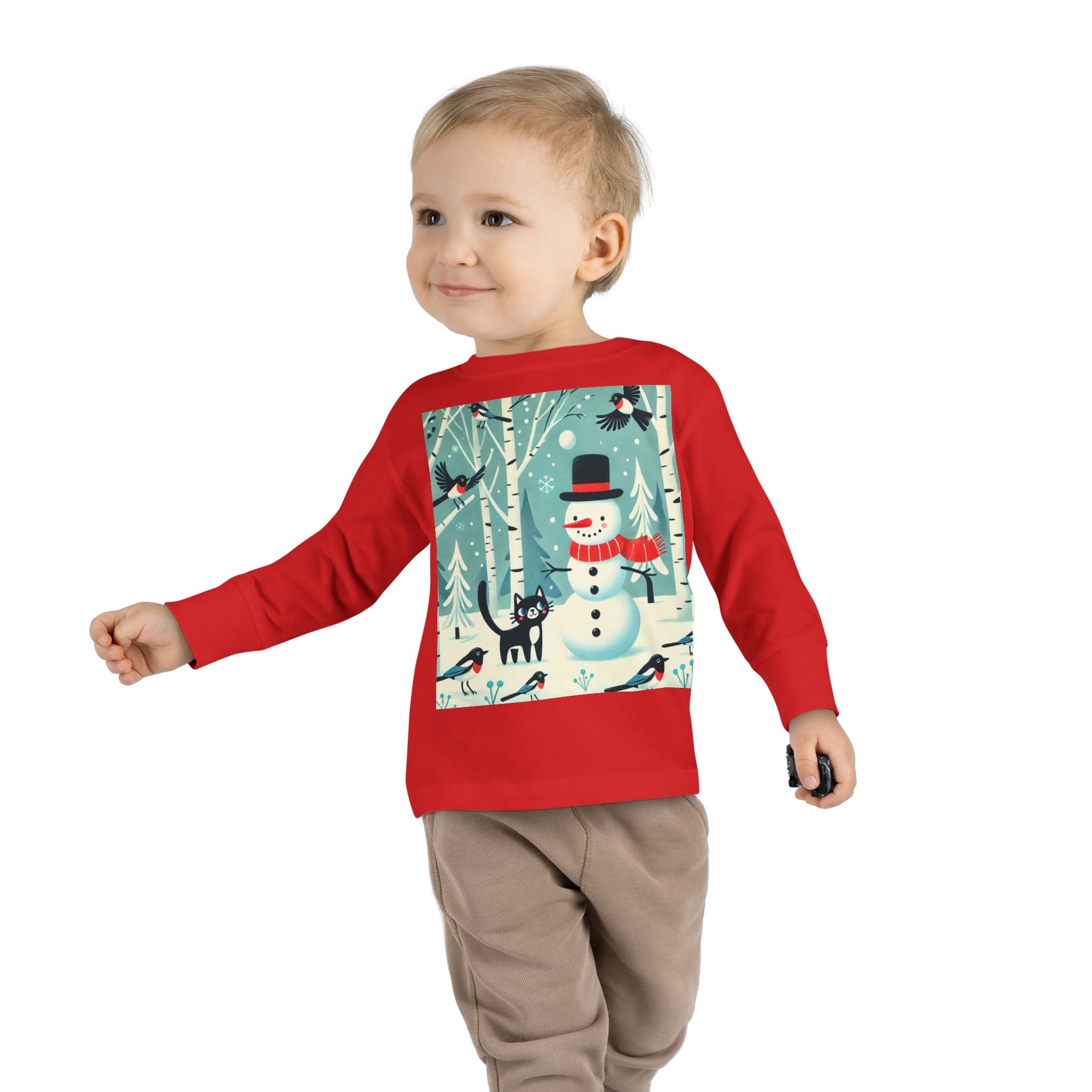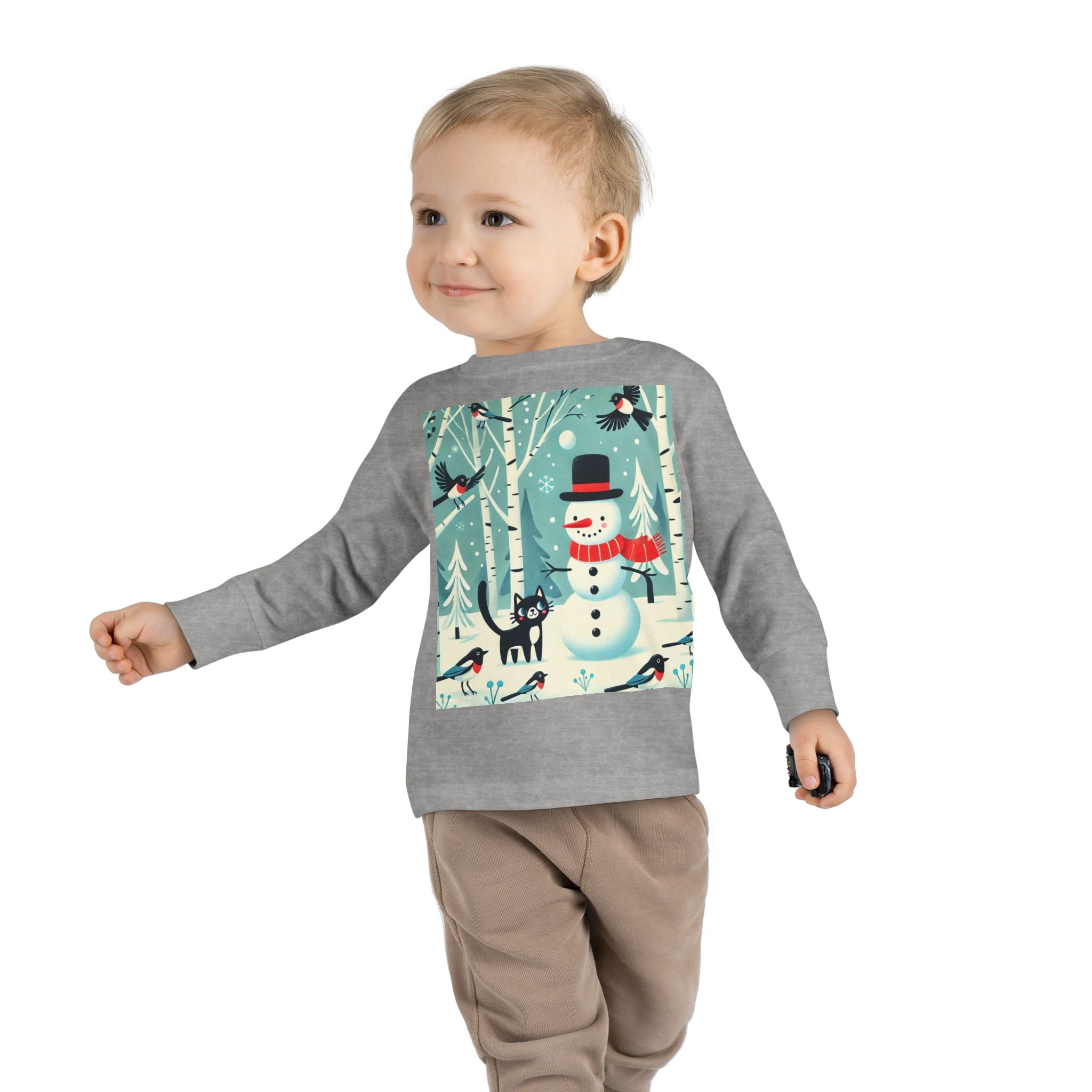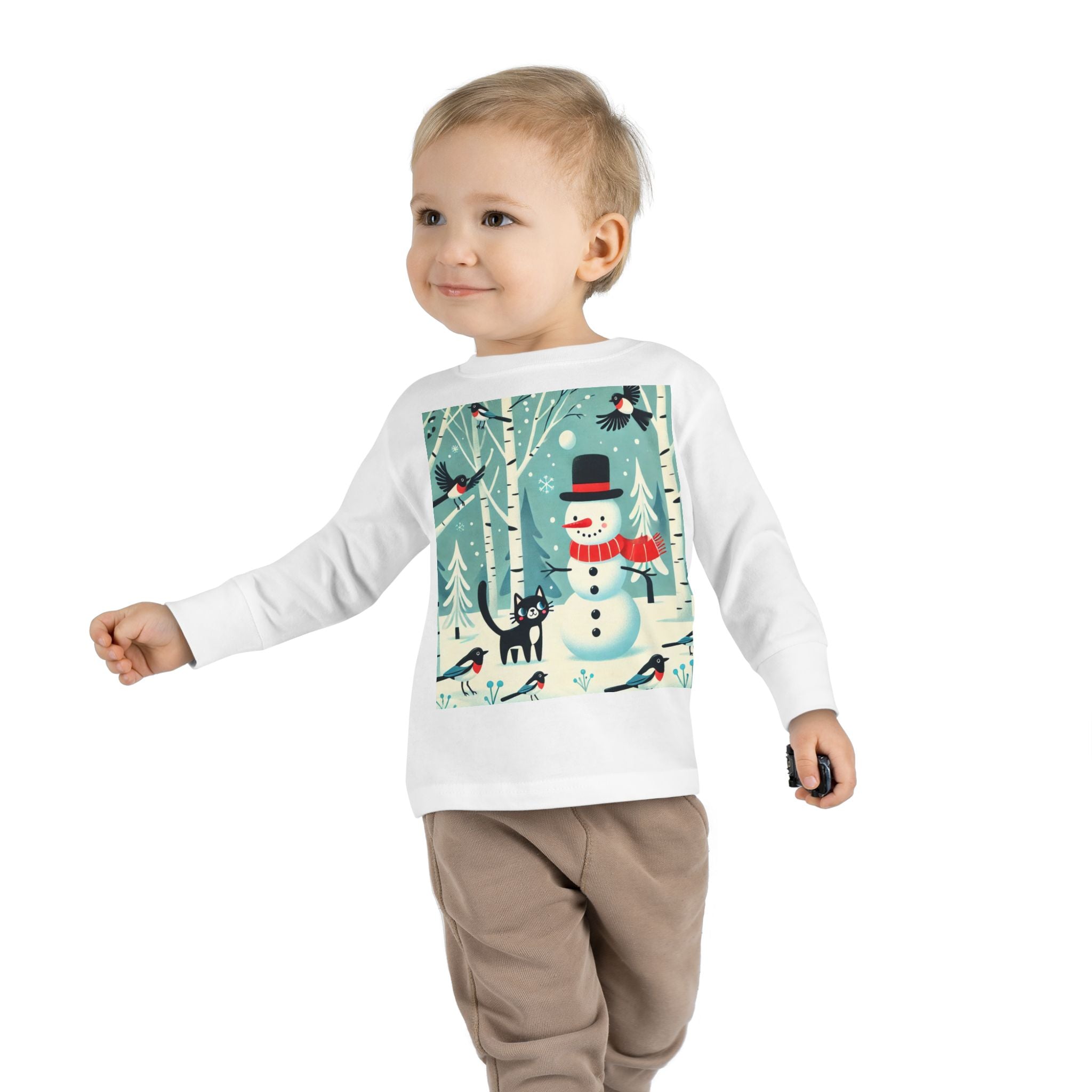 The Frosty Forest Friends toddler long sleeve tee is designed for comfort, durability, and play. Crafted from 100% combed ringspun cotton fine jersey, it’s soft against the skin while standing up to everyday wear. A topstitched ribbed collar and shoulder-to-shoulder back-neck taping add strength and fit, while the EasyTear™ label makes it gentle for little ones with sensitive skin.