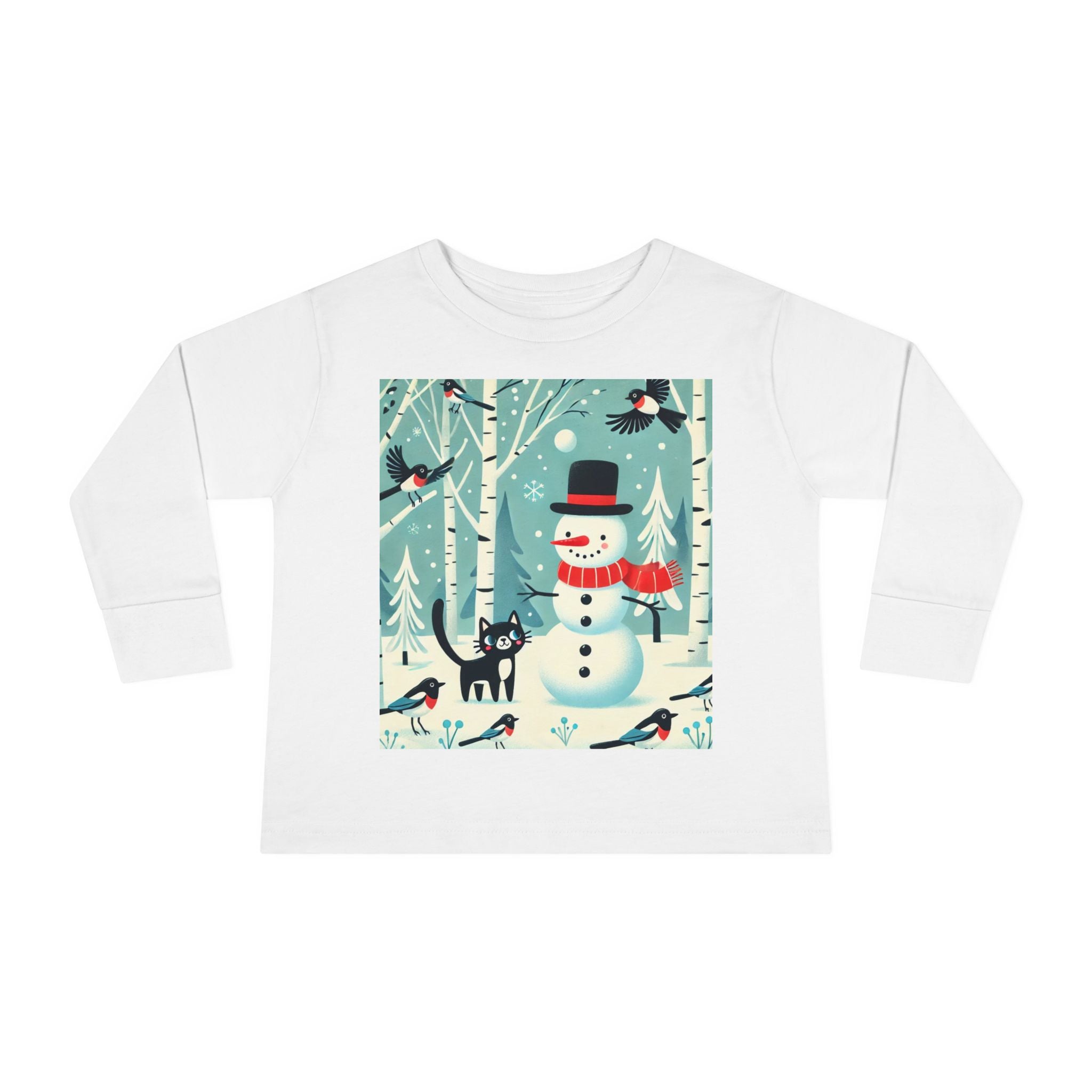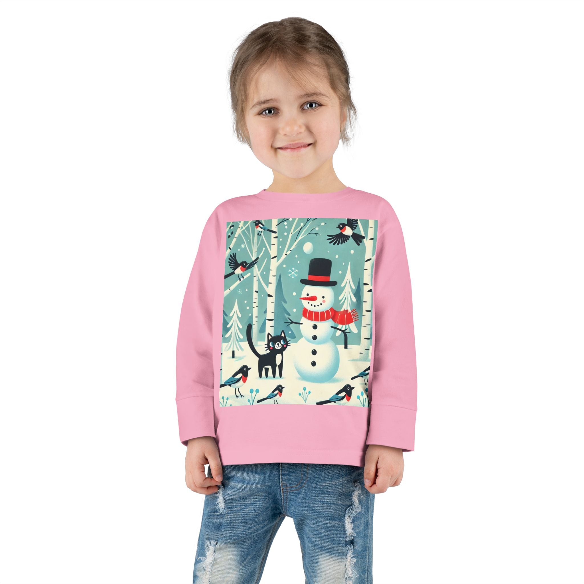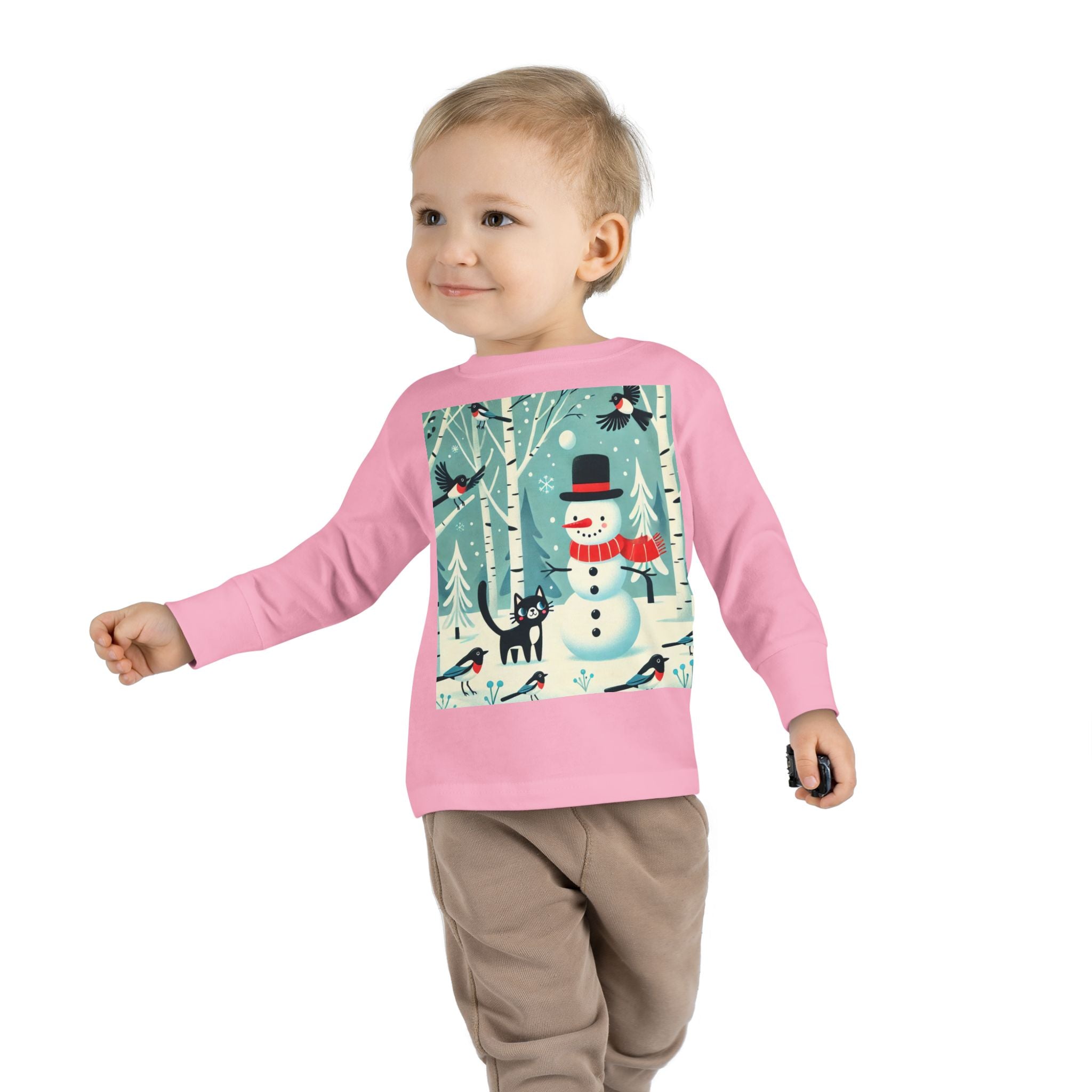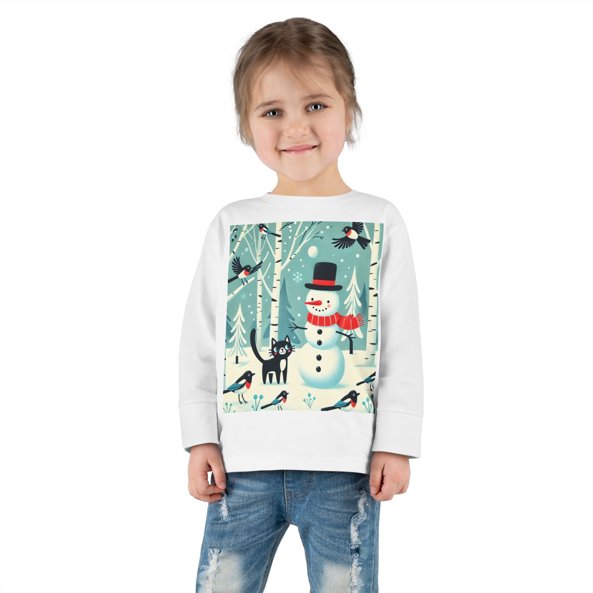 The Frosty Forest Friends toddler long sleeve tee is designed for comfort, durability, and play. Crafted from 100% combed ringspun cotton fine jersey, it’s soft against the skin while standing up to everyday wear. A topstitched ribbed collar and shoulder-to-shoulder back-neck taping add strength and fit, while the EasyTear™ label makes it gentle for little ones with sensitive skin.