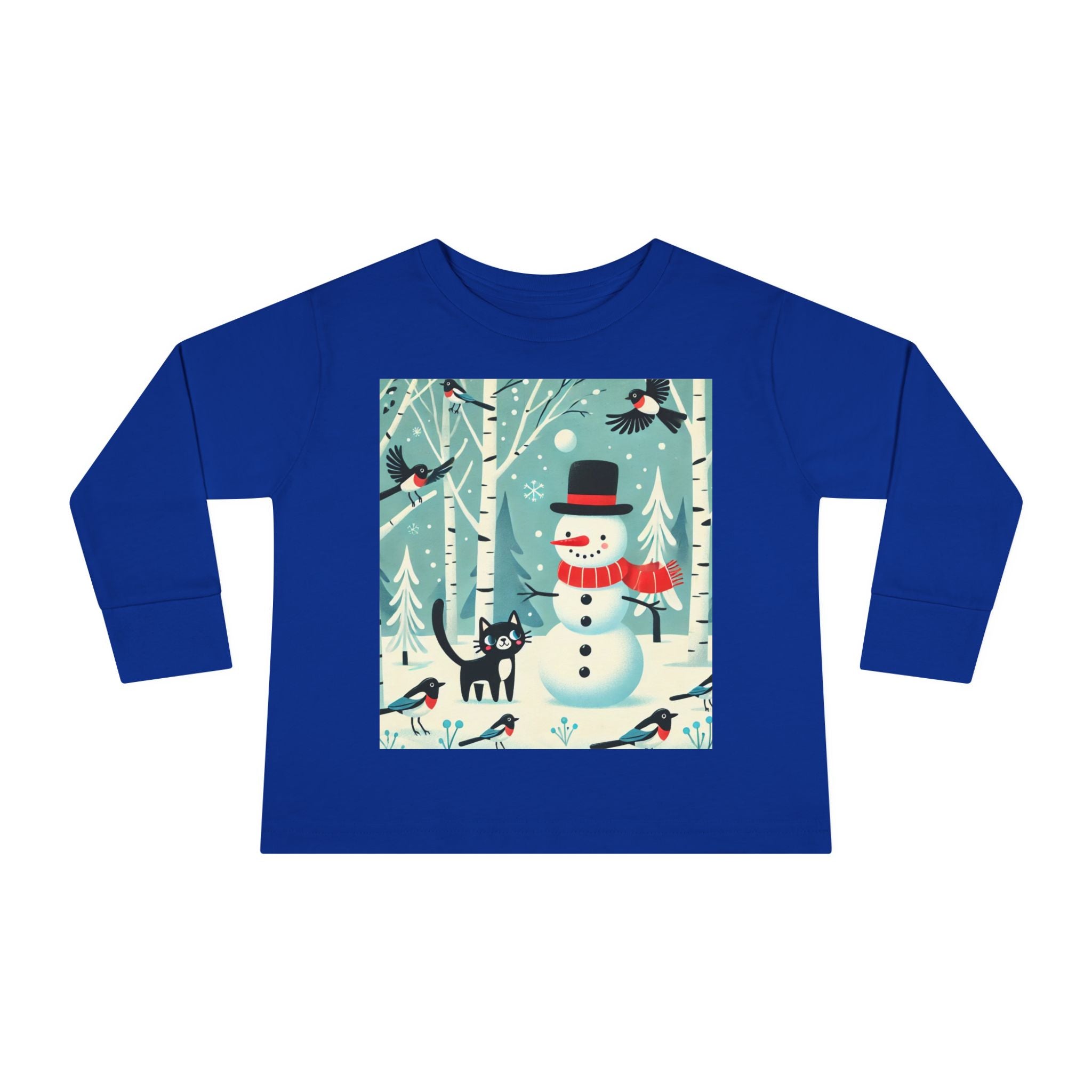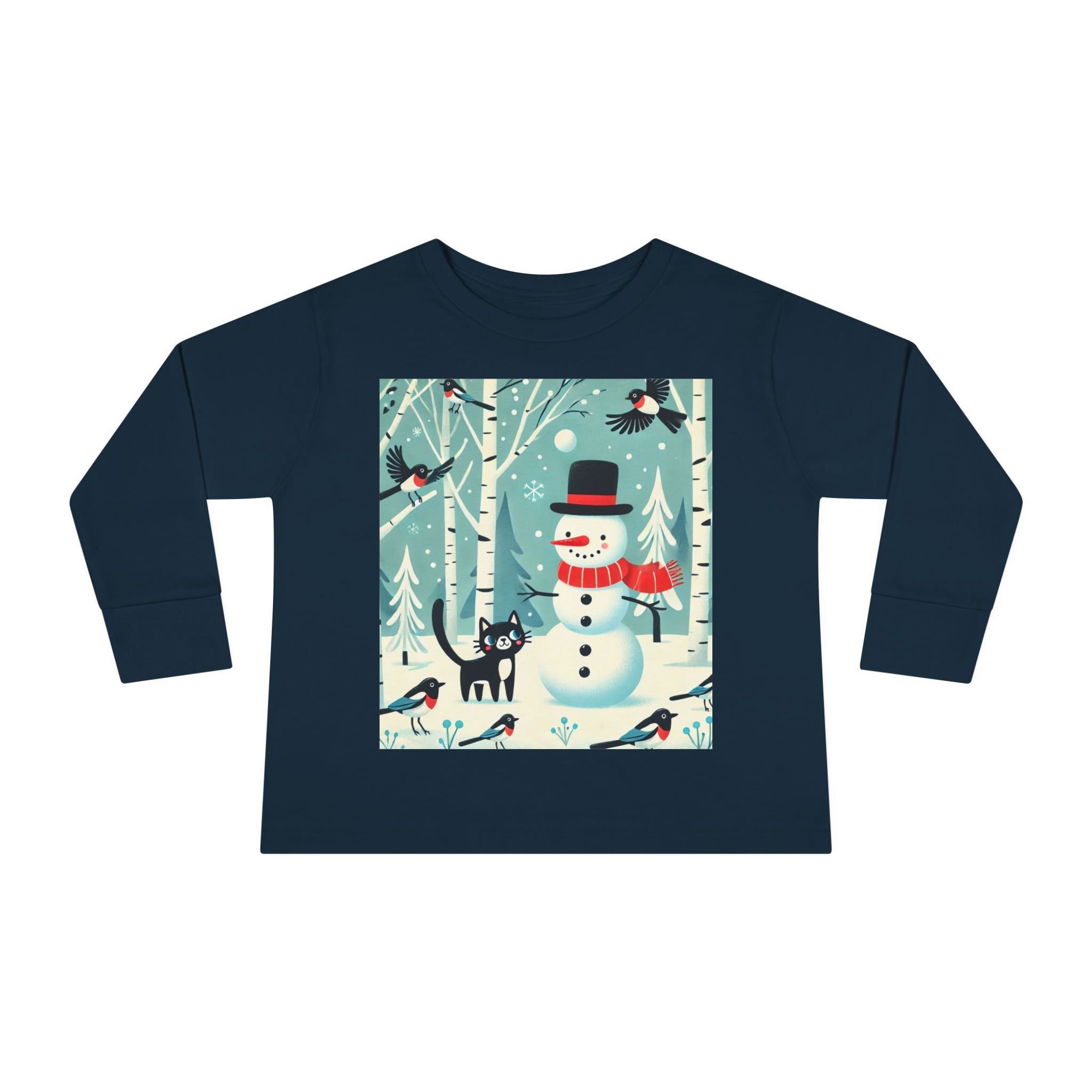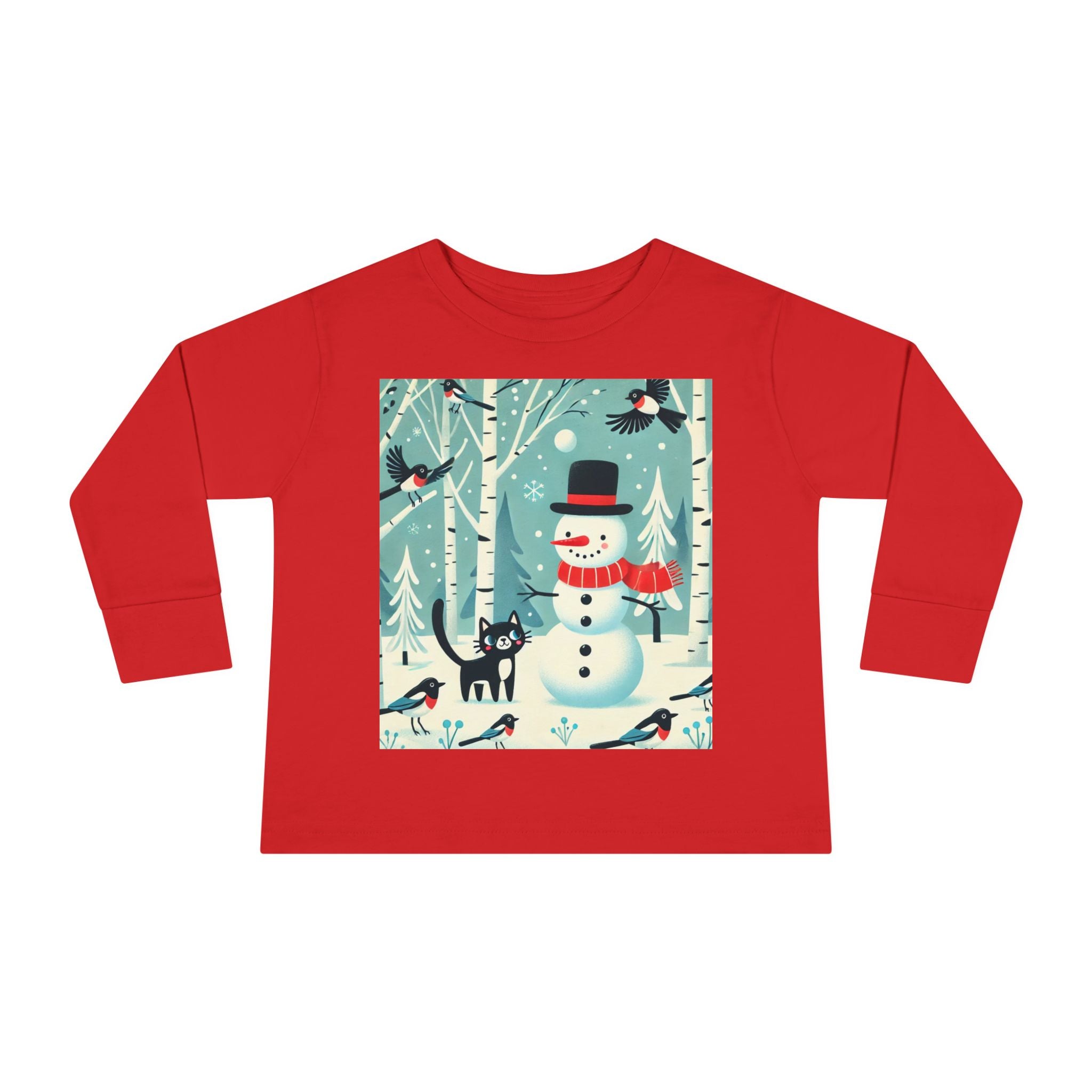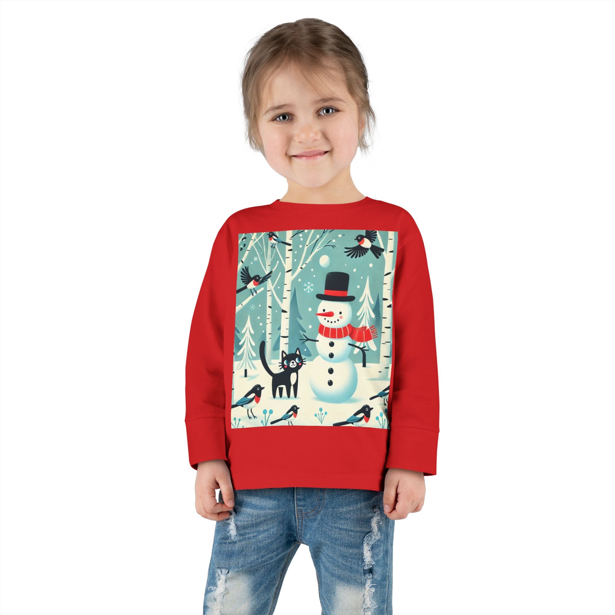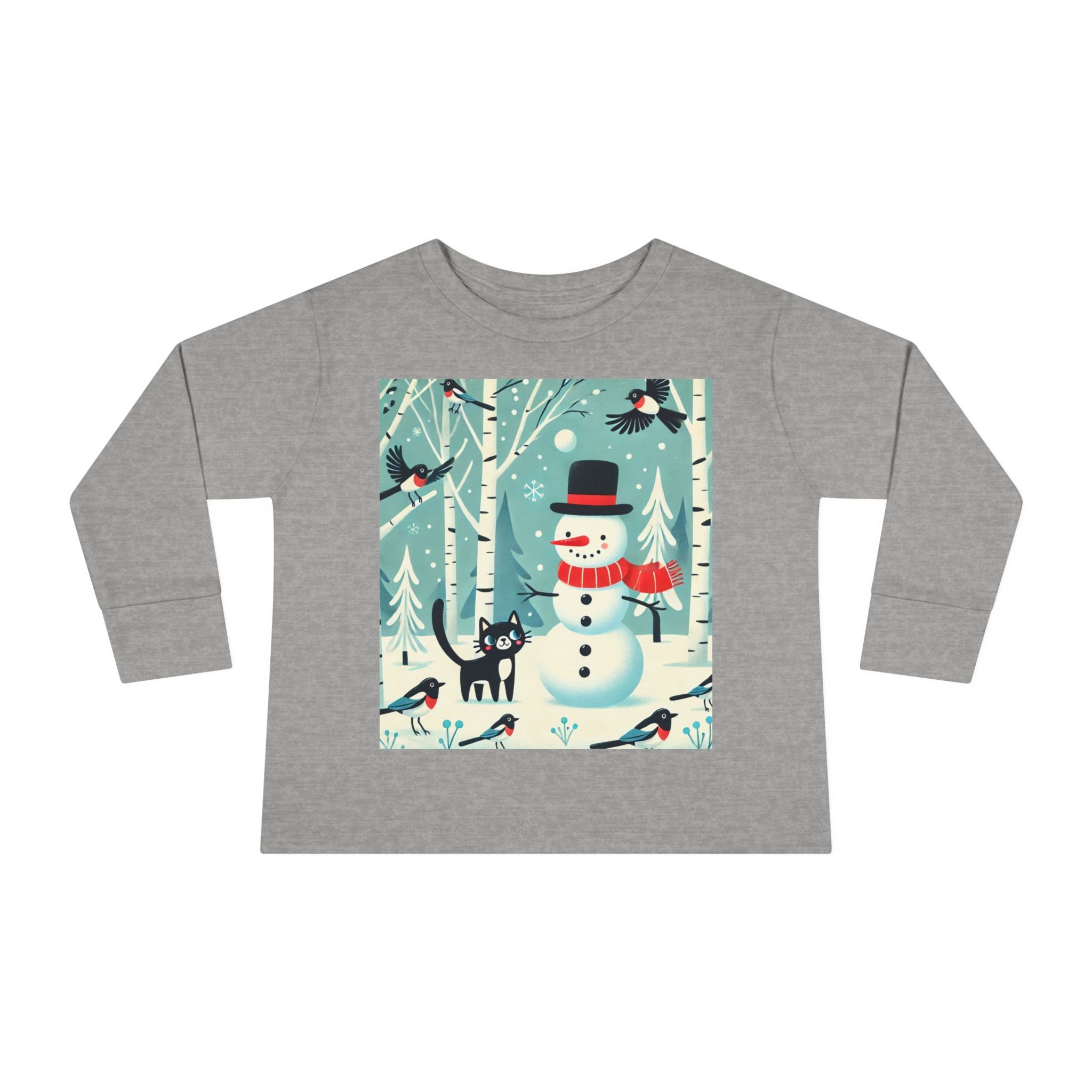 The Frosty Forest Friends toddler long sleeve tee is designed for comfort, durability, and play. Crafted from 100% combed ringspun cotton fine jersey, it’s soft against the skin while standing up to everyday wear. A topstitched ribbed collar and shoulder-to-shoulder back-neck taping add strength and fit, while the EasyTear™ label makes it gentle for little ones with sensitive skin.