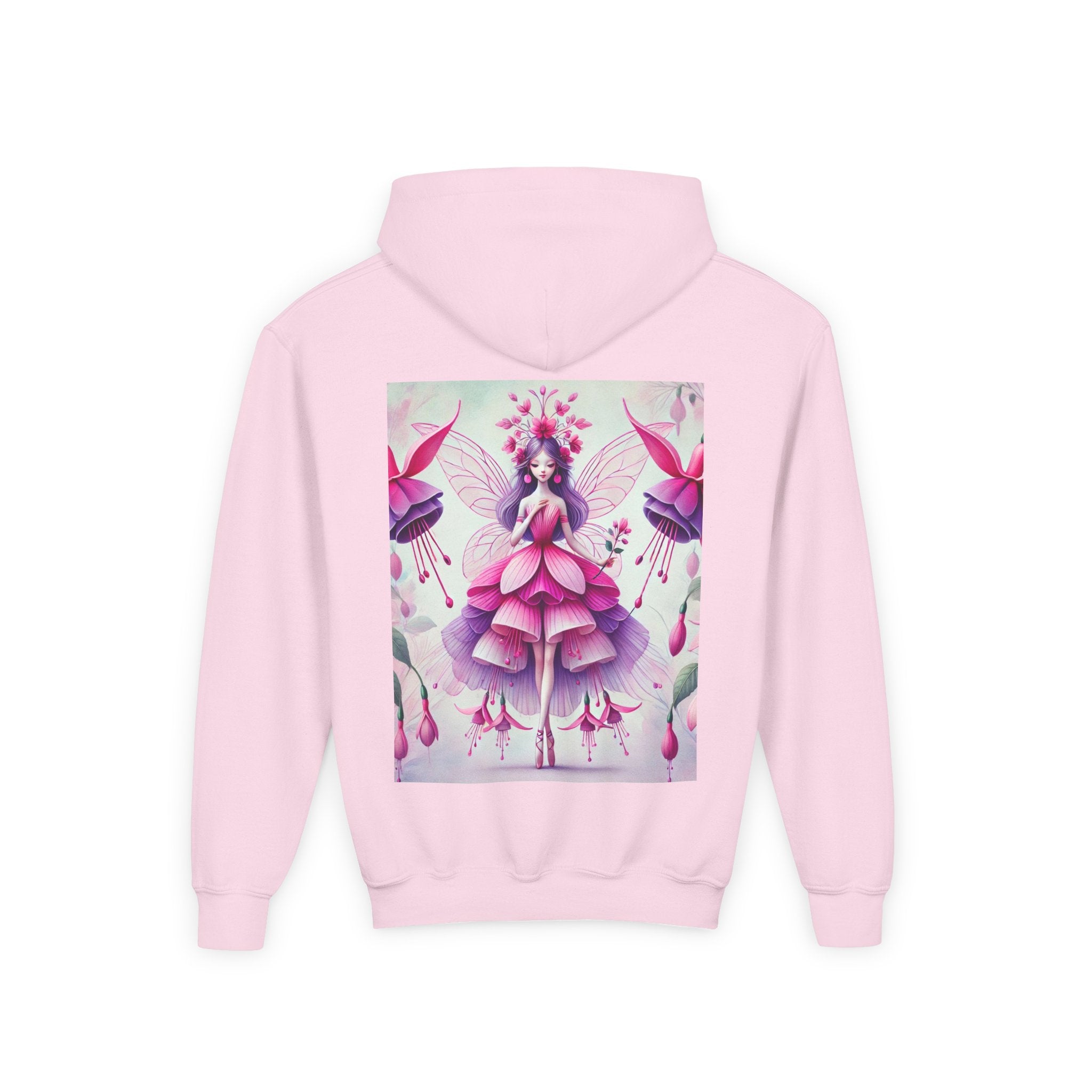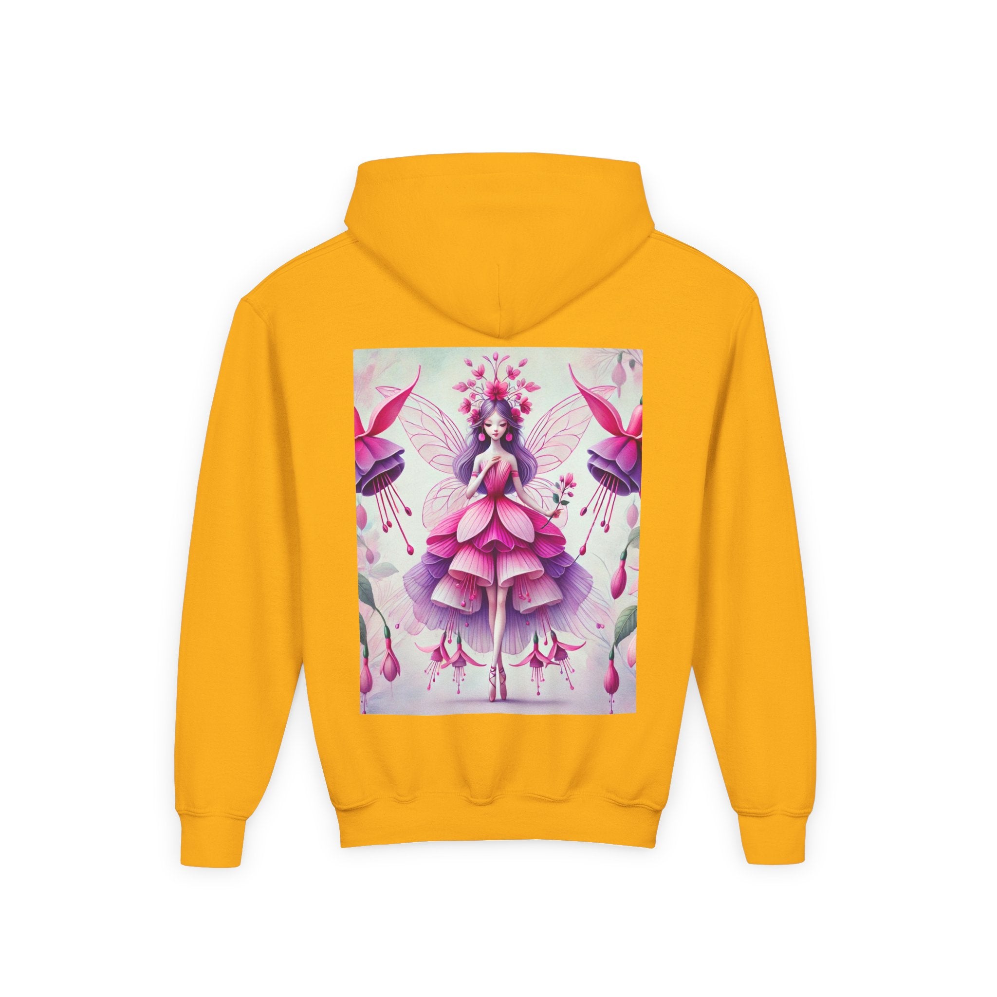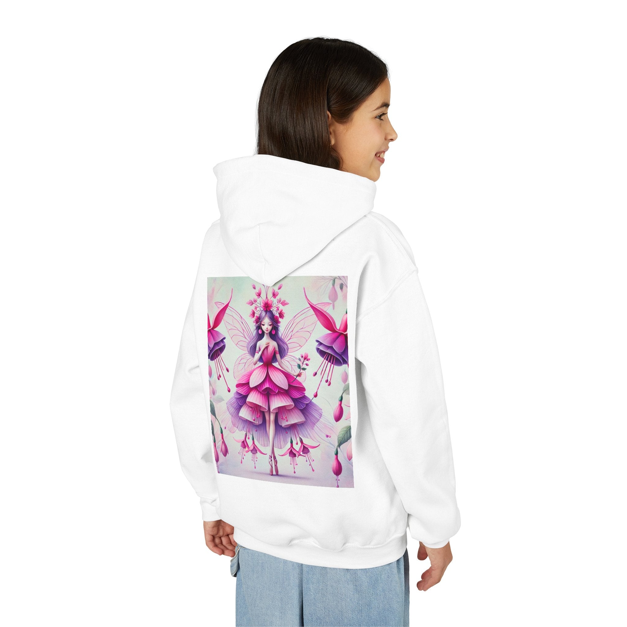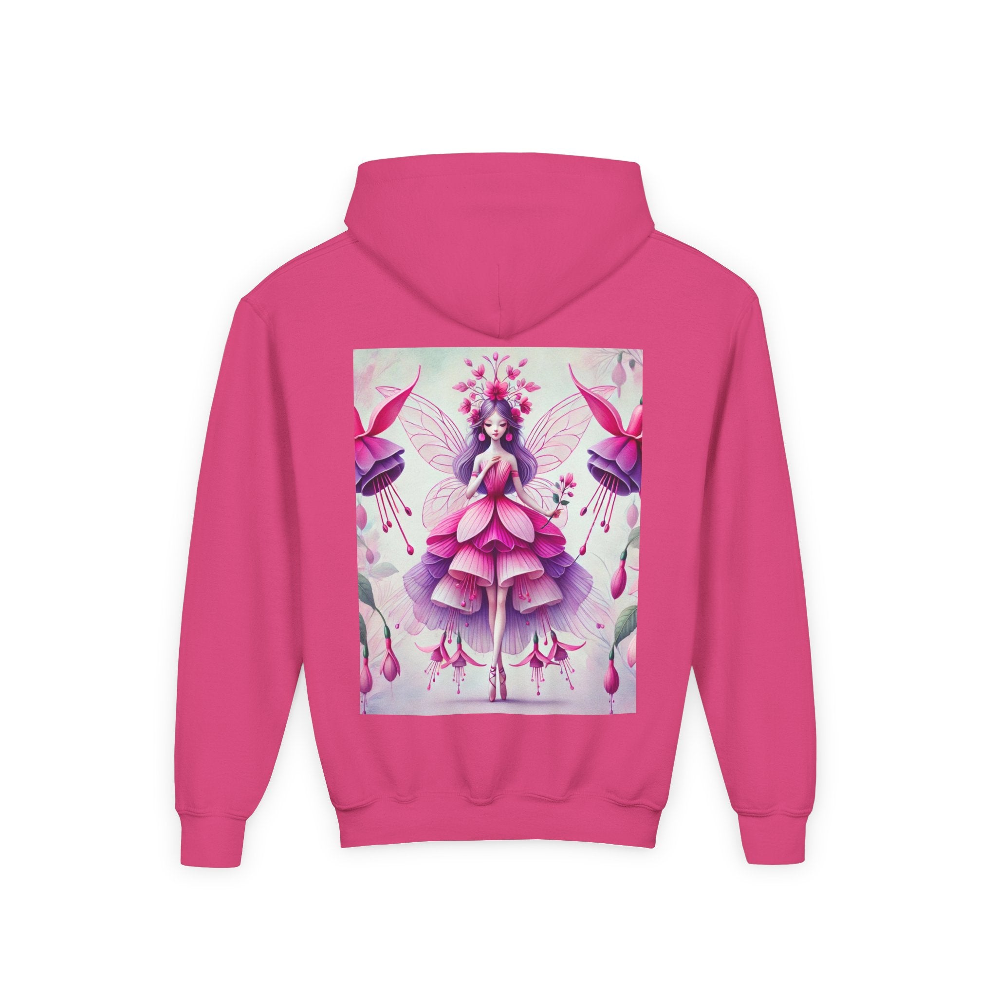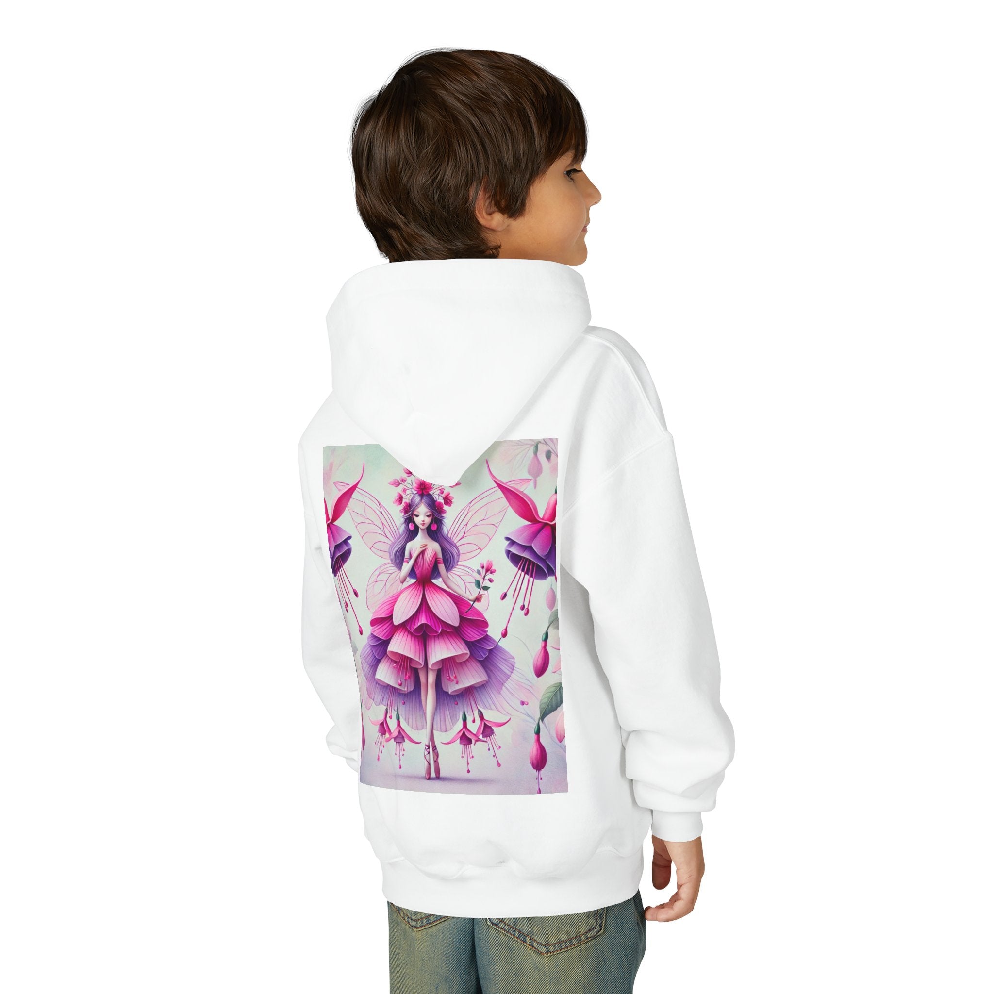 Fuchsia Fairy Youth Heavy Blend Hooded Sweatshirt combines cozy comfort with radiant fairy-tale artistry, perfect for young dreamers who love color and imagination. Made from ultra-soft, preshrunk fleece, this hoodie feels wonderful against the skin and resists lint buildup. The balanced 50/50 cotton-polyester blend offers durability and softness, while the kangaroo pocket and twill-reinforced neck make it ideal for everyday wear. Please note: due to fabric properties, the White color variant may appear slightly off-white.