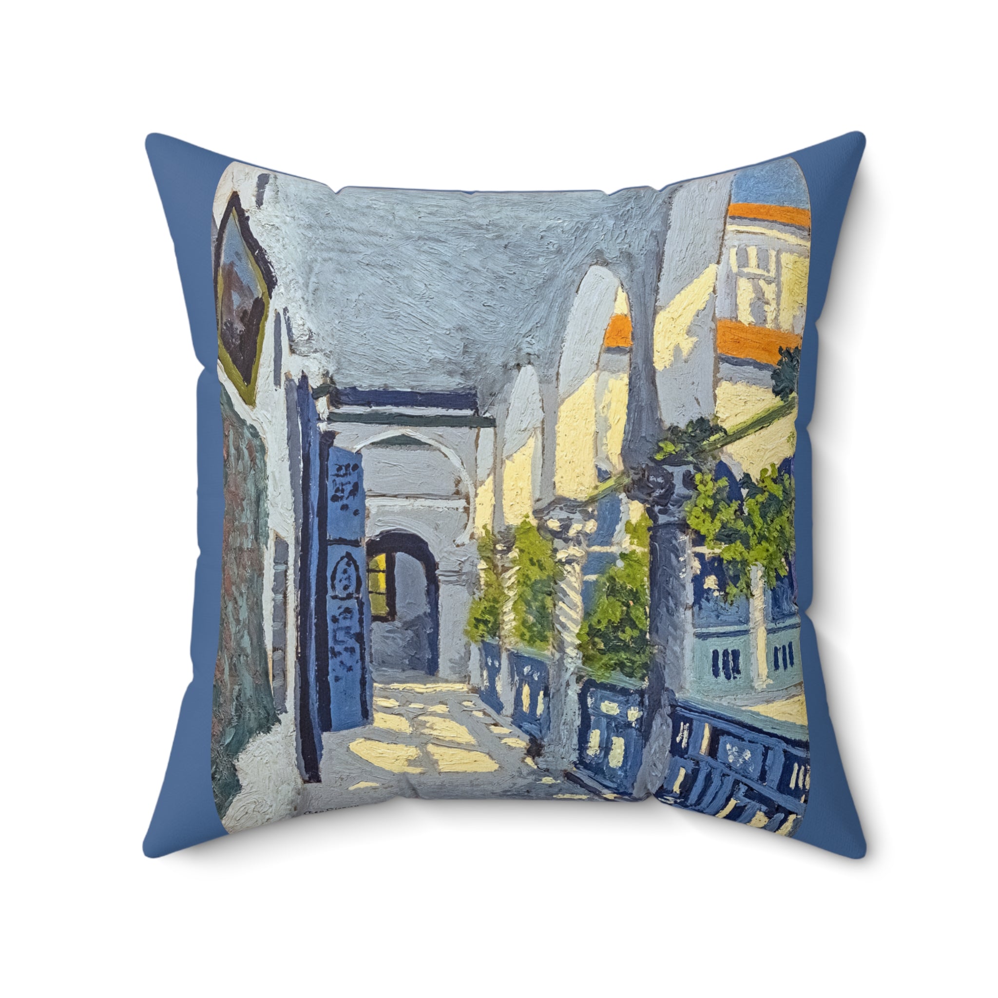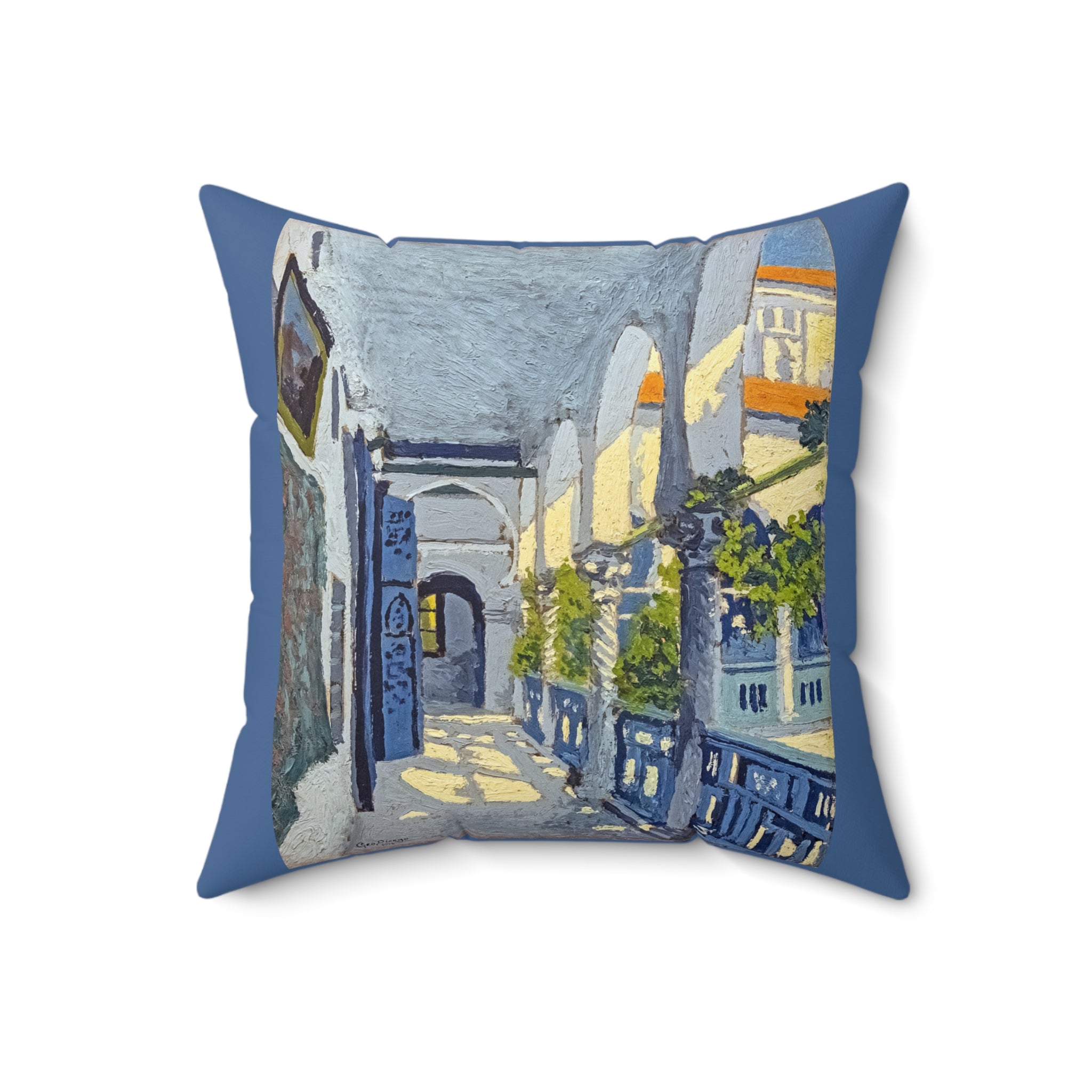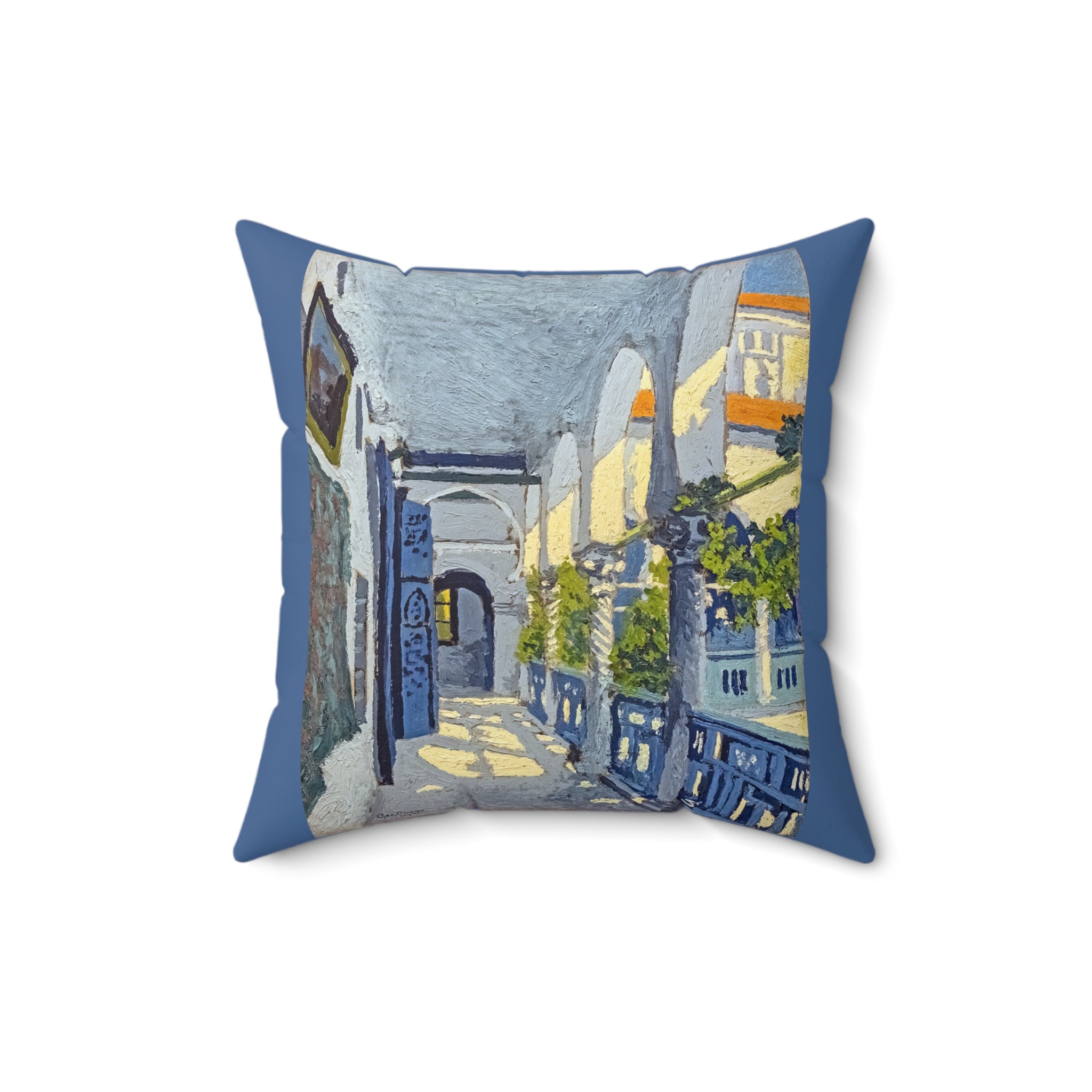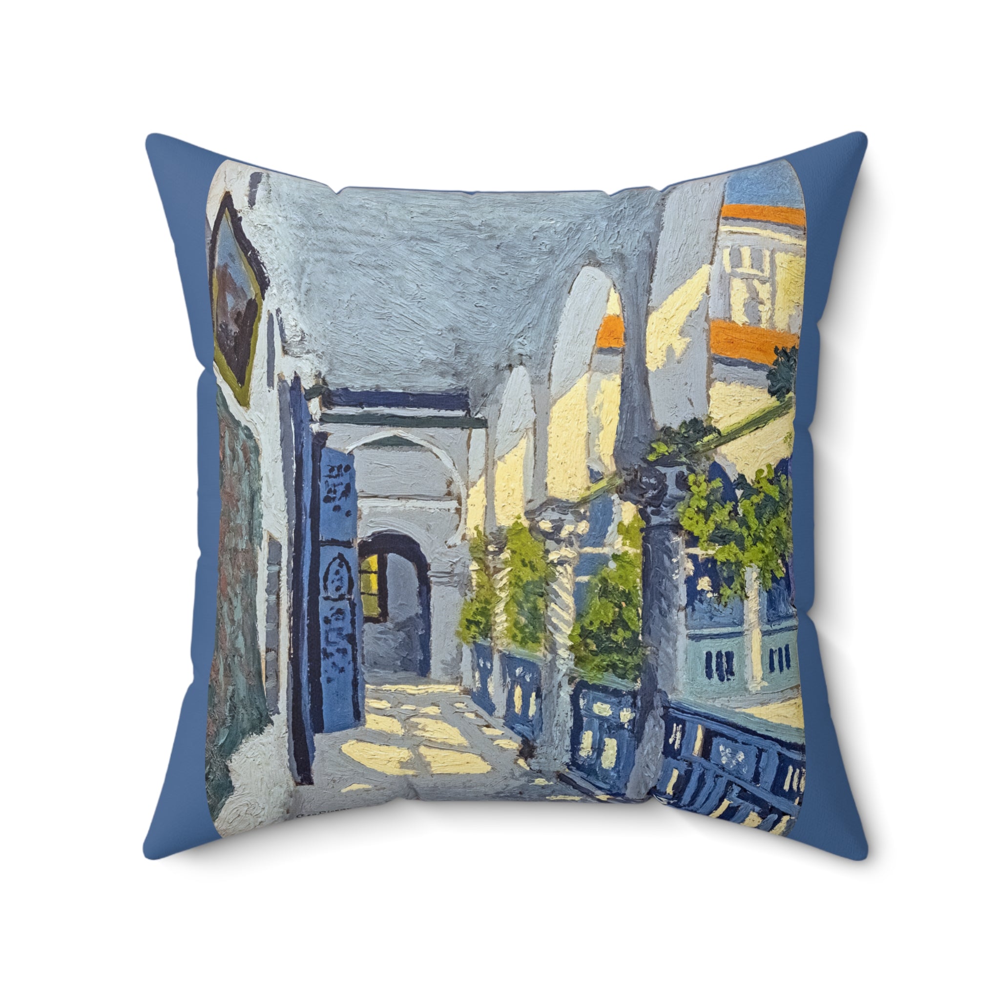 Artwork designed and digitally remastered by Sarasvati Designs. "Gallery of a Moroccan Riad" is an evocative artwork created by George Gaudion. The painting depicts the interior of a Moroccan riad (a type of traditional Moroccan house or palace), specifically focusing on a captivating gallery adorned with intricate architectural details.