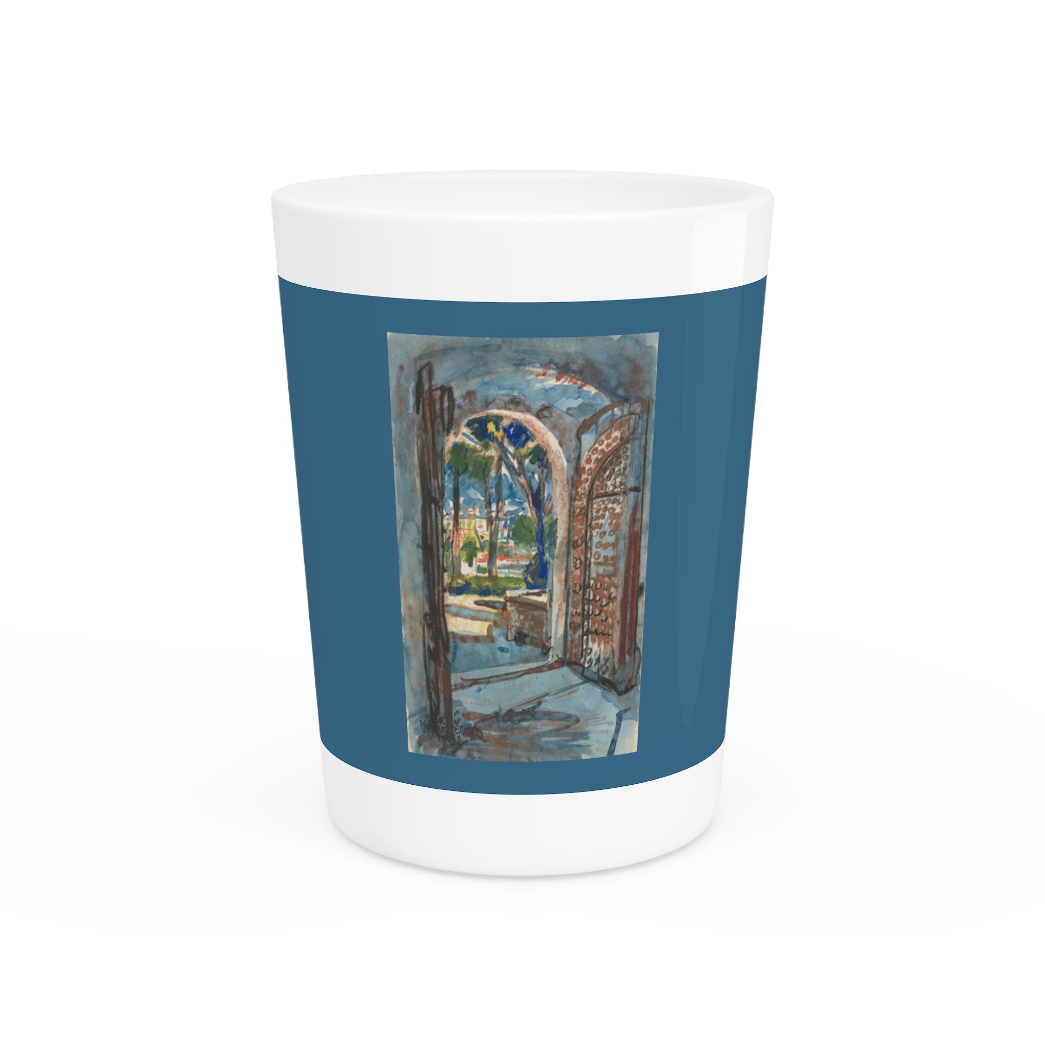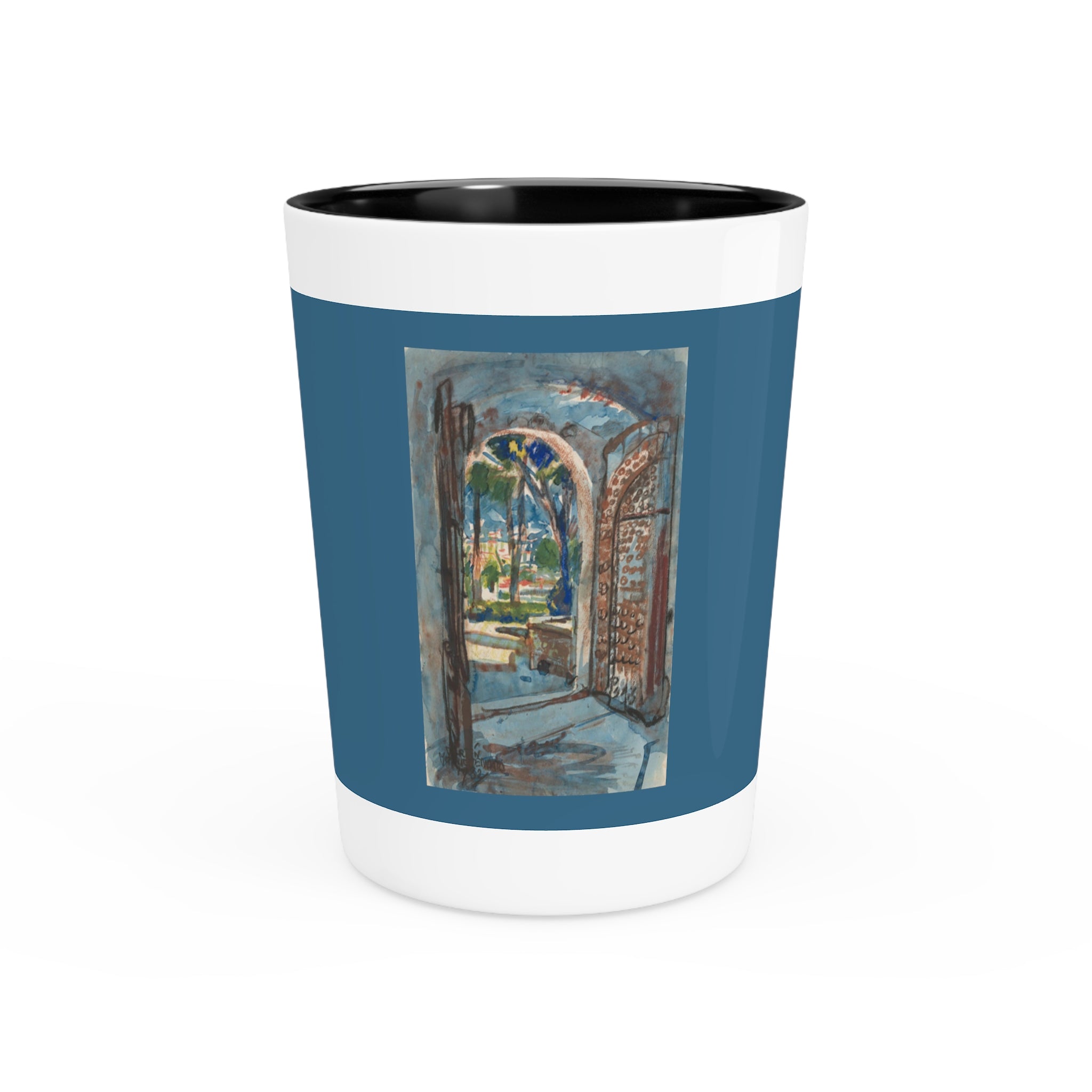 Elevate your gatherings or professional setting with this exclusive shot glass, featuring captivating vintage art. Crafted from premium ceramic material, this unique shot glass offers a choice of a pristine white or sleek black interior. Whether you're seeking to enhance your collection, offer a touch of sophistication to your venue, or give a gift, this shot glass serves as an exquisite canvas for showcasing the captivating artwork, making it a one-of-a-kind addition to your setting.