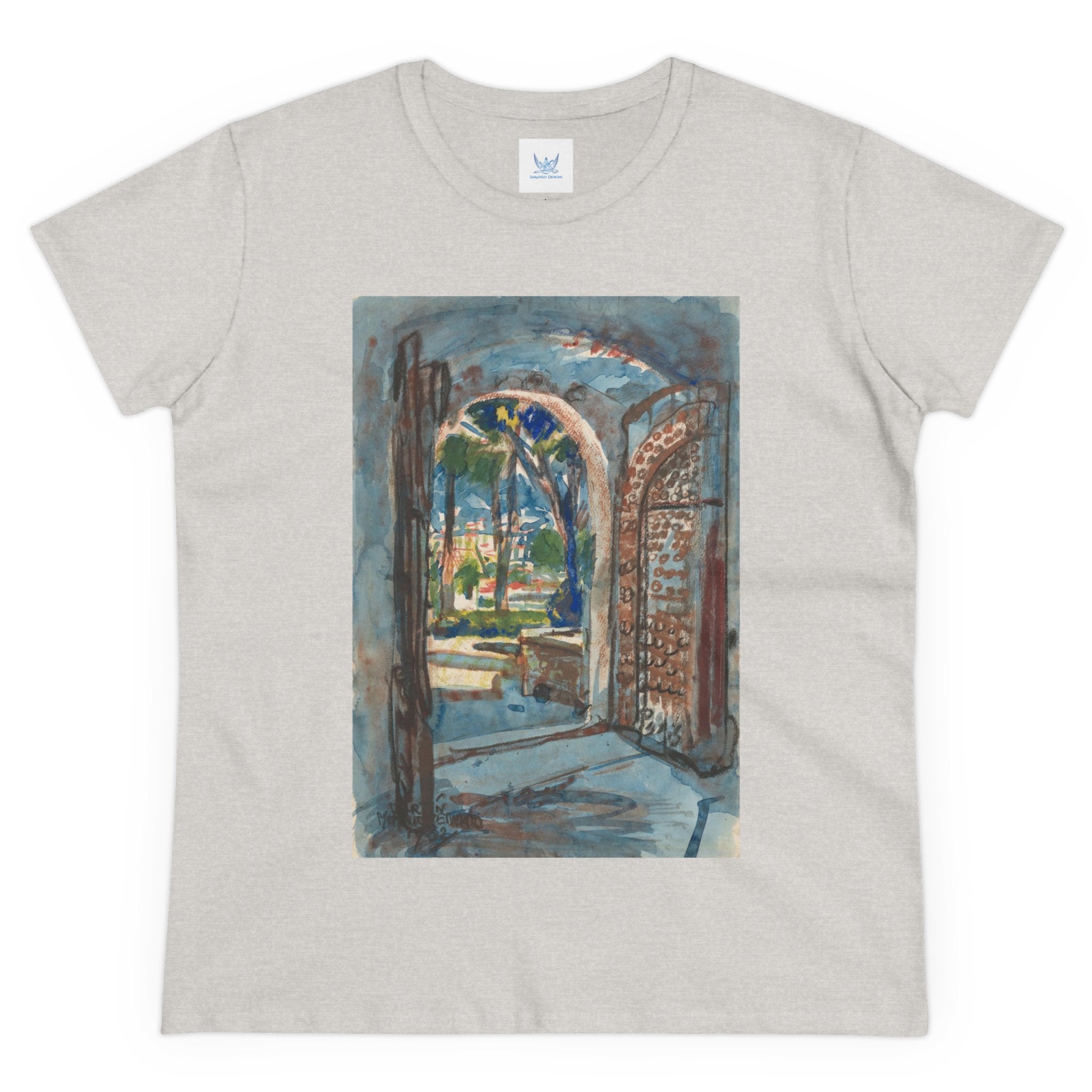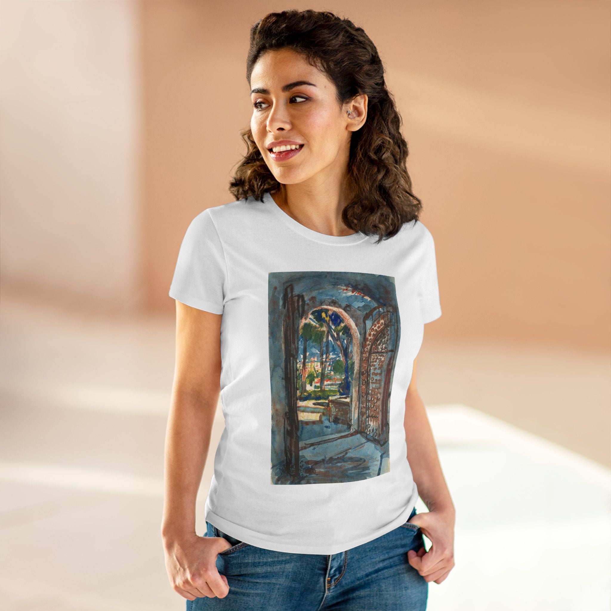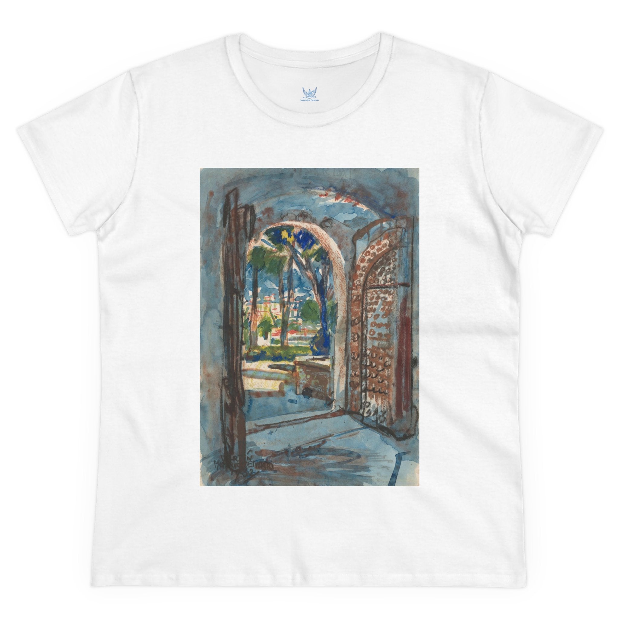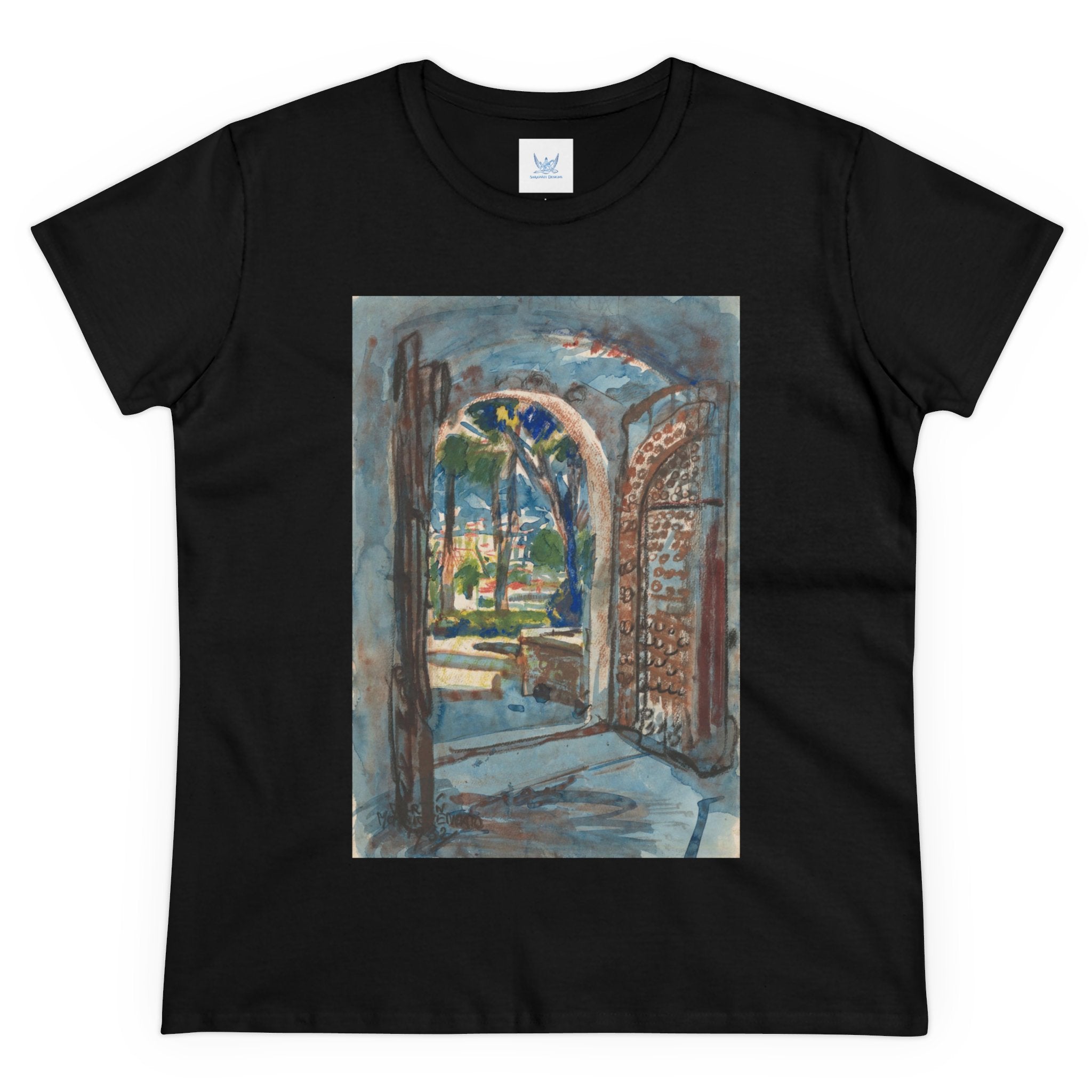 Artwork designed and digitally remastered by Sarasvati Designs. This 20th-century masterpiece, titled "Gate in S. Miniato," was created by the Dutch artist Martin Monnickendam in 1932. The artwork "Gate in S. Miniato" is a picturesque representation of a scenic gate, situated in the Italian town of San Miniato. Overall, "Gate in S. Miniato" is a splendid example of Martin Monnickendam's talent for capturing architectural beauty and historical charm.