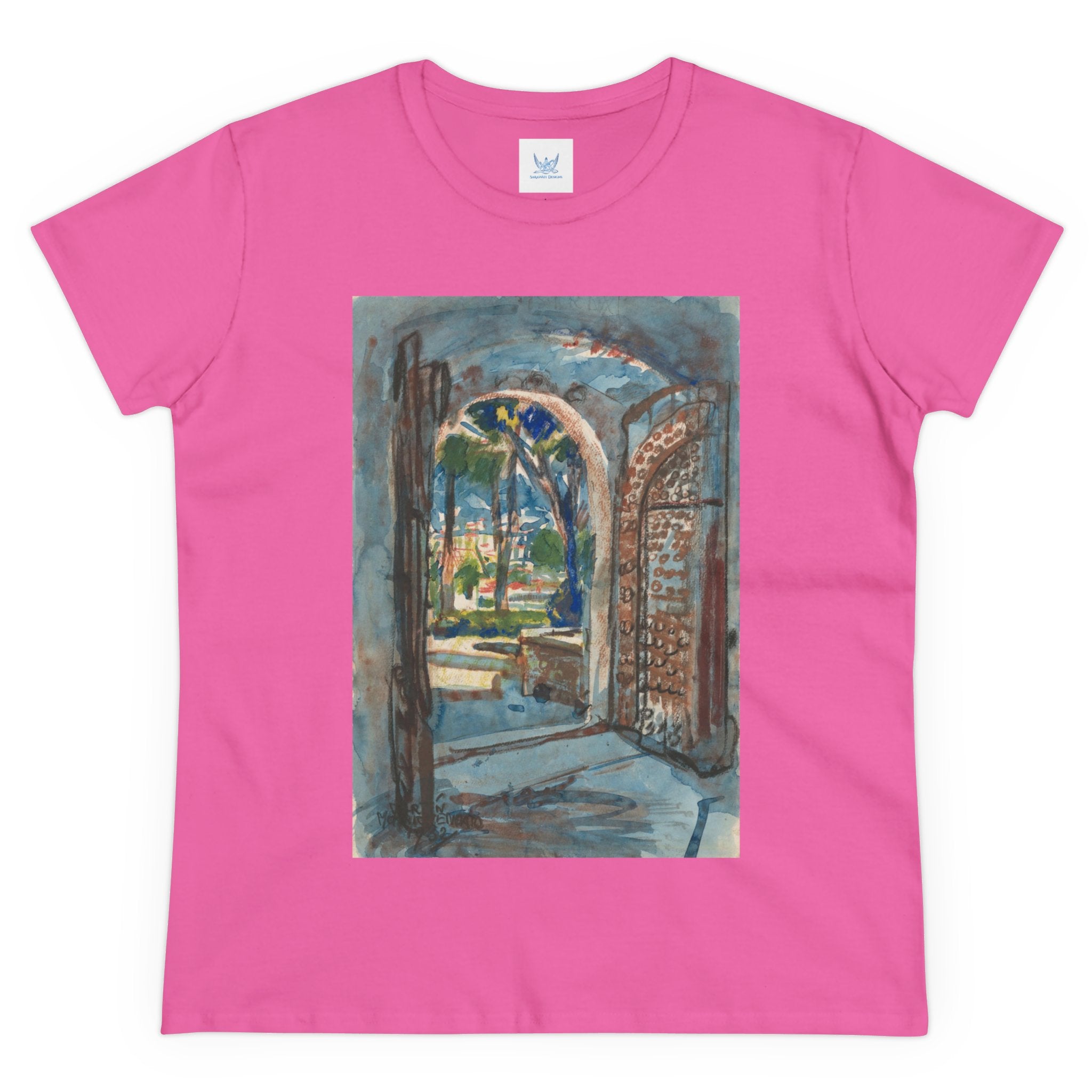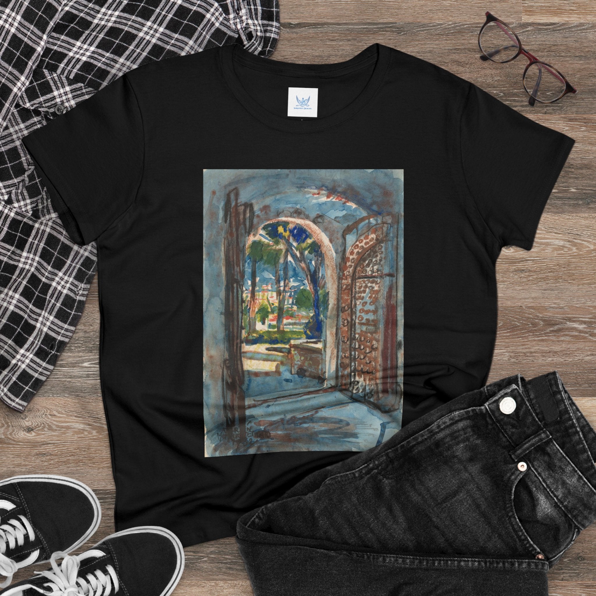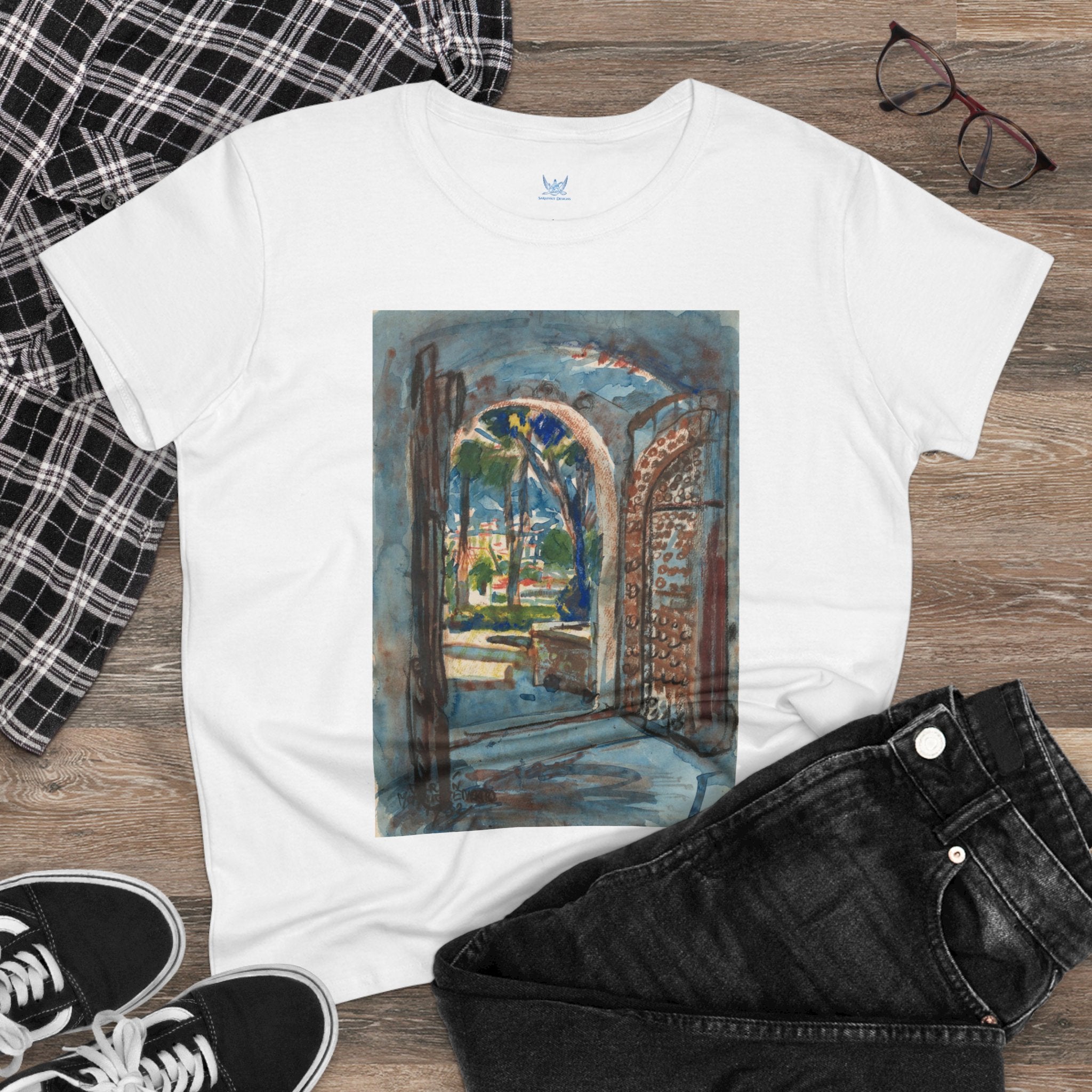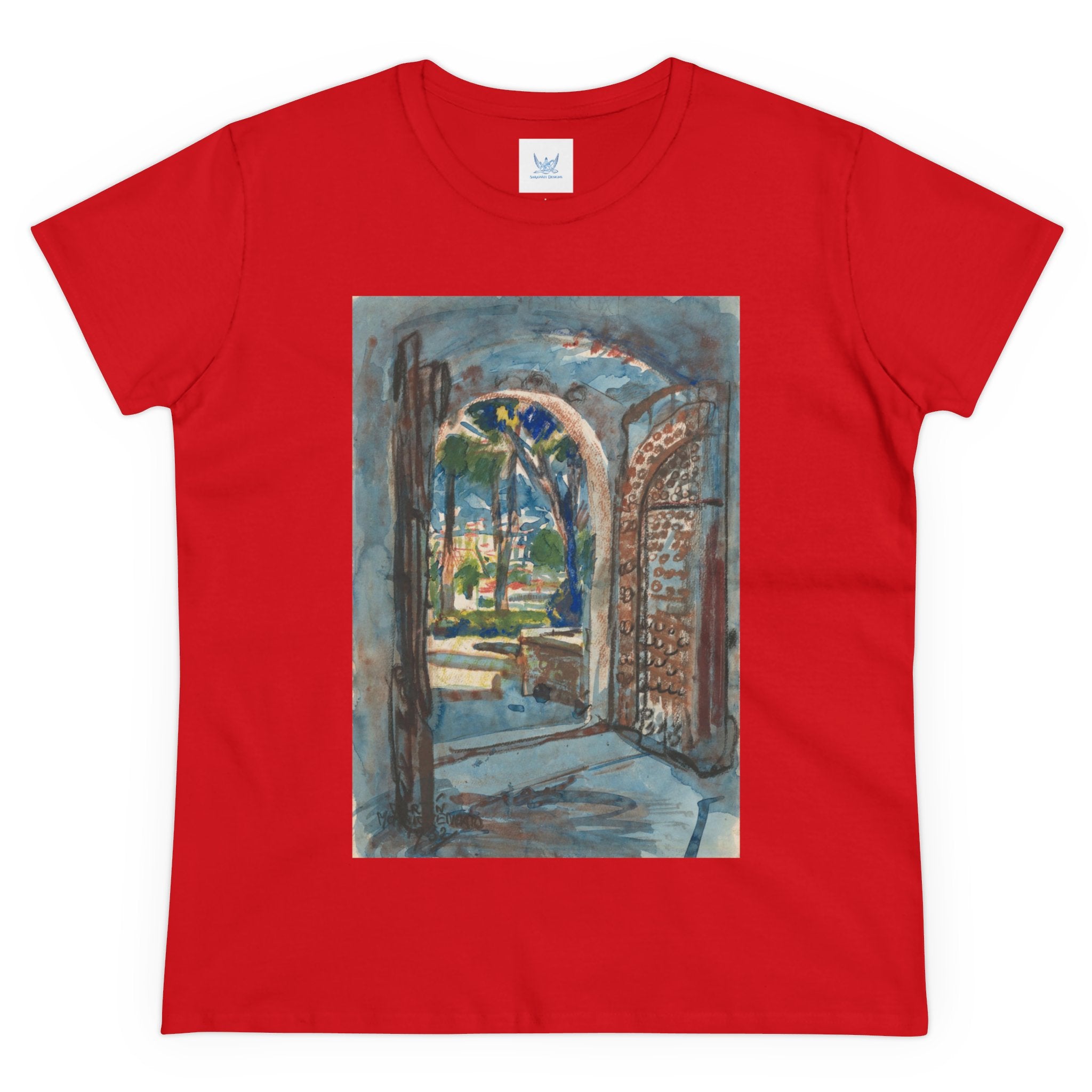 Artwork designed and digitally remastered by Sarasvati Designs. This 20th-century masterpiece, titled "Gate in S. Miniato," was created by the Dutch artist Martin Monnickendam in 1932. The artwork "Gate in S. Miniato" is a picturesque representation of a scenic gate, situated in the Italian town of San Miniato. Overall, "Gate in S. Miniato" is a splendid example of Martin Monnickendam's talent for capturing architectural beauty and historical charm.