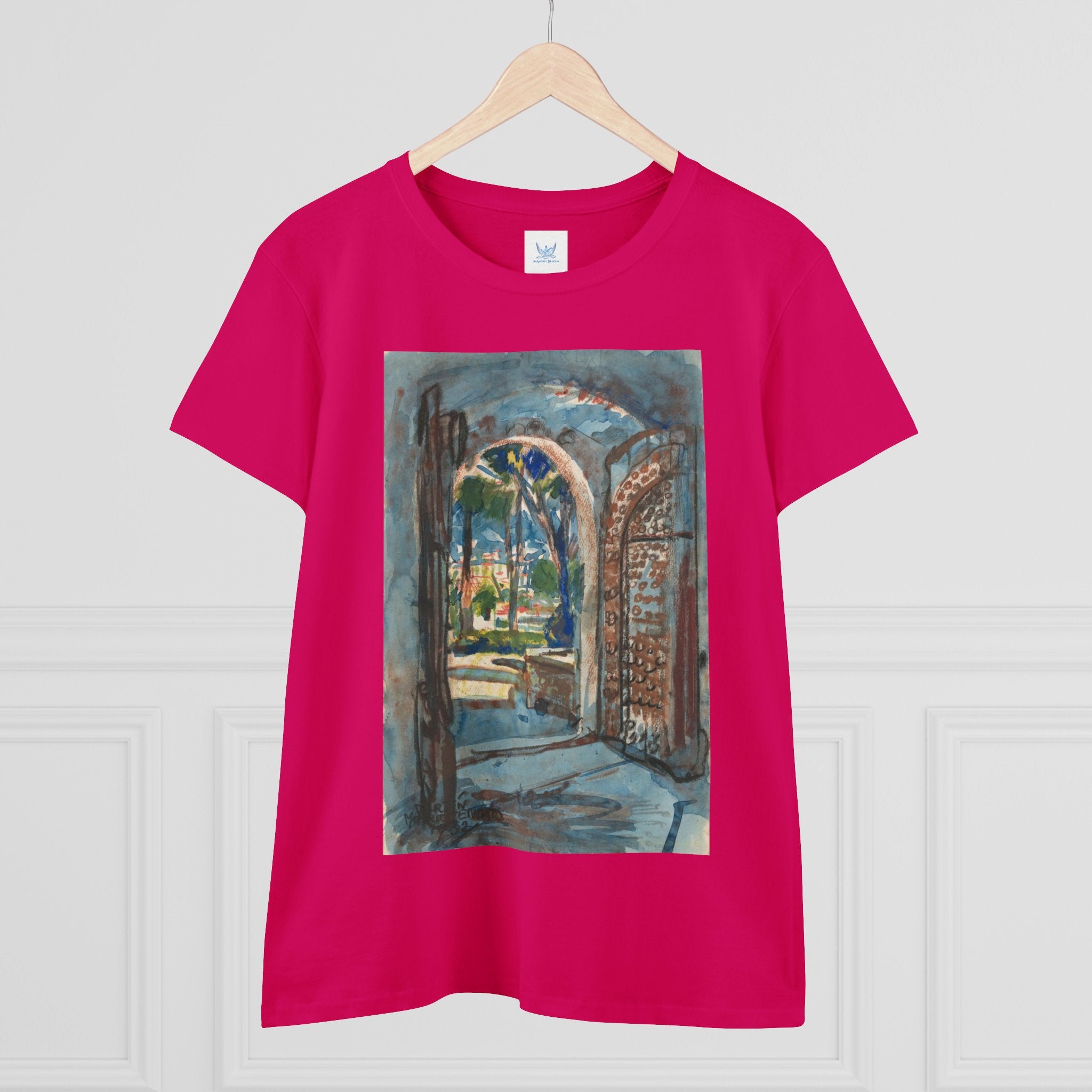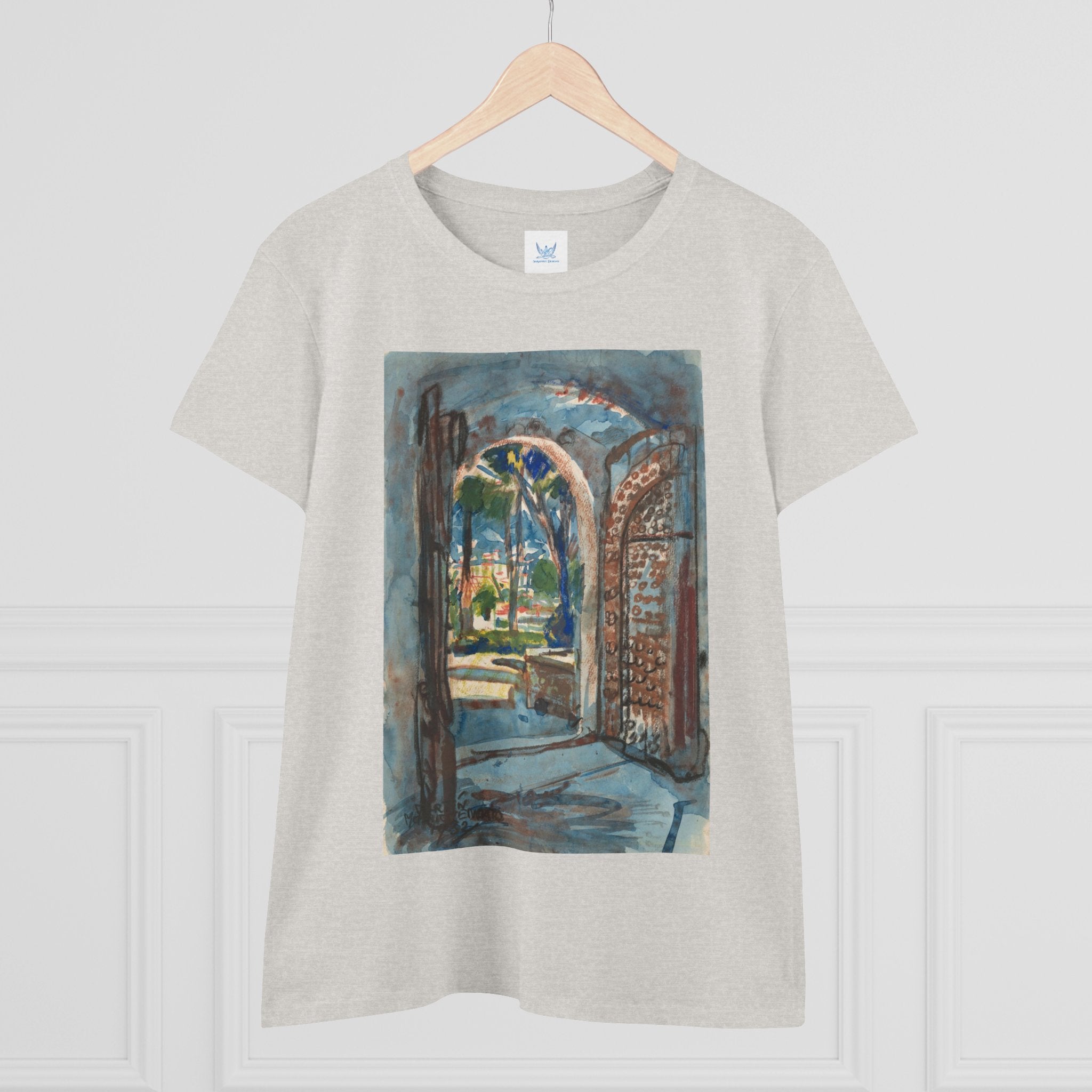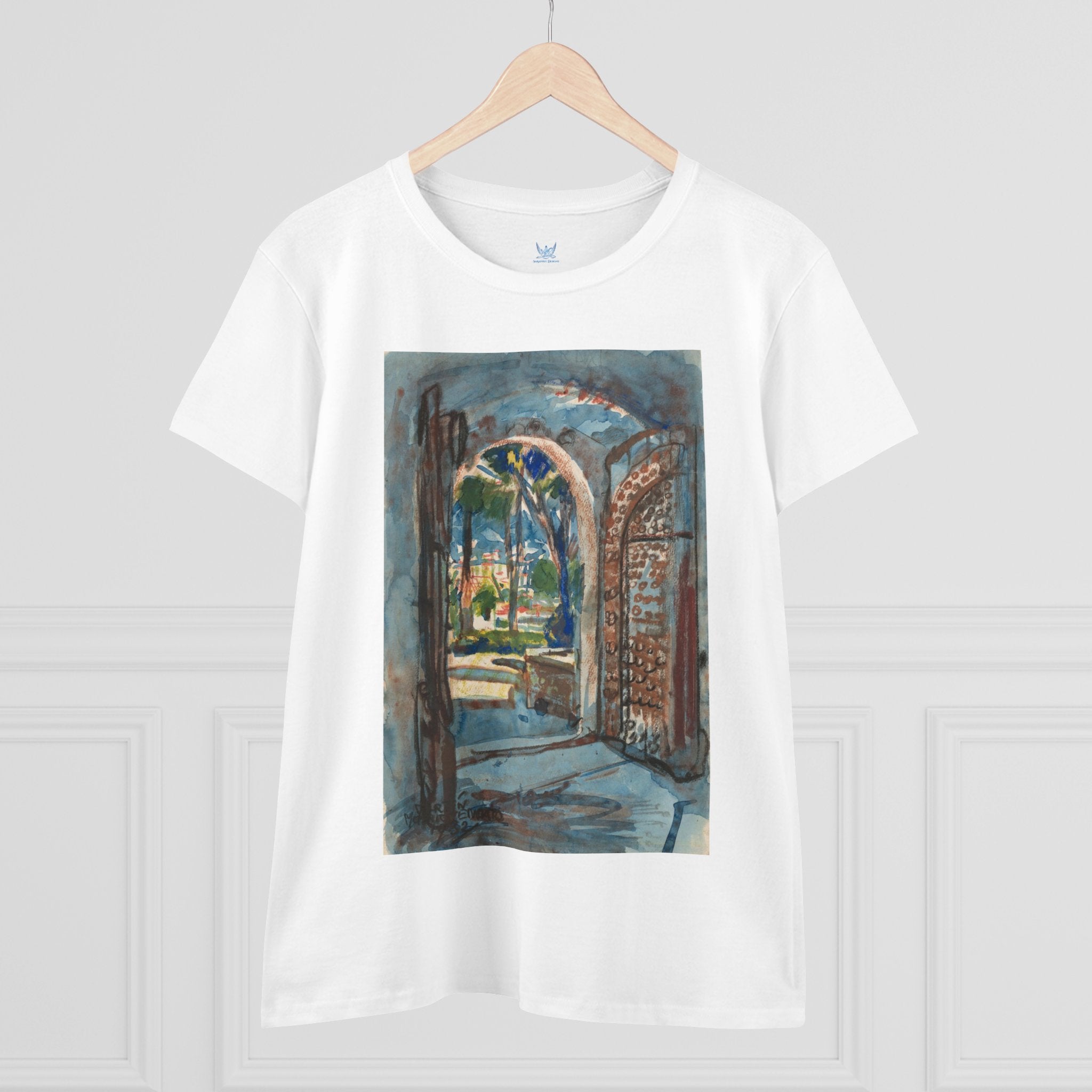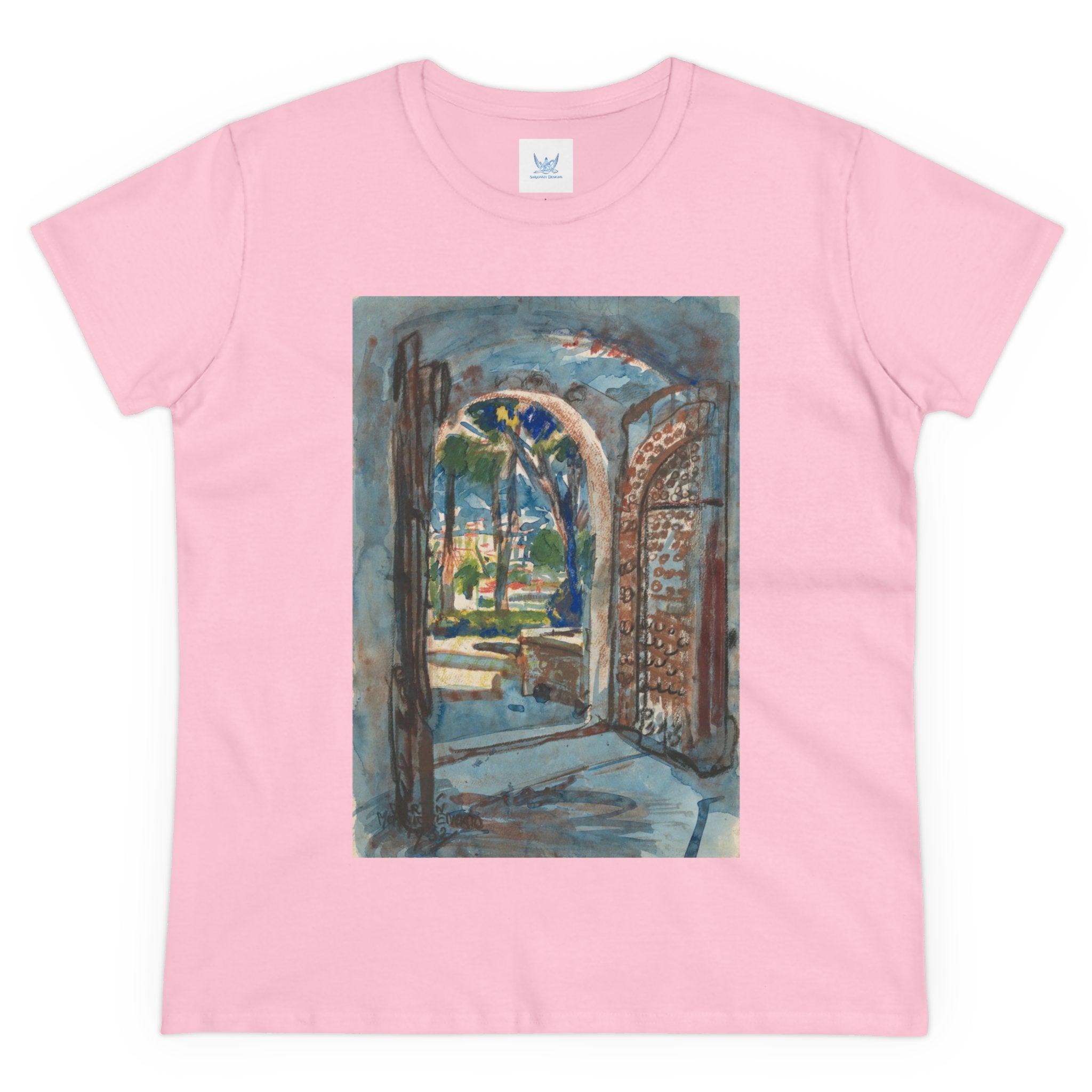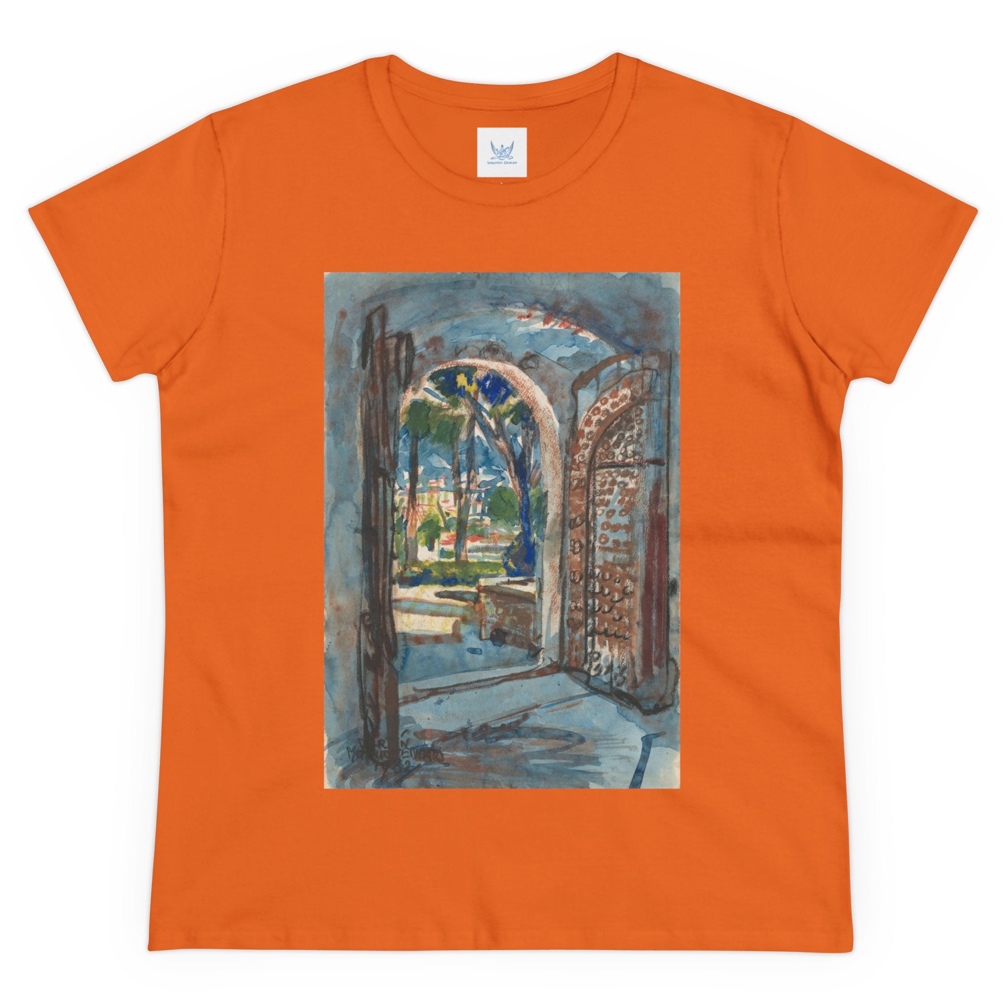 Artwork designed and digitally remastered by Sarasvati Designs. This 20th-century masterpiece, titled "Gate in S. Miniato," was created by the Dutch artist Martin Monnickendam in 1932. The artwork "Gate in S. Miniato" is a picturesque representation of a scenic gate, situated in the Italian town of San Miniato. Overall, "Gate in S. Miniato" is a splendid example of Martin Monnickendam's talent for capturing architectural beauty and historical charm.