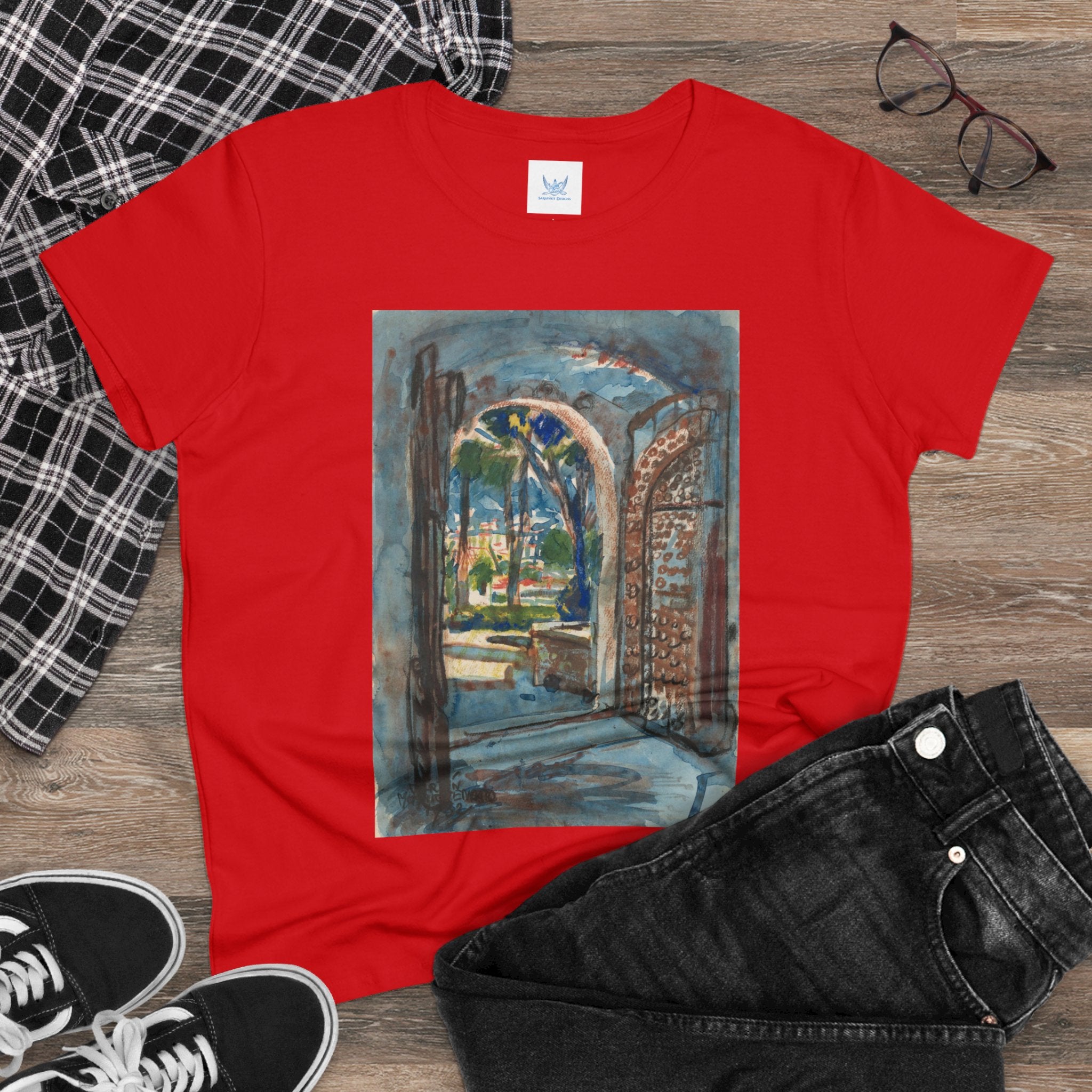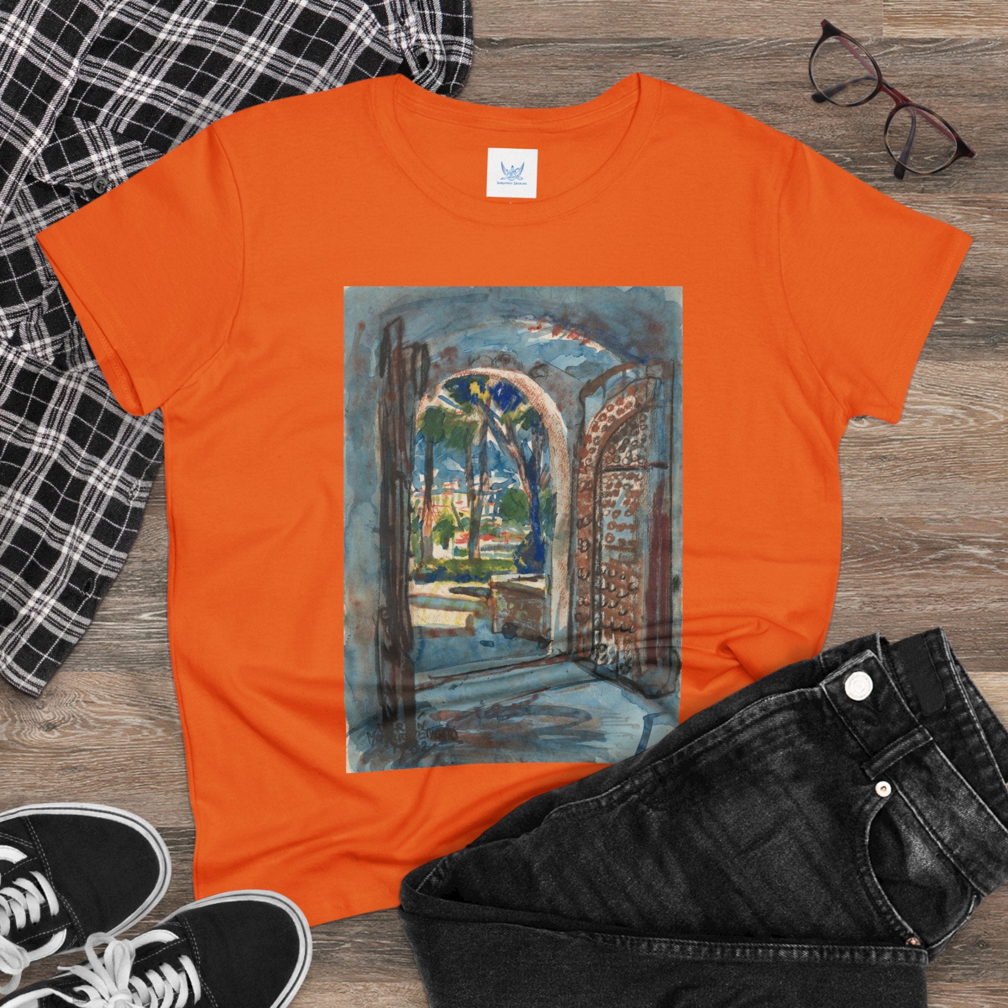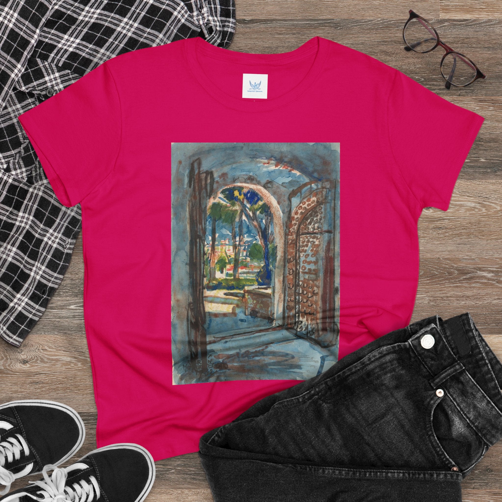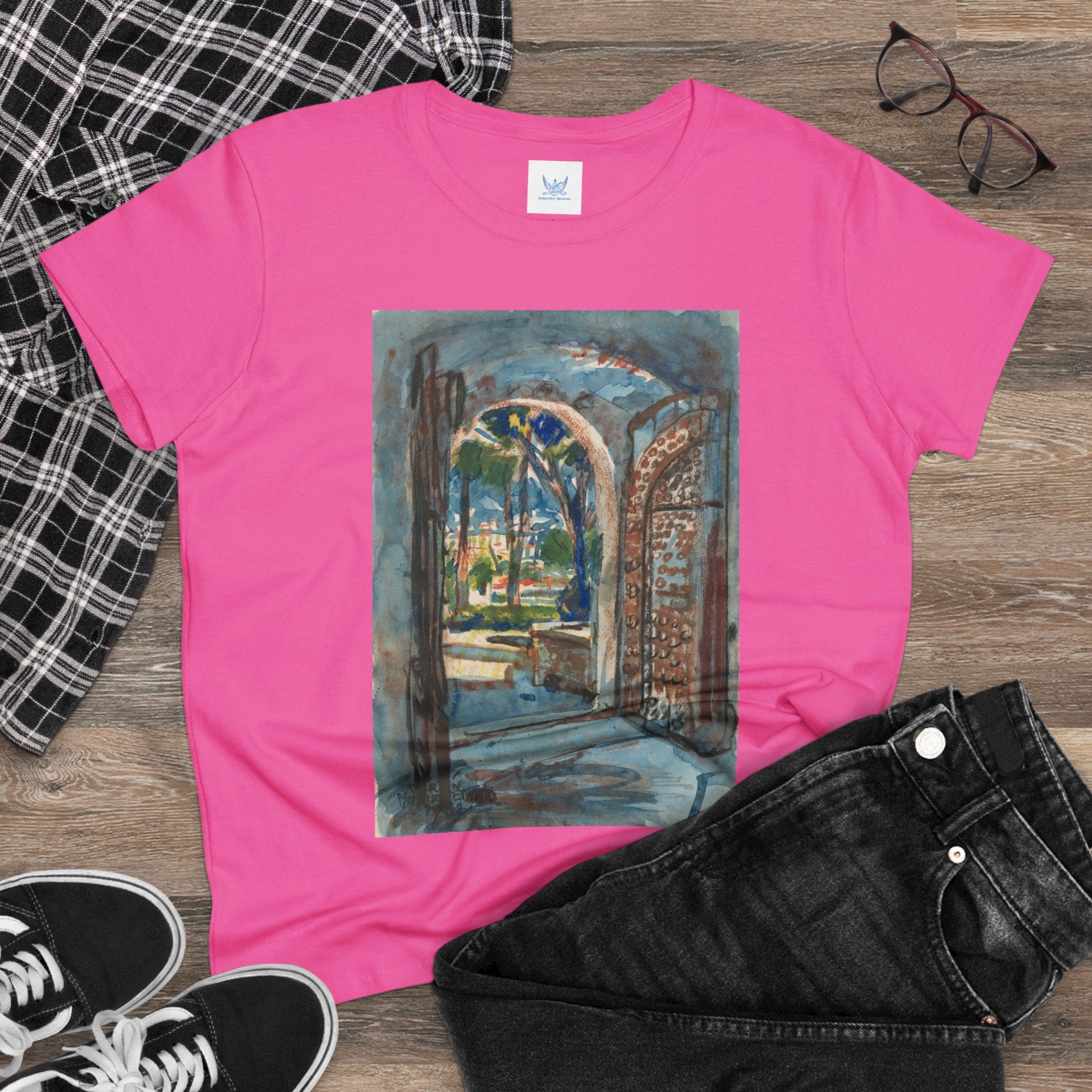Artwork designed and digitally remastered by Sarasvati Designs. This 20th-century masterpiece, titled "Gate in S. Miniato," was created by the Dutch artist Martin Monnickendam in 1932. The artwork "Gate in S. Miniato" is a picturesque representation of a scenic gate, situated in the Italian town of San Miniato. Overall, "Gate in S. Miniato" is a splendid example of Martin Monnickendam's talent for capturing architectural beauty and historical charm.