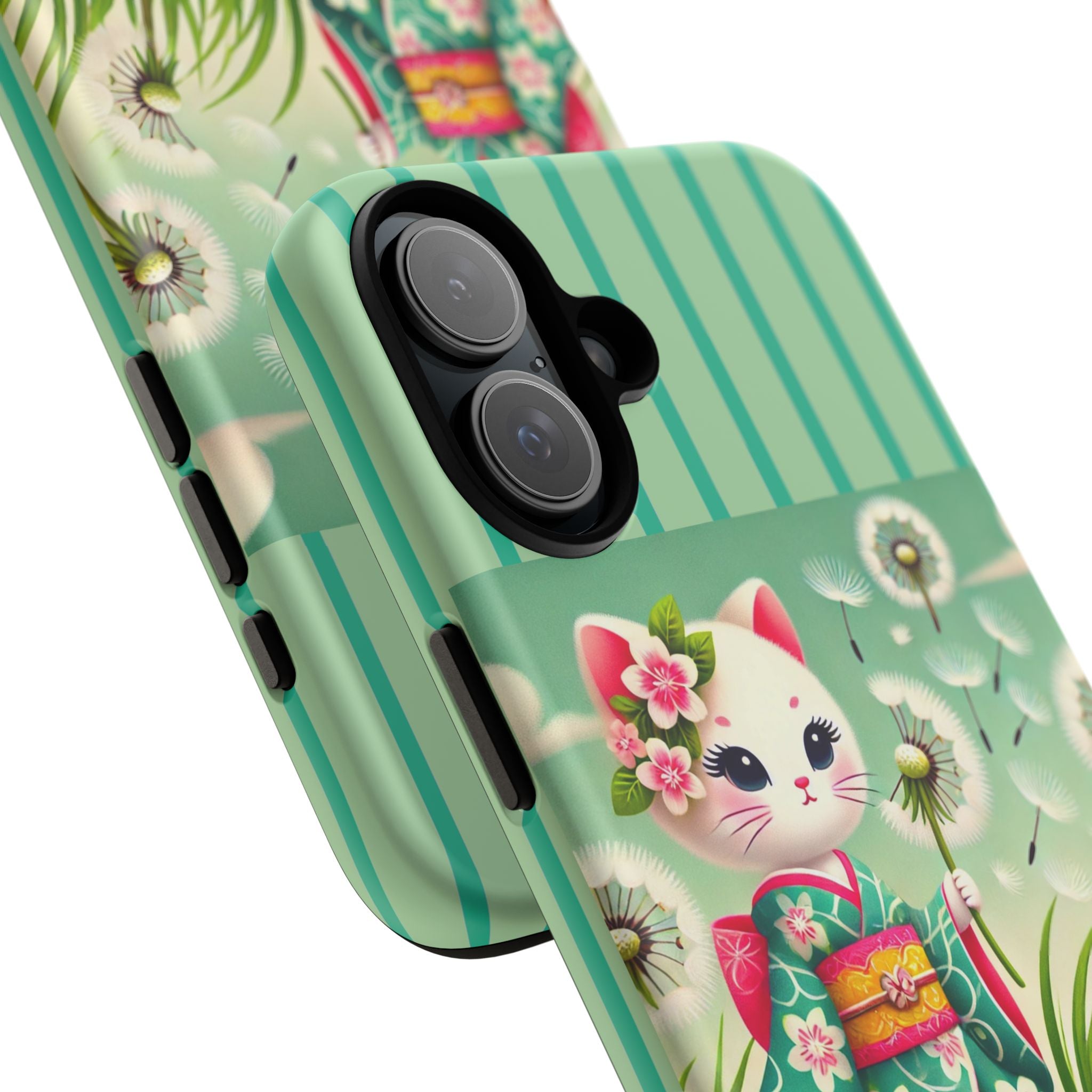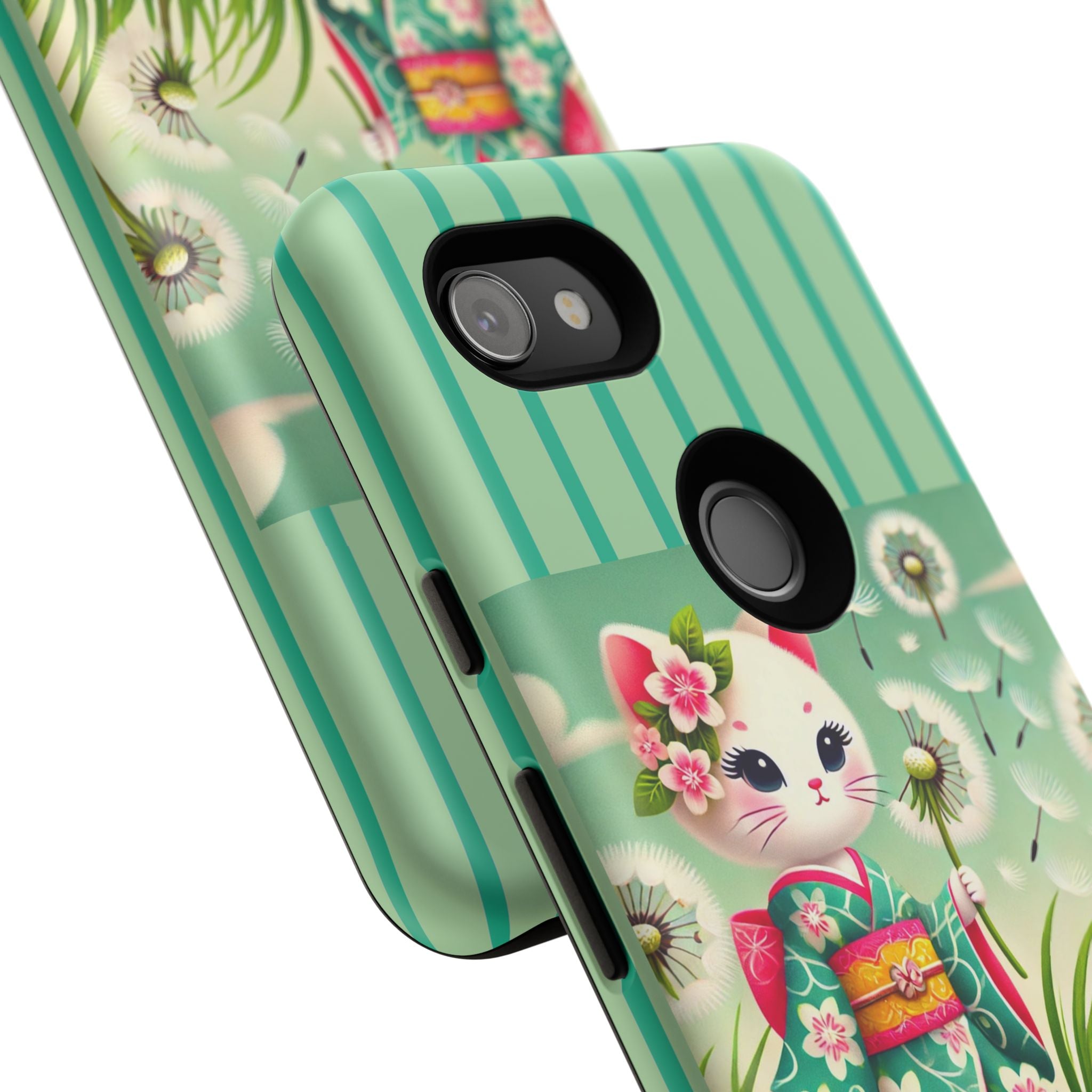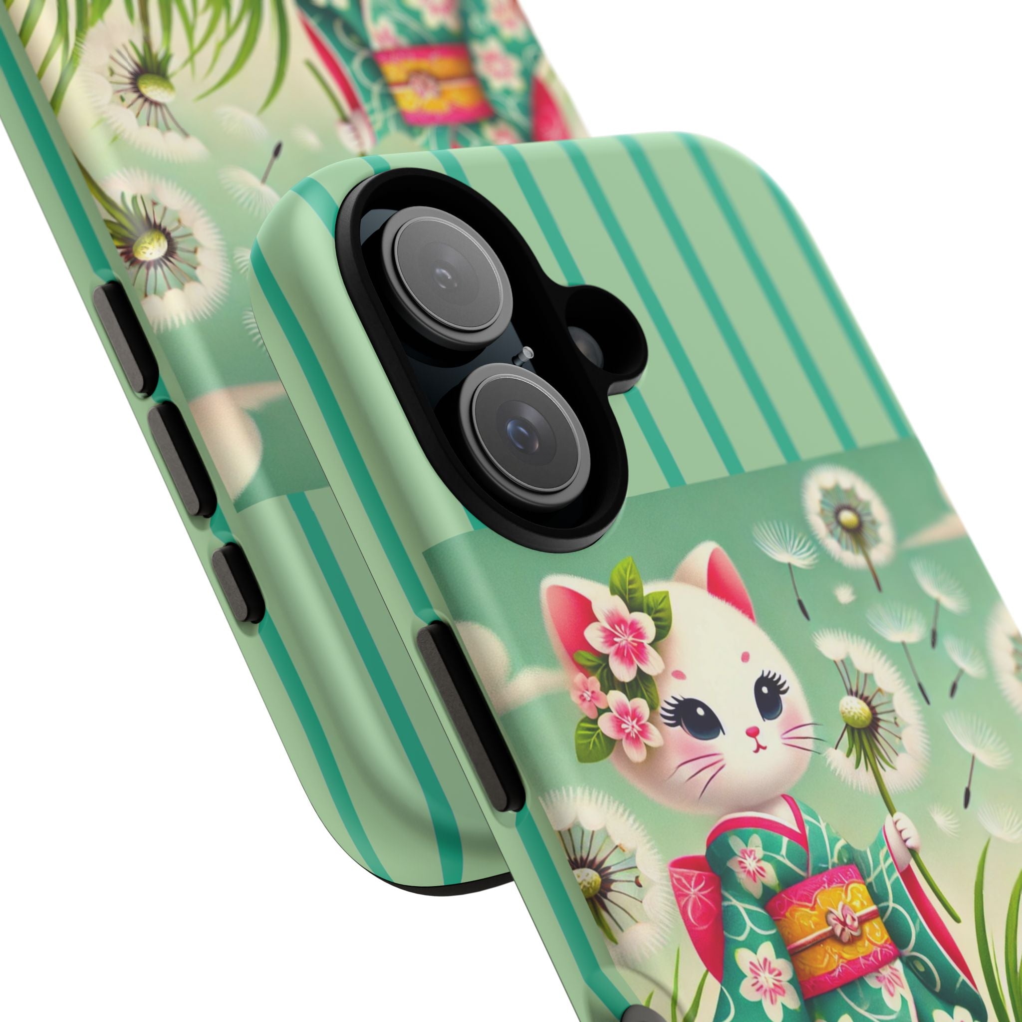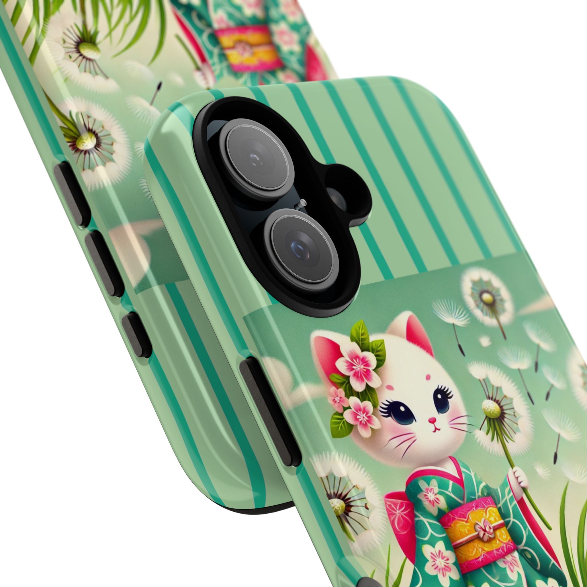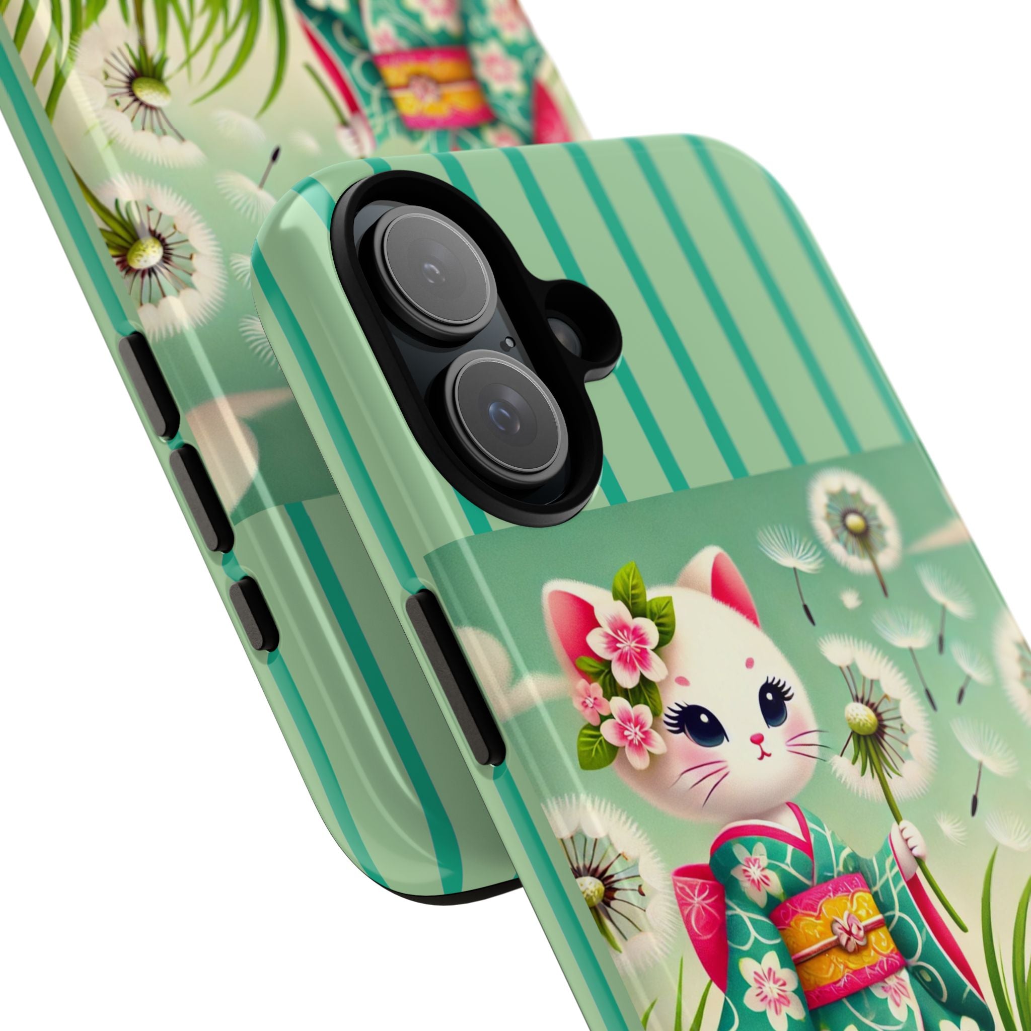Add a touch of calm charm to your day with our Geisha Kitten and the Dandelion Phone Cases. Designed for iPhone, Samsung Galaxy, and Google Pixel devices, these premium-quality cases combine everyday protection with the gentle beauty of whimsical art. The design features a serene illustration of a geisha kitten and her tiny kitten doll, both dressed in matching kimonos, surrounded by tall swaying grass and drifting dandelion seeds. The soft colors and delicate details create a dreamy, tranquil mood that transforms your phone into a peaceful work of art.