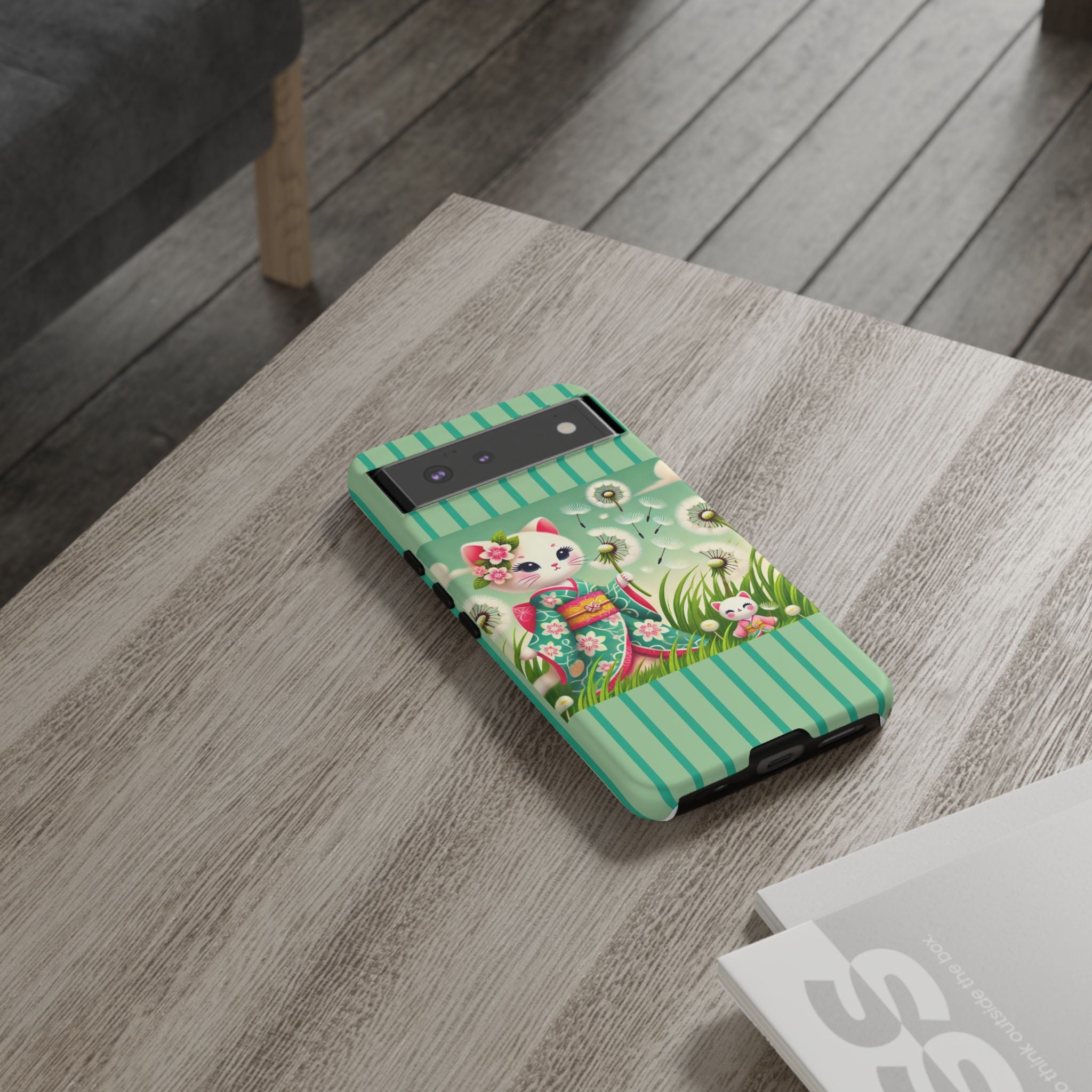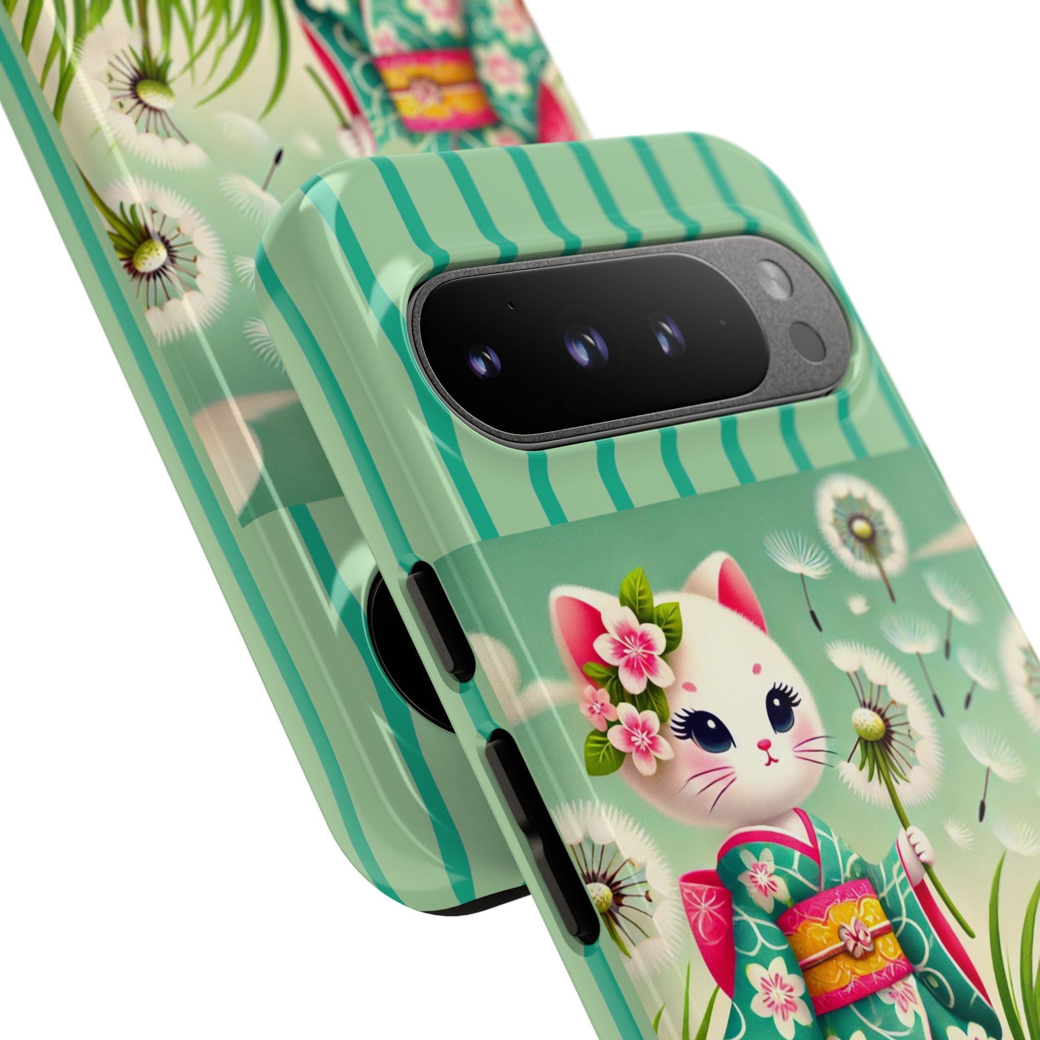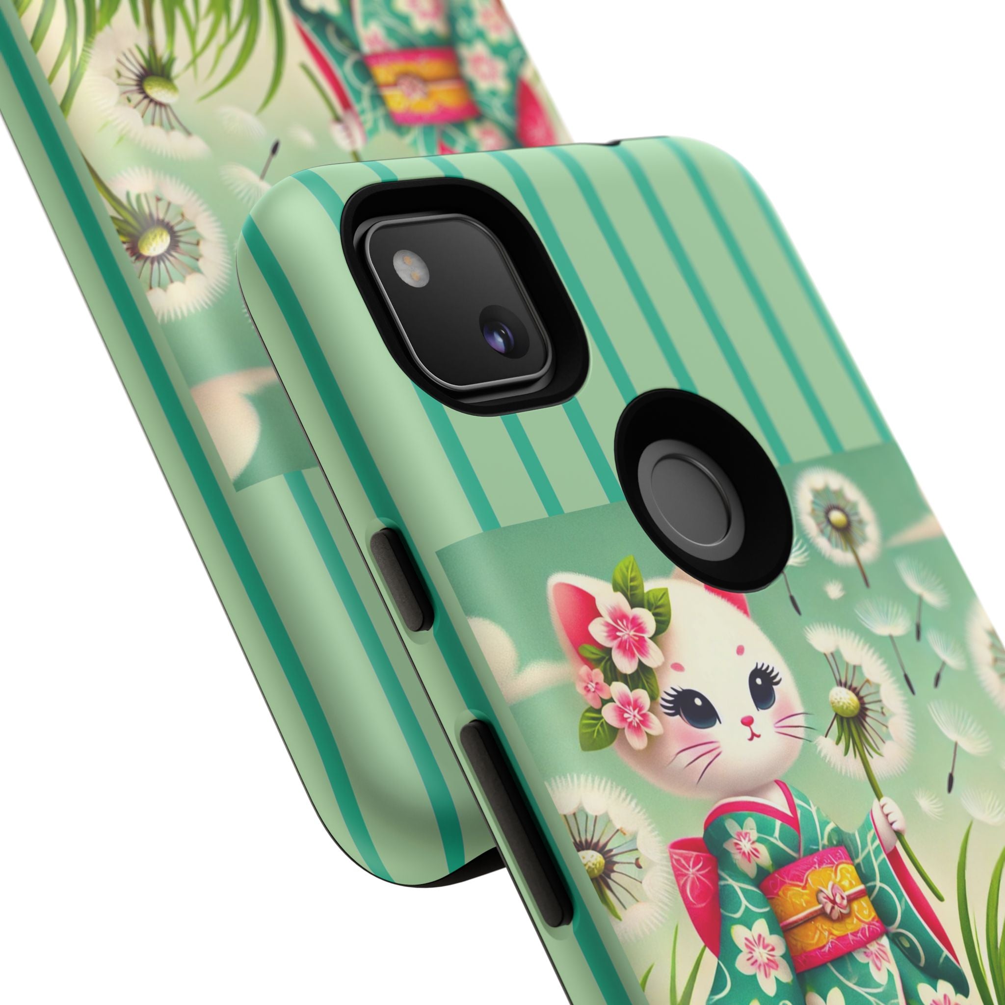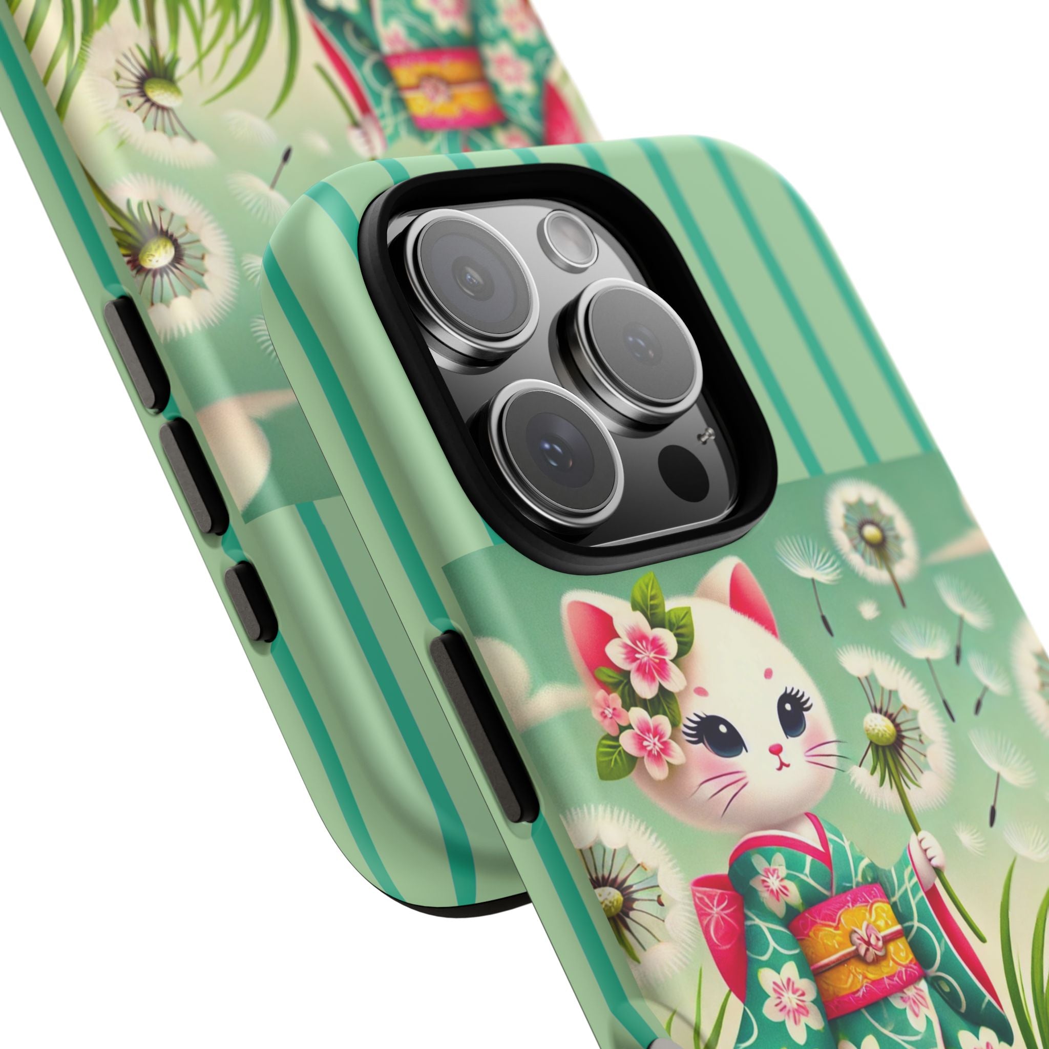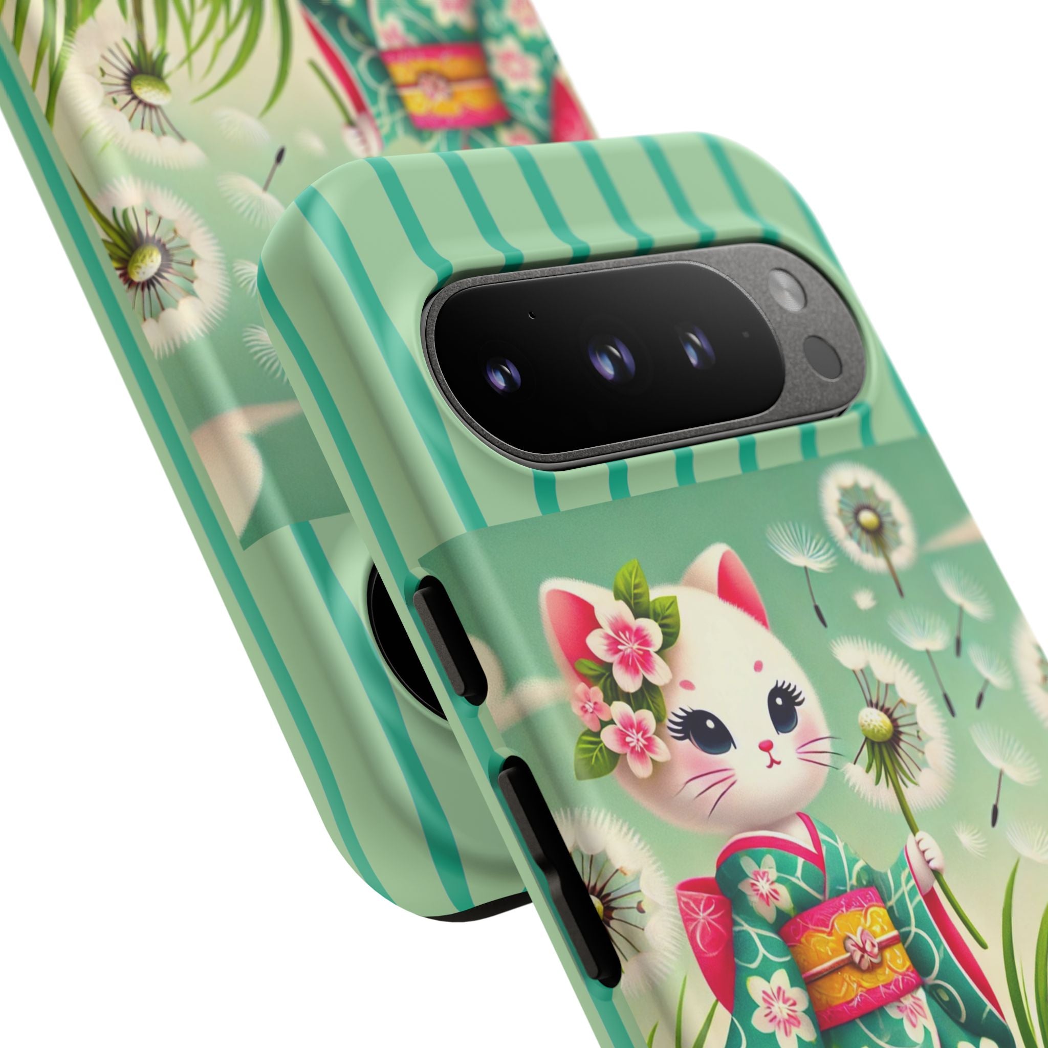 Add a touch of calm charm to your day with our Geisha Kitten and the Dandelion Phone Cases. Designed for iPhone, Samsung Galaxy, and Google Pixel devices, these premium-quality cases combine everyday protection with the gentle beauty of whimsical art. The design features a serene illustration of a geisha kitten and her tiny kitten doll, both dressed in matching kimonos, surrounded by tall swaying grass and drifting dandelion seeds. The soft colors and delicate details create a dreamy, tranquil mood that transforms your phone into a peaceful work of art.
