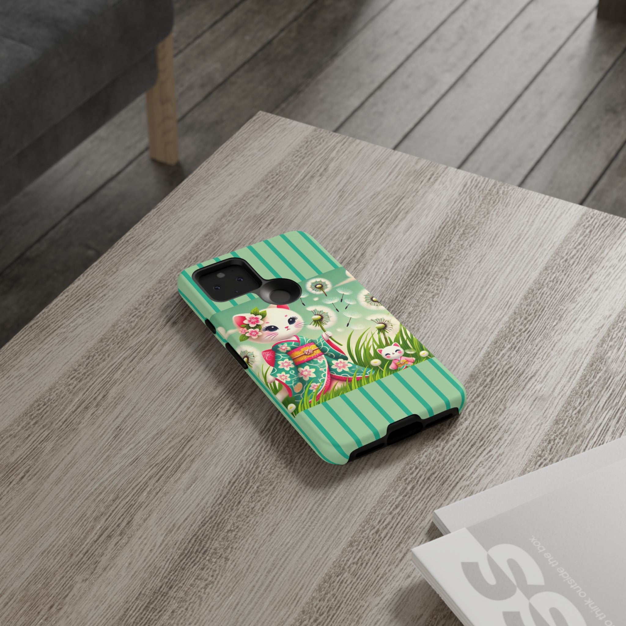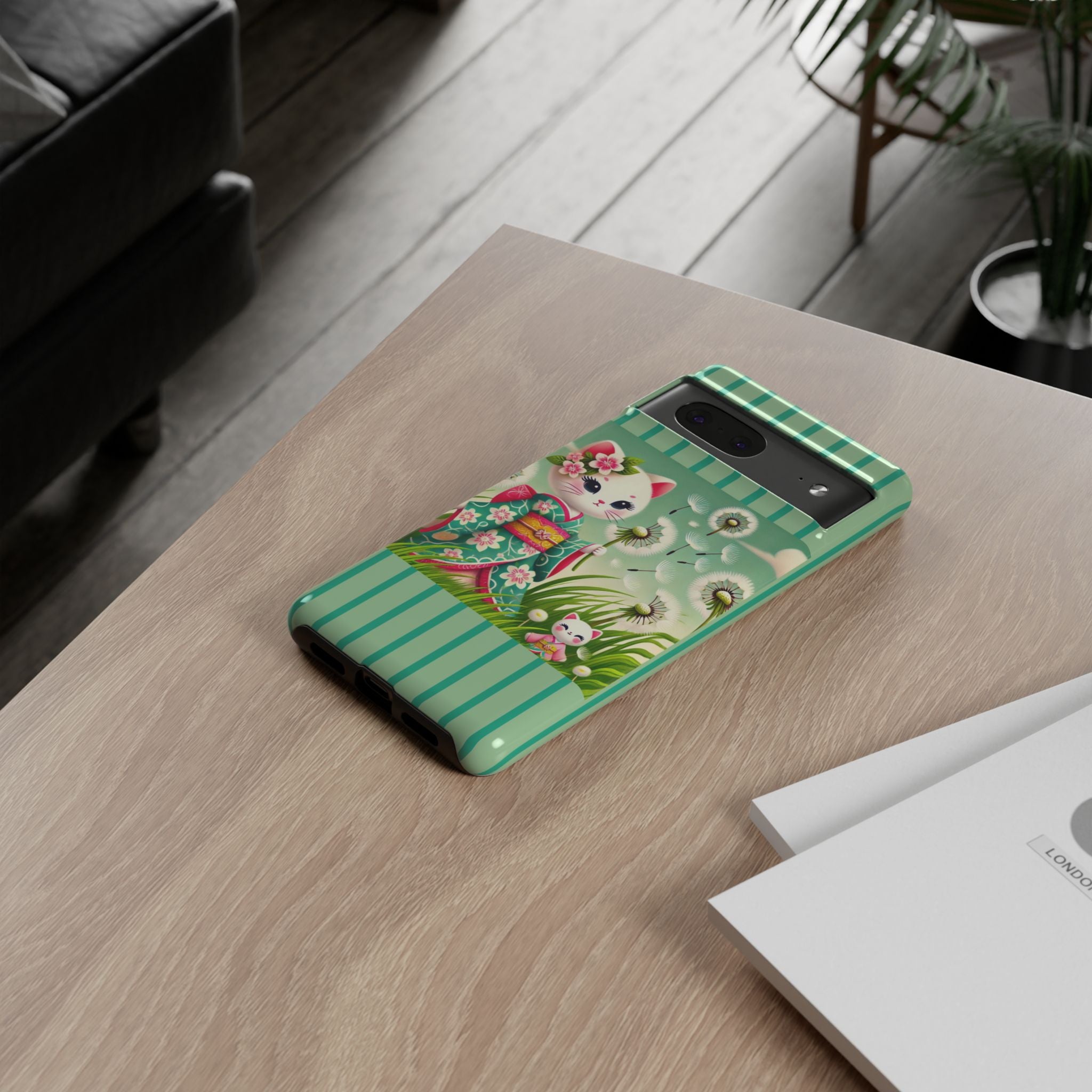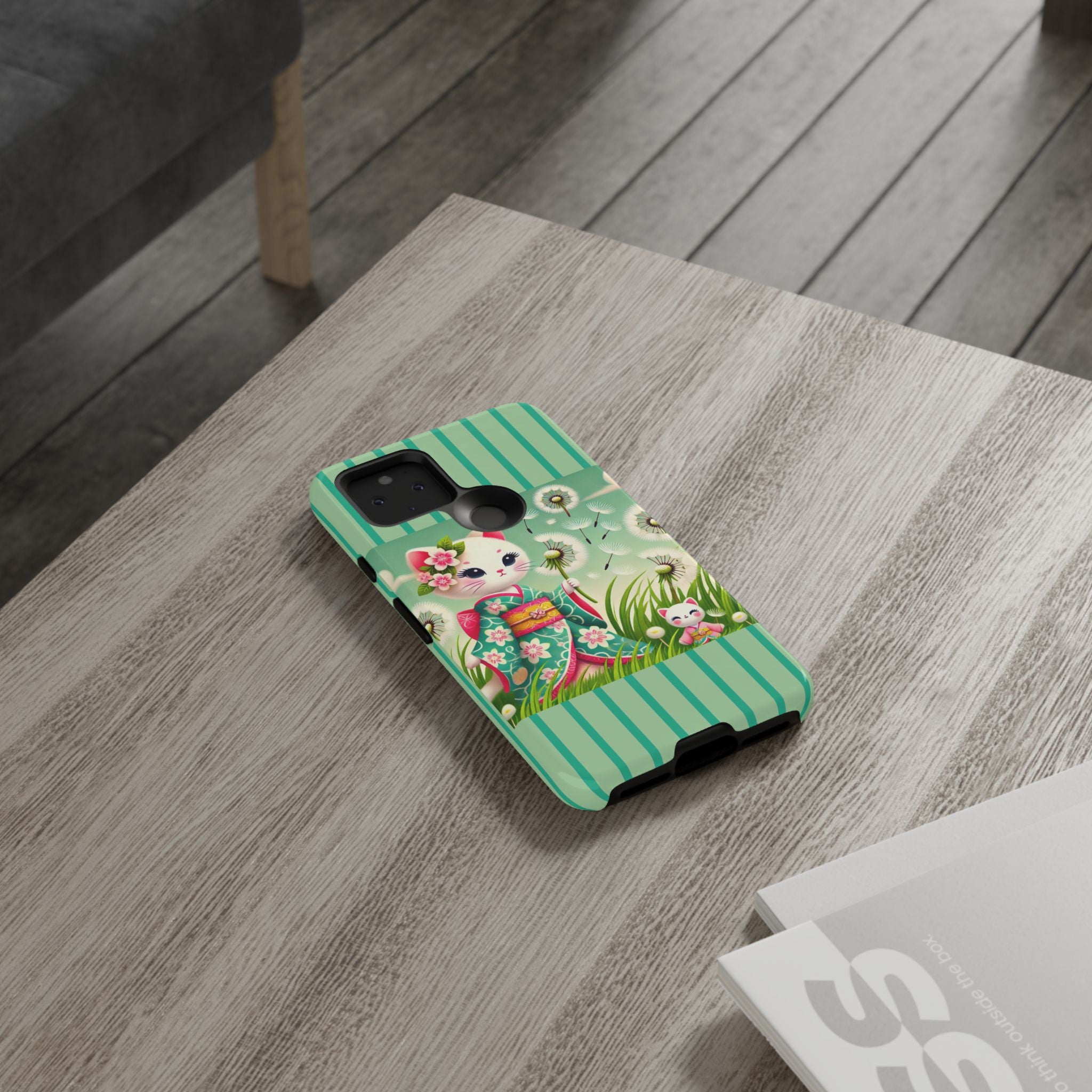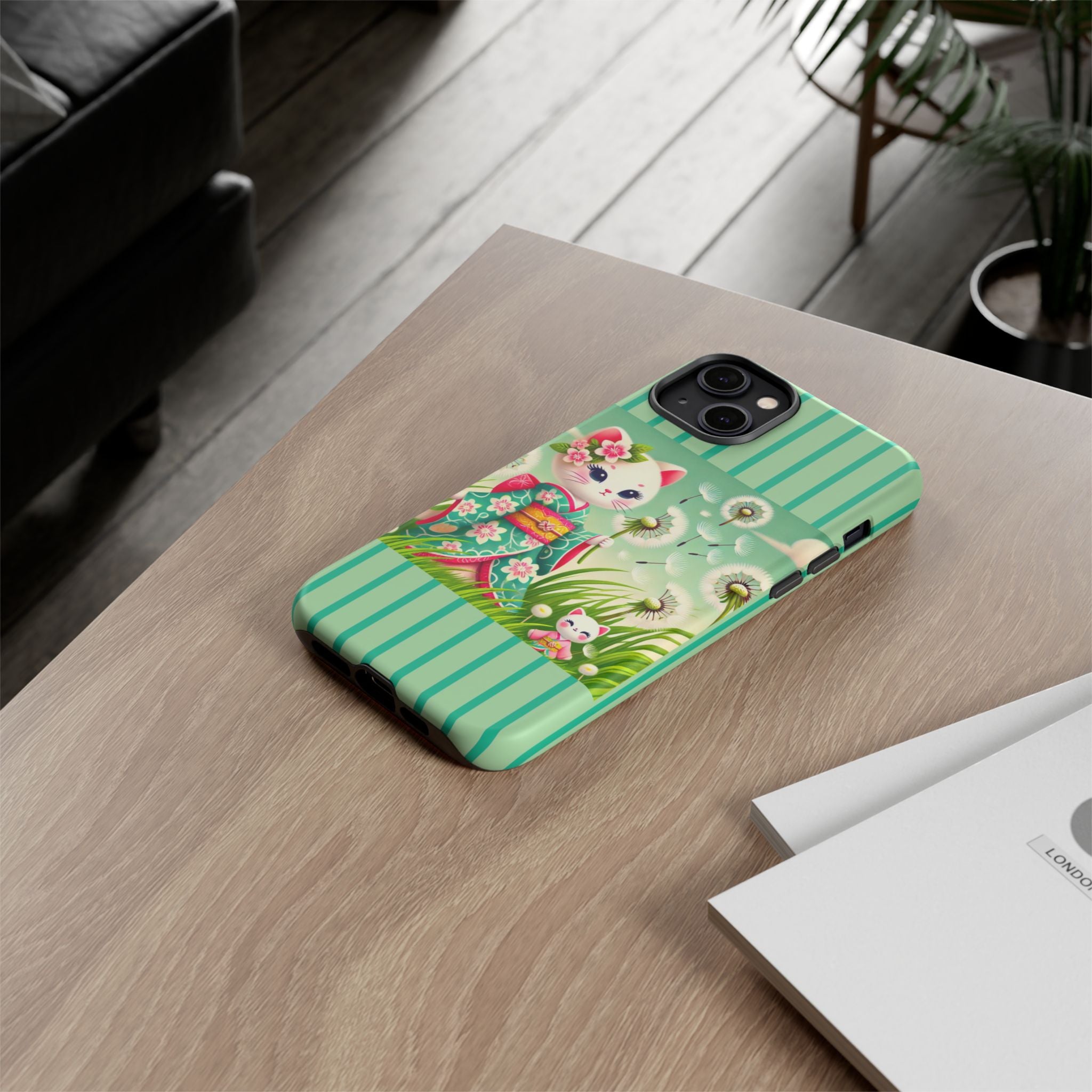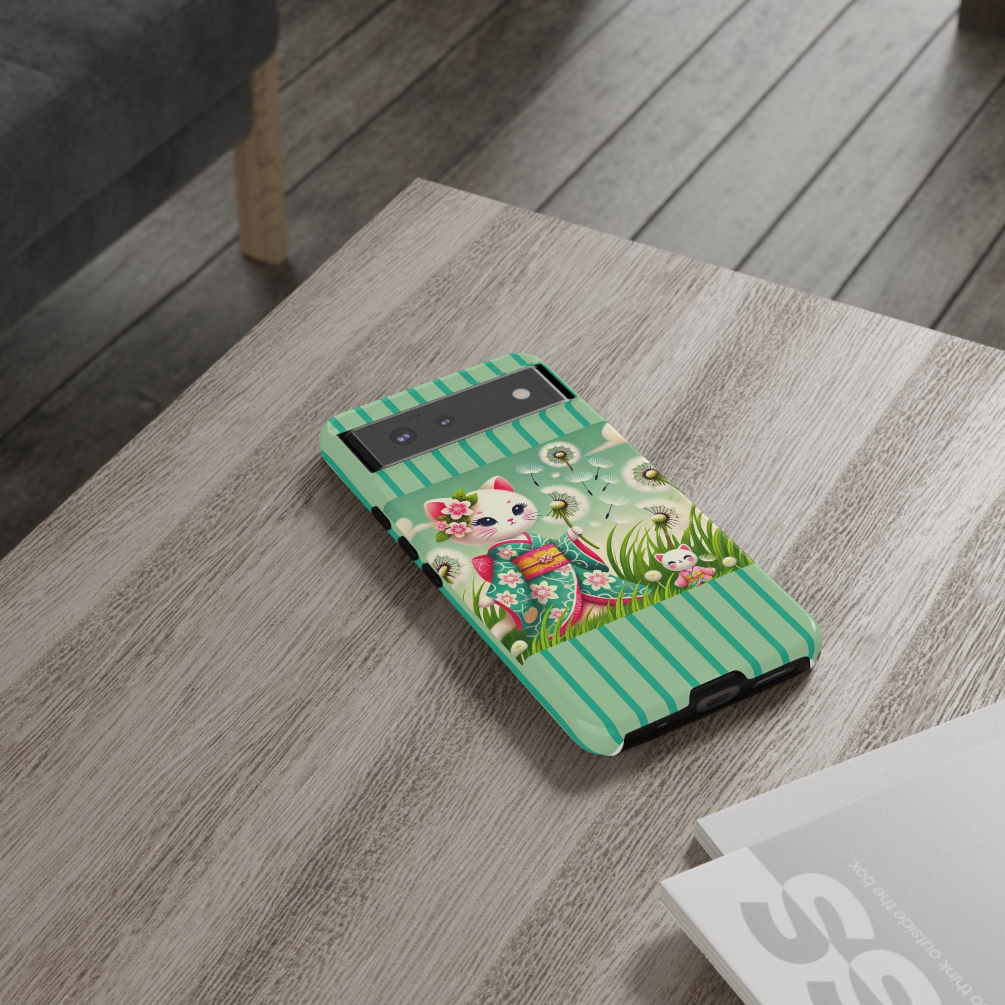 Add a touch of calm charm to your day with our Geisha Kitten and the Dandelion Phone Cases. Designed for iPhone, Samsung Galaxy, and Google Pixel devices, these premium-quality cases combine everyday protection with the gentle beauty of whimsical art. The design features a serene illustration of a geisha kitten and her tiny kitten doll, both dressed in matching kimonos, surrounded by tall swaying grass and drifting dandelion seeds. The soft colors and delicate details create a dreamy, tranquil mood that transforms your phone into a peaceful work of art.