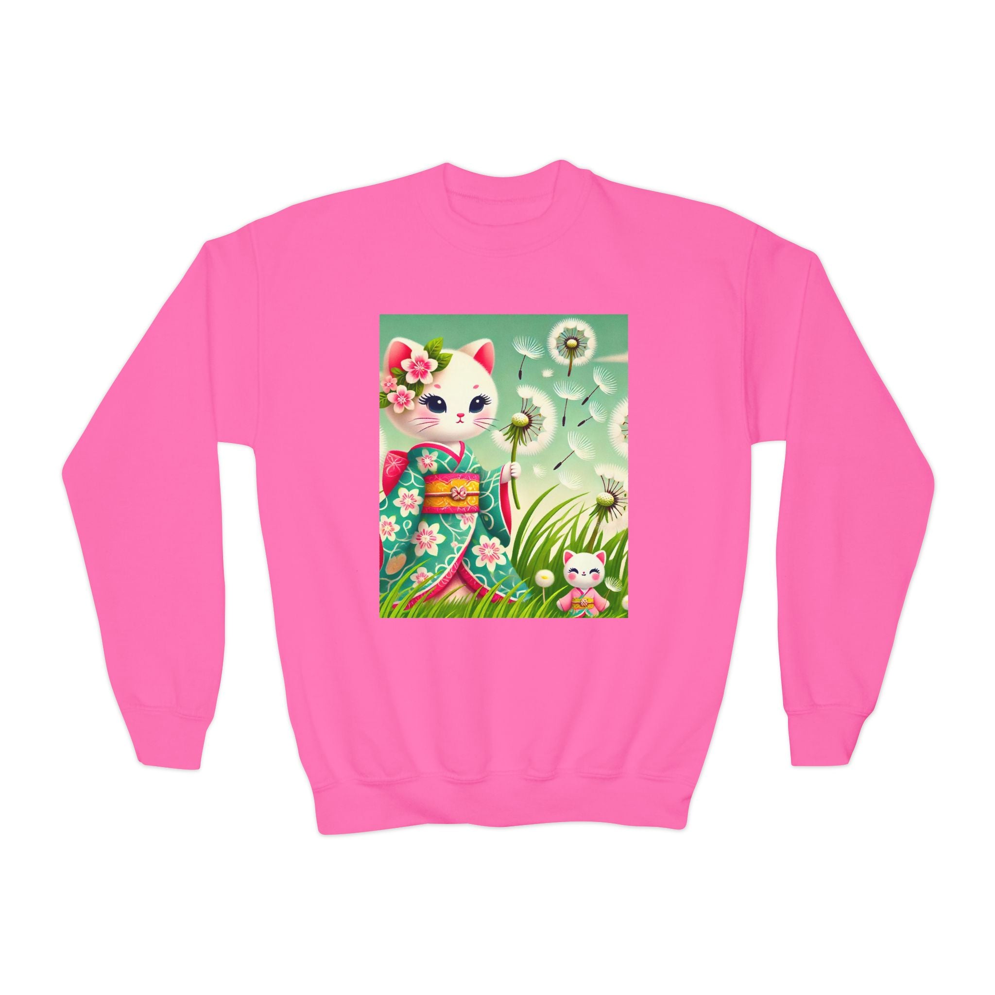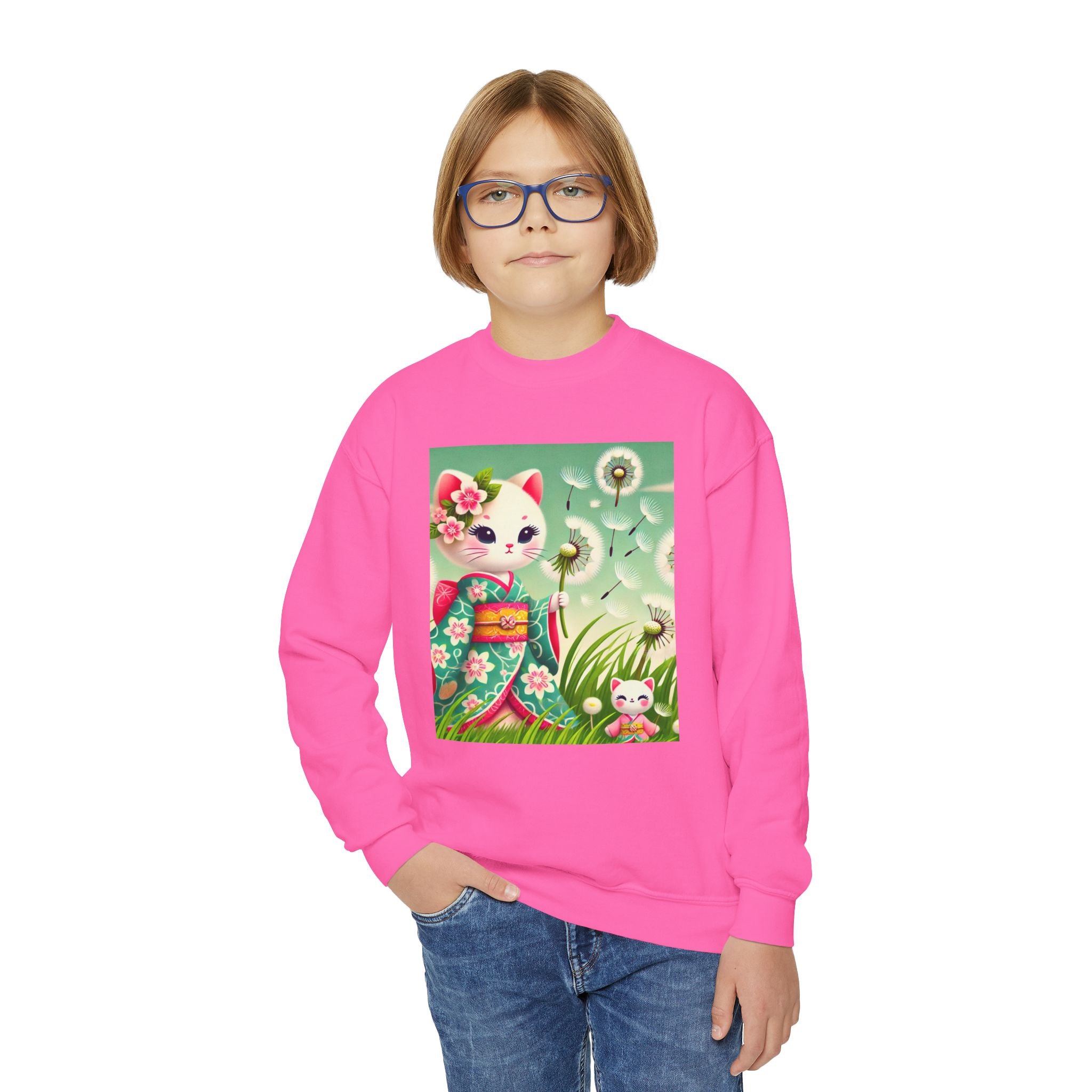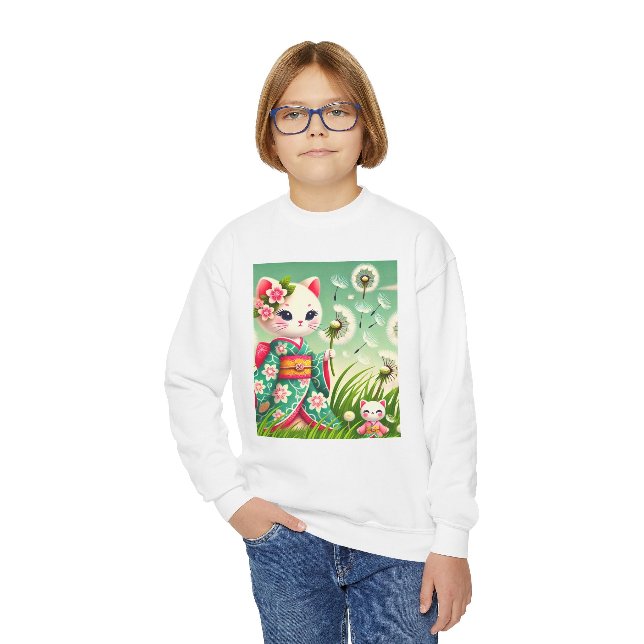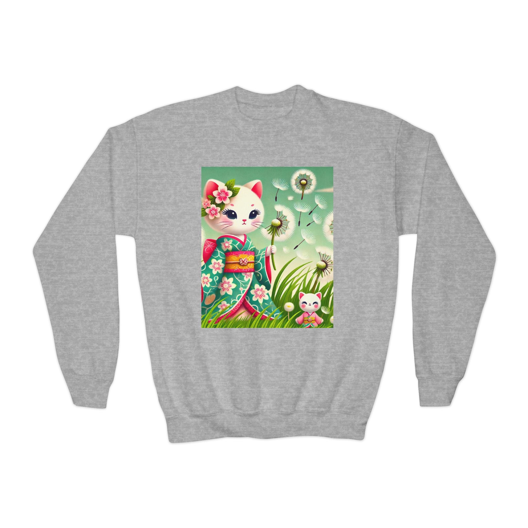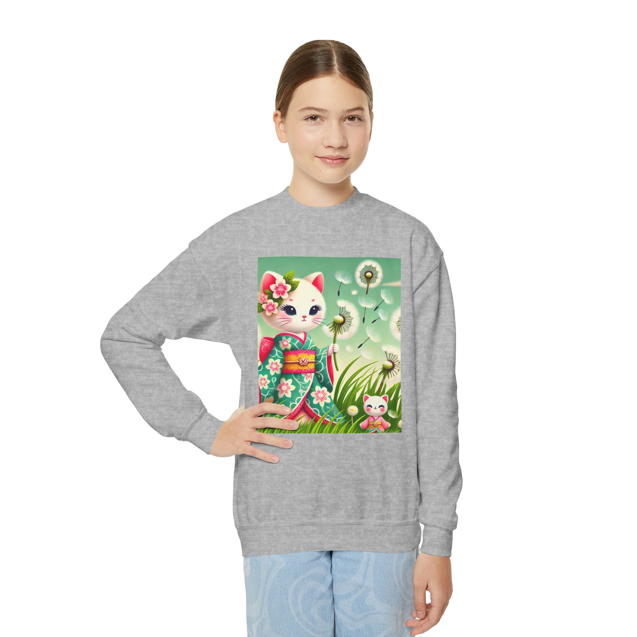 Geisha Kitten and the Dandelion Wish Youth Crewneck Sweatshirt combines everyday comfort with enchanting storytelling. Made from a balanced blend of 50% cotton and 50% polyester, this Gildan 18000B sweatshirt offers warmth, softness, and lasting quality—perfect for school, play, or cozy afternoons. Its medium-heavy fabric provides a premium, snug feel, while the loose fit ensures comfort and freedom of movement. Please note: due to the fabric properties, the White color variant may appear slightly off-white.