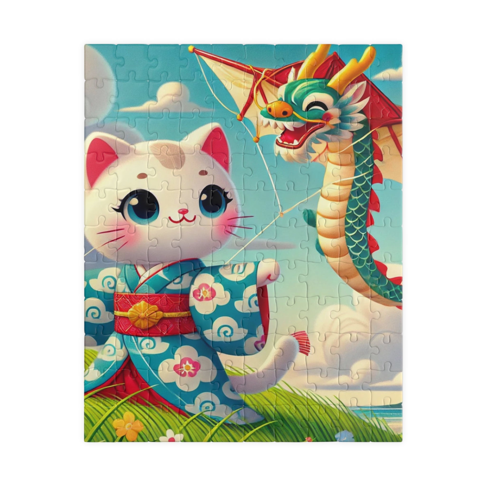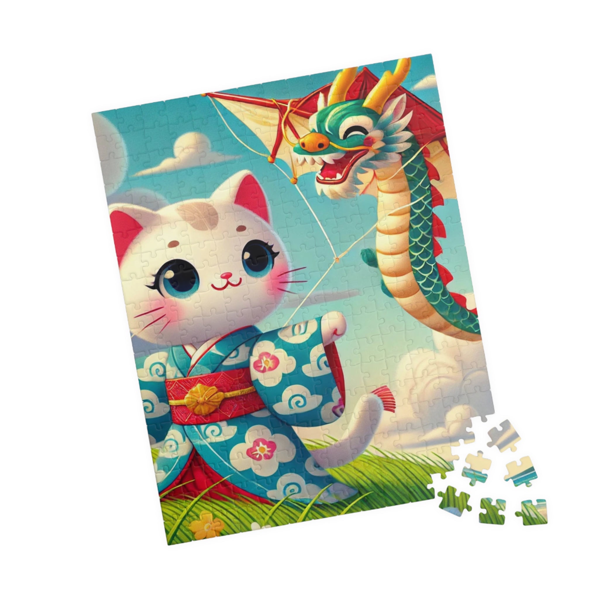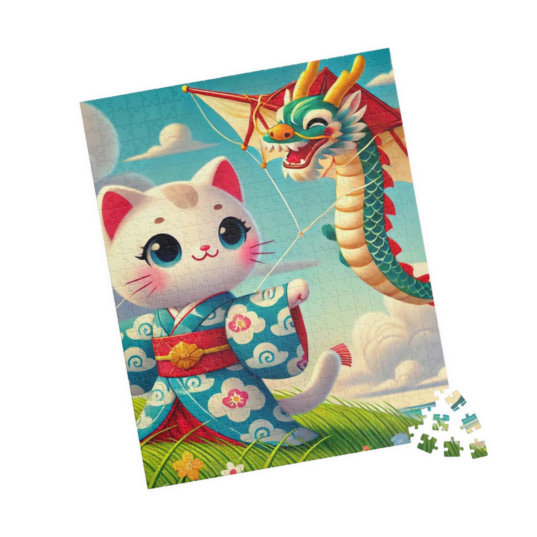 Let your imagination soar with Geisha Kitten and the Dragon Kite, a captivating scene that celebrates whimsy, beauty, and the art of play. This exquisite puzzle helps adults and kids alike spend quality time over a game they’ll love. Each puzzle comes in a glossy finish and features a sturdy chipboard backing, while each pack includes a reference print to easily put the puzzle together. Available in 110, 252, or 520 pieces, it’s the perfect blend of relaxation and artistic delight.