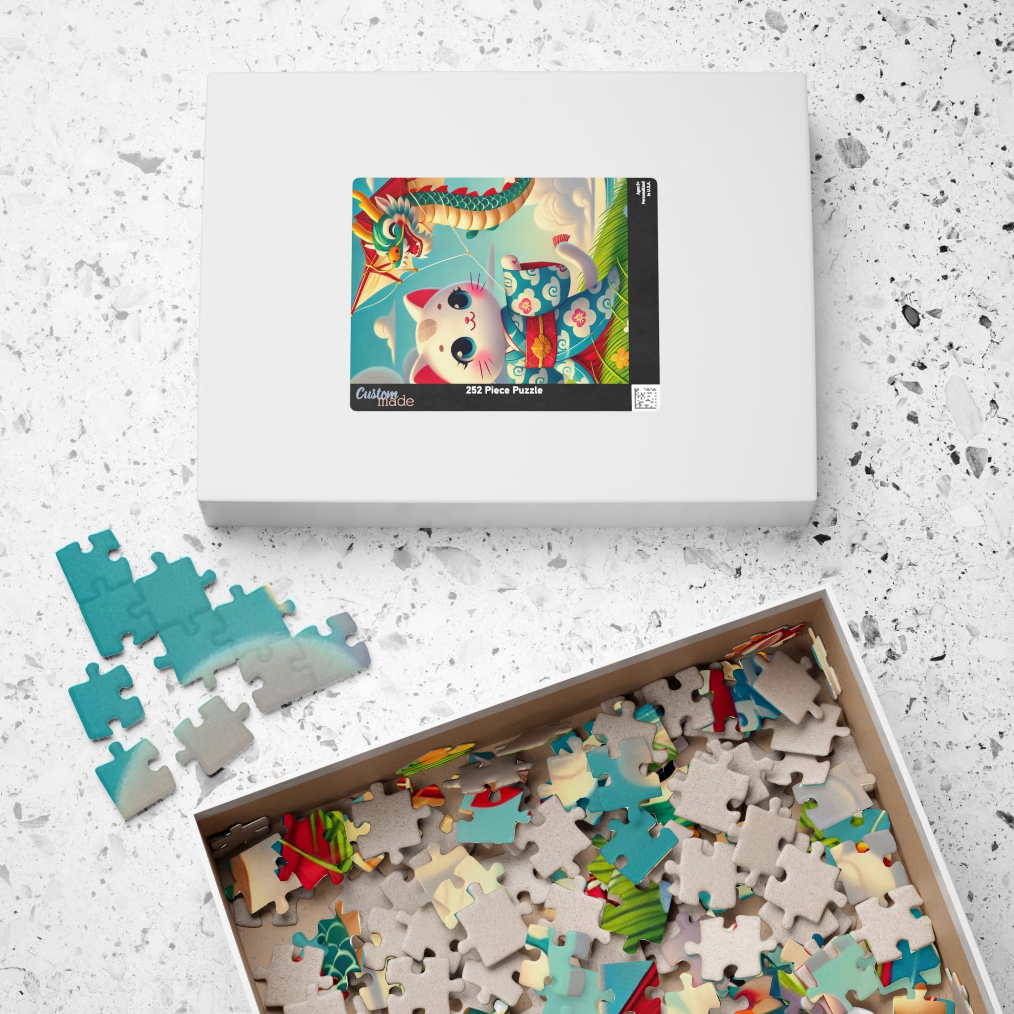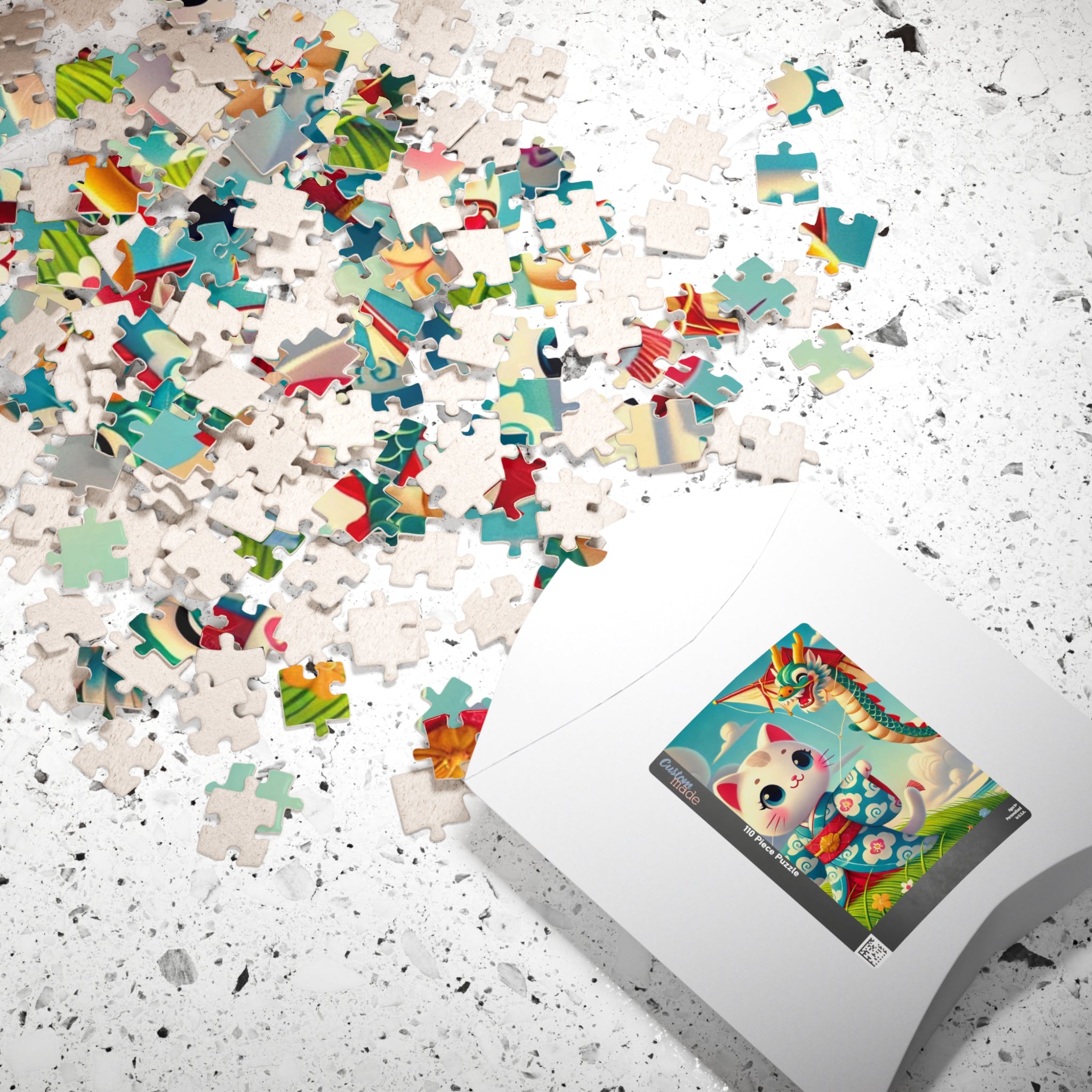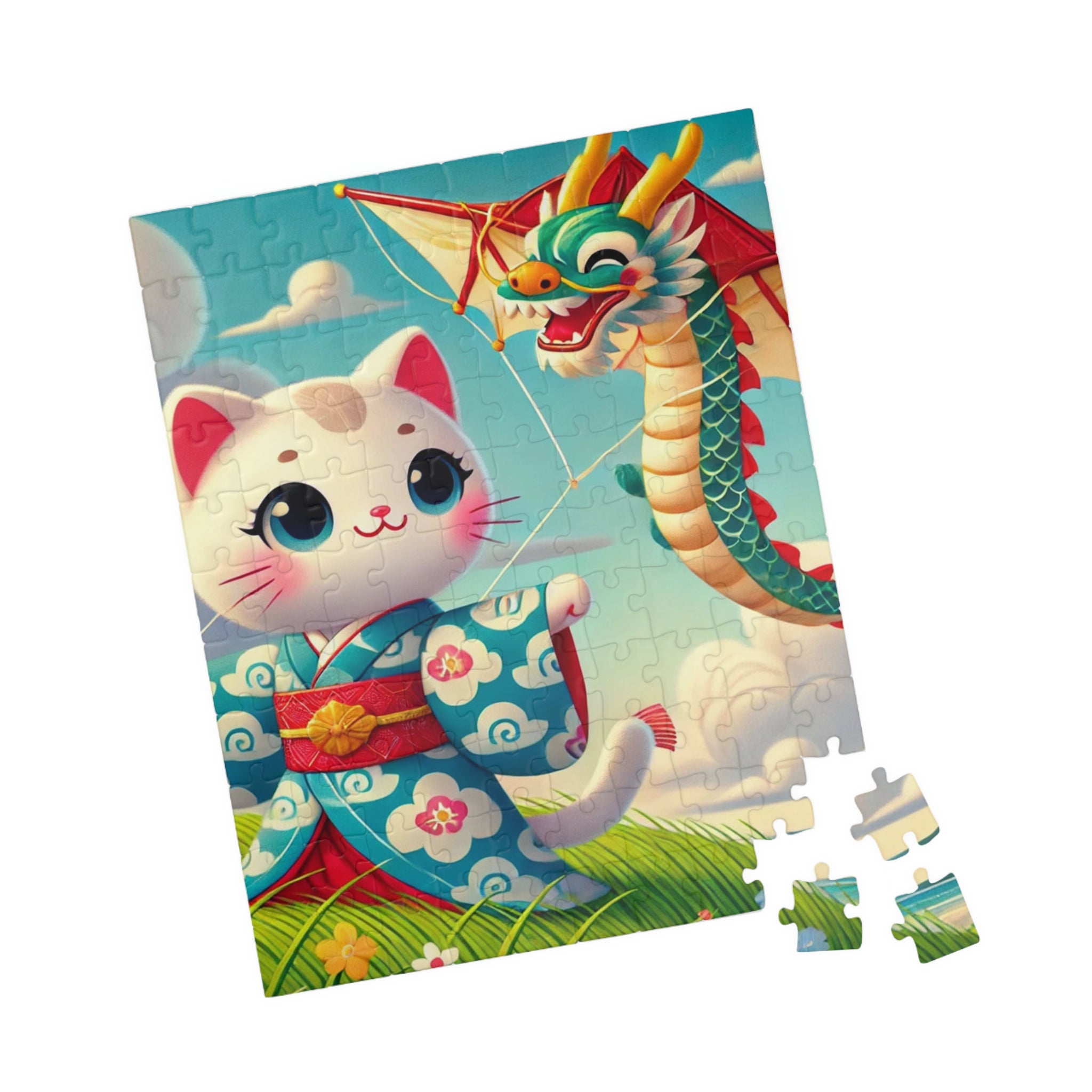 Let your imagination soar with Geisha Kitten and the Dragon Kite, a captivating scene that celebrates whimsy, beauty, and the art of play. This exquisite puzzle helps adults and kids alike spend quality time over a game they’ll love. Each puzzle comes in a glossy finish and features a sturdy chipboard backing, while each pack includes a reference print to easily put the puzzle together. Available in 110, 252, or 520 pieces, it’s the perfect blend of relaxation and artistic delight.