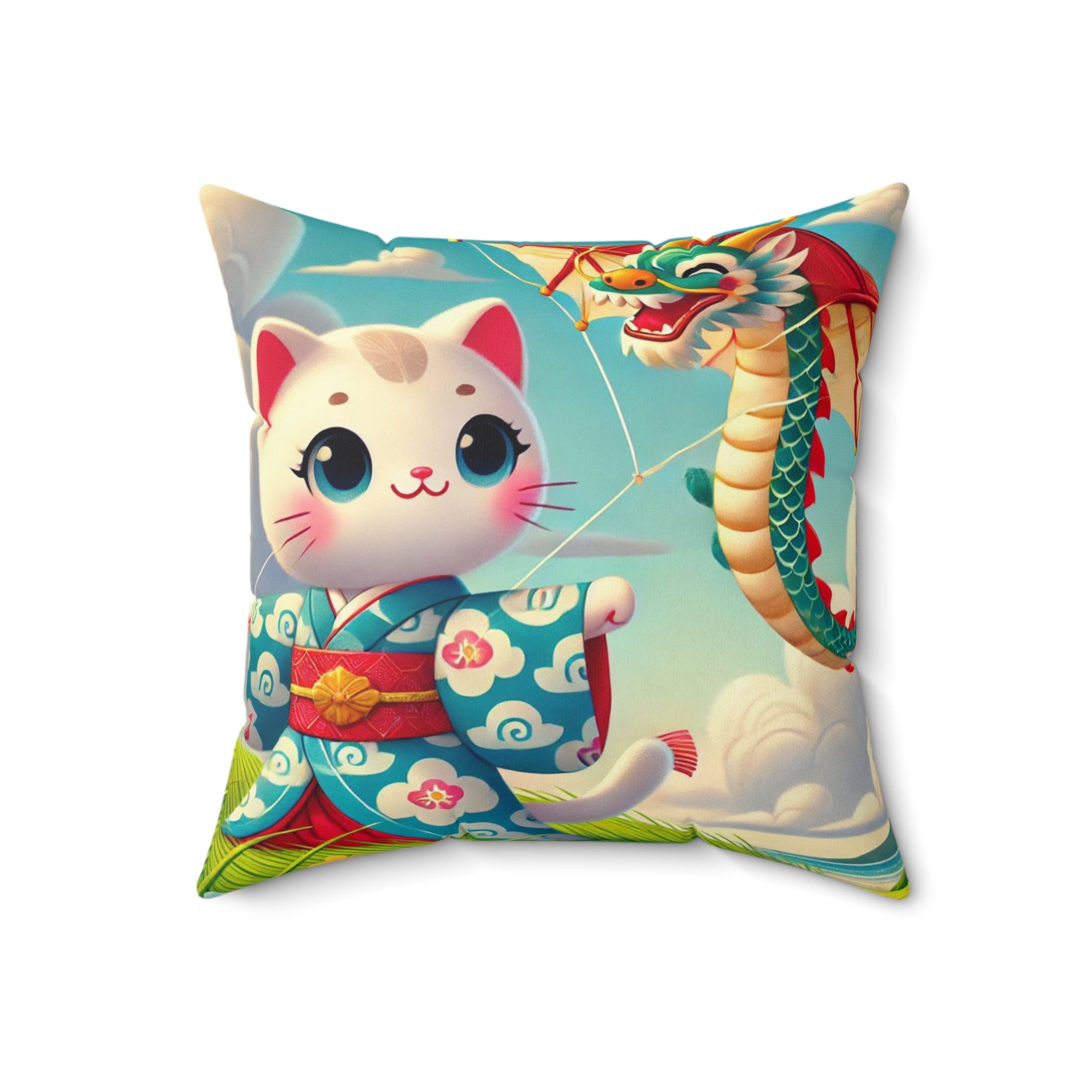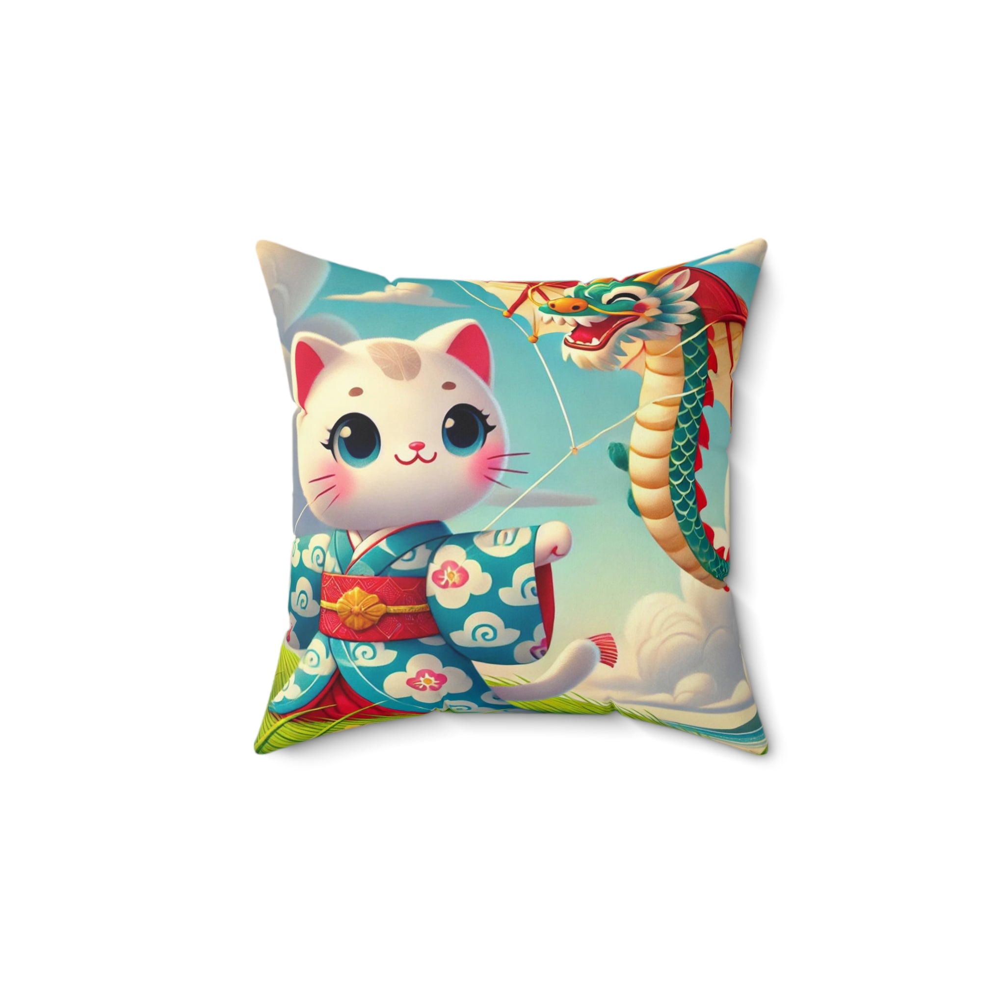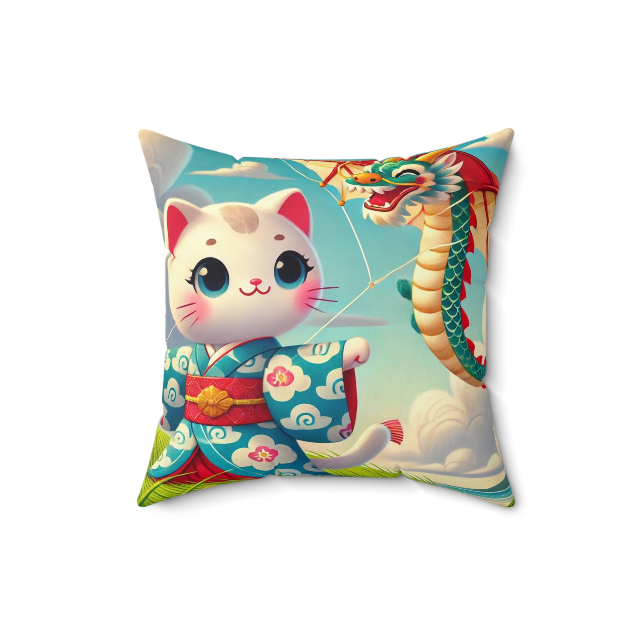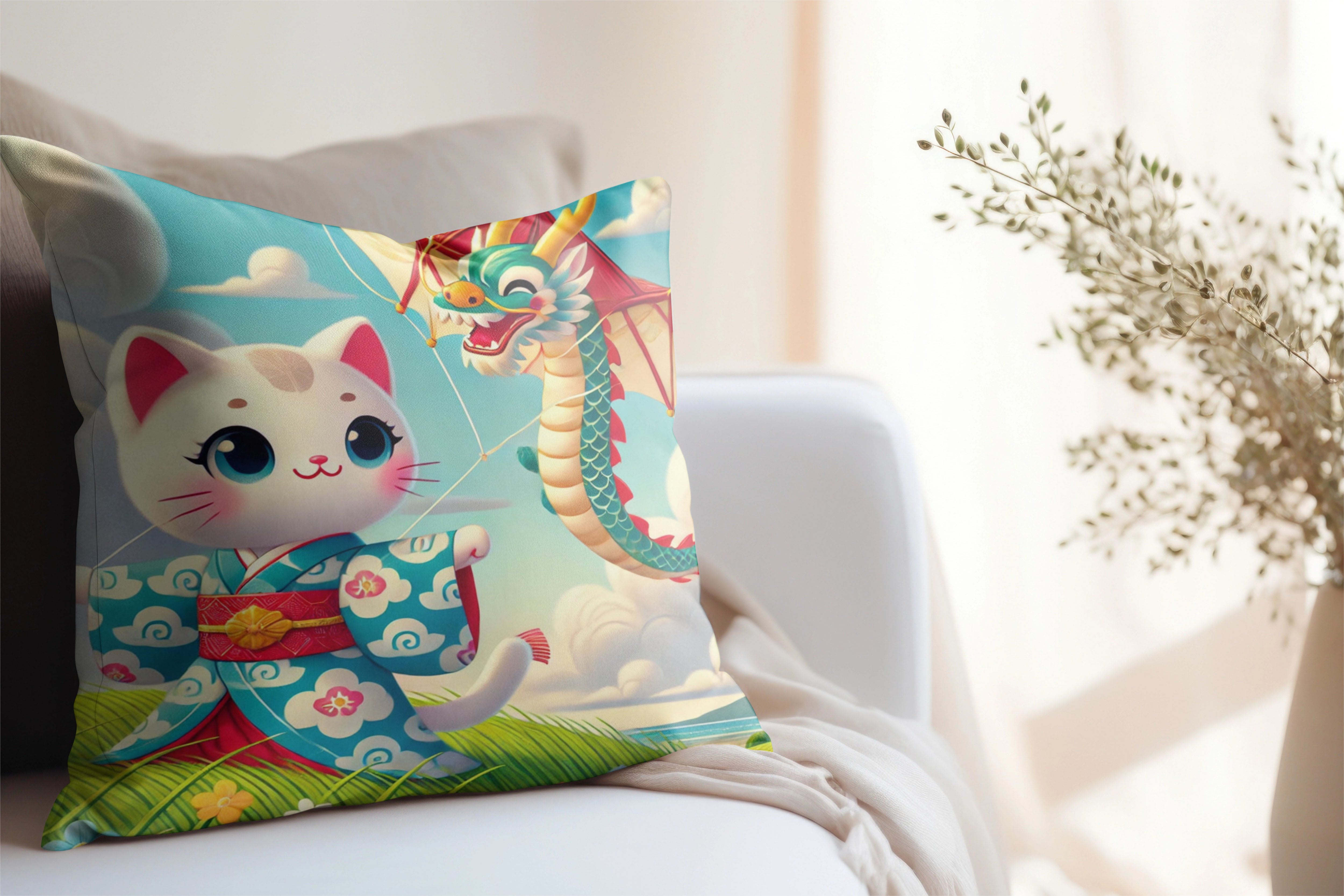 Geisha Kitten and the Dragon Kite Spun Polyester Square Pillow captures the perfect balance of elegance, energy, and imagination. These beautiful indoor pillows, available in various sizes, serve as statement pieces that add warmth and personality to any space. Made from durable spun polyester fabric, each pillow combines comfort with artistic sophistication, transforming everyday decor into an expression of style and creativity.