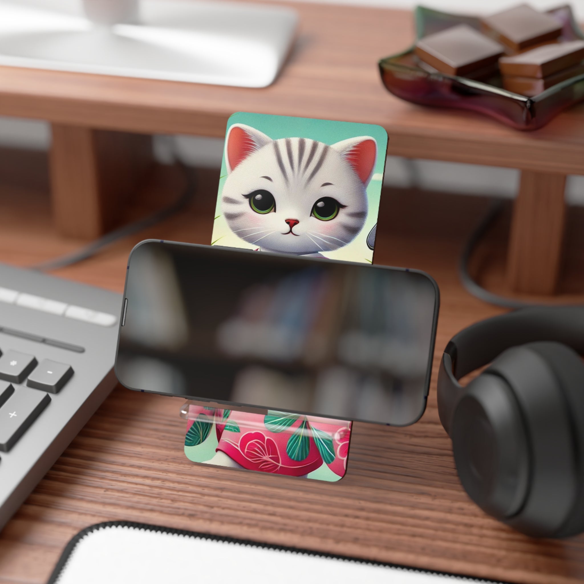 Add both charm and functionality to your space with this mobile display stand, perfect for your desk, nightstand, or as a travel companion for easy mobile browsing. Made from a sturdy hardboard panel with a durable plastic leg, this stand offers a stable, wobble-free experience while you enjoy your favorite content. The two-piece construction allows for quick assembly and effortless disassembly, making it easy to carry on the go. The glossy finish adds a sleek, polished look to the one-sided print.