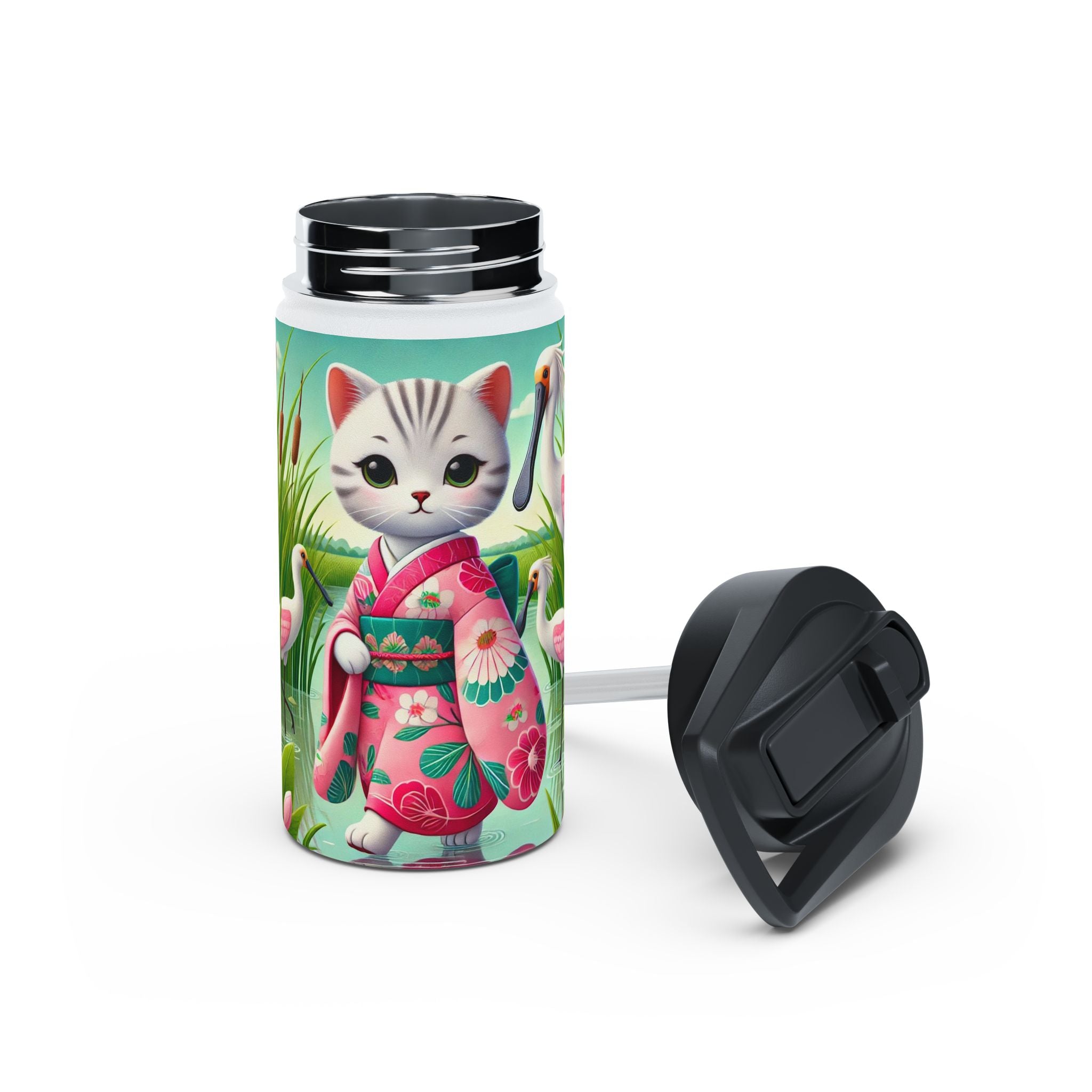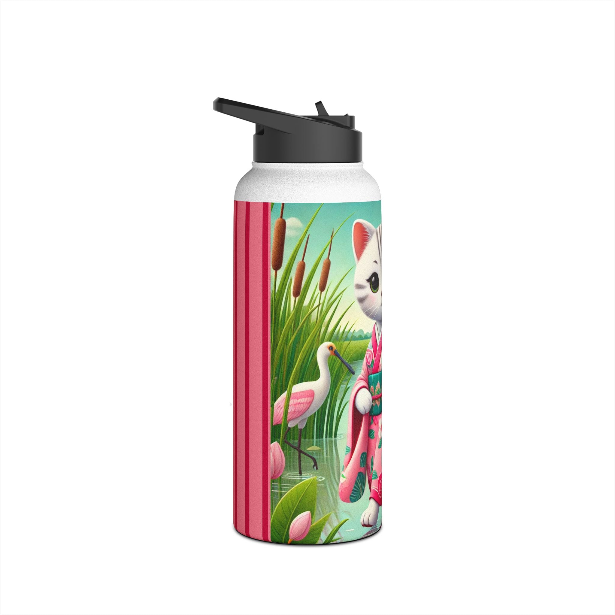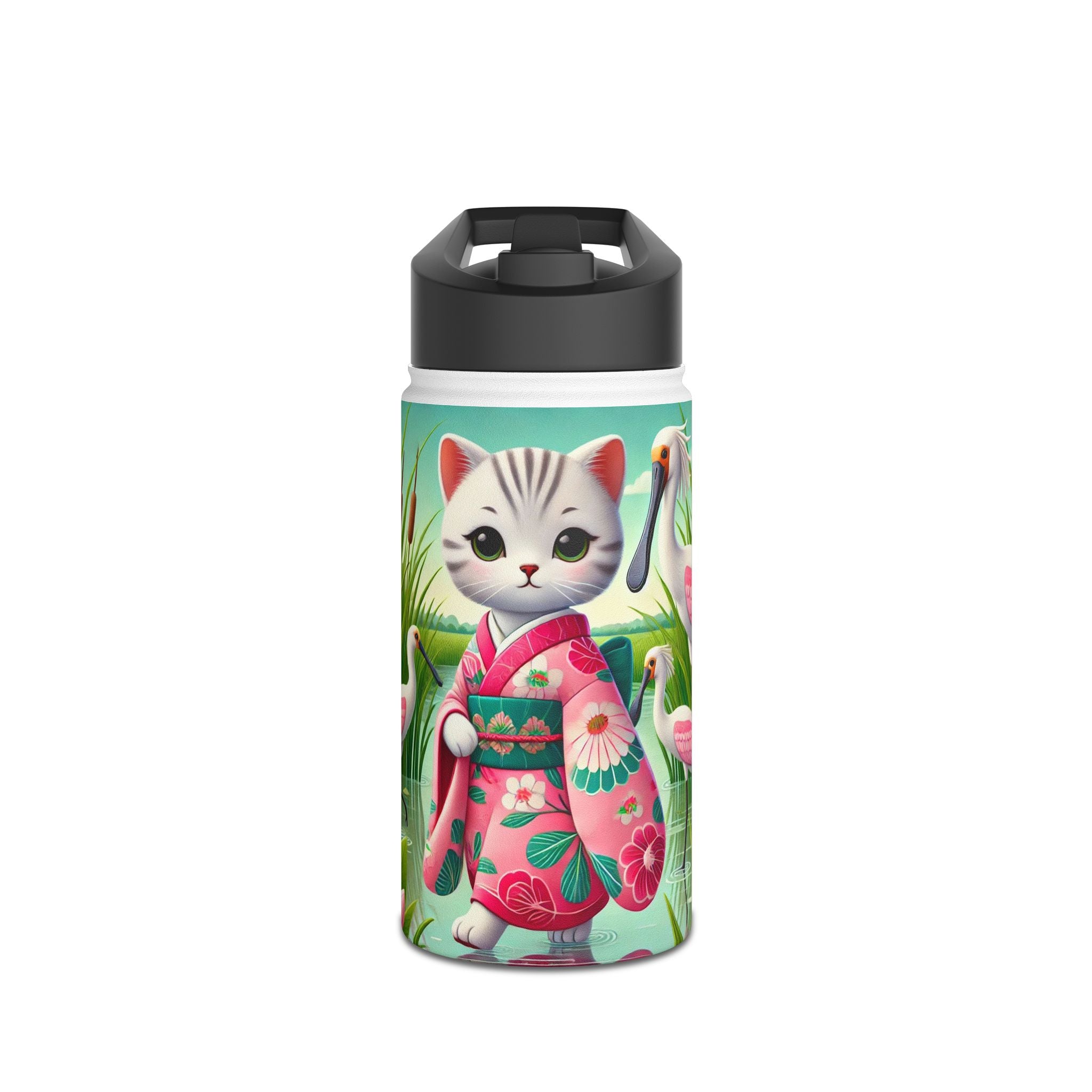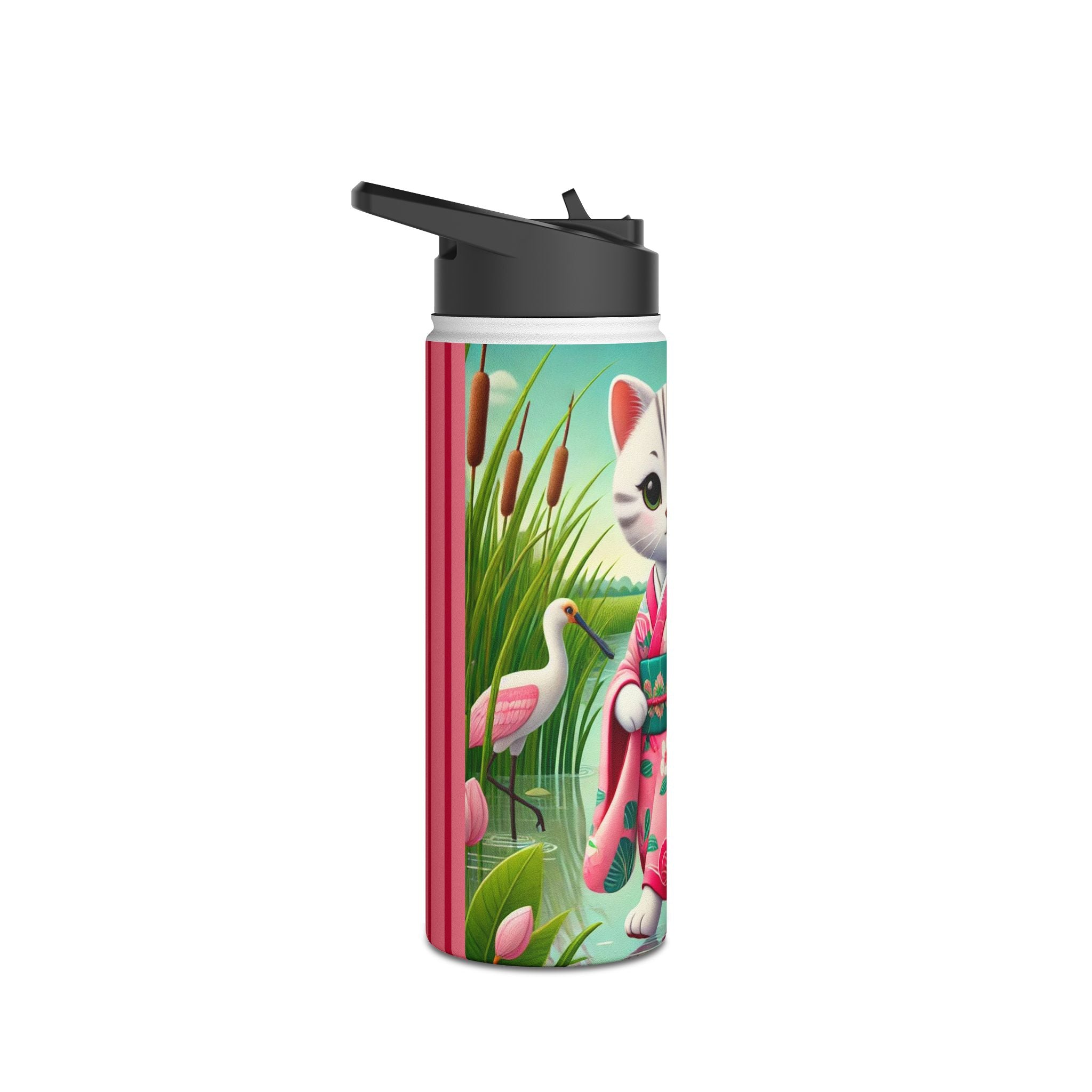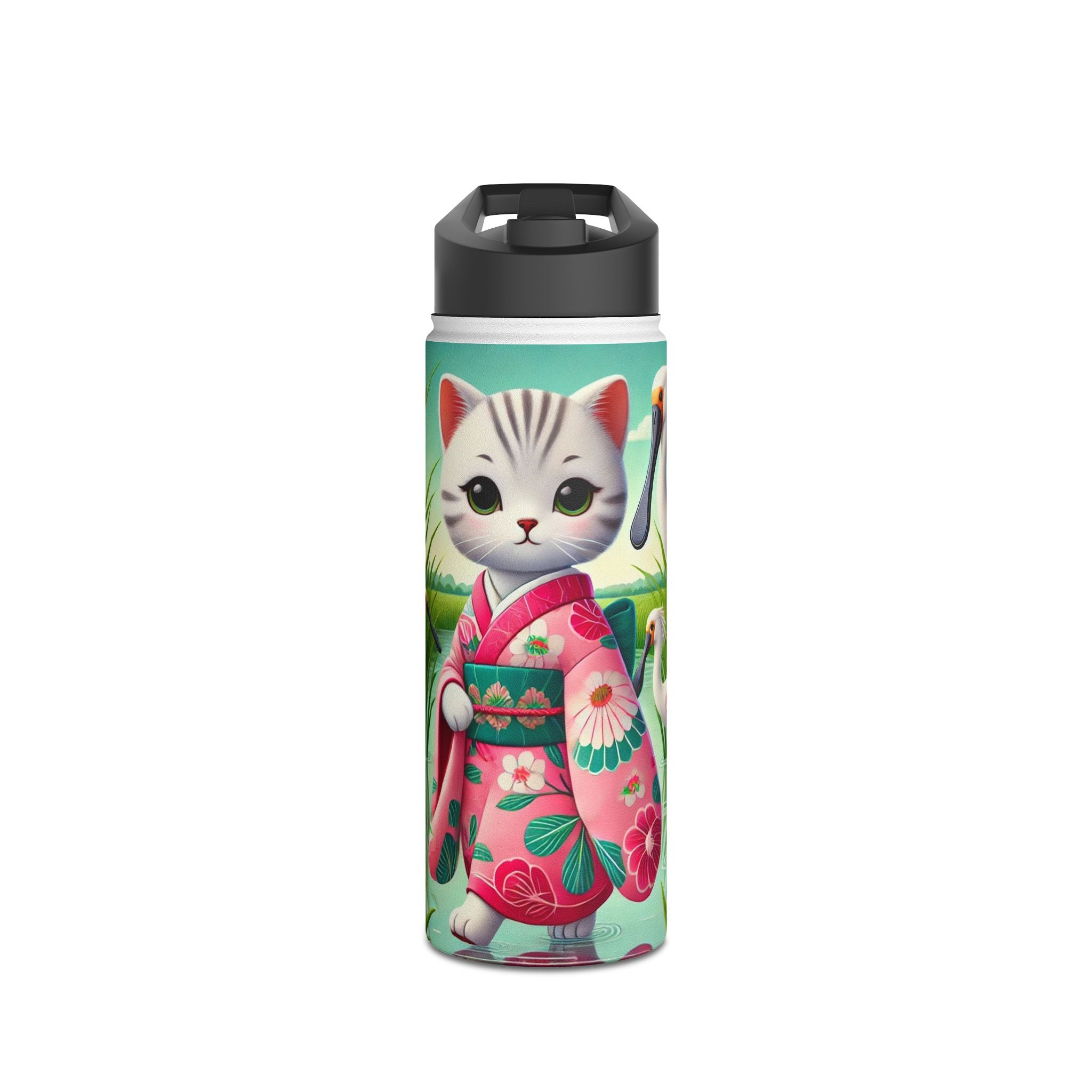 Geisha Kitten Strolls Among the Spoonbills Stainless Steel Water Bottle, Standard Lid invites a sense of calm and elegance to your everyday adventures. Crafted from durable double-wall stainless steel, this BPA-free bottle keeps your drinks icy cold for 24 hours or soothingly hot for 12. Available in three convenient sizes (12oz, 18oz, 32oz) with a secure twist-on lid, it’s the perfect companion for work, travel, or leisure—beautiful, practical, and timeless.
