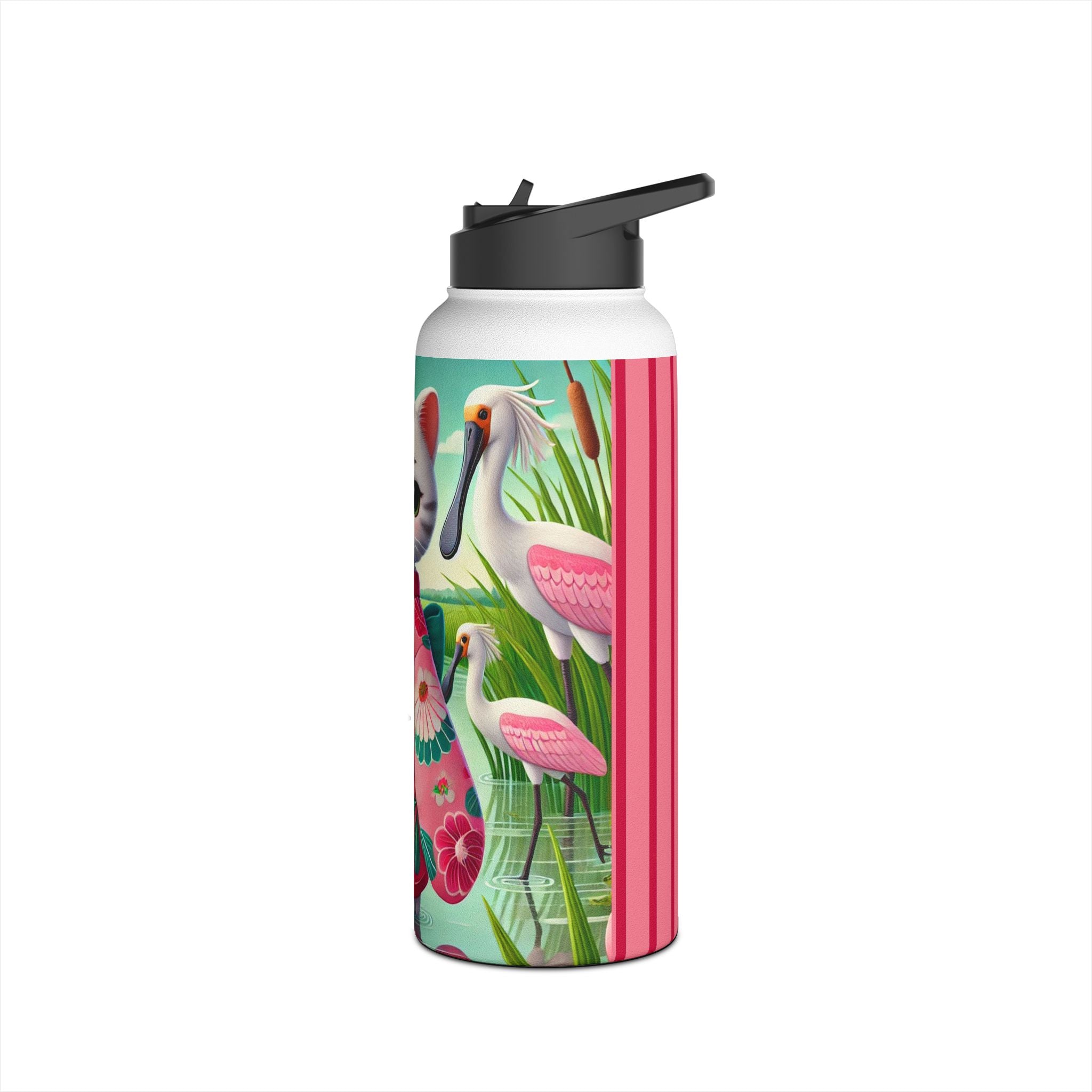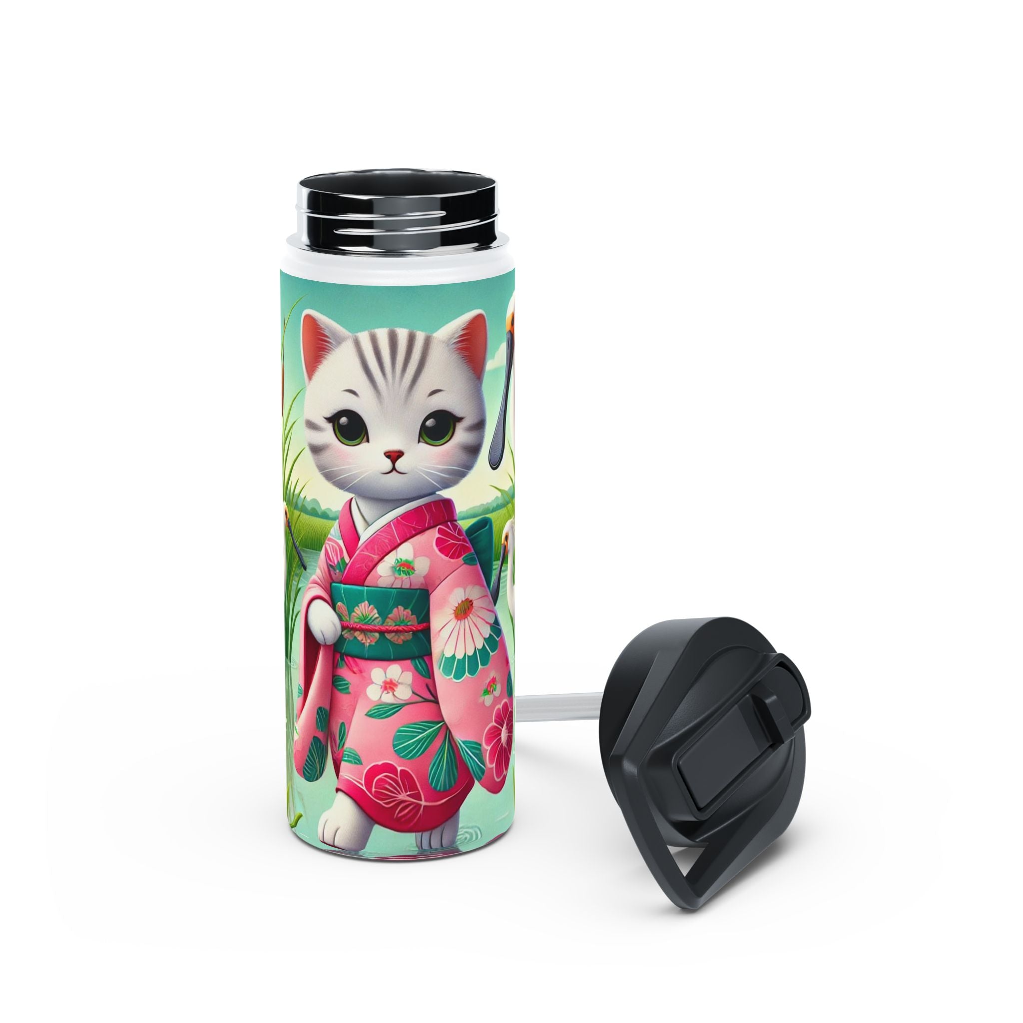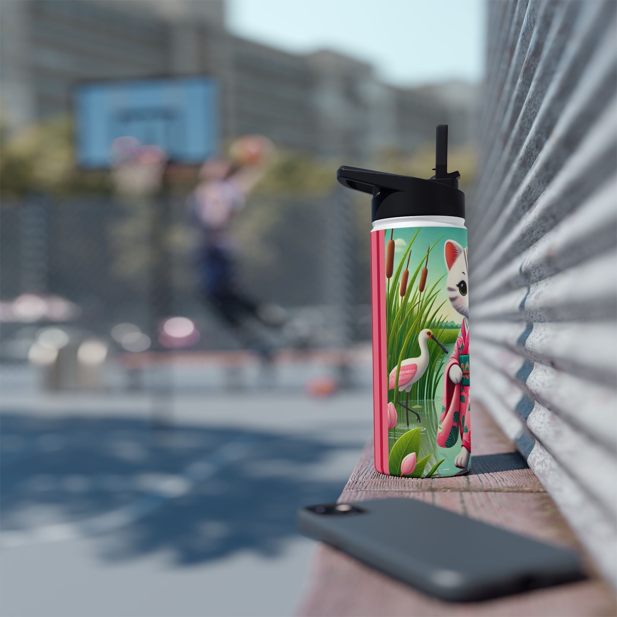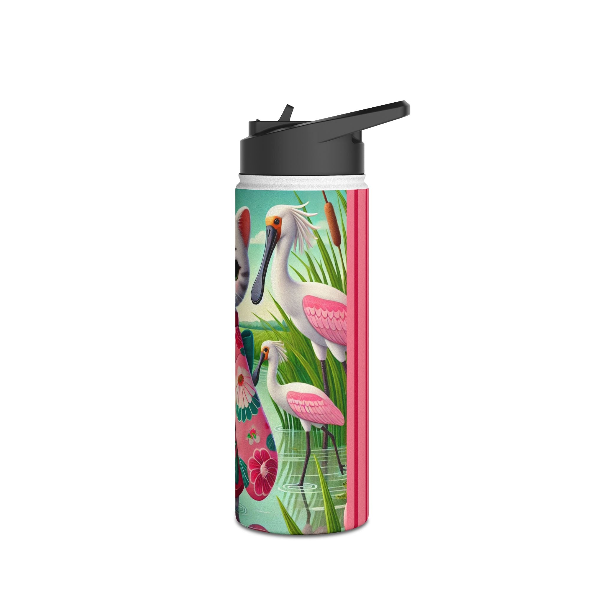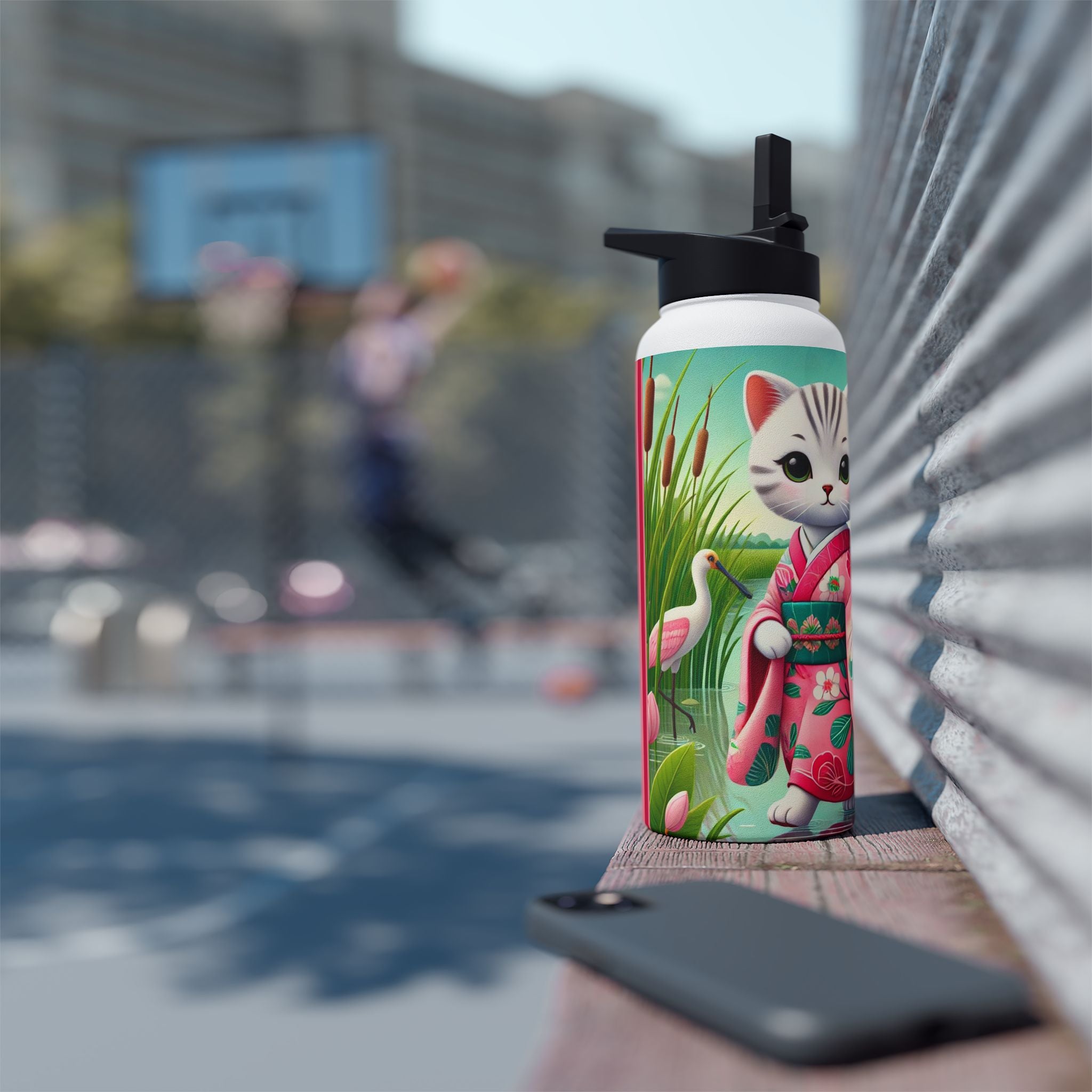 Geisha Kitten Strolls Among the Spoonbills Stainless Steel Water Bottle, Standard Lid invites a sense of calm and elegance to your everyday adventures. Crafted from durable double-wall stainless steel, this BPA-free bottle keeps your drinks icy cold for 24 hours or soothingly hot for 12. Available in three convenient sizes (12oz, 18oz, 32oz) with a secure twist-on lid, it’s the perfect companion for work, travel, or leisure—beautiful, practical, and timeless.