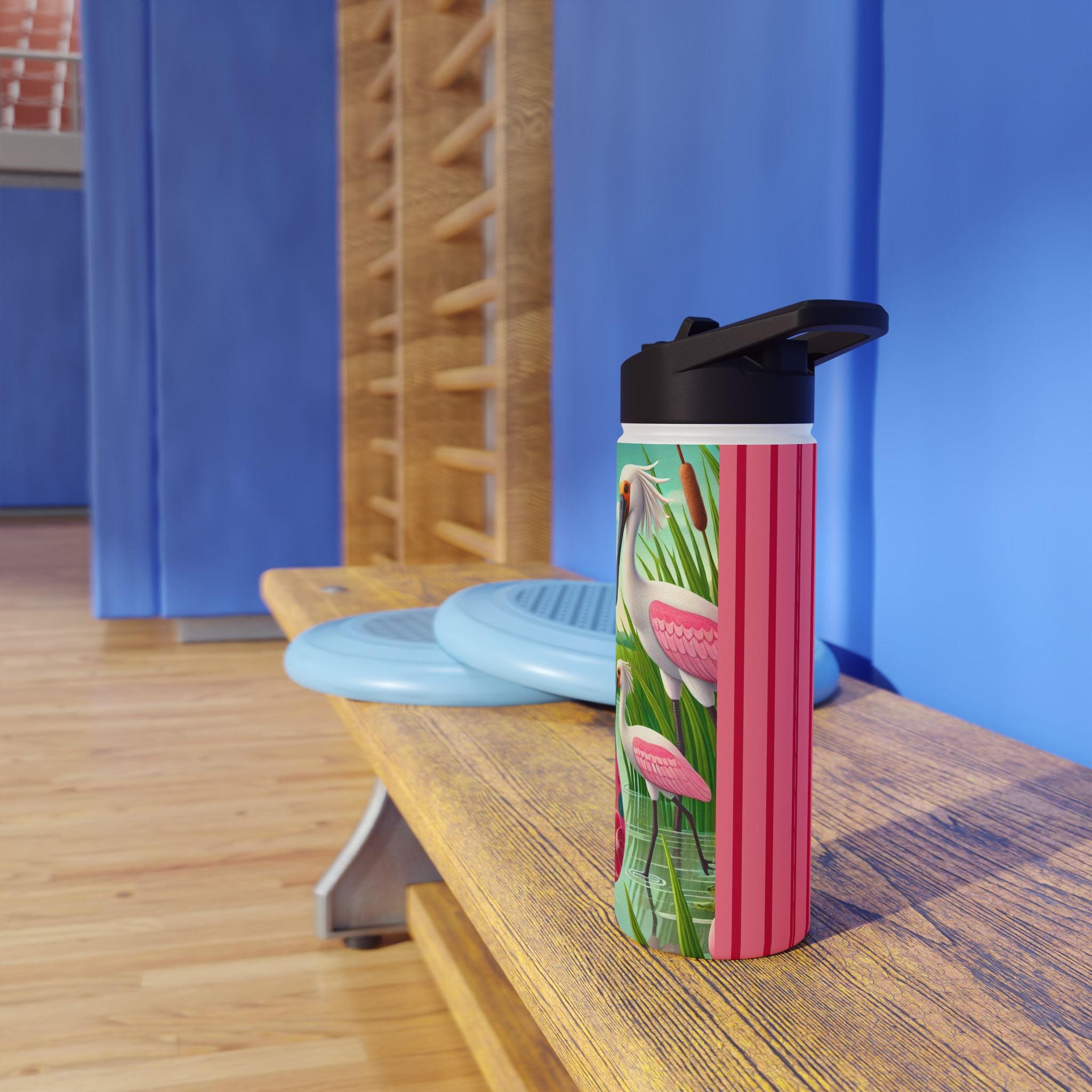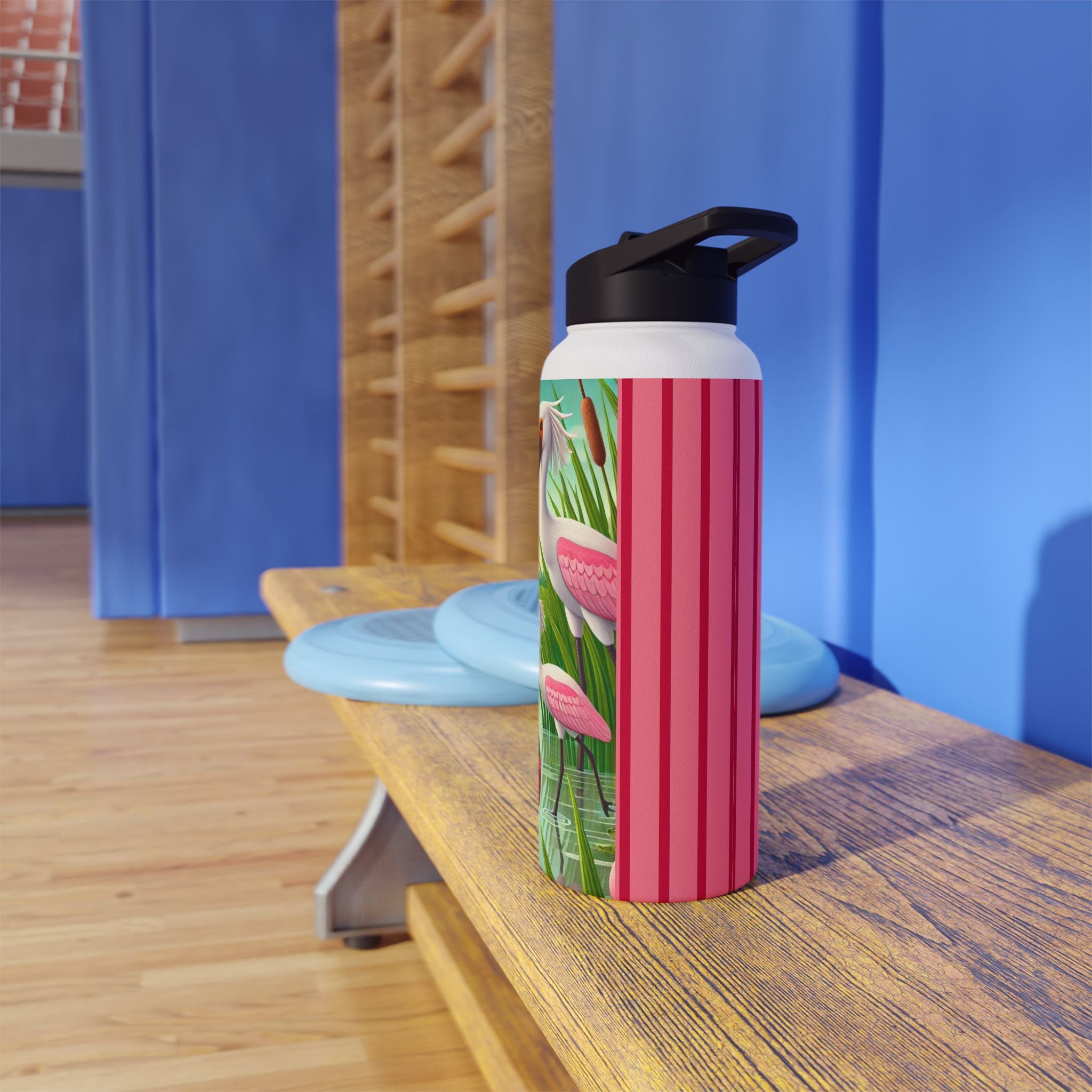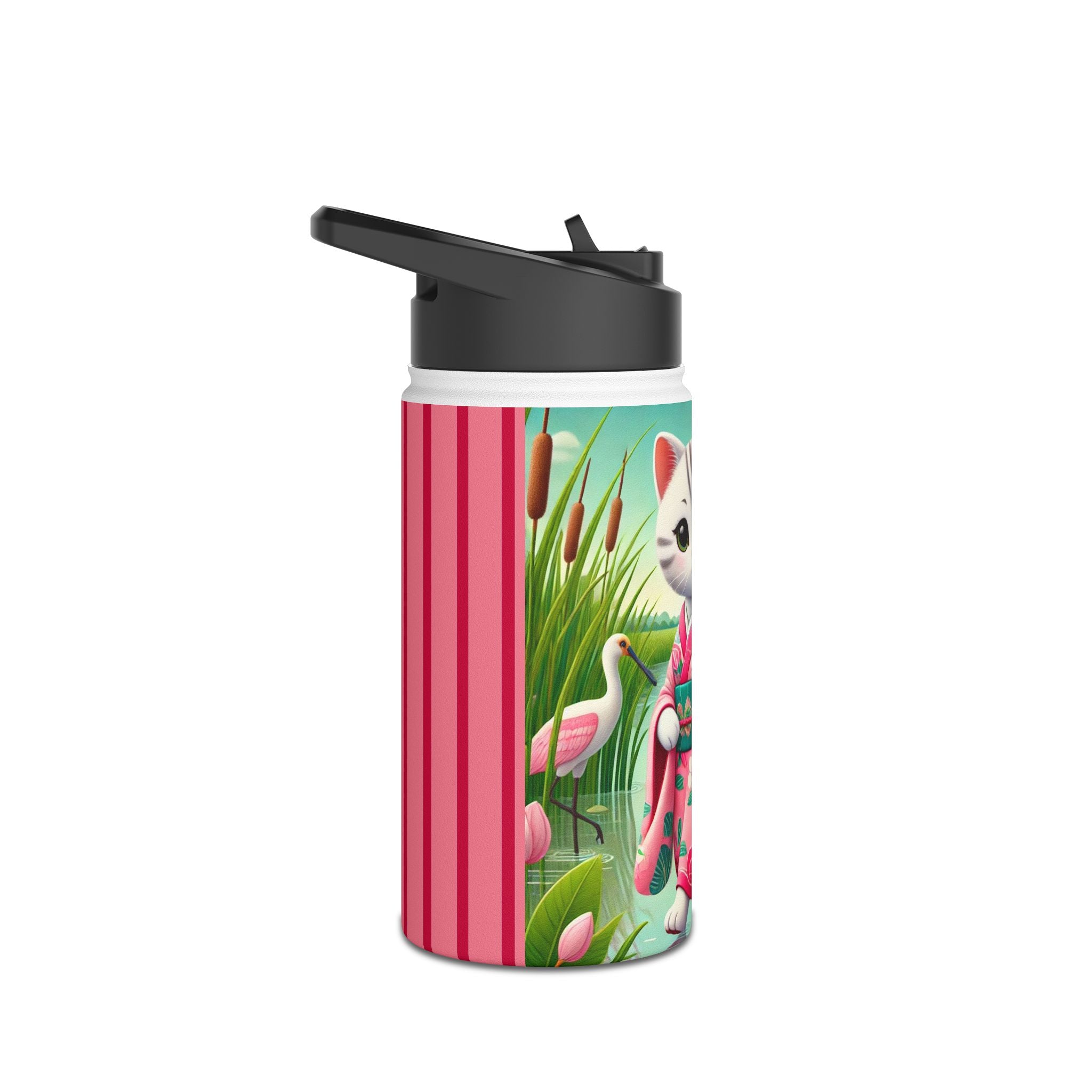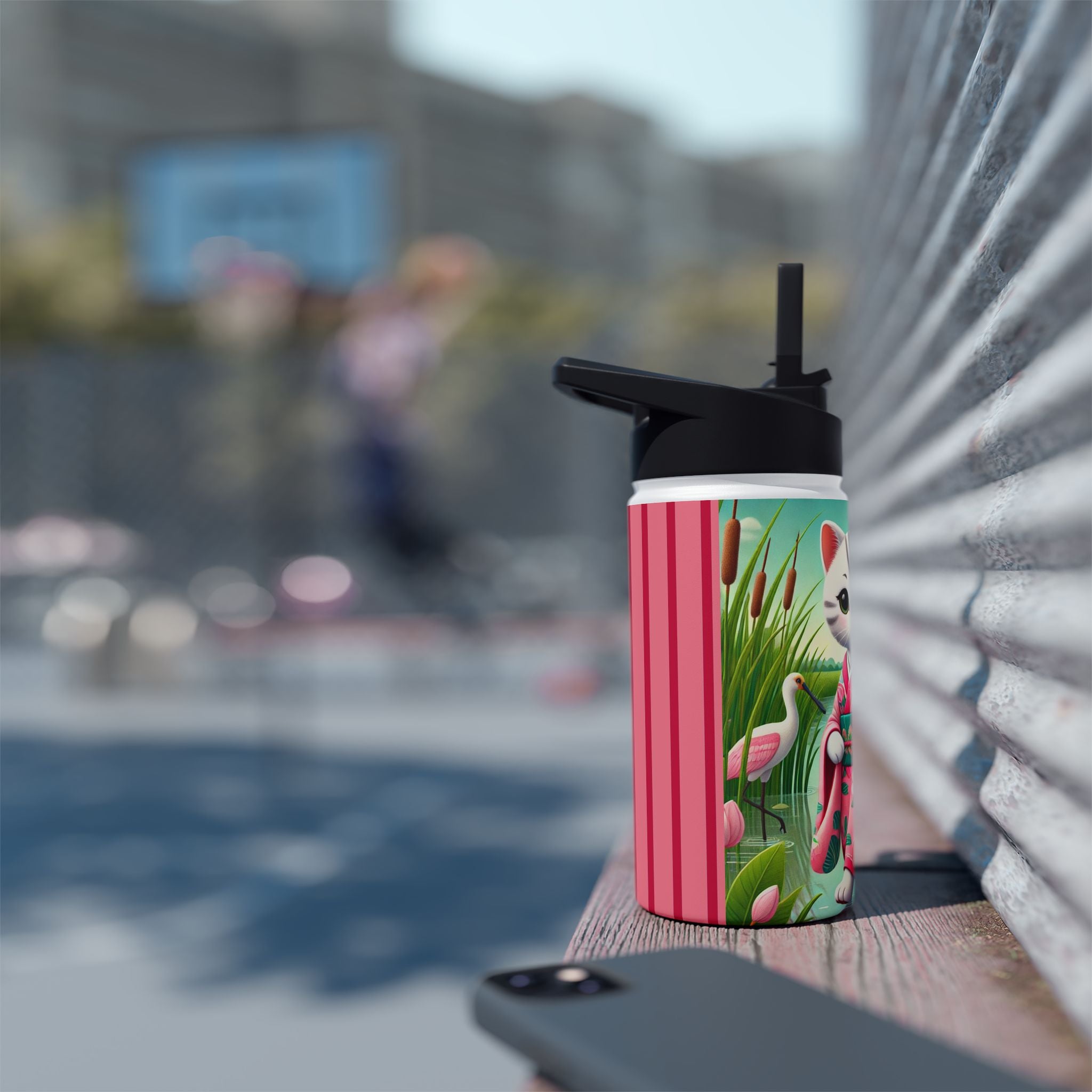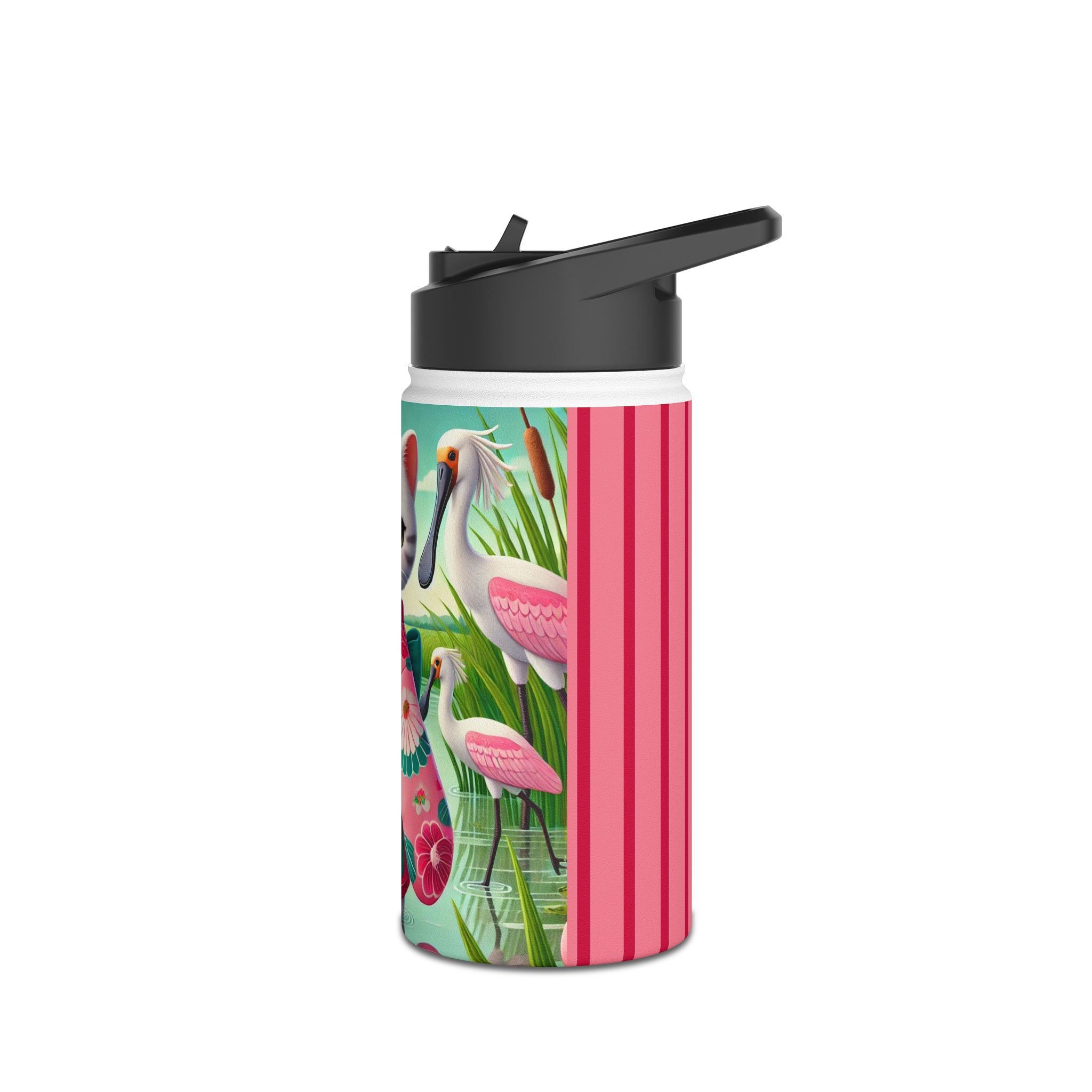 Geisha Kitten Strolls Among the Spoonbills Stainless Steel Water Bottle, Standard Lid invites a sense of calm and elegance to your everyday adventures. Crafted from durable double-wall stainless steel, this BPA-free bottle keeps your drinks icy cold for 24 hours or soothingly hot for 12. Available in three convenient sizes (12oz, 18oz, 32oz) with a secure twist-on lid, it’s the perfect companion for work, travel, or leisure—beautiful, practical, and timeless.