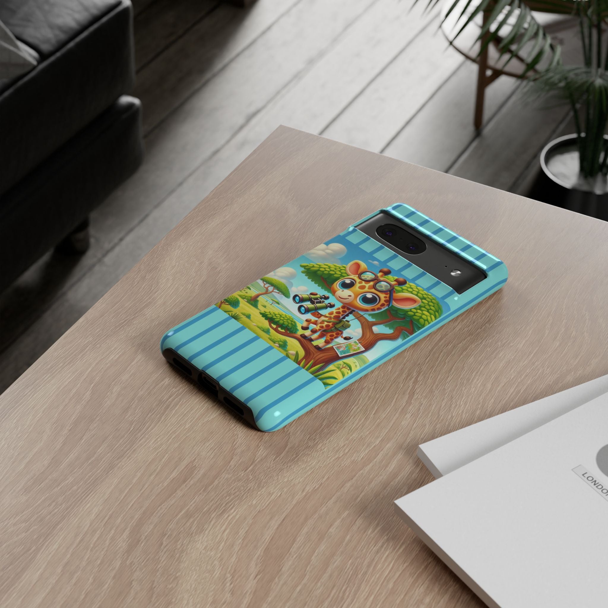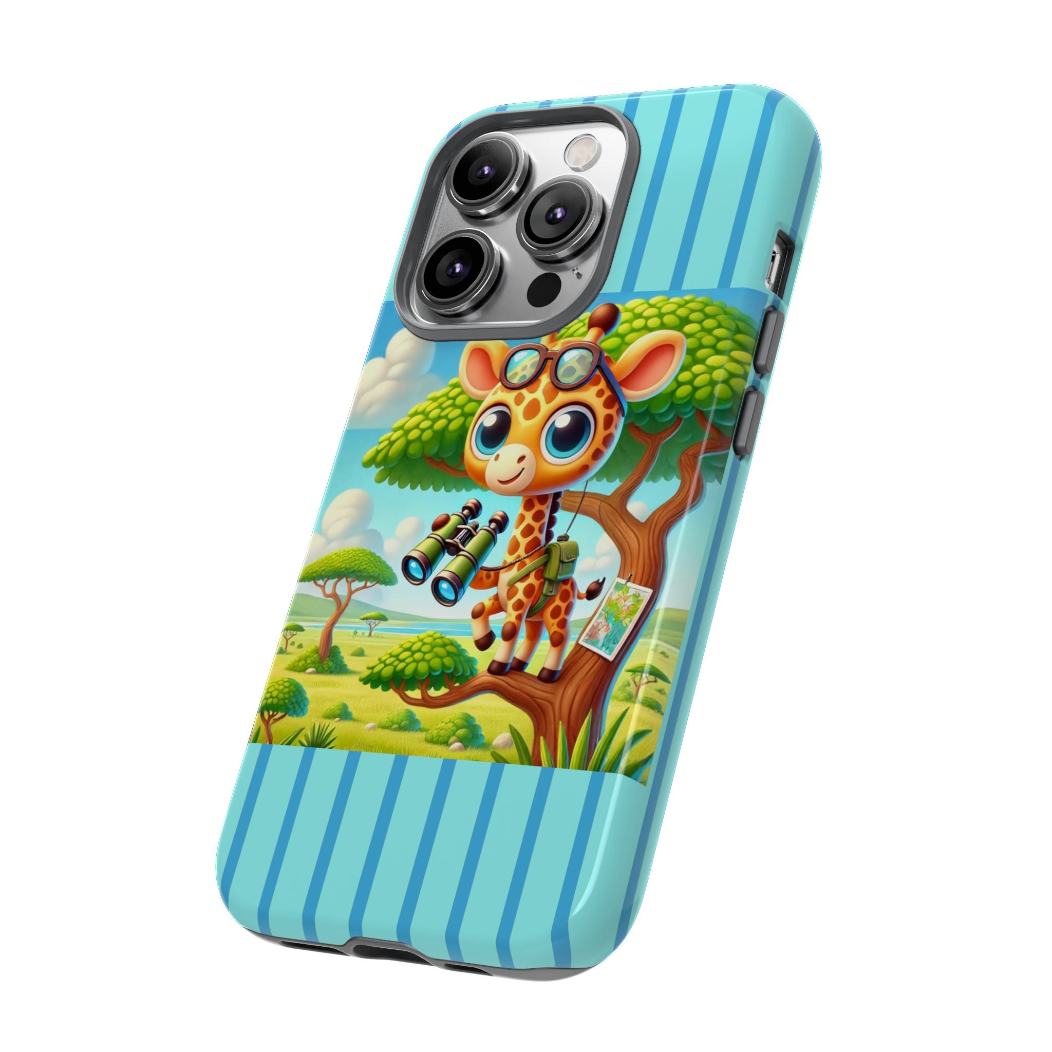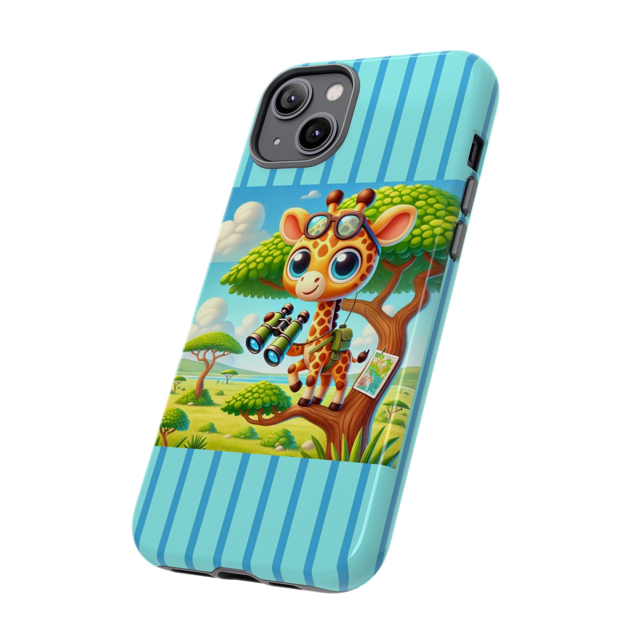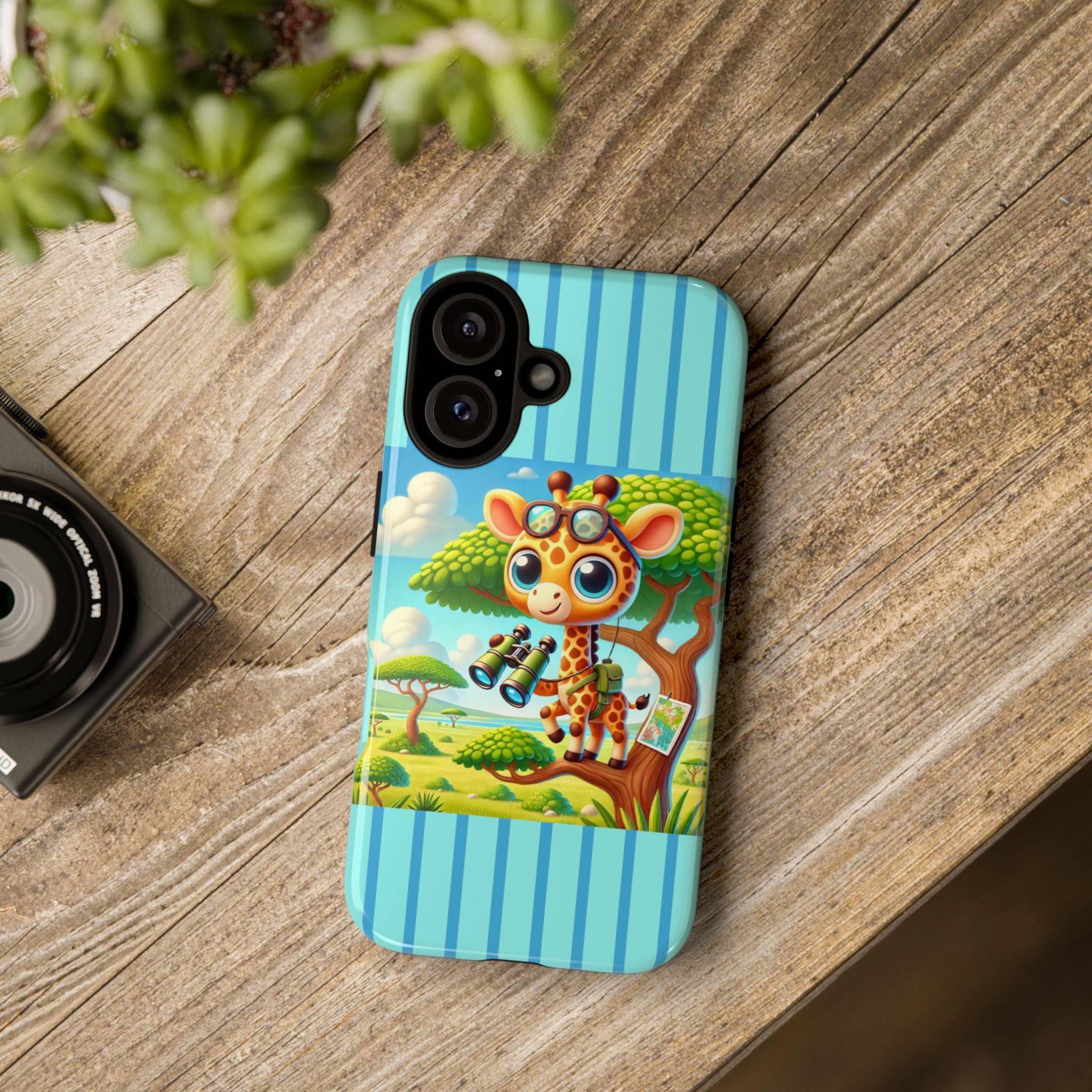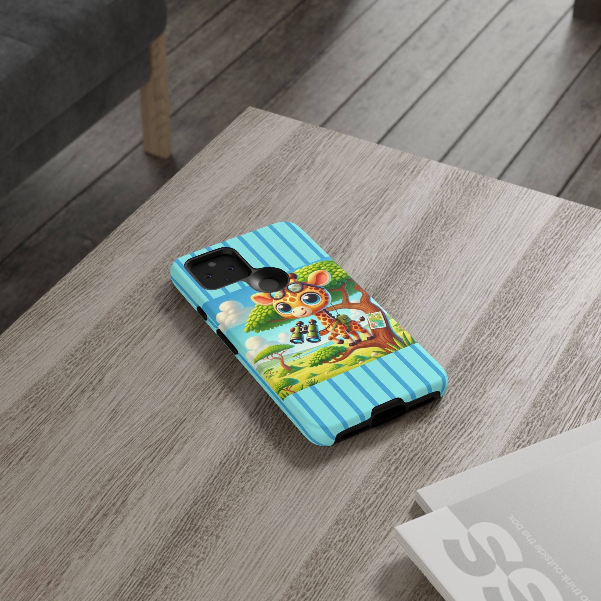 The enchanting illustration, Giraffe Lookout, features a tall, inquisitive giraffe perched high in a tree-top with a map and binoculars in hand, scanning the horizon for discovery. The scene captures a spirit of exploration and wonder, blending warm tones, expressive textures, and a touch of humor. With its whimsical charm and imaginative composition, this artwork transforms your phone into a joyful celebration of curiosity and creativity.