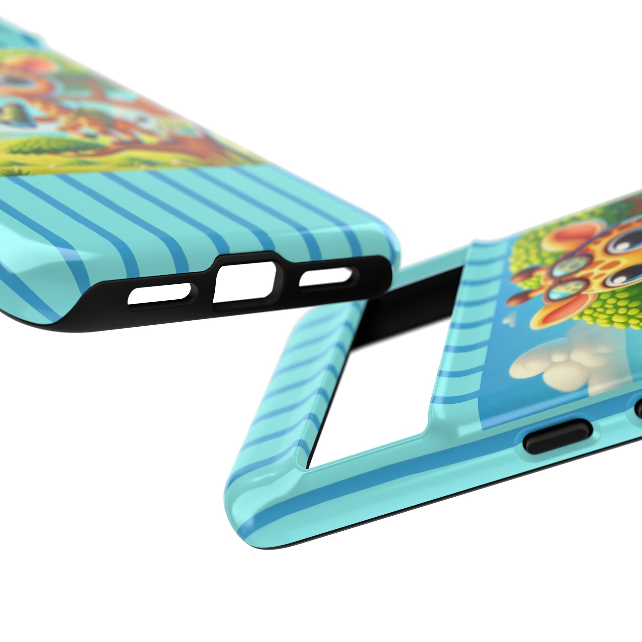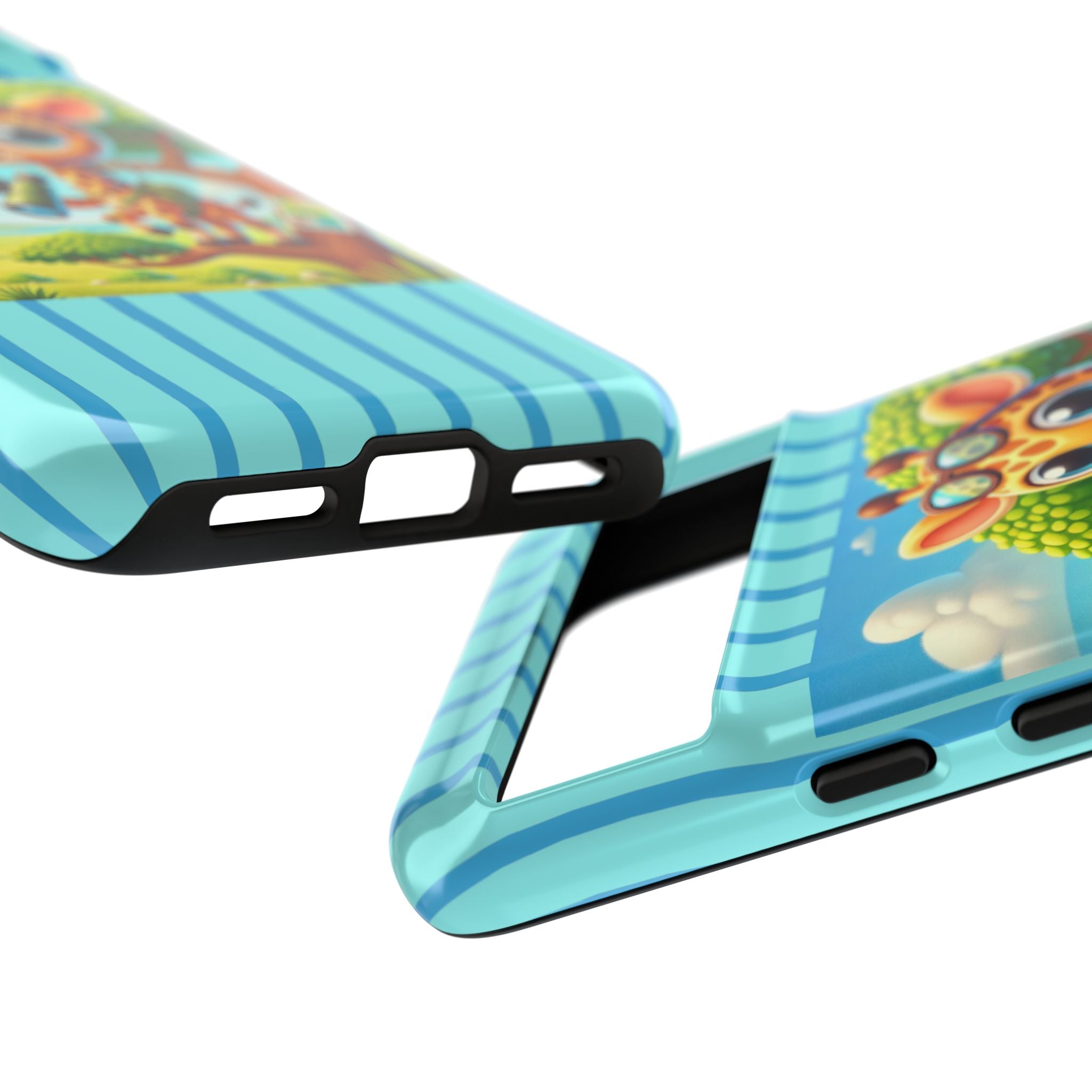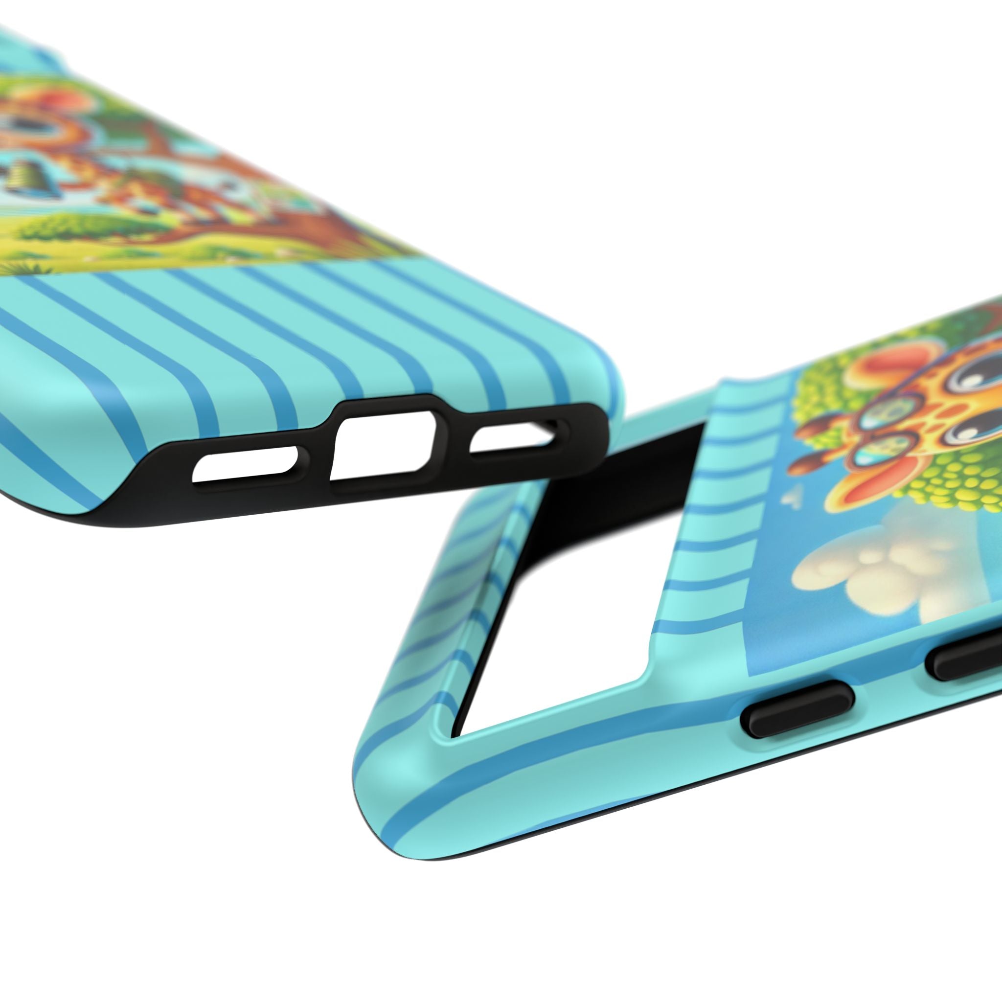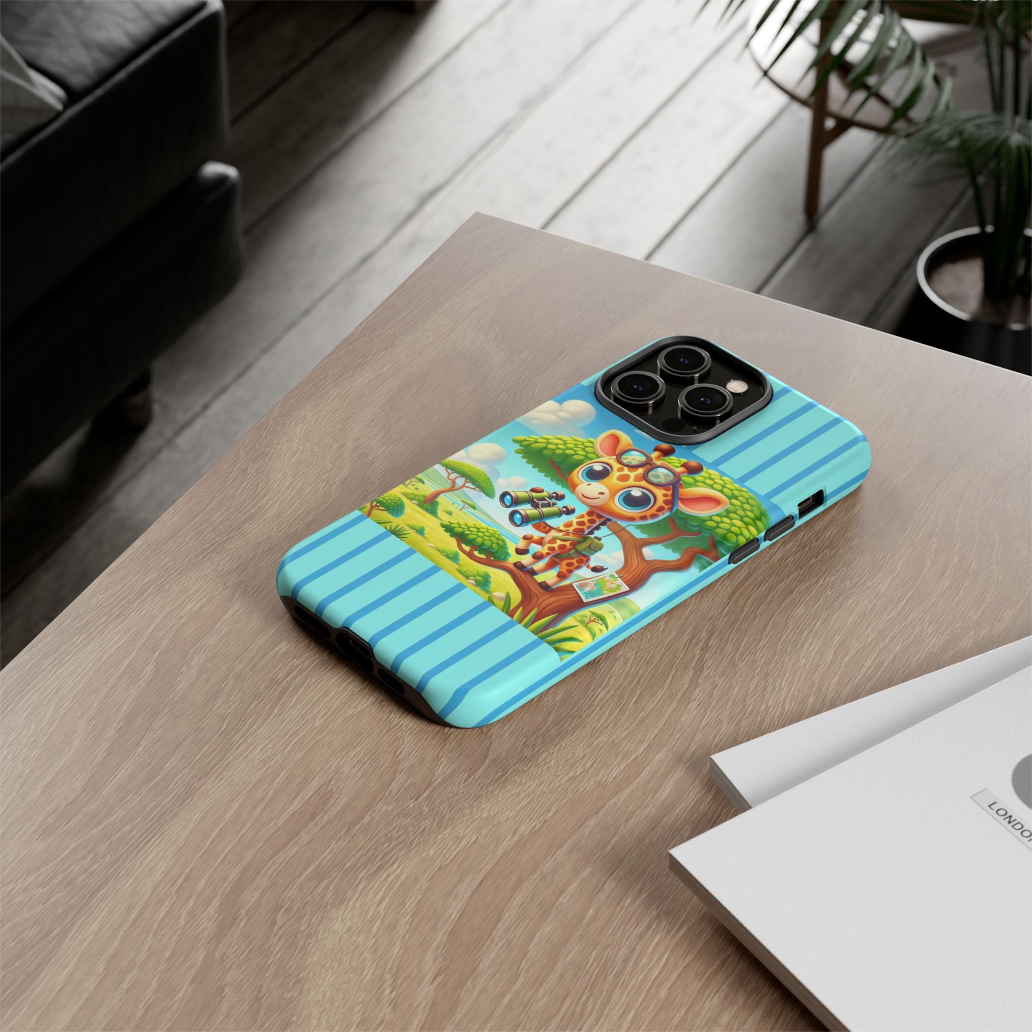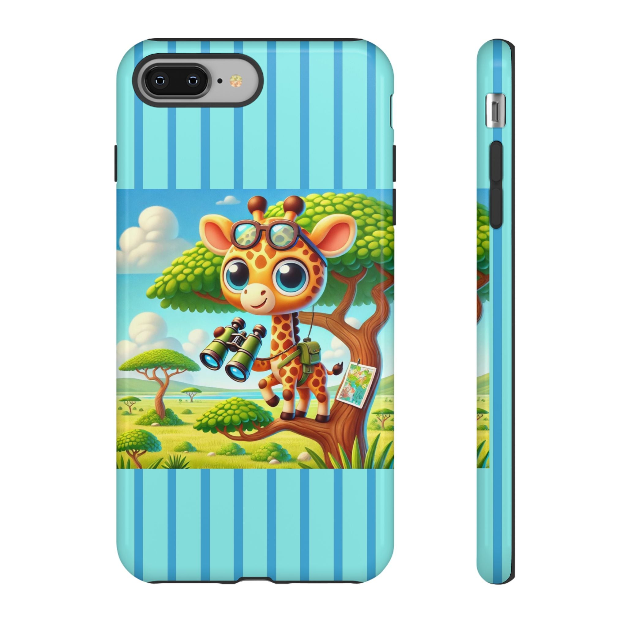 The enchanting illustration, Giraffe Lookout, features a tall, inquisitive giraffe perched high in a tree-top with a map and binoculars in hand, scanning the horizon for discovery. The scene captures a spirit of exploration and wonder, blending warm tones, expressive textures, and a touch of humor. With its whimsical charm and imaginative composition, this artwork transforms your phone into a joyful celebration of curiosity and creativity.