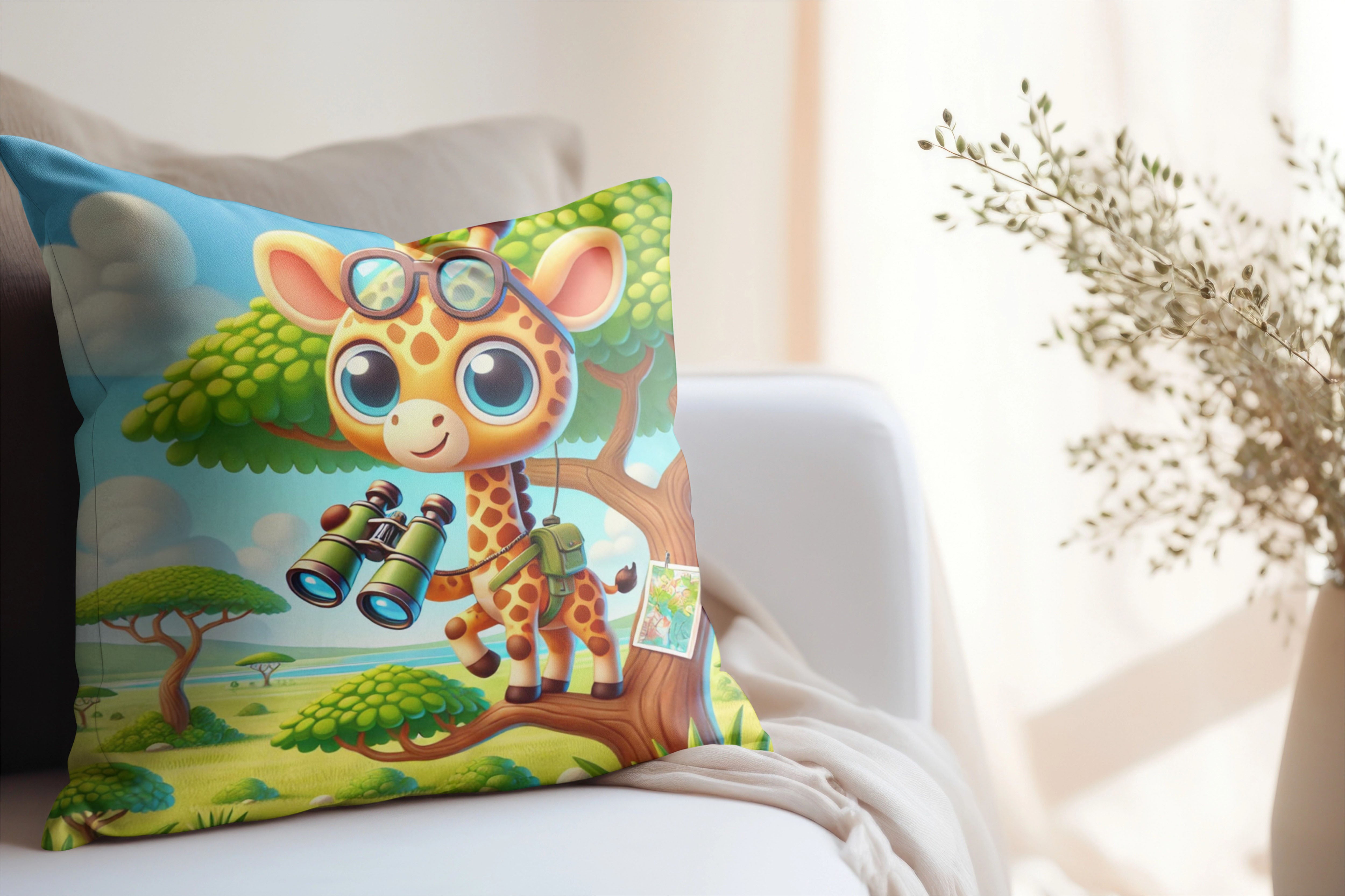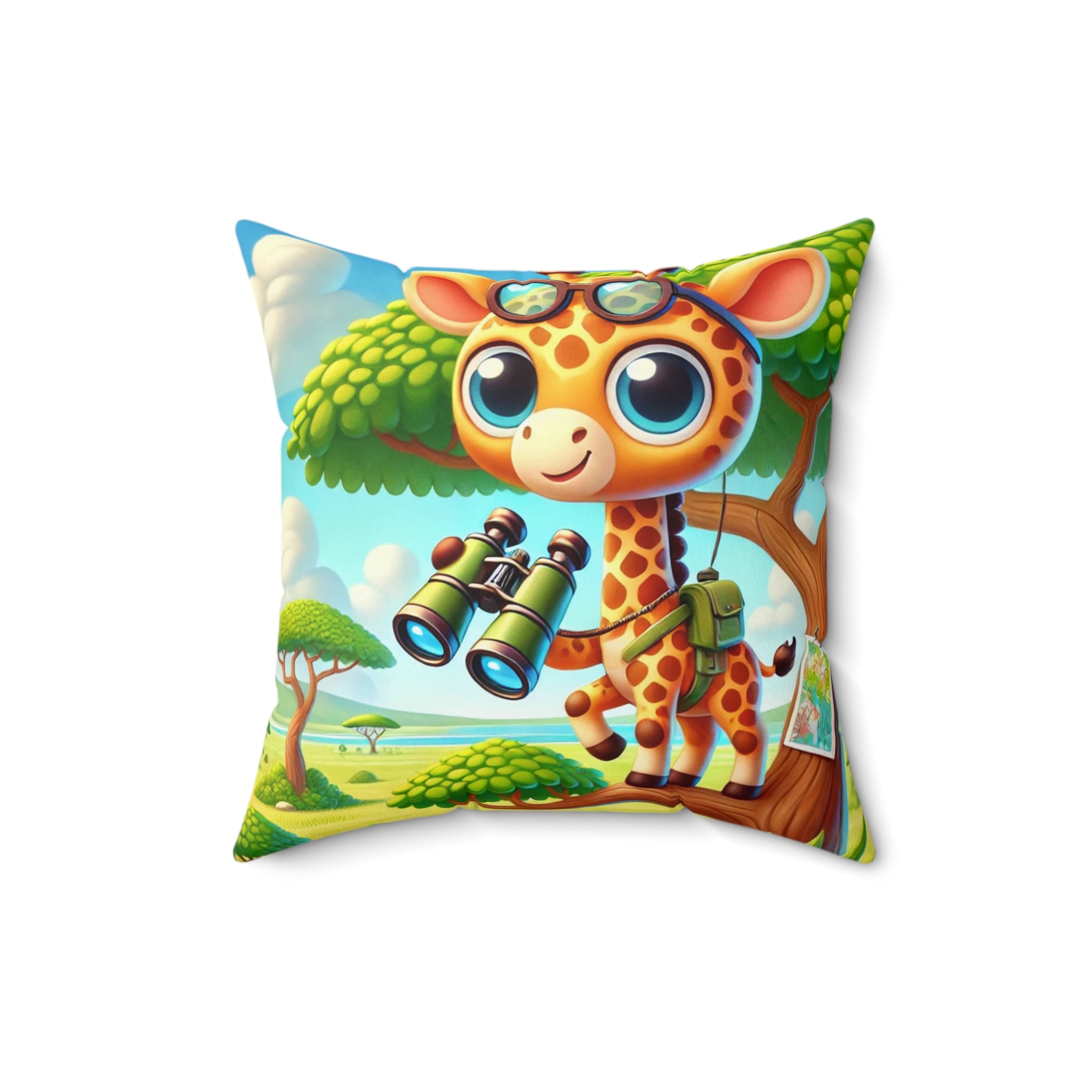 Giraffe Lookout Spun Polyester Square Pillow adds a touch of adventure and playful charm to any interior space. These beautiful indoor pillows, available in various sizes, serve as statement pieces that bring warmth, imagination, and character to your environment. Crafted from durable spun polyester, each pillow combines soft comfort with vibrant artistry, making it the perfect accent for your home or studio.
