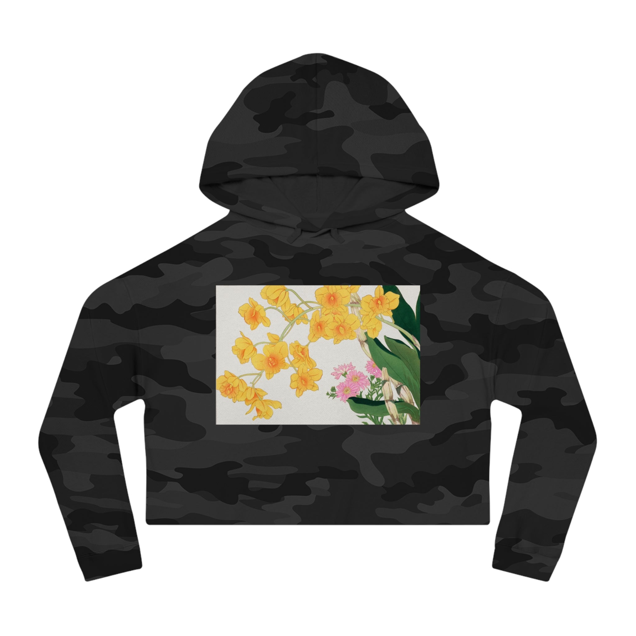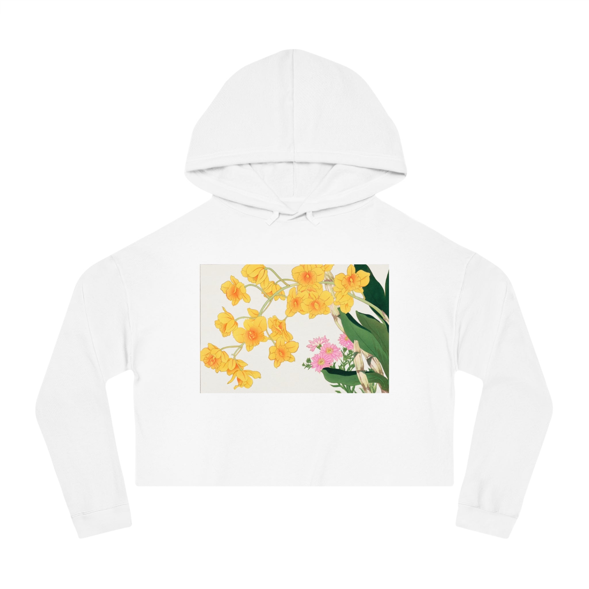 Artwork created, designed and digitally remastered by Sarasvati Designs. A stunning and exquisite illustration of Dendrobium chrysotoxum, also known as the Golden Bow Orchid, masterfully captured by Tanigami Kônan. This artwork features a cascading cluster of vibrant yellow flowers, each blossom radiating a warm, golden hue with subtle variations in tone that enhance their natural beauty.
