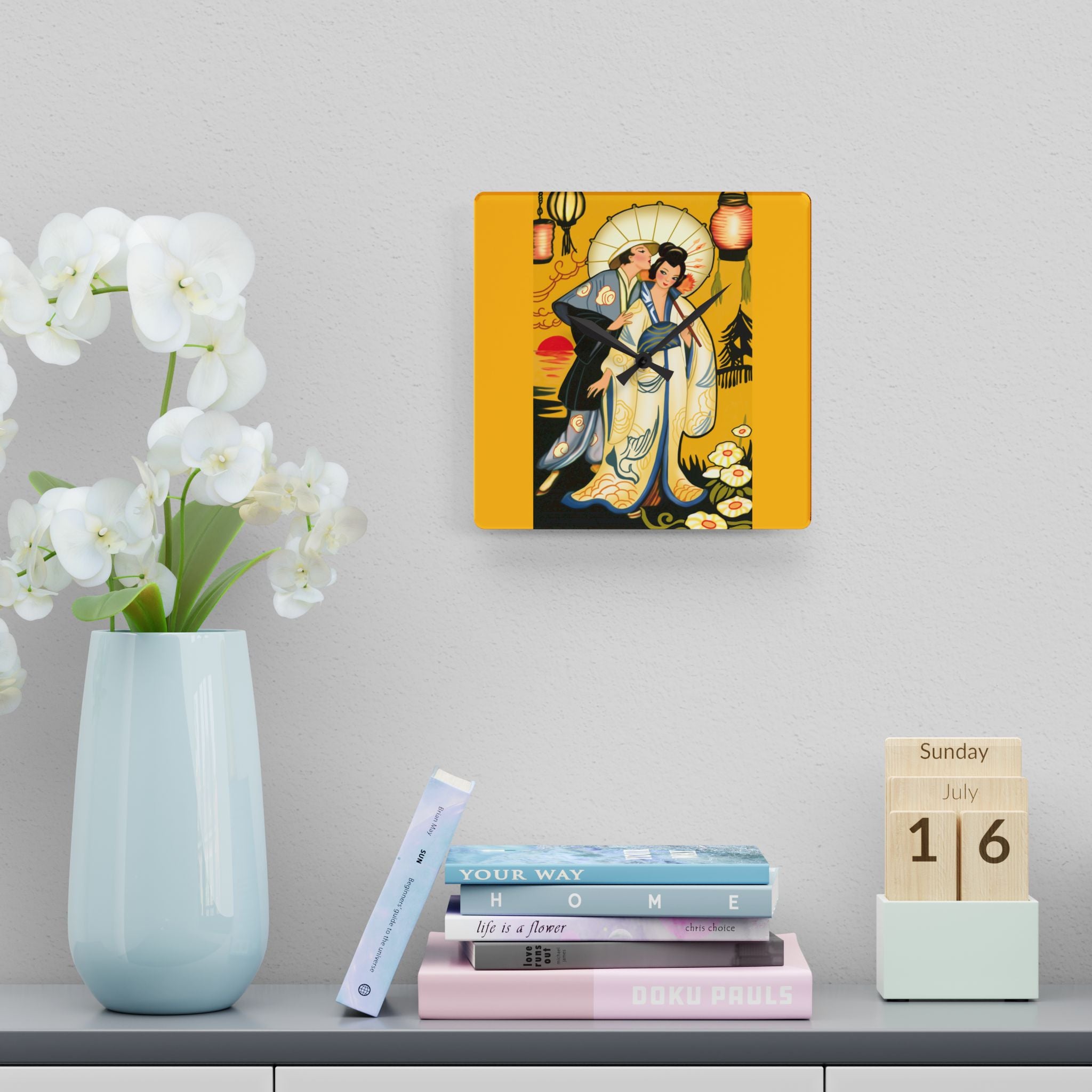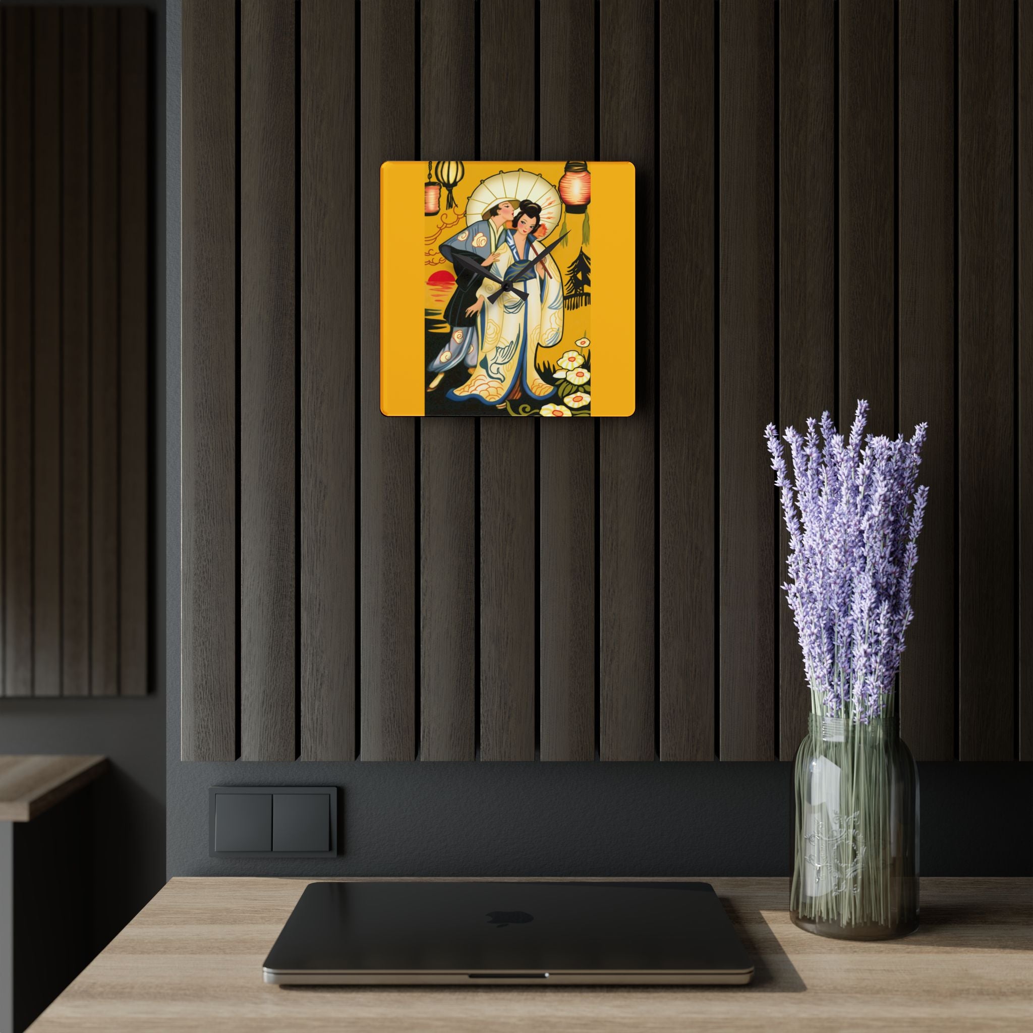 Golden Embrace Acrylic Wall Clock captures the timeless allure of vintage Art Deco elegance and quiet intimacy. Available in both round and square designs, this exquisite clock combines refined artistry with modern craftsmanship. The luminous golden tones and romantic composition create a warm focal point that enhances any space, from bedrooms to artful living rooms. A perfect choice for lovers of classic art and sophisticated design.