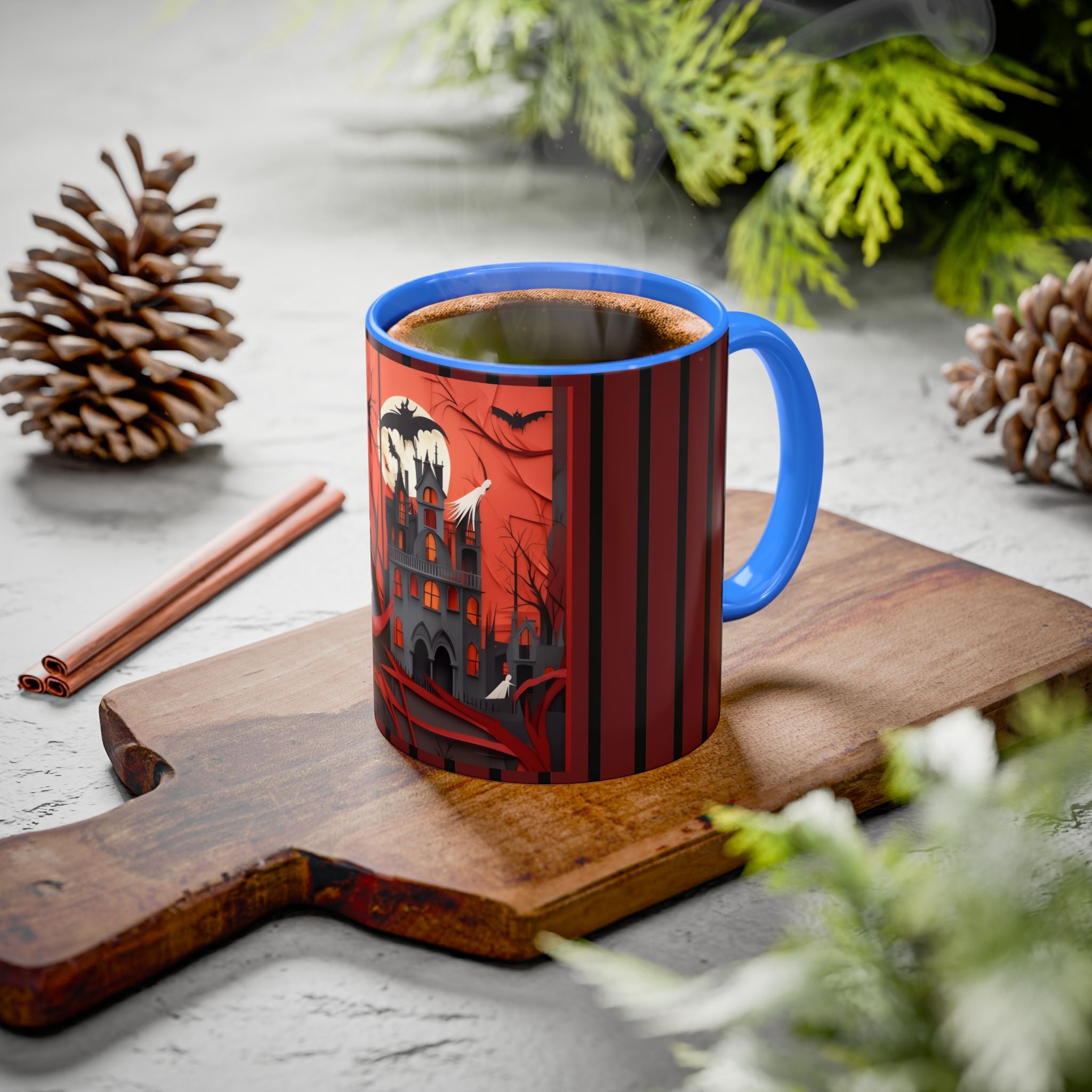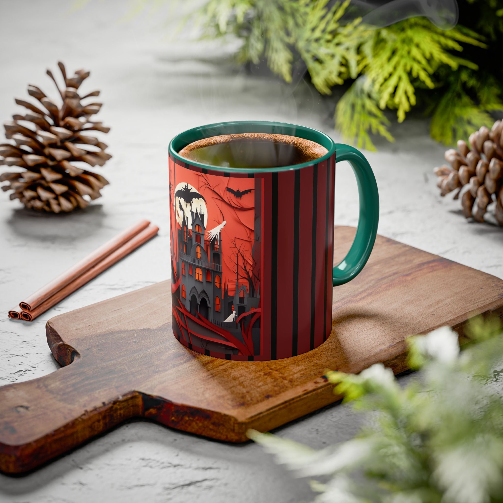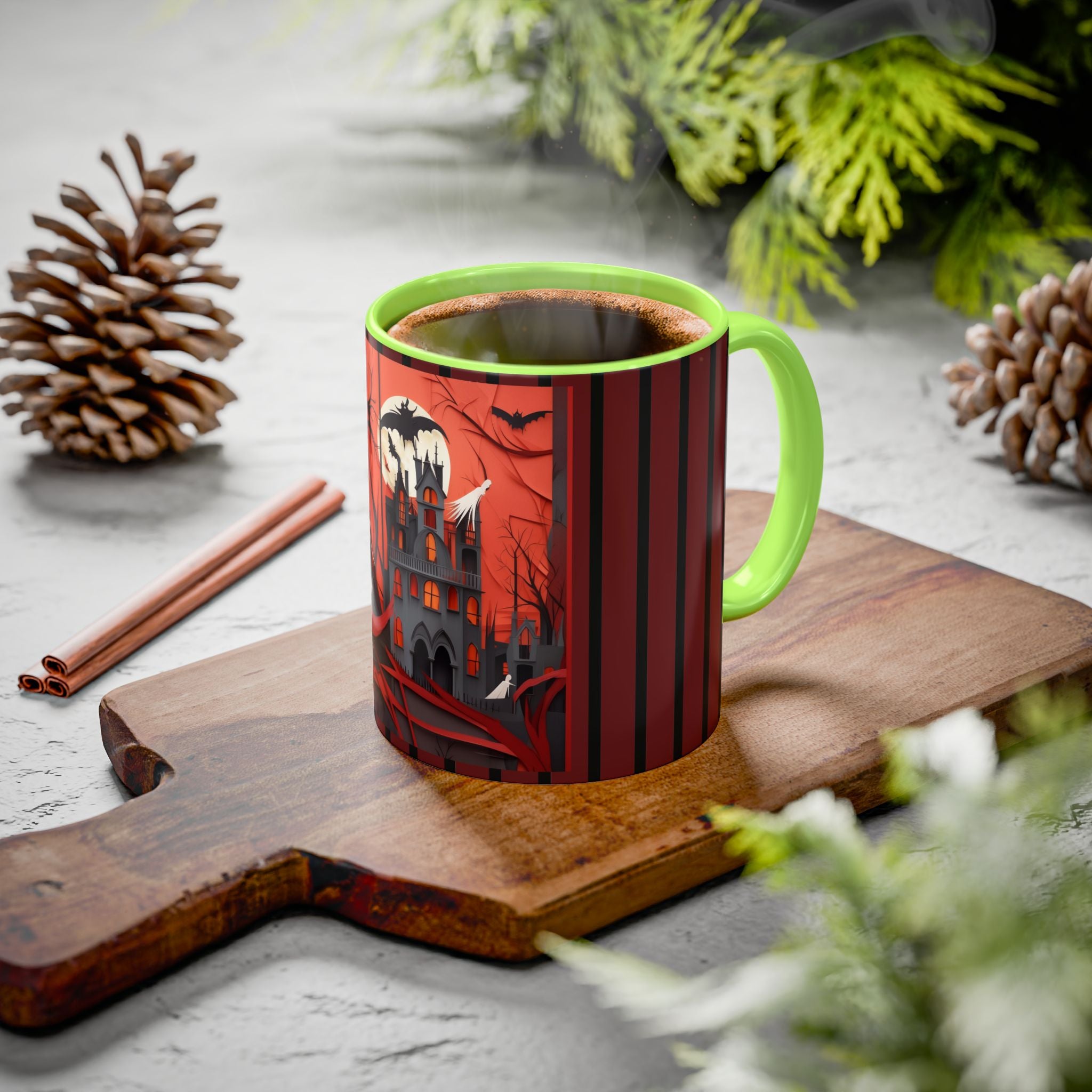 Mugs are a kitchen essential, and when infused with a Halloween touch, they become cherished seasonal favorites. These Halloween-themed mugs, available in 12 vibrant color choices, hold up to 11oz or 15oz of your favorite beverage and feature a colored handle and interior. The glossy finish adds an elegant accent that beautifully complements the spooky artwork, making them a delightful addition to your Halloween decor and a fantastic choice for thoughtful gifts.