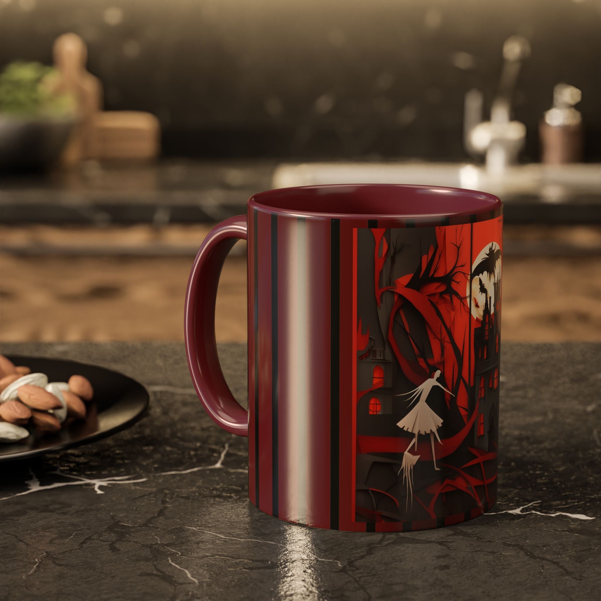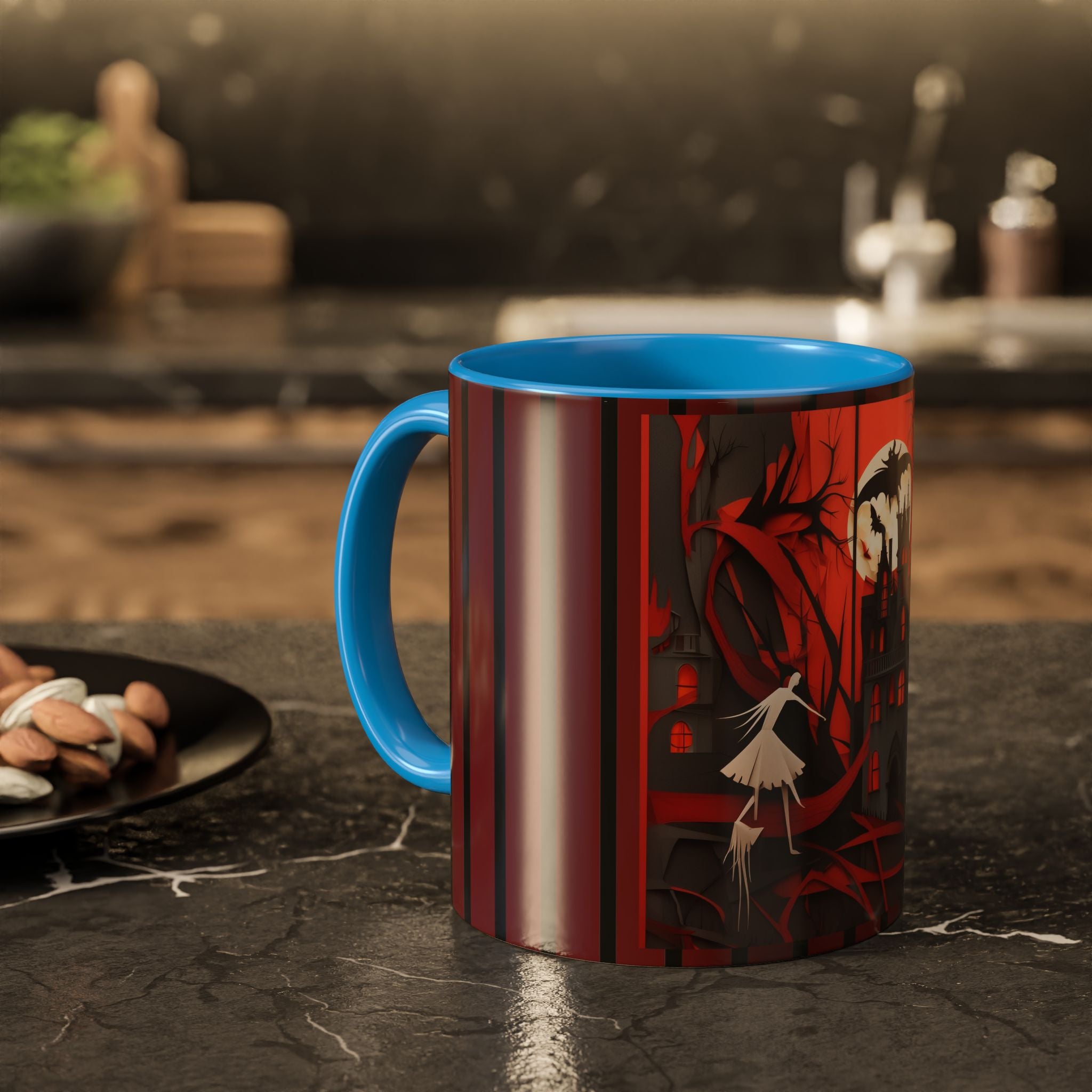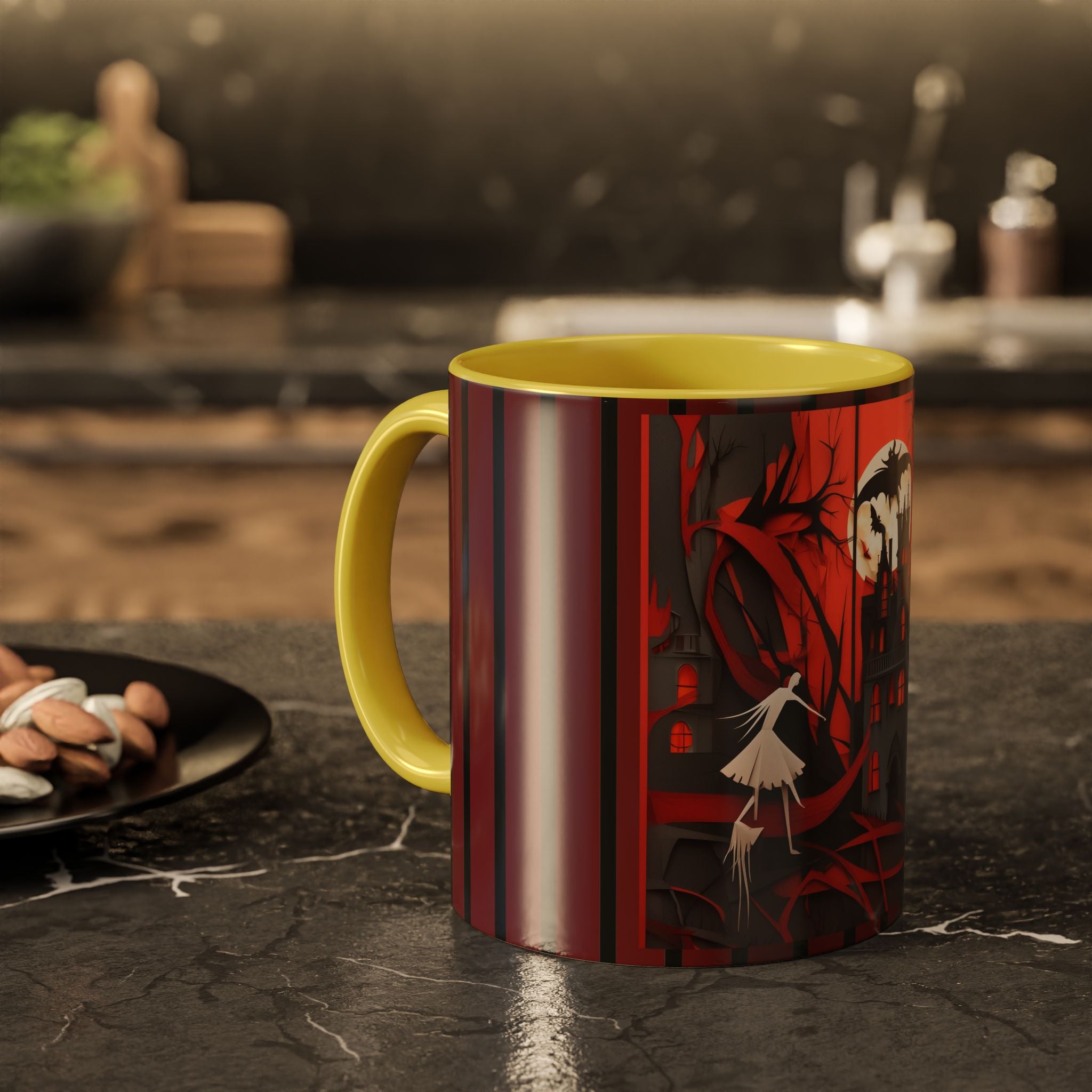 Mugs are a kitchen essential, and when infused with a Halloween touch, they become cherished seasonal favorites. These Halloween-themed mugs, available in 12 vibrant color choices, hold up to 11oz or 15oz of your favorite beverage and feature a colored handle and interior. The glossy finish adds an elegant accent that beautifully complements the spooky artwork, making them a delightful addition to your Halloween decor and a fantastic choice for thoughtful gifts.