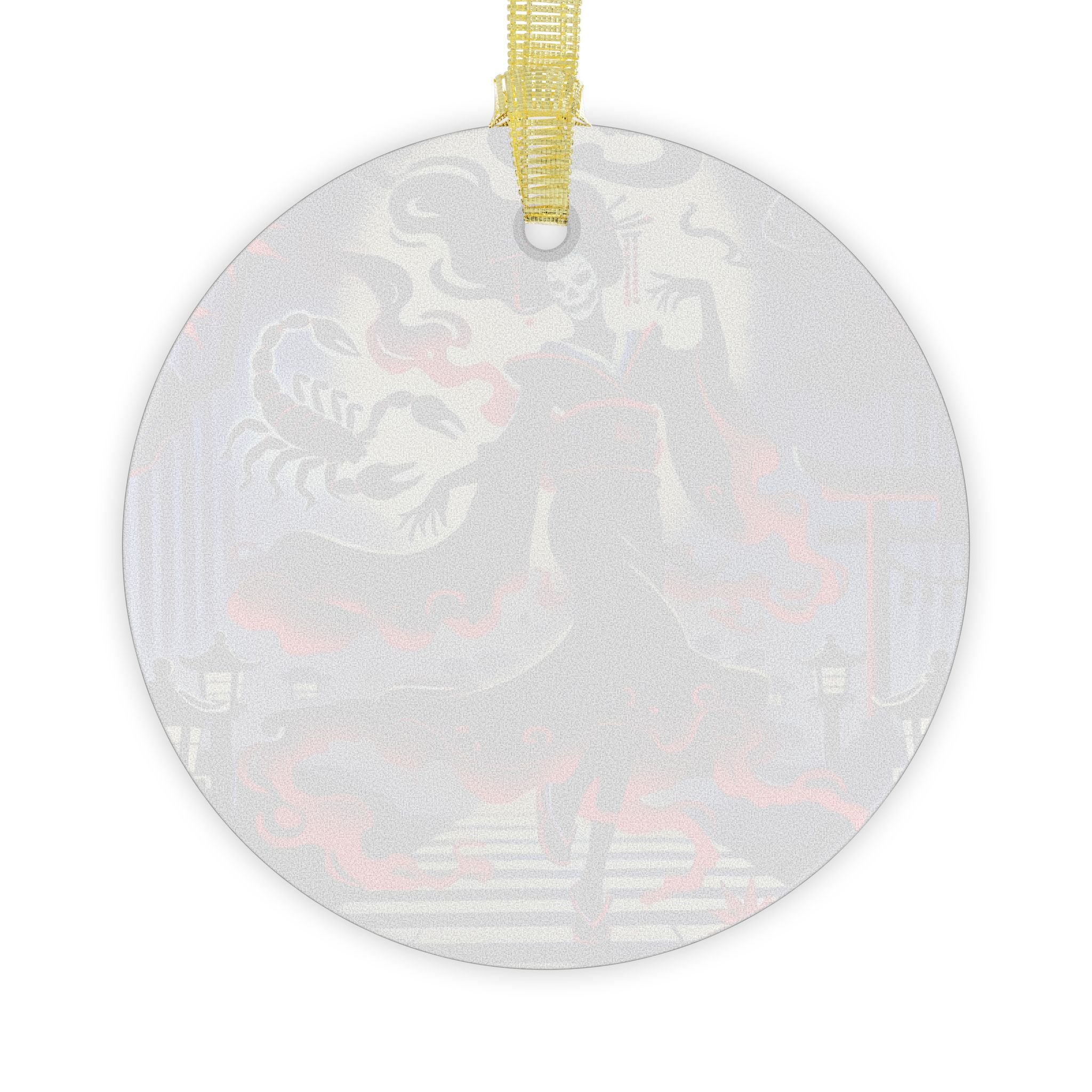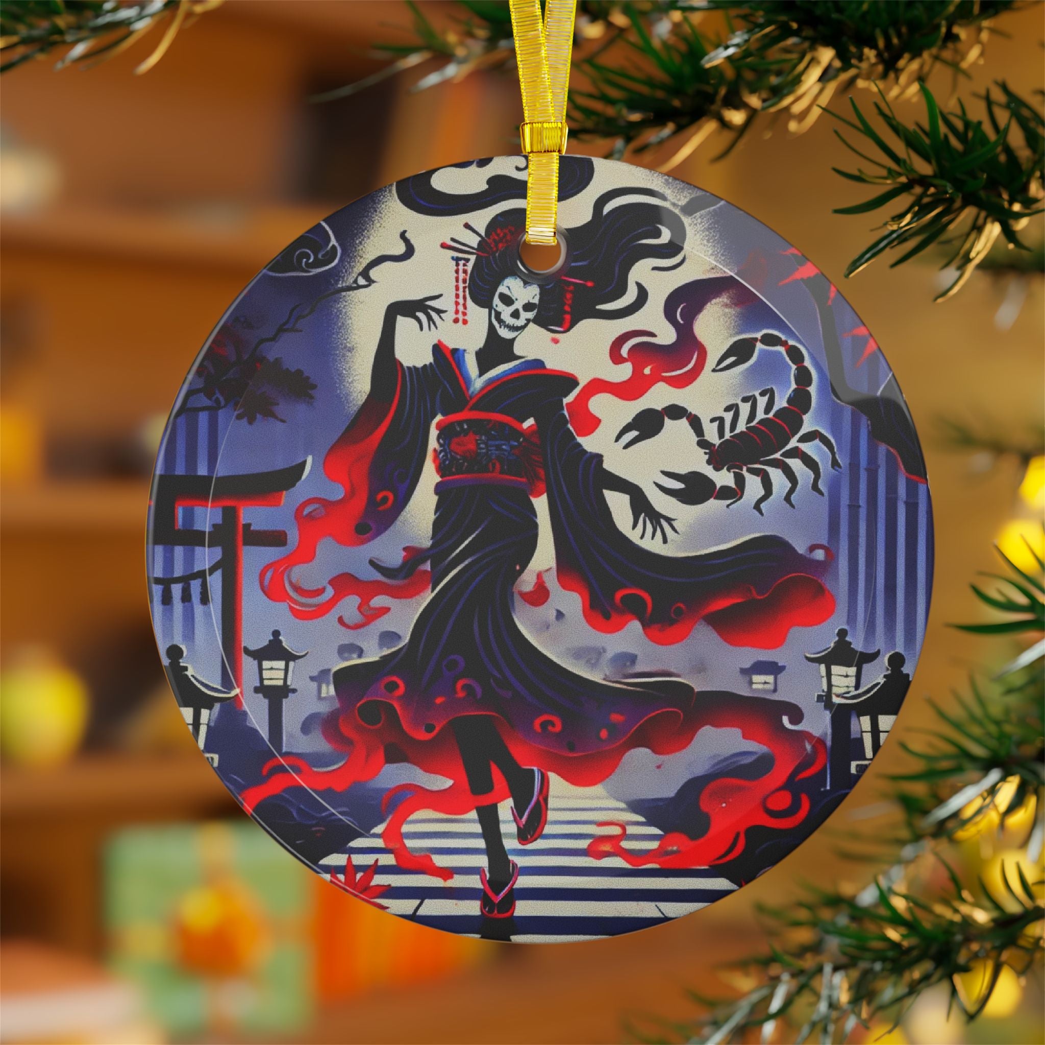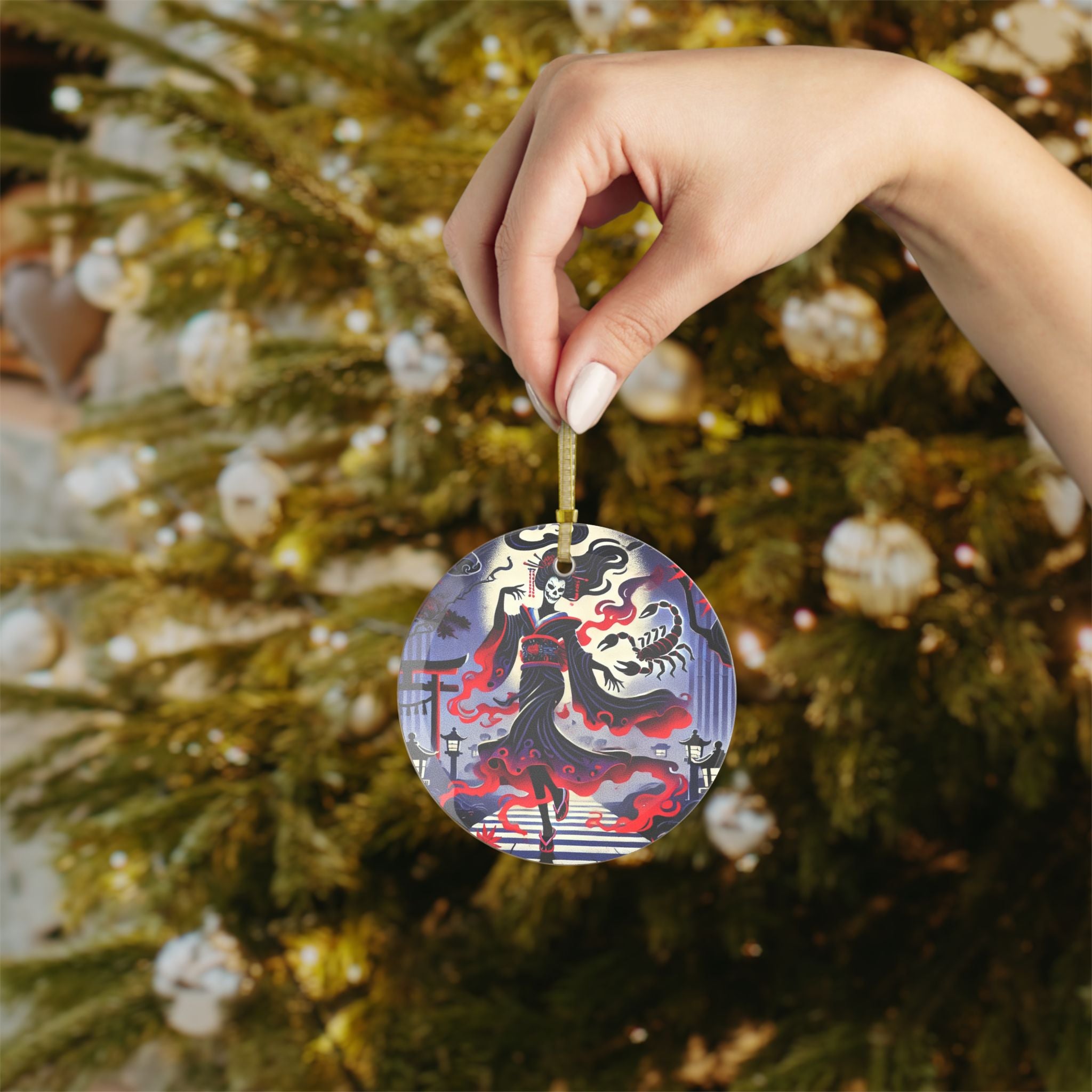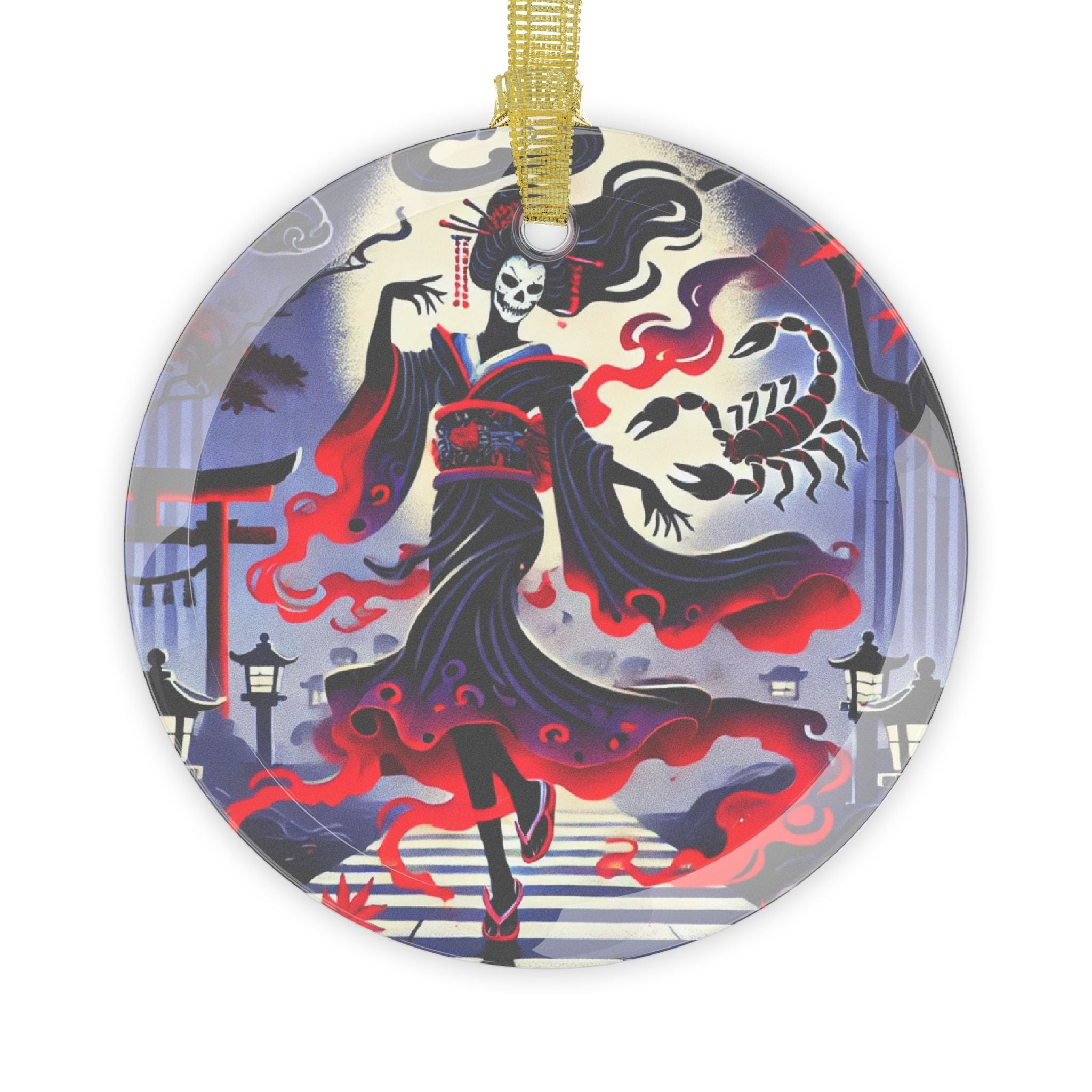 Bring a touch of spooky elegance to your seasonal décor with the Halloween Sorceress Glass Ornament. Crafted from 100% glass, this 3.5" ornament features beveled edges and a gold ribbon for easy hanging, making it a standout addition to your tree or decorative displays. The high-quality print showcases a supernatural sorceress walking through a swirling storm of crimson and fiery leaves, her presence blending eerie beauty with bold color. Inspired by Halloween’s enchanting mystique, this design transforms a simple glass ornament into a miniature work of art—perfect for those who love both sophistication and seasonal magic.