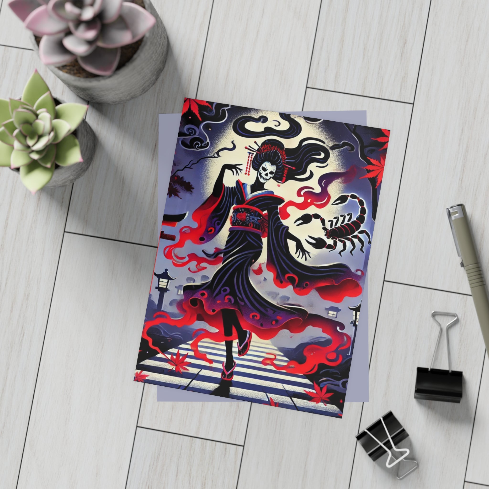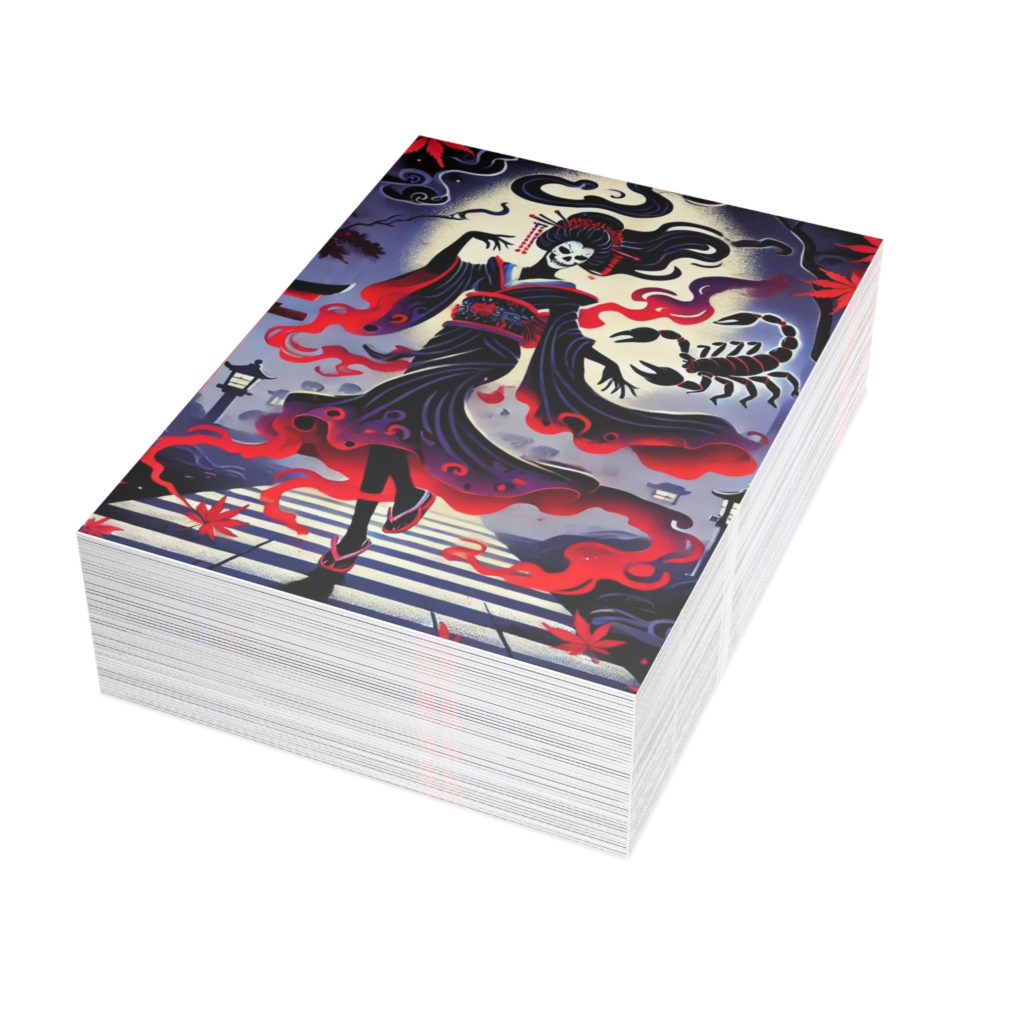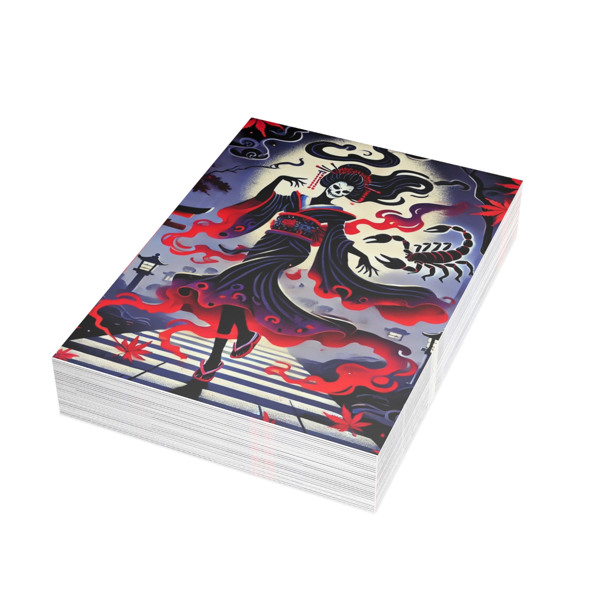 Bring spooky elegance to your correspondence with these Halloween Sorceress postcards. Printed on your choice of matte, uncoated, or coated finishes, each card showcases a supernatural sorceress striding through a storm of crimson and fiery leaves, her eerie beauty captured in rich, high-fidelity color. Available in bundles of 10, 30, or 50 with envelopes included, these postcards blend durability with dramatic artistry—perfect for seasonal notes, party invitations, or collectible keepsakes.