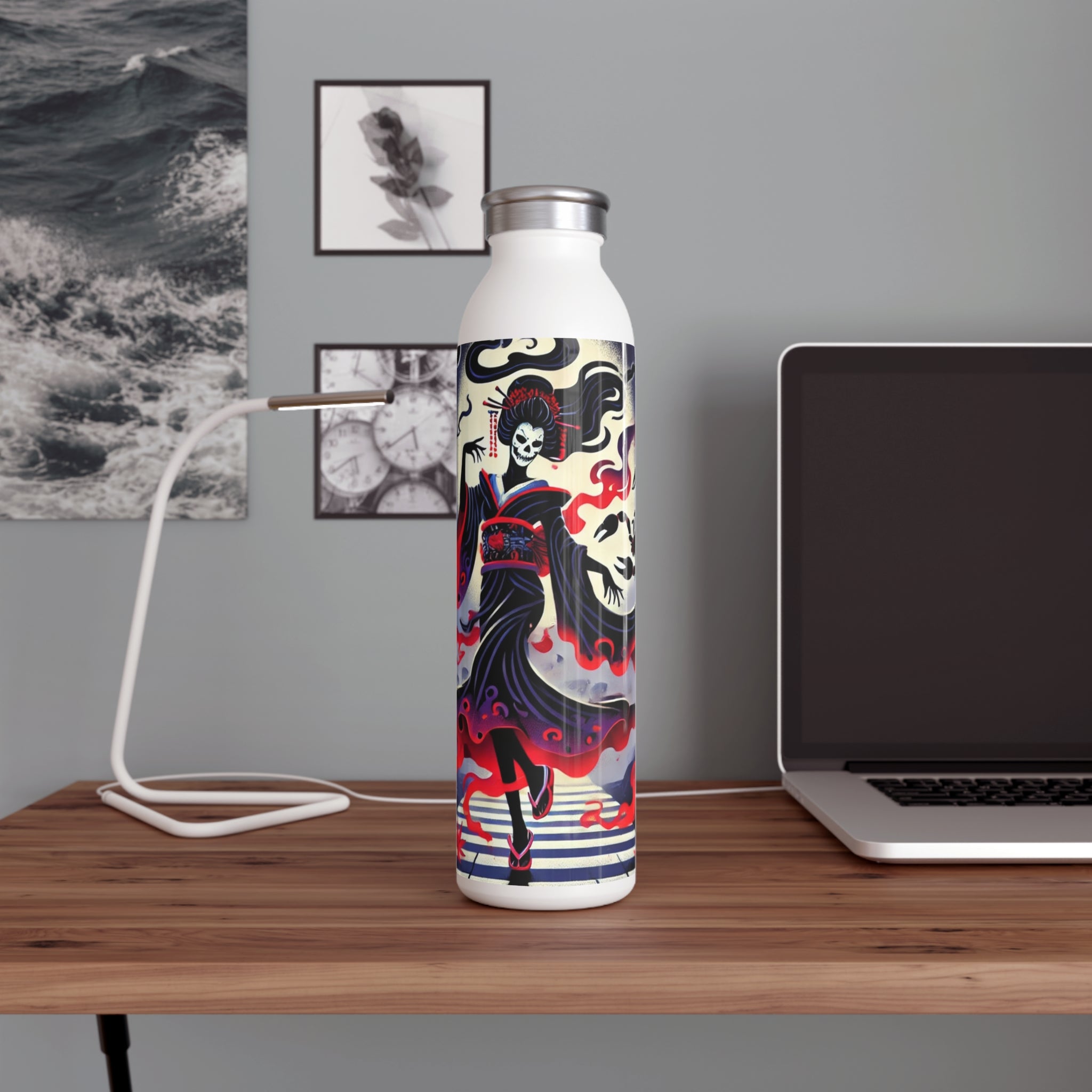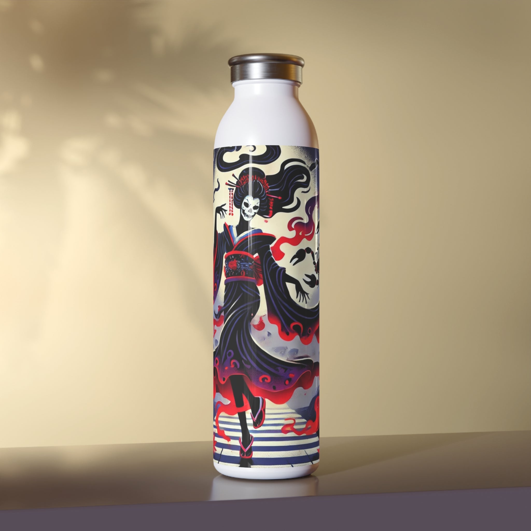 Carry mystery and magic with you in this 20oz slim stainless steel water bottle, crafted with double-wall vacuum insulation to keep drinks hot or cold for hours. Its fashionable lid and sleek matte finish make it stylish enough for daily life, while its durable frame ensures it withstands every adventure. Yet beyond function, it becomes a canvas of enchantment: a supernatural sorceress walks through a storm of swirling crimson and fiery autumn leaves, her presence both eerie and elegant.