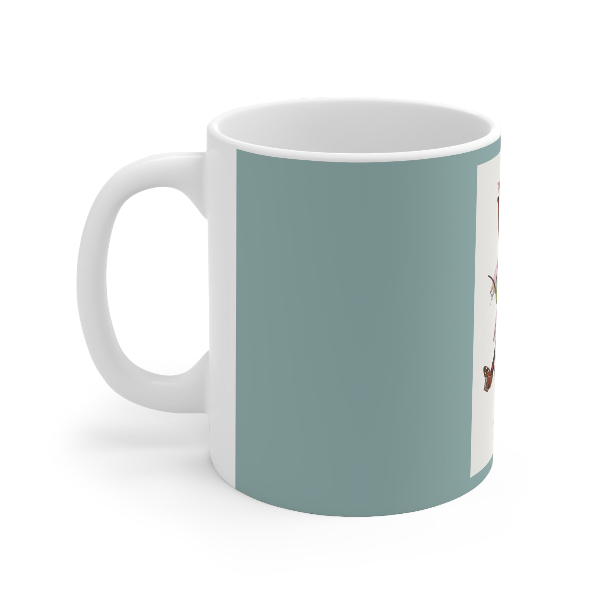 This 11 oz ceramic mug is the perfect gift for coffee, tea, and chocolate lovers. It's made of high-quality white ceramic that is lead and BPA-free, and it's microwave and dishwasher safe for easy cleanup. The mug has rounded corners and a comfortable C-handle for a secure grip.