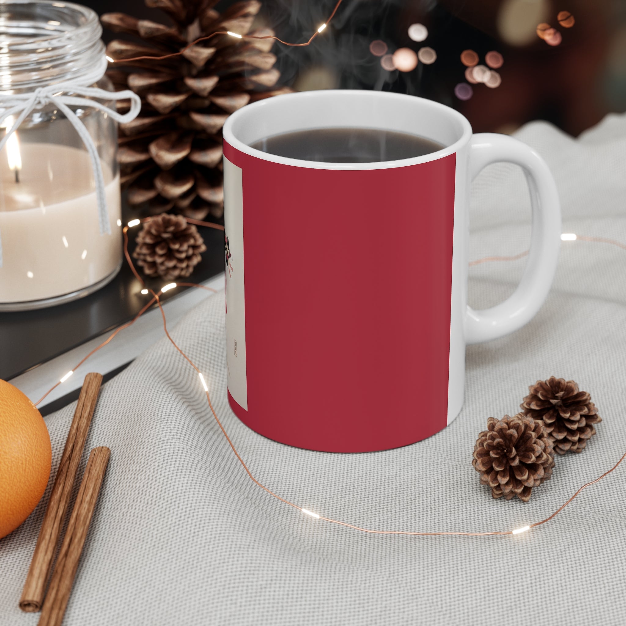 This 11 oz ceramic mug is the perfect gift for coffee, tea, and chocolate lovers. It's made of high-quality white ceramic that is lead and BPA-free, and it's microwave and dishwasher safe for easy cleanup. The mug has rounded corners and a comfortable C-handle for a secure grip.