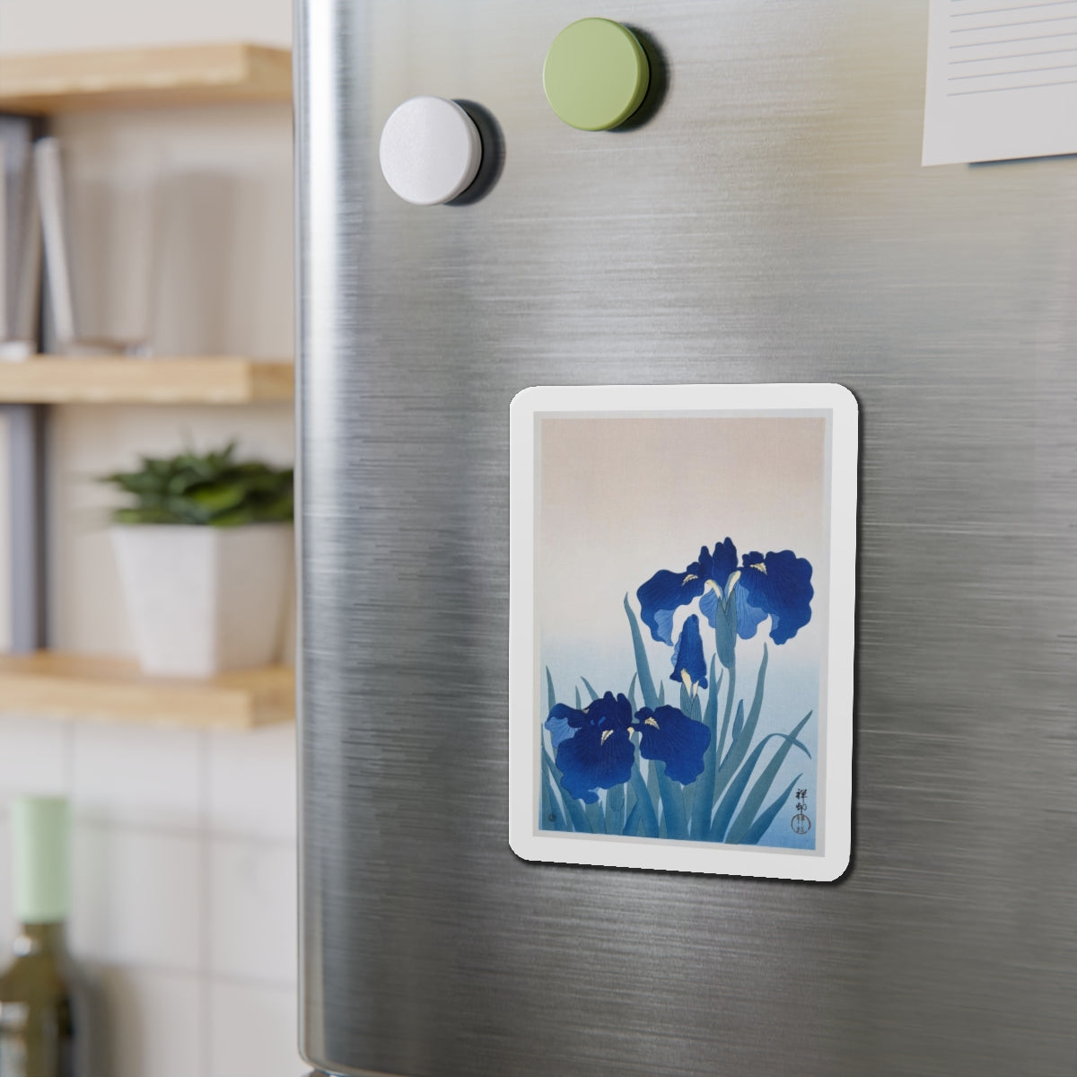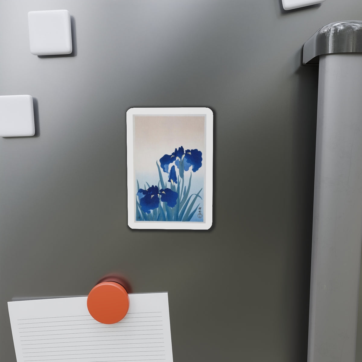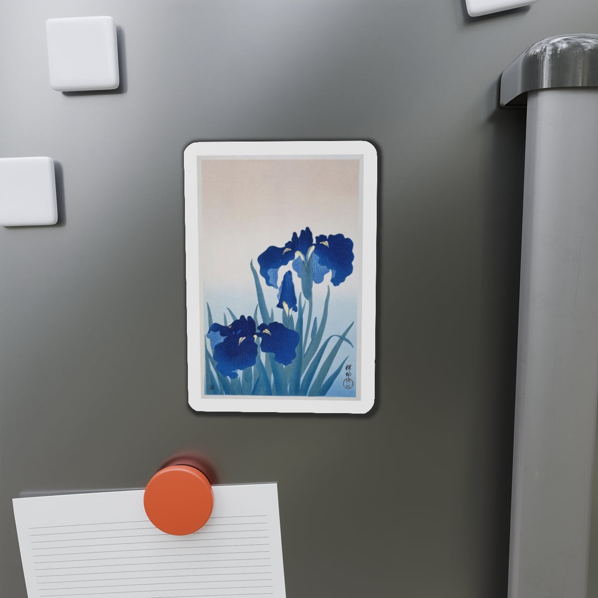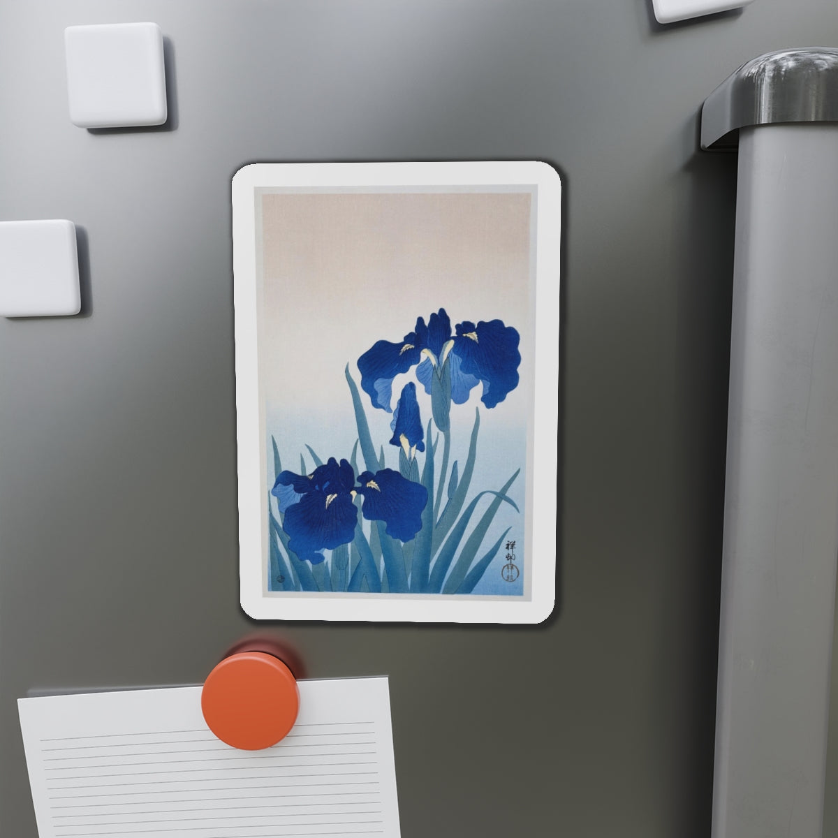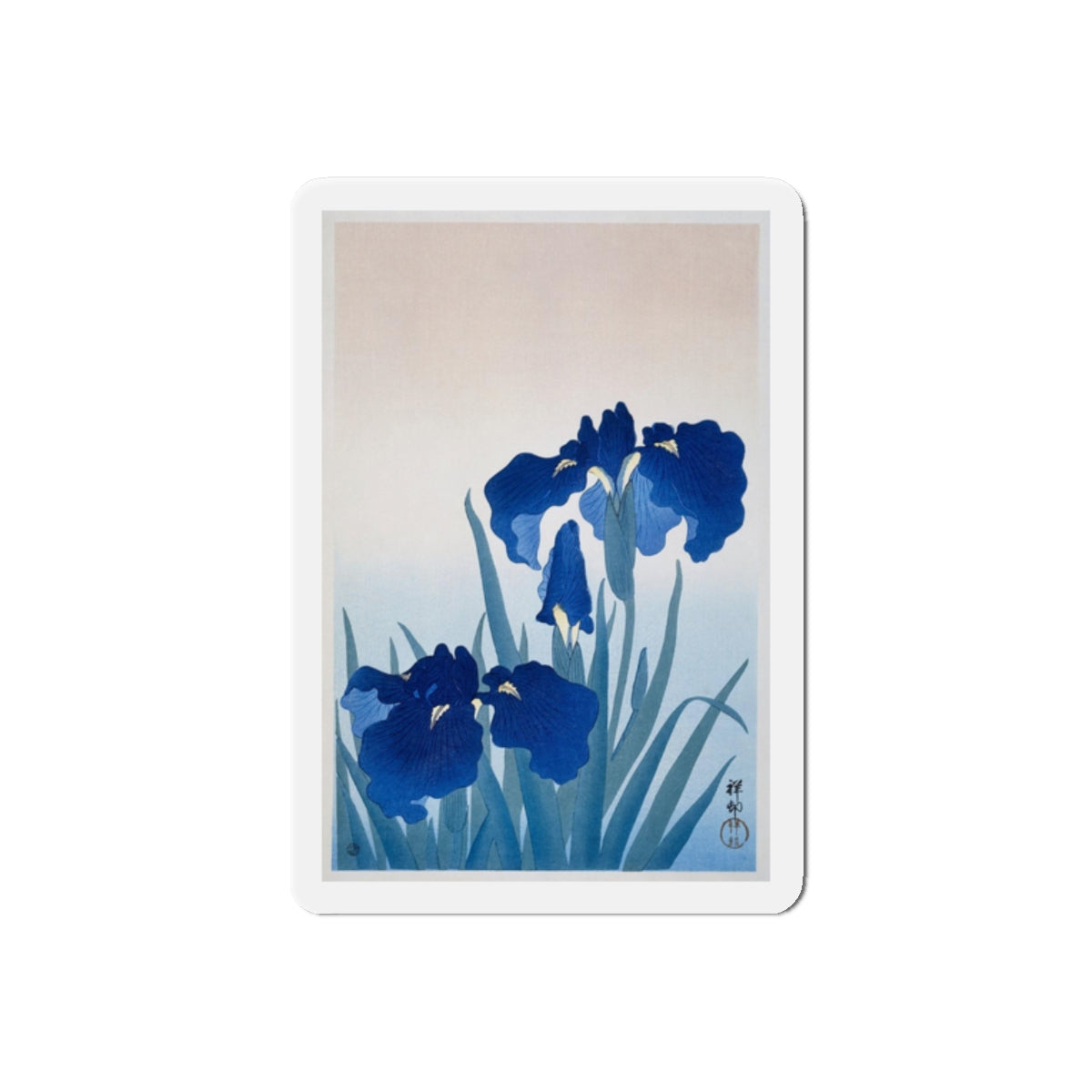 Artwork designed and digitally remastered by Sarasvati Designs. “Irises” by Ohara Koson is a captivating artwork that showcases a group of irises in full bloom. Ohara Koson (1877-1945) was a Japanese painter and printmaker known for his exquisite woodblock prints of birds and flowers.