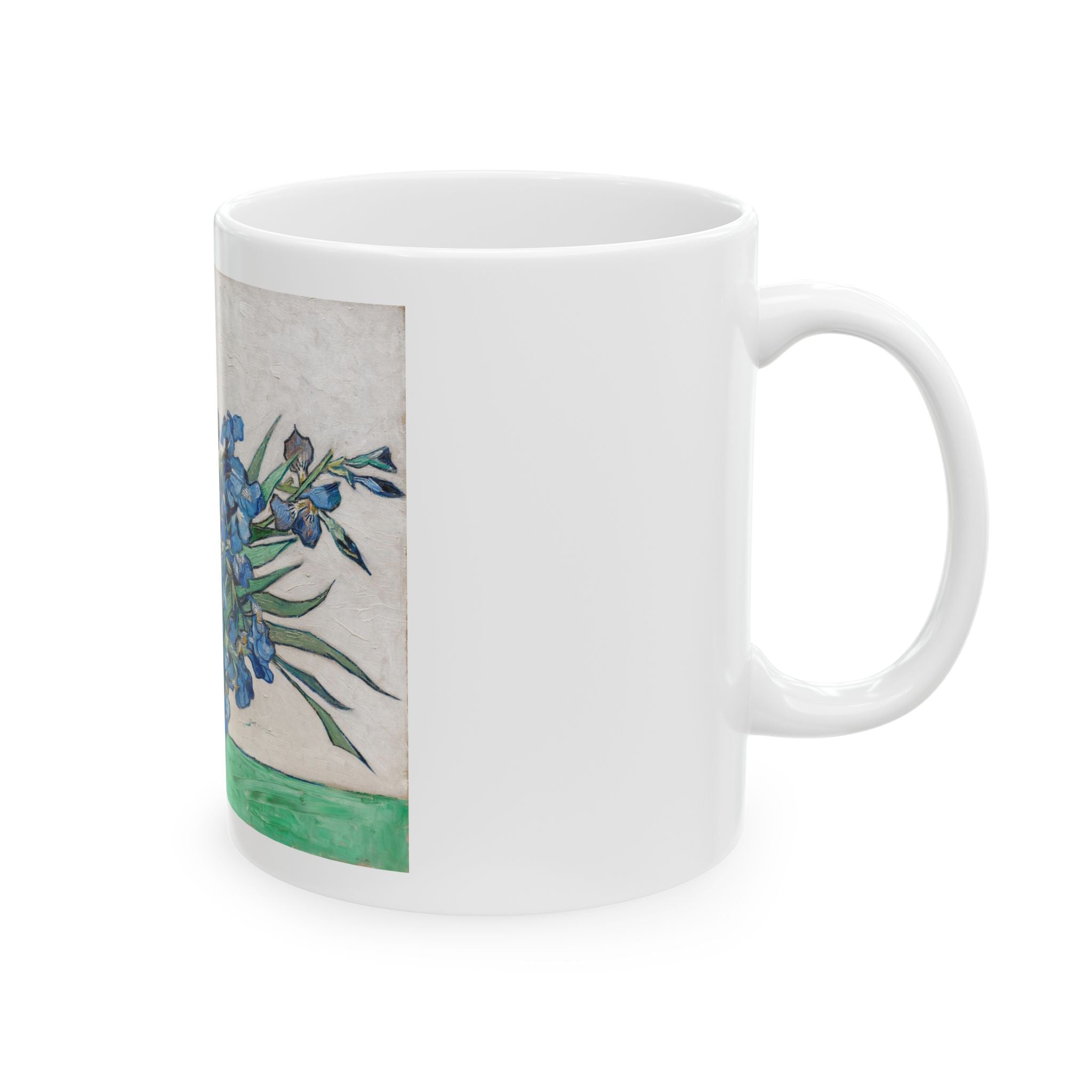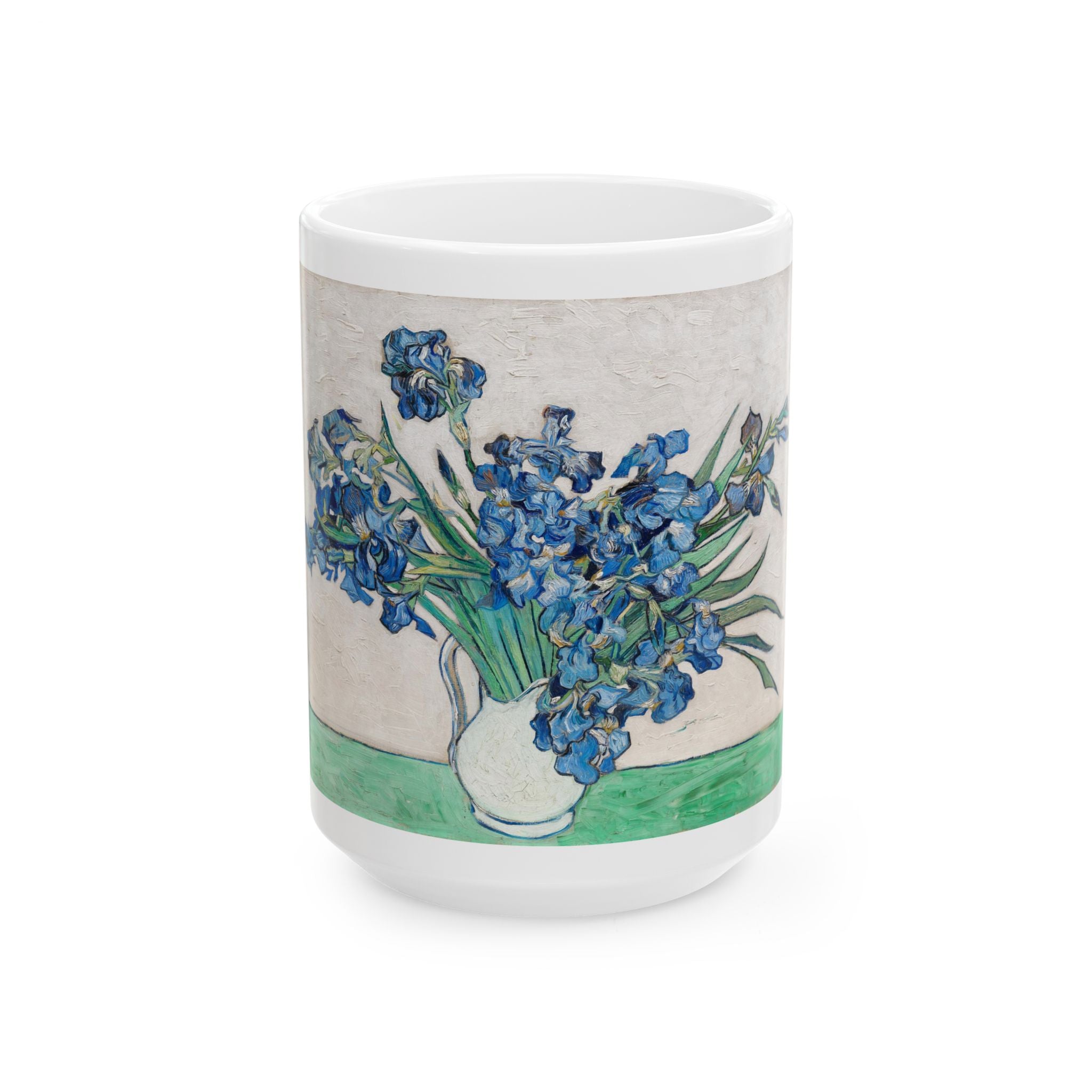 Artwork designed and digitally remastered by Sarasvati Designs. "Irises" is an iconic artwork by the Dutch Post-Impressionist painter Vincent van Gogh, created in 1890. In May 1890, just before Vincent van Gogh checked himself out of the asylum at Saint-Rémy, he embarked on a series of four exuberant bouquets of spring flowers. Among these four works, two feature irises, including the painting "Irises." The other two in the series depict roses, with each painting showcasing contrasting color schemes and formats. "Irises" holds a significant place in the collection of Vincent van Gogh's works, representing his exceptional ability to capture the essence of nature and his emotional connection to the world around him. The painting's vibrant colors and Van Gogh's distinctive brushwork continue to captivate art enthusiasts, making it a celebrated piece in the world of art.