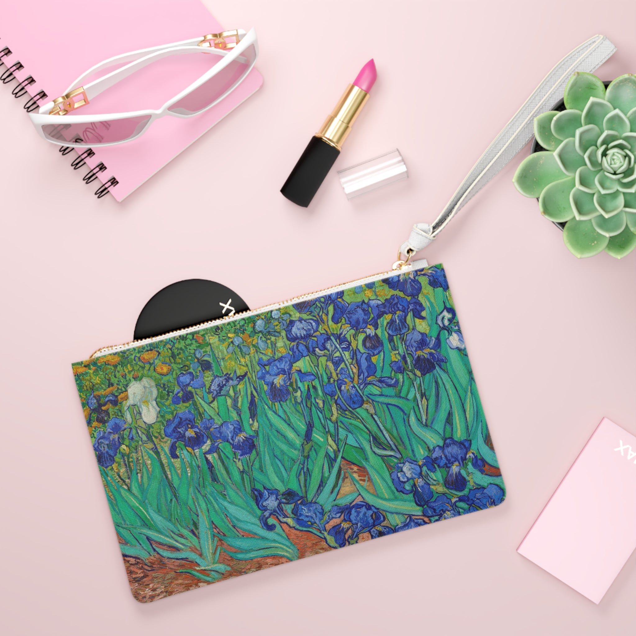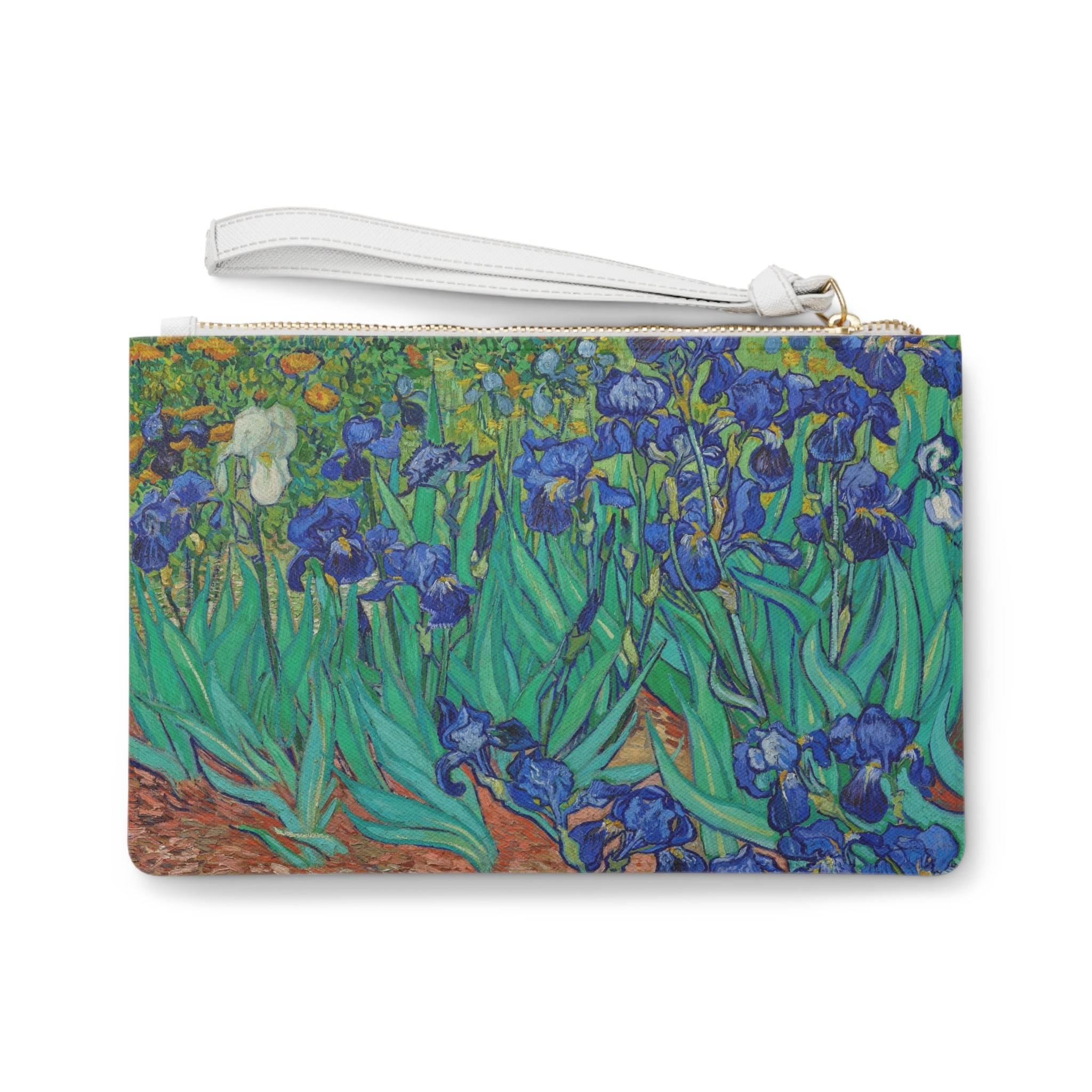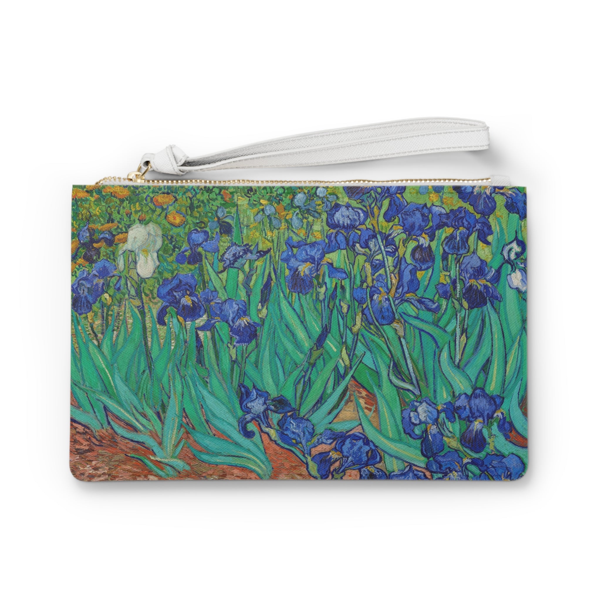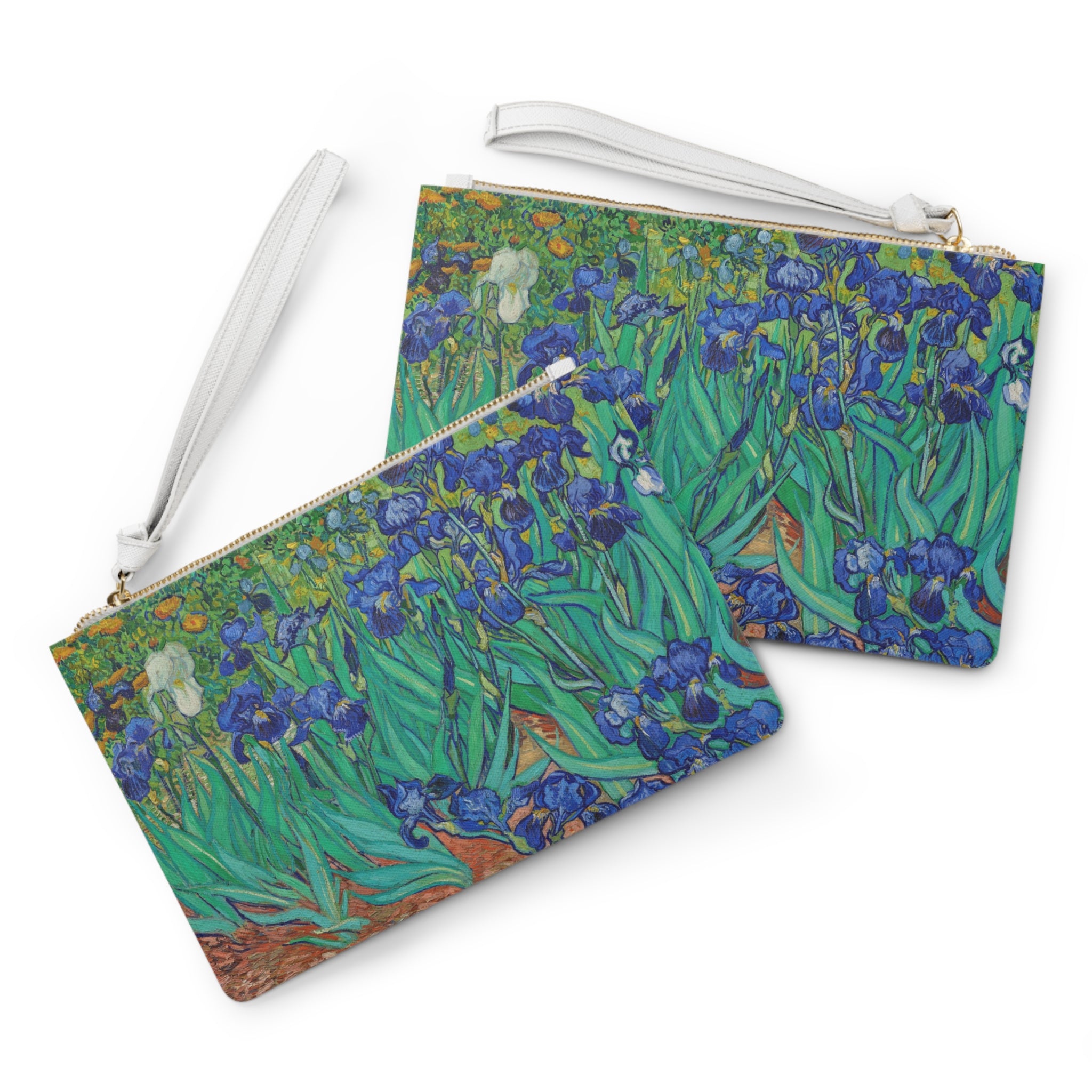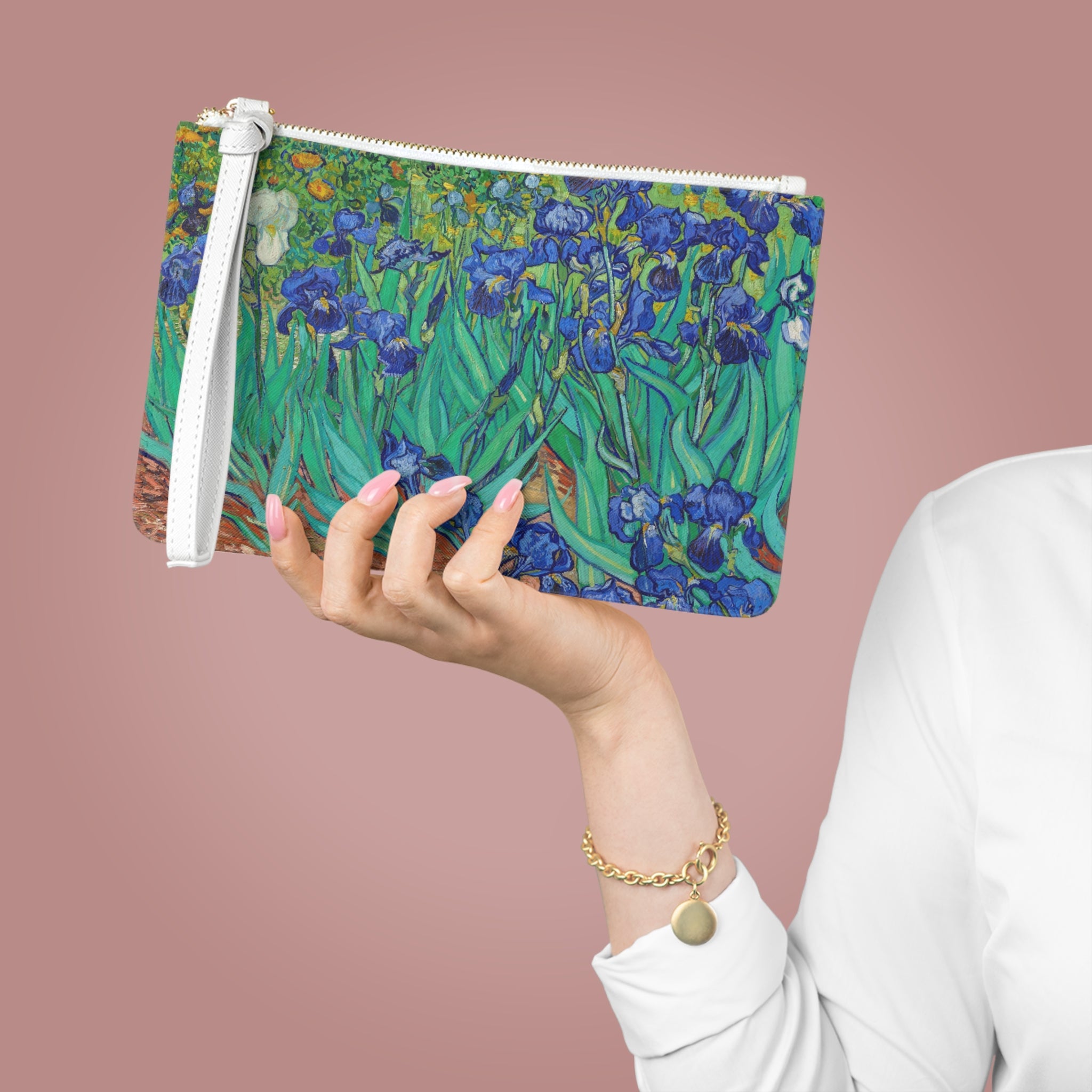 Irises, inspired by Vincent Van Gogh’s 1889 masterpiece, brings the artist’s luminous vision of nature to life on this elegant clutch bag. Designed with a loop handle to quickly free your hands, it combines timeless art with modern functionality. The swirling blues, greens, and ochres of Van Gogh’s garden scene flow across the soft vegan leather, echoing the vitality and rhythm of each hand-painted iris.