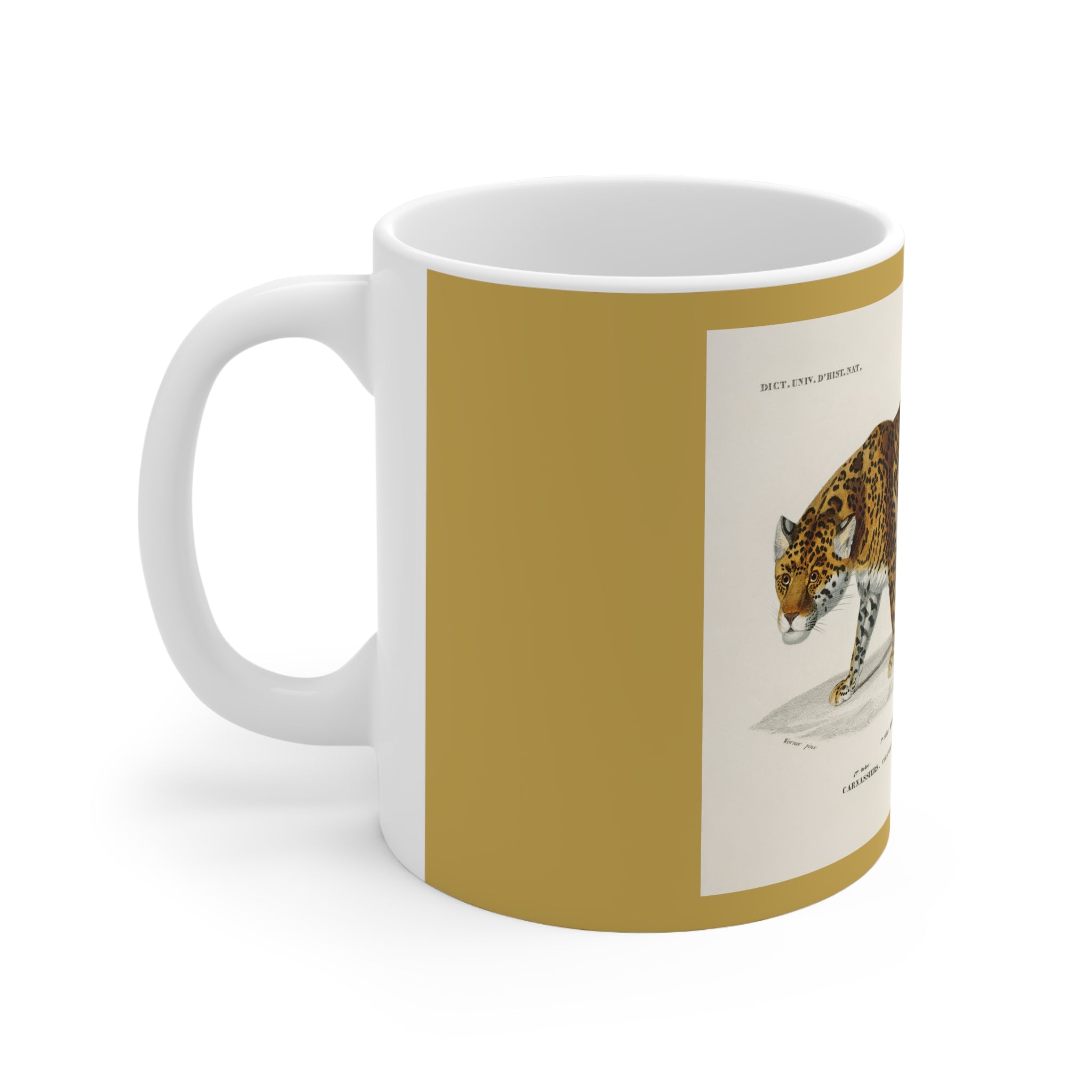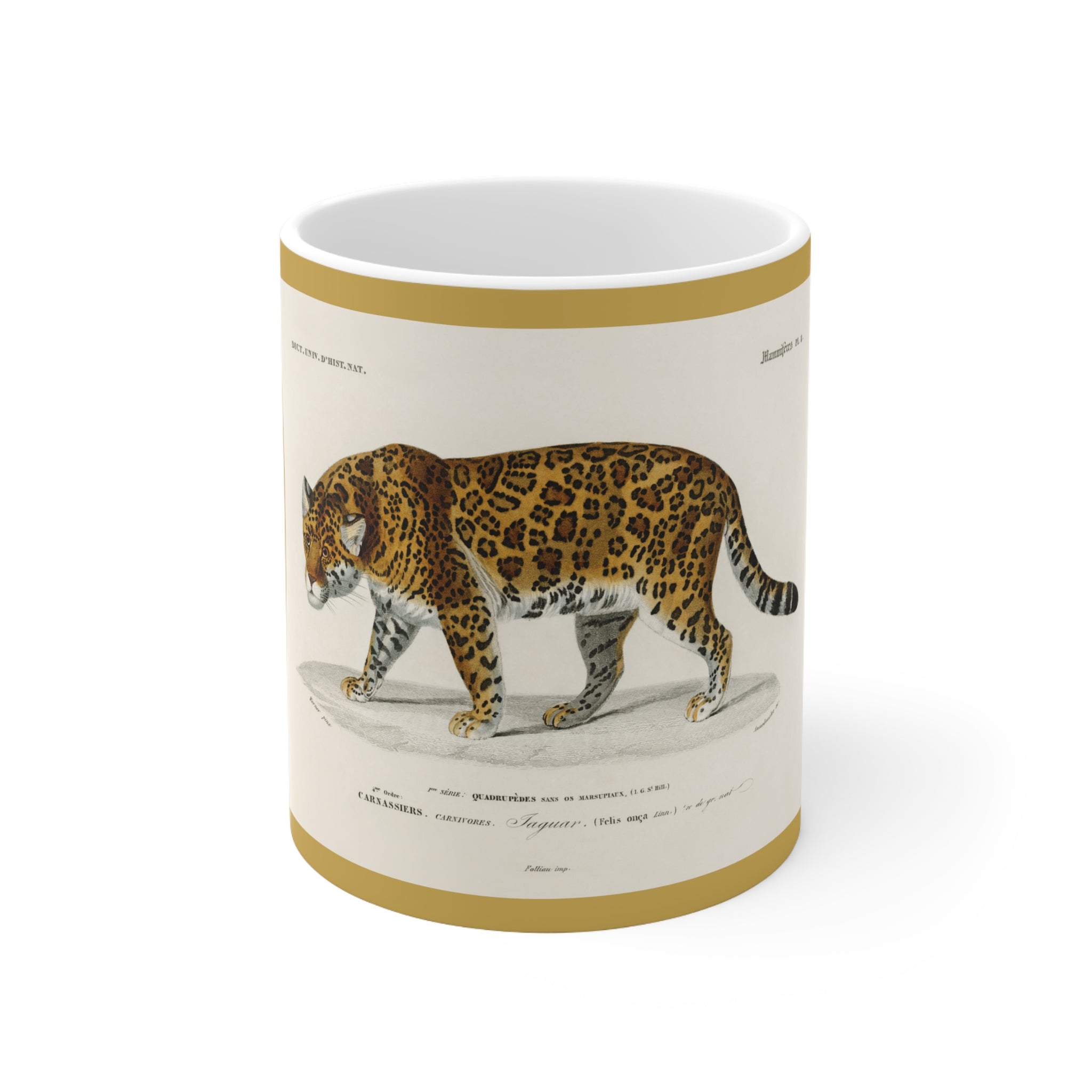 Artwork designed and digitally remastered by Sarasvati Designs. Jaguar (Panthera onca) is an illustration by Charles Dessalines D' Orbigny from the 1892 edition of Dictionnaire Universel D'histoire Naturelle. In this illustration, D' Orbigny carefully portrayed the distinctive features of the Jaguar, including its robust build, distinctive coat pattern, and powerful presence. Charles Dessalines D' Orbigny, a French naturalist and illustrator, was known for his meticulous and accurate scientific illustrations.
