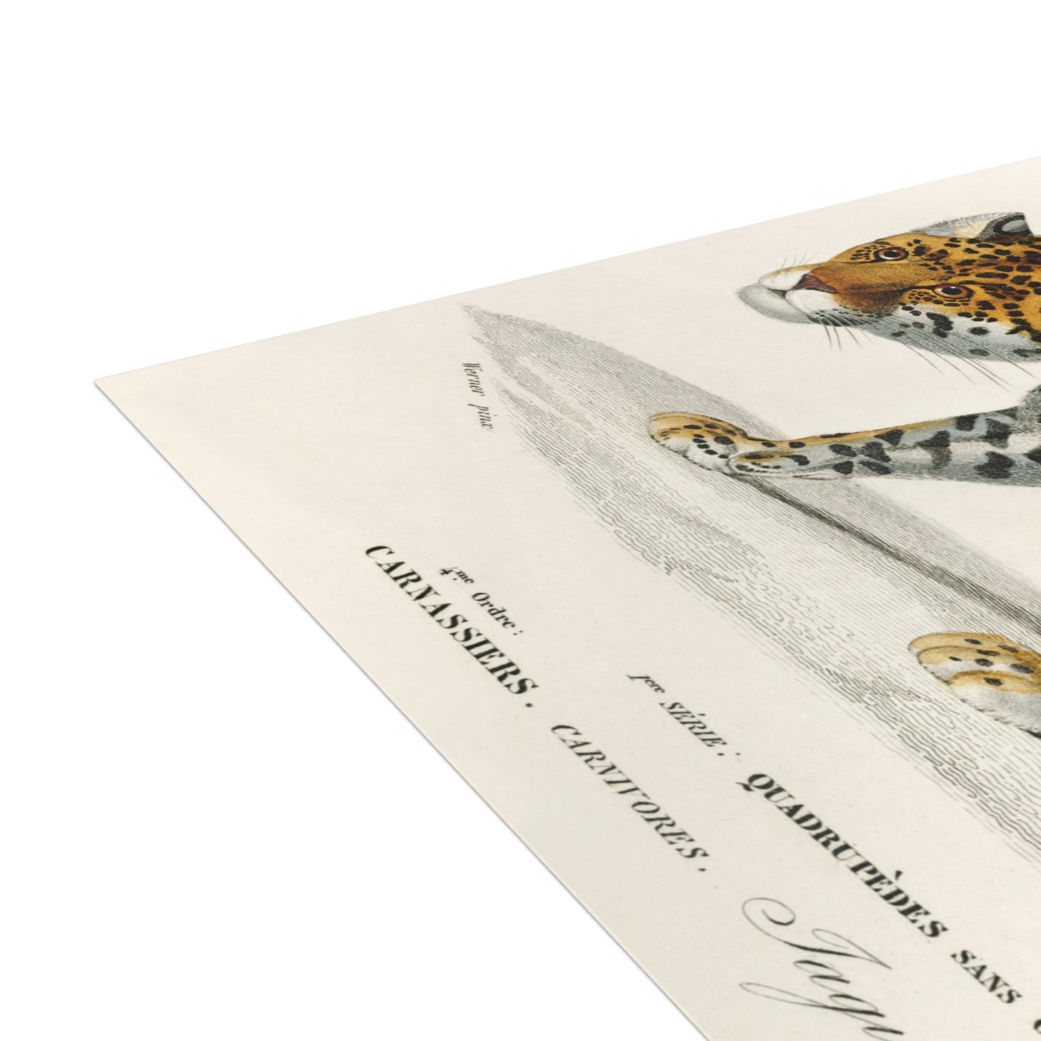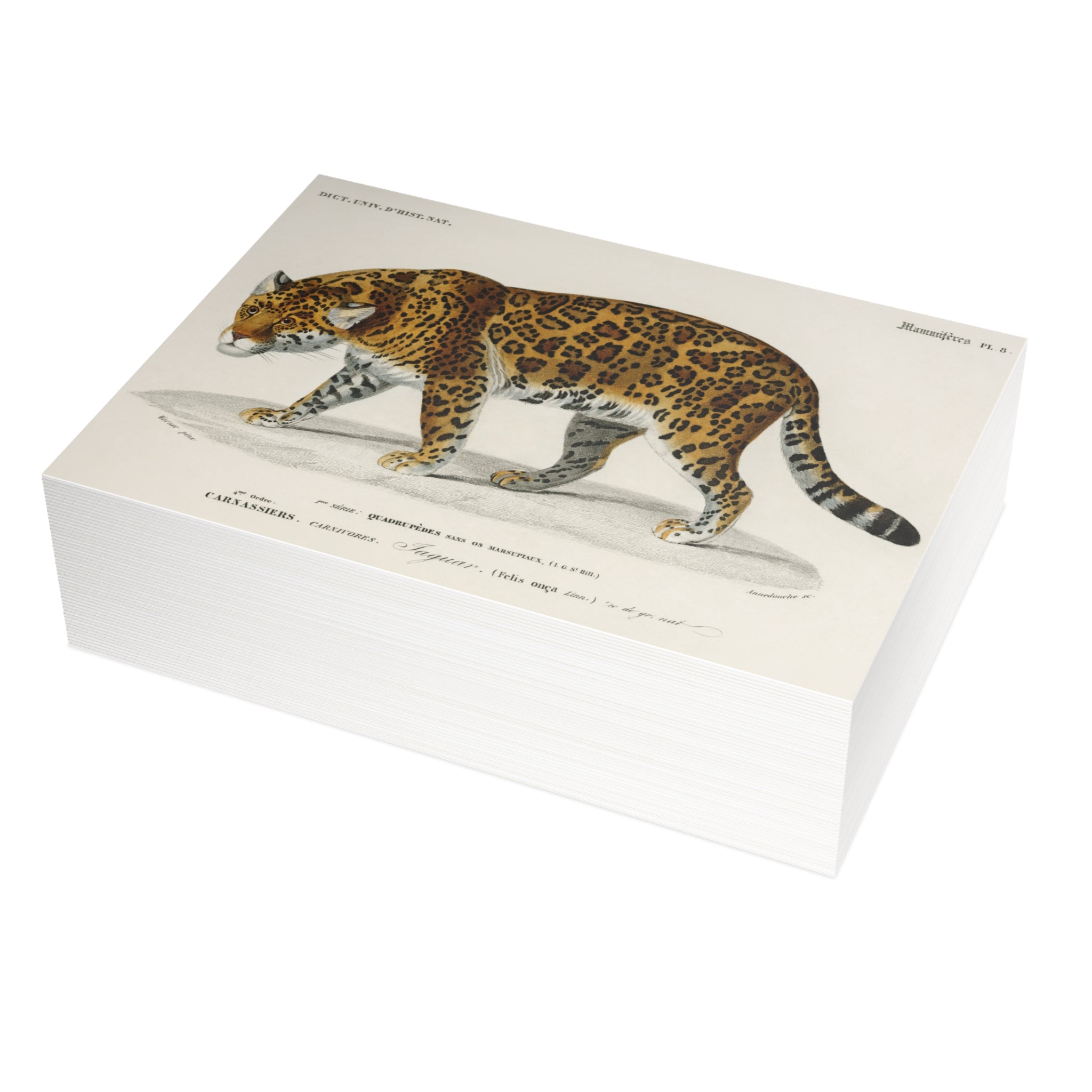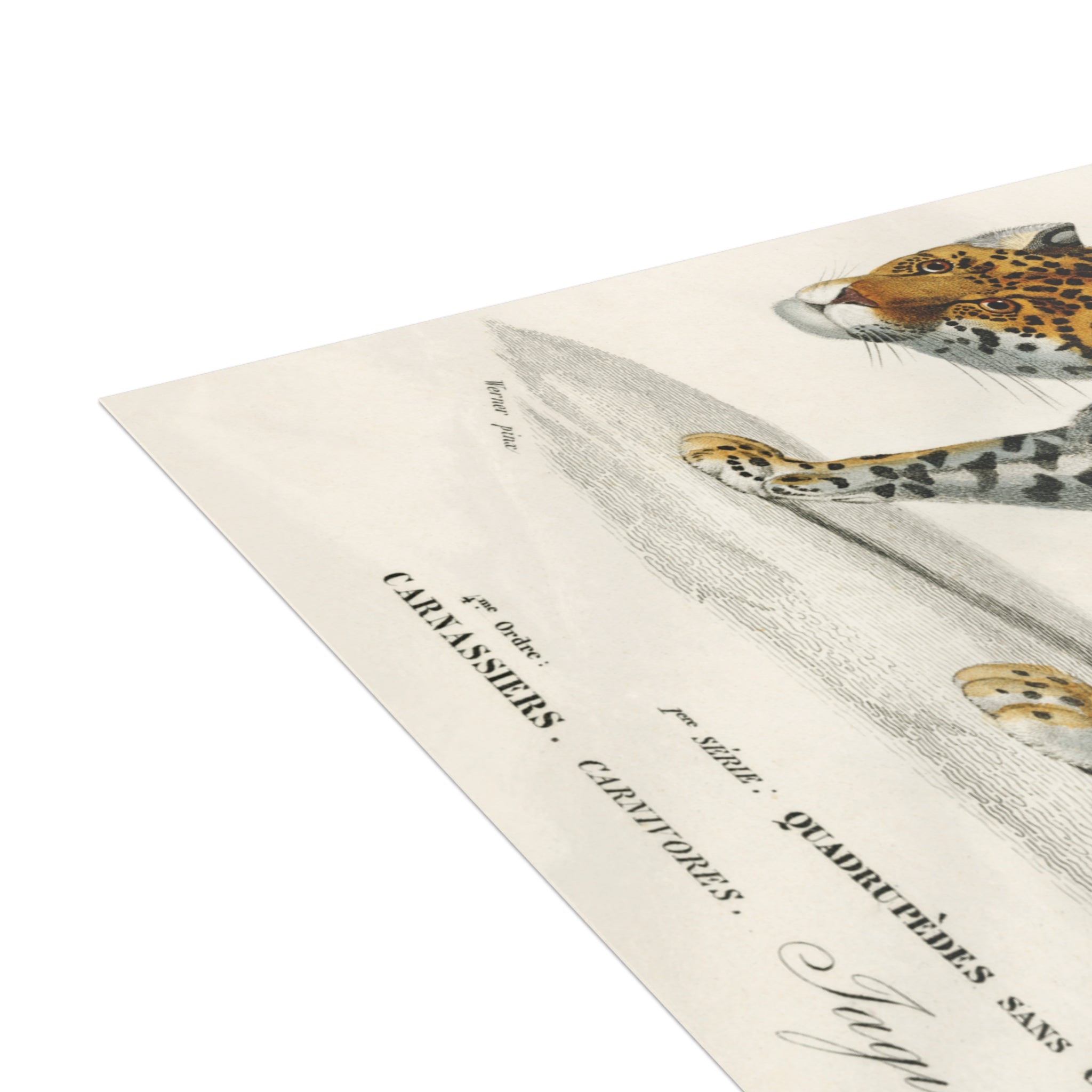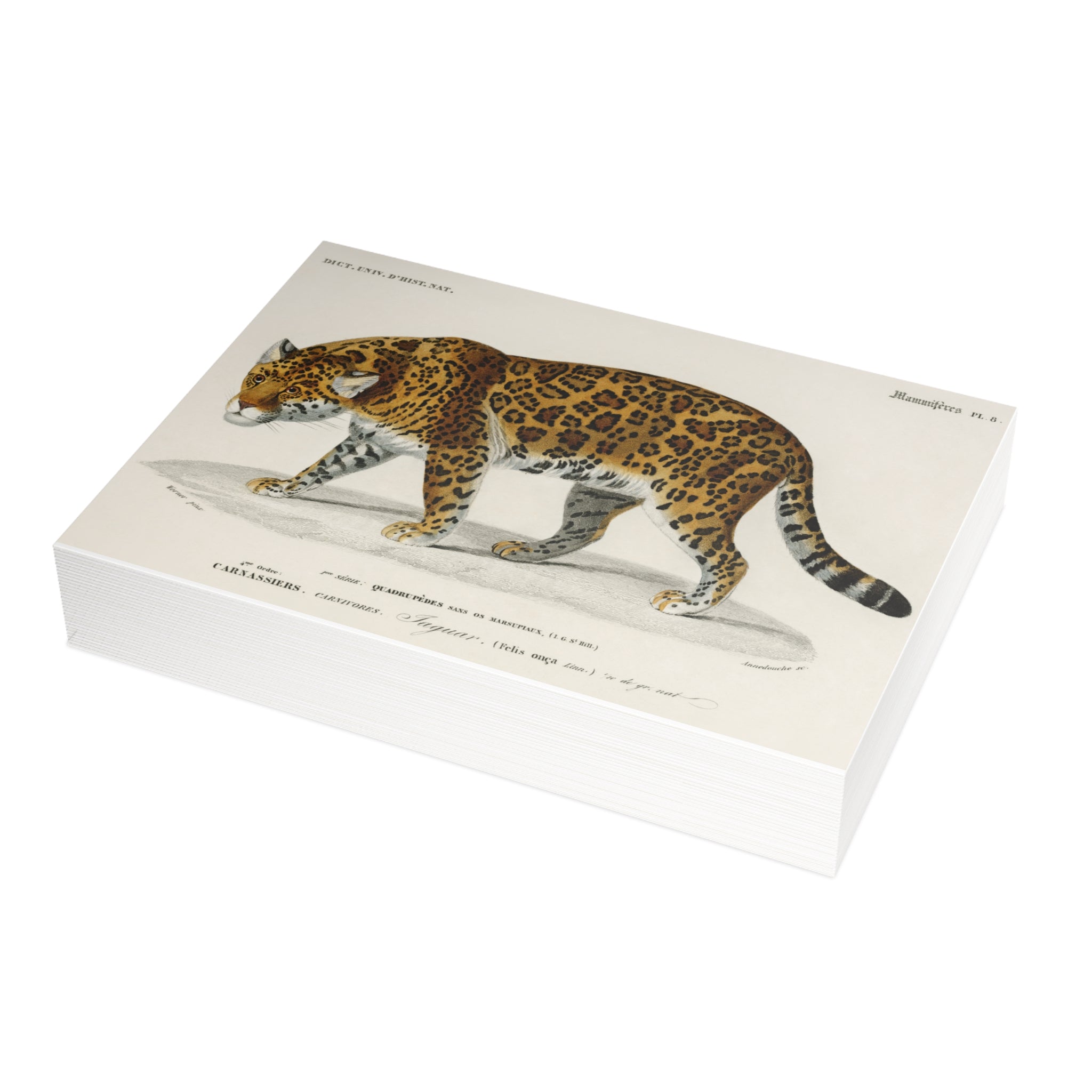 Artwork designed and digitally remastered by Sarasvati Designs. Jaguar (Panthera onca) is an illustration by Charles Dessalines D' Orbigny from the 1892 edition of Dictionnaire Universel D'histoire Naturelle. In this illustration, D' Orbigny carefully portrayed the distinctive features of the Jaguar, including its robust build, distinctive coat pattern, and powerful presence. Charles Dessalines D' Orbigny, a French naturalist and illustrator, was known for his meticulous and accurate scientific illustrations.