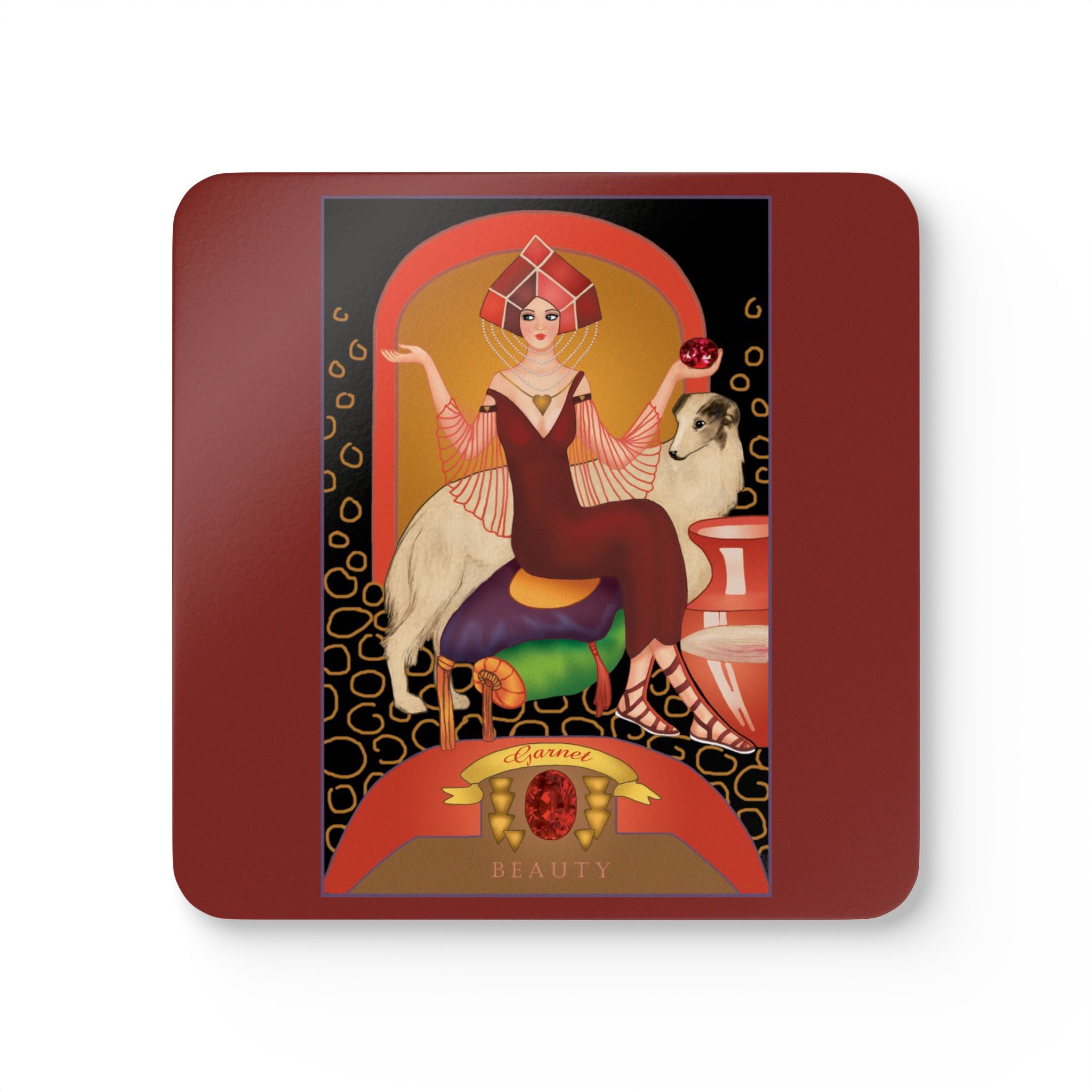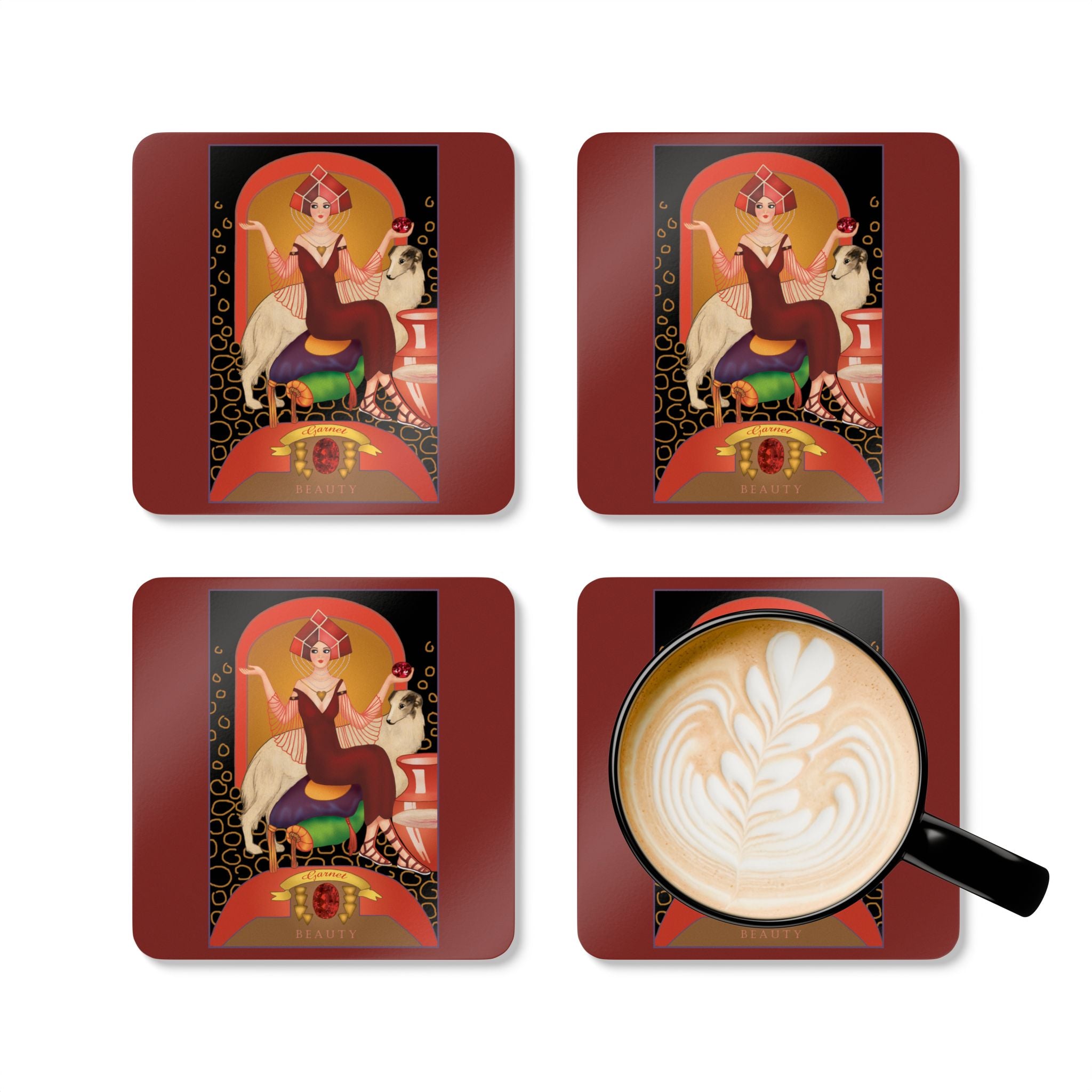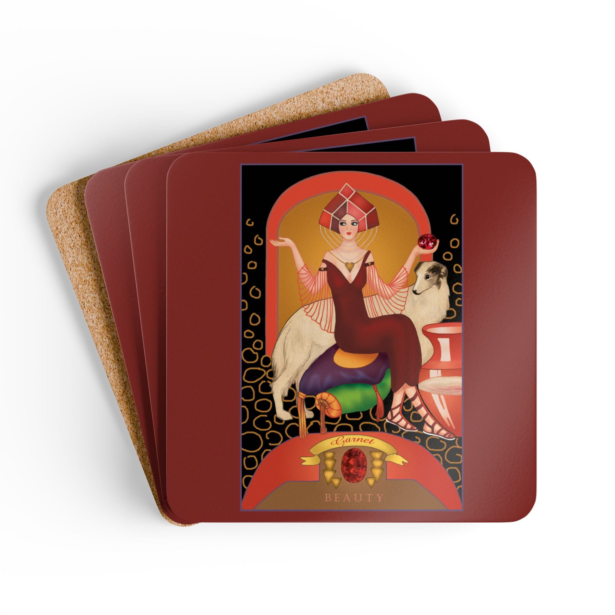 Capricorn Zodiac Design – December & Garnet by Sofia Chiostri | Corkwood Coaster Set combines the elegance of astrology and Art Deco style in a refined four-piece coaster collection. Perfect for adding vintage sophistication to your décor, each coaster celebrates timeless design and cosmic charm.