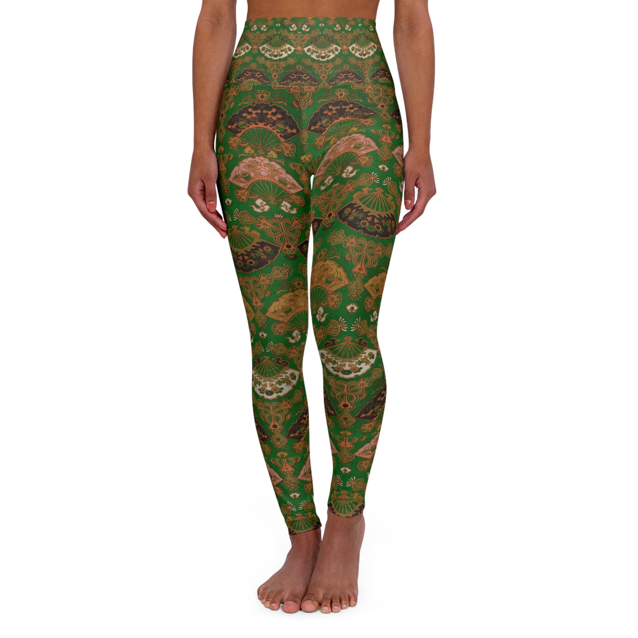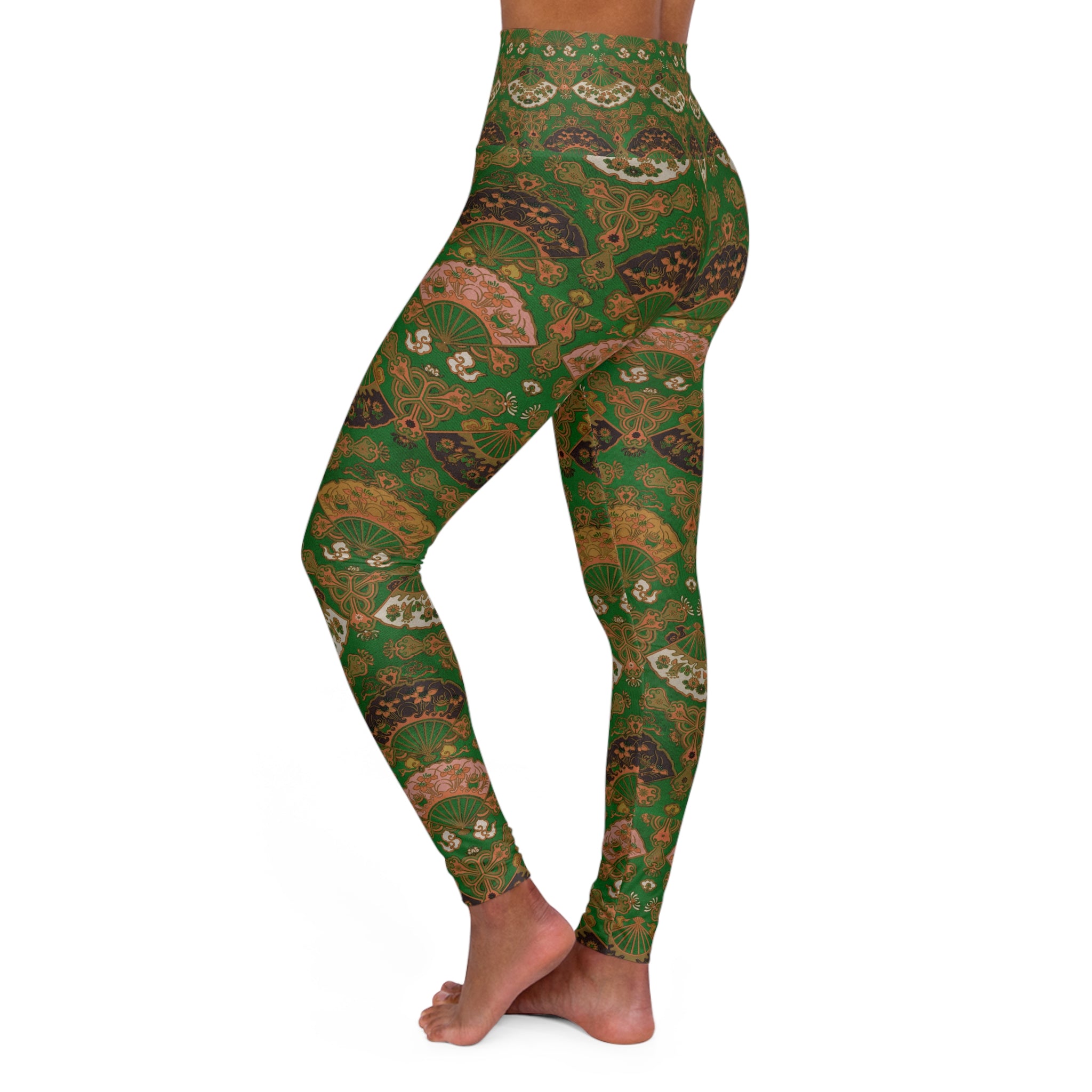 Japanese Fan Pattern by G.A. Audsley High Waisted Yoga Leggings (AOP)