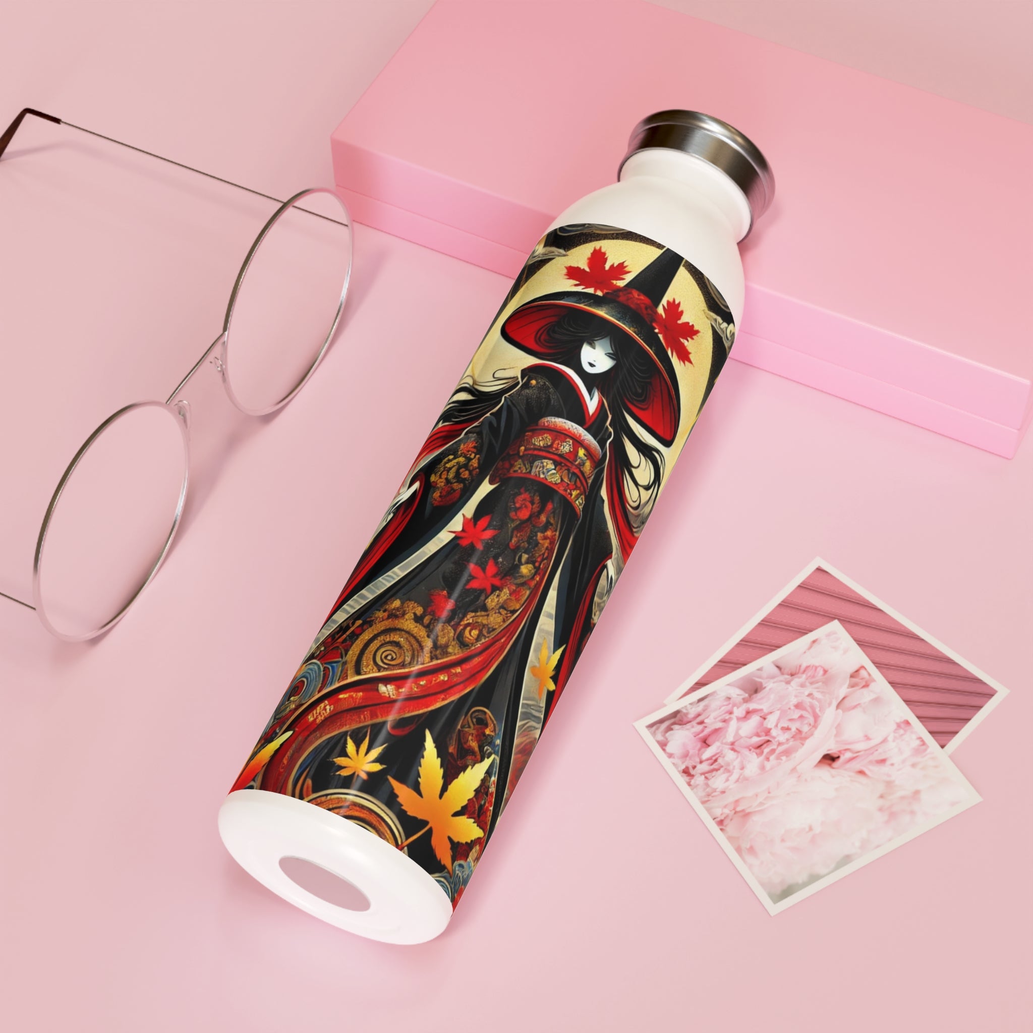 The steel frame mirrors her strength, the vacuum seal seems to hold her supernatural energy, and every sip draws you into her dramatic presence. Perfect for fans of Japanese art, fantasy, and Halloween magic, this water bottle blends durability, elegance, and mystique into a piece that elevates both style and spirit with every use.